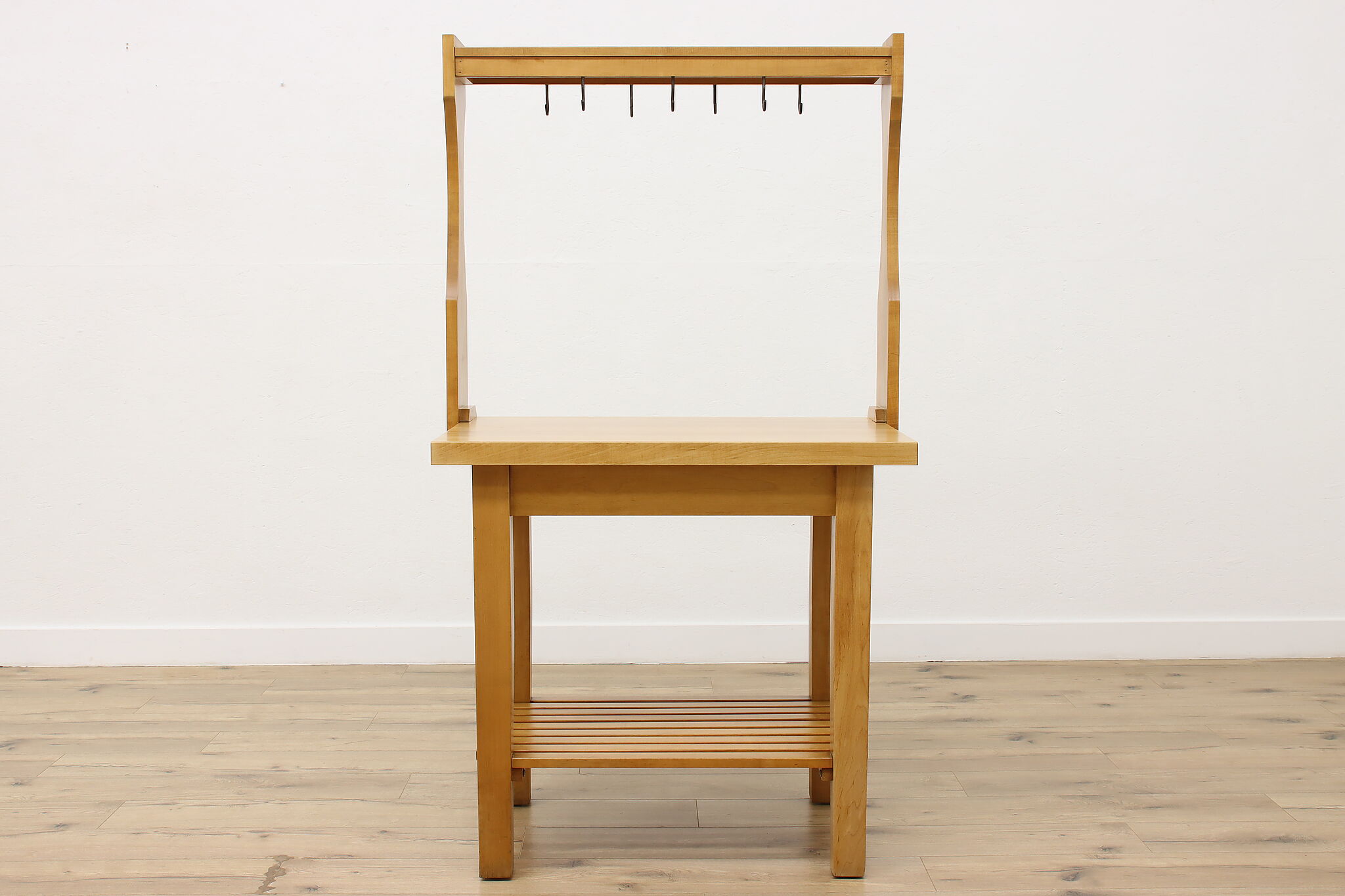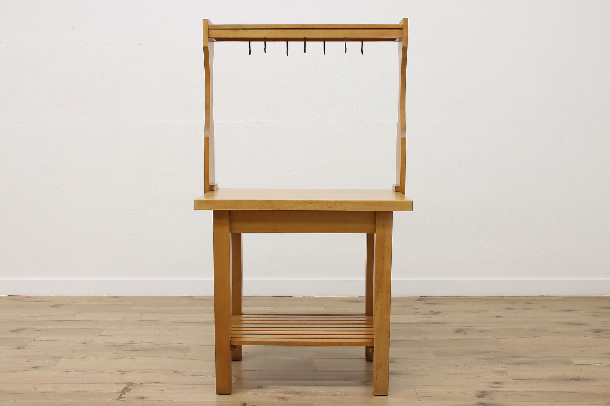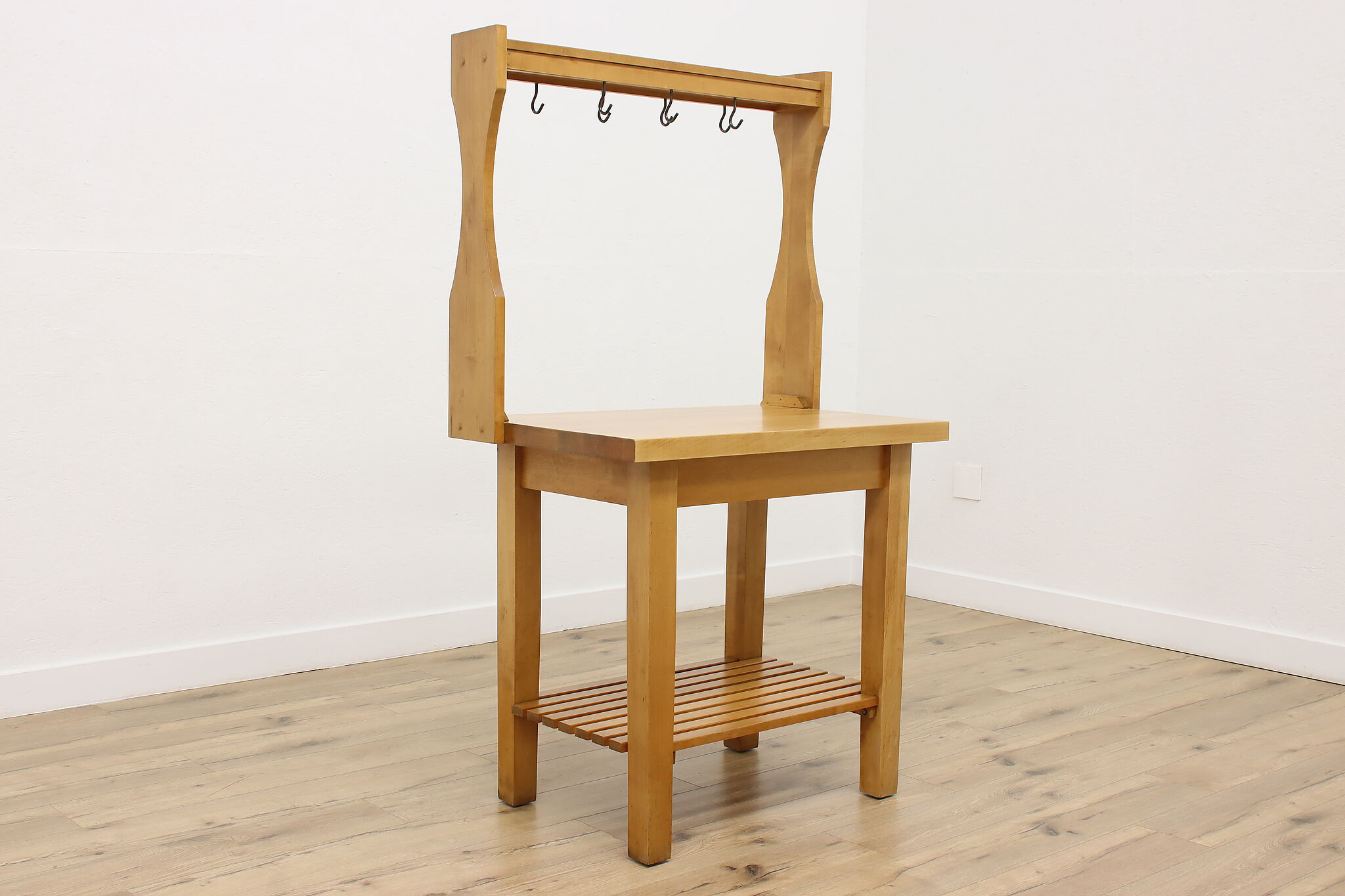 Oh, the possibilities this workbench could provide for the right person! For the avid gardener or baker, it's a great work surface. Need a space for your many crafts and supplies? Enjoy the surface space and hanging hooks for your next project.