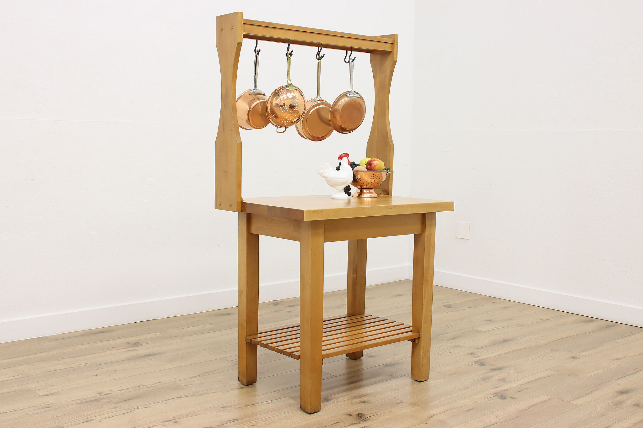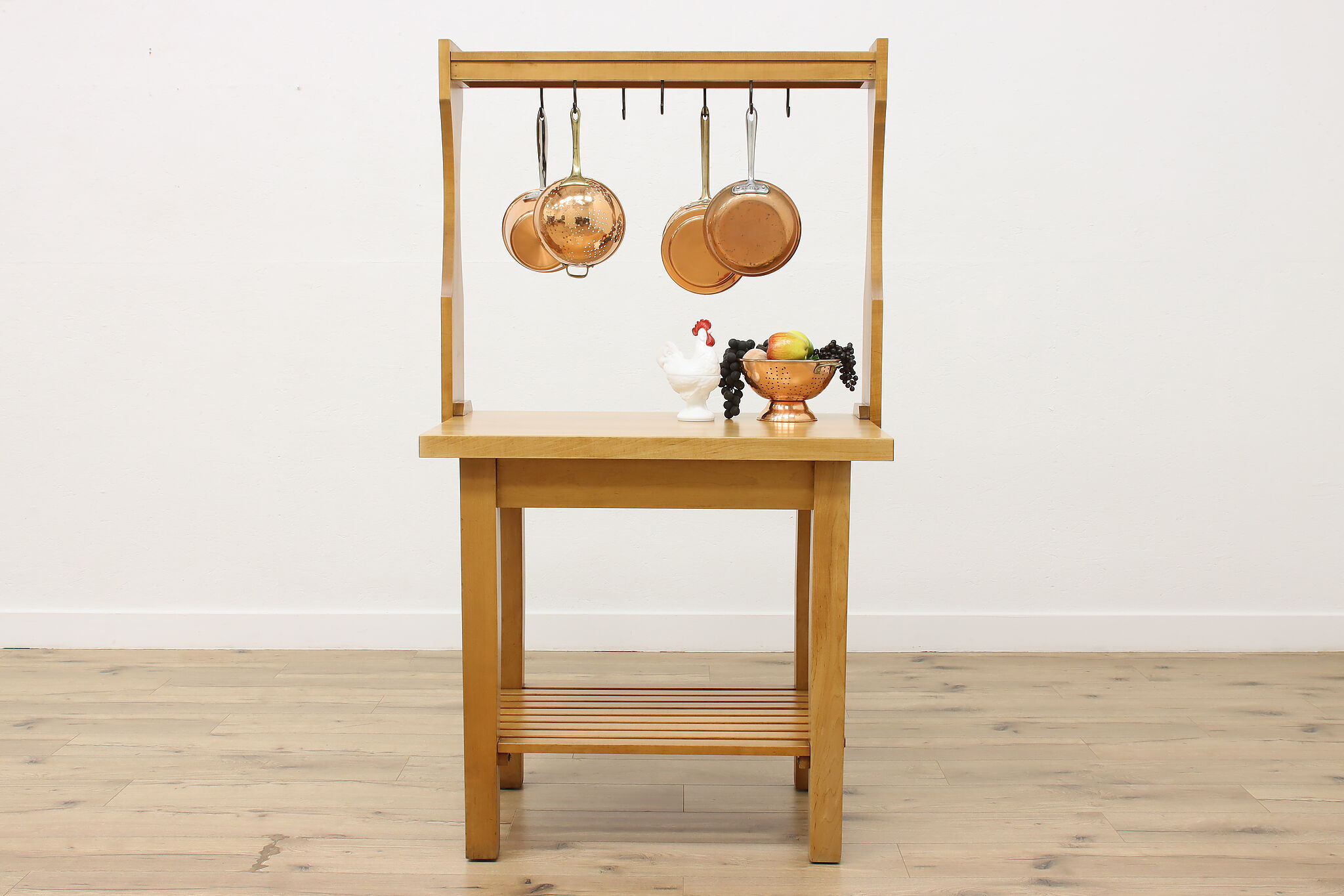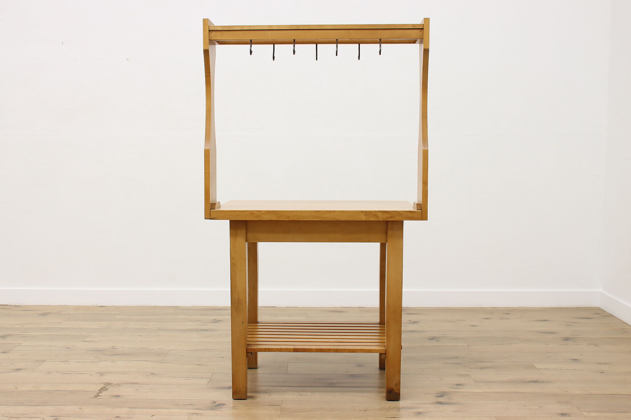 Oh, the possibilities this workbench could provide for the right person! For the avid gardener or baker, it's a great work surface. Need a space for your many crafts and supplies? Enjoy the surface space and hanging hooks for your next project.