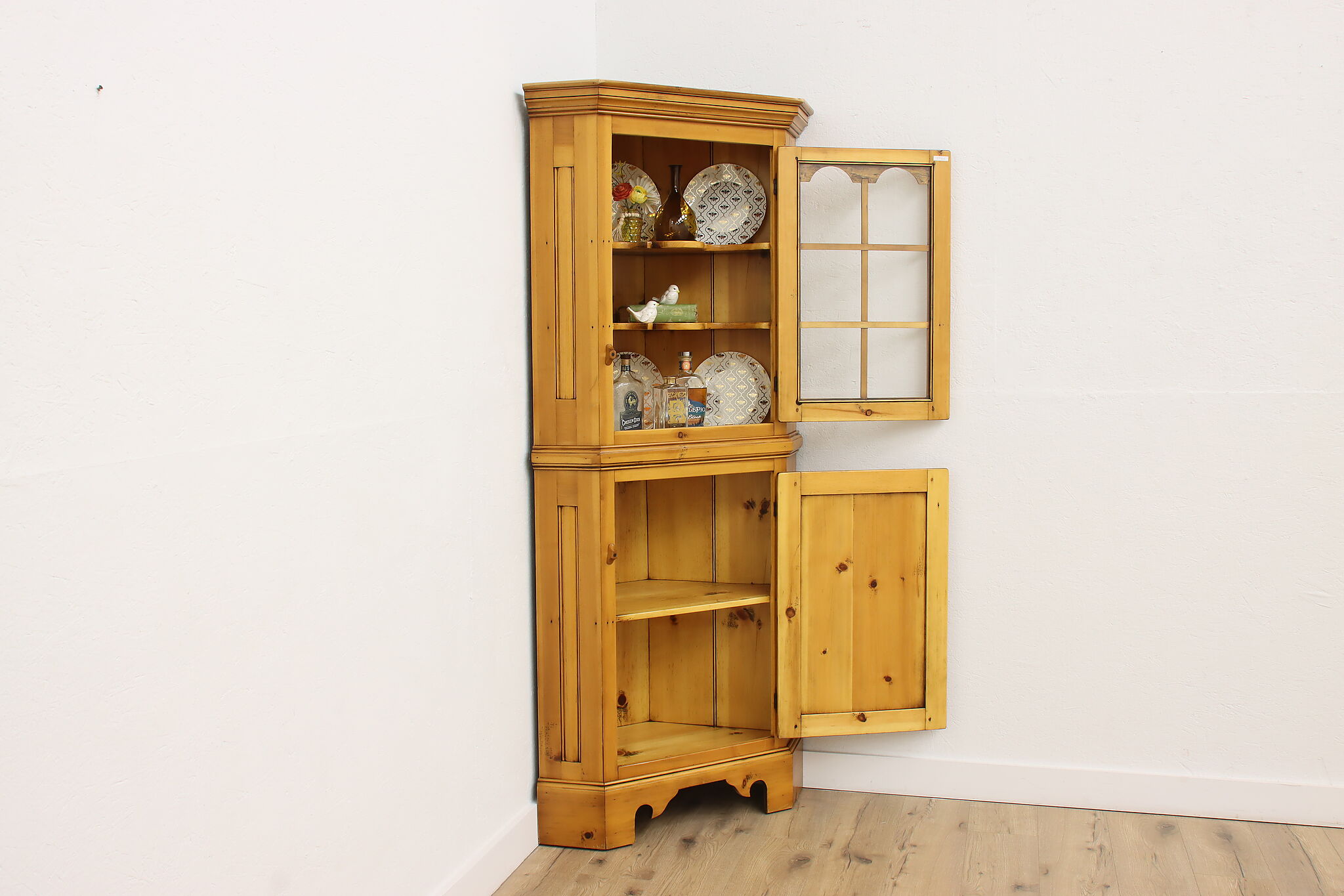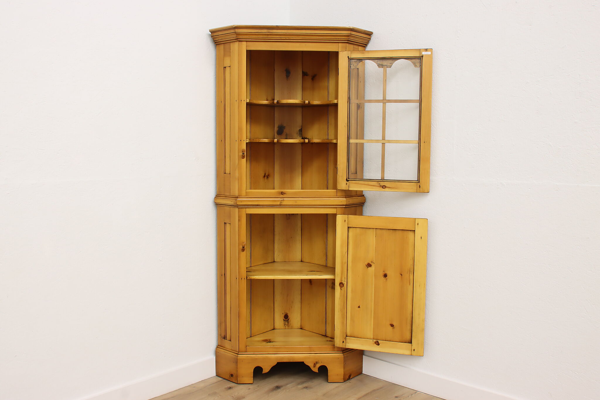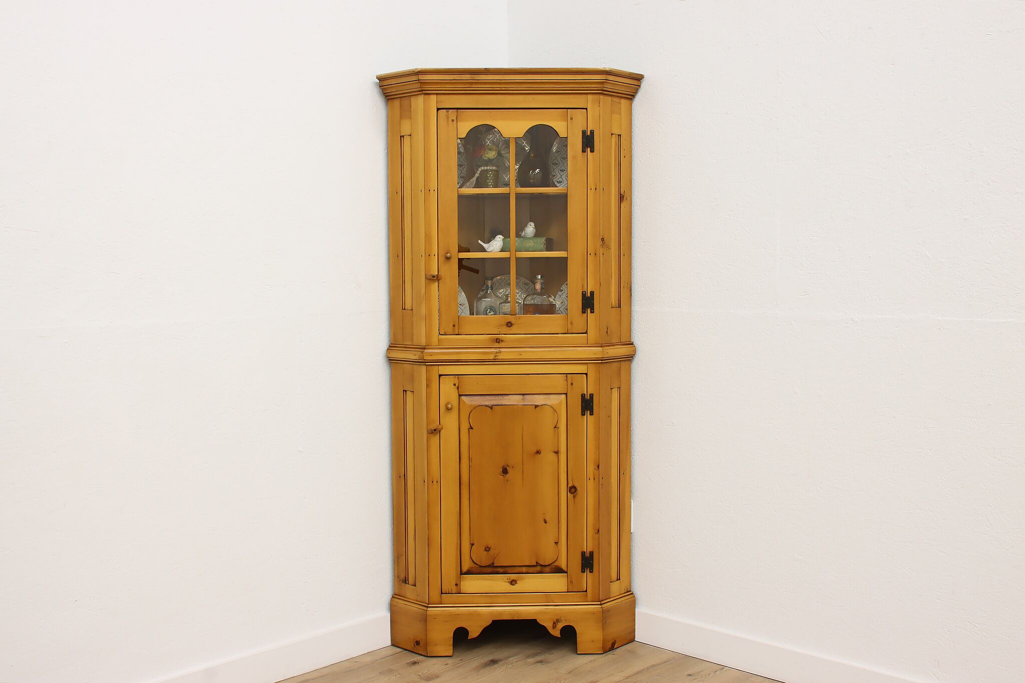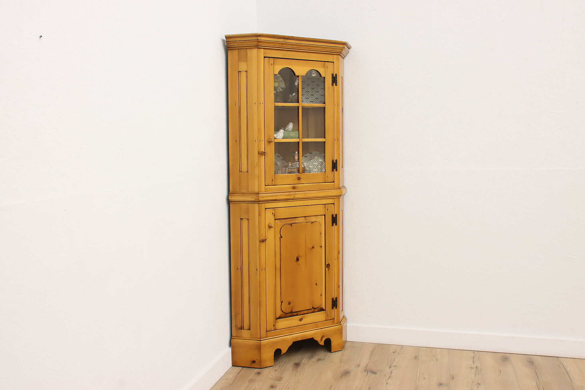 The warm and rustic character of this country farmhouse corner cabinet will look beautiful in your home, displaying trinkets or used in a kitchen!
