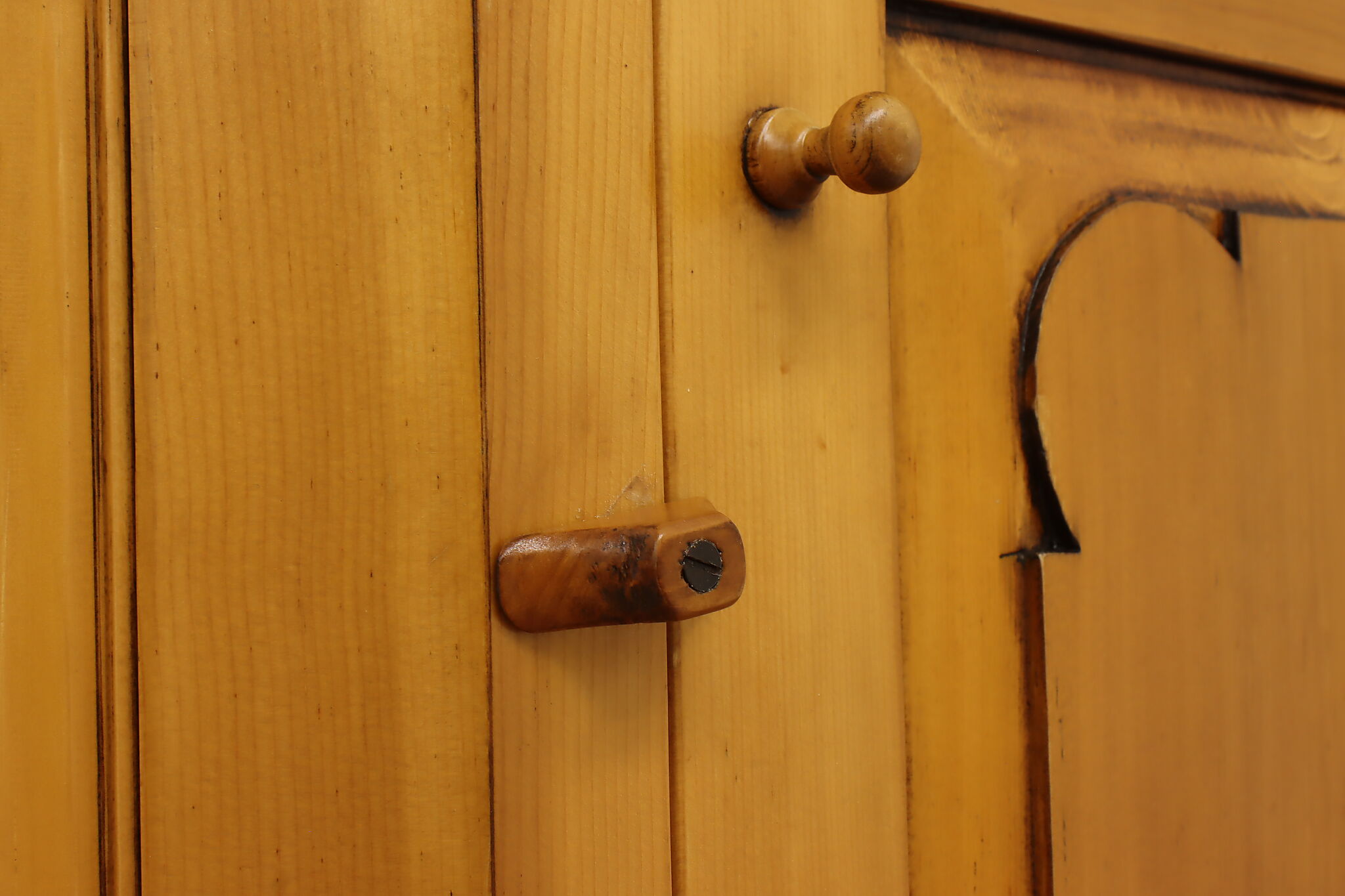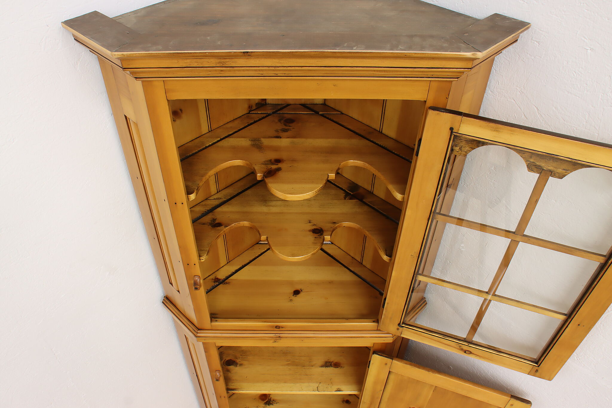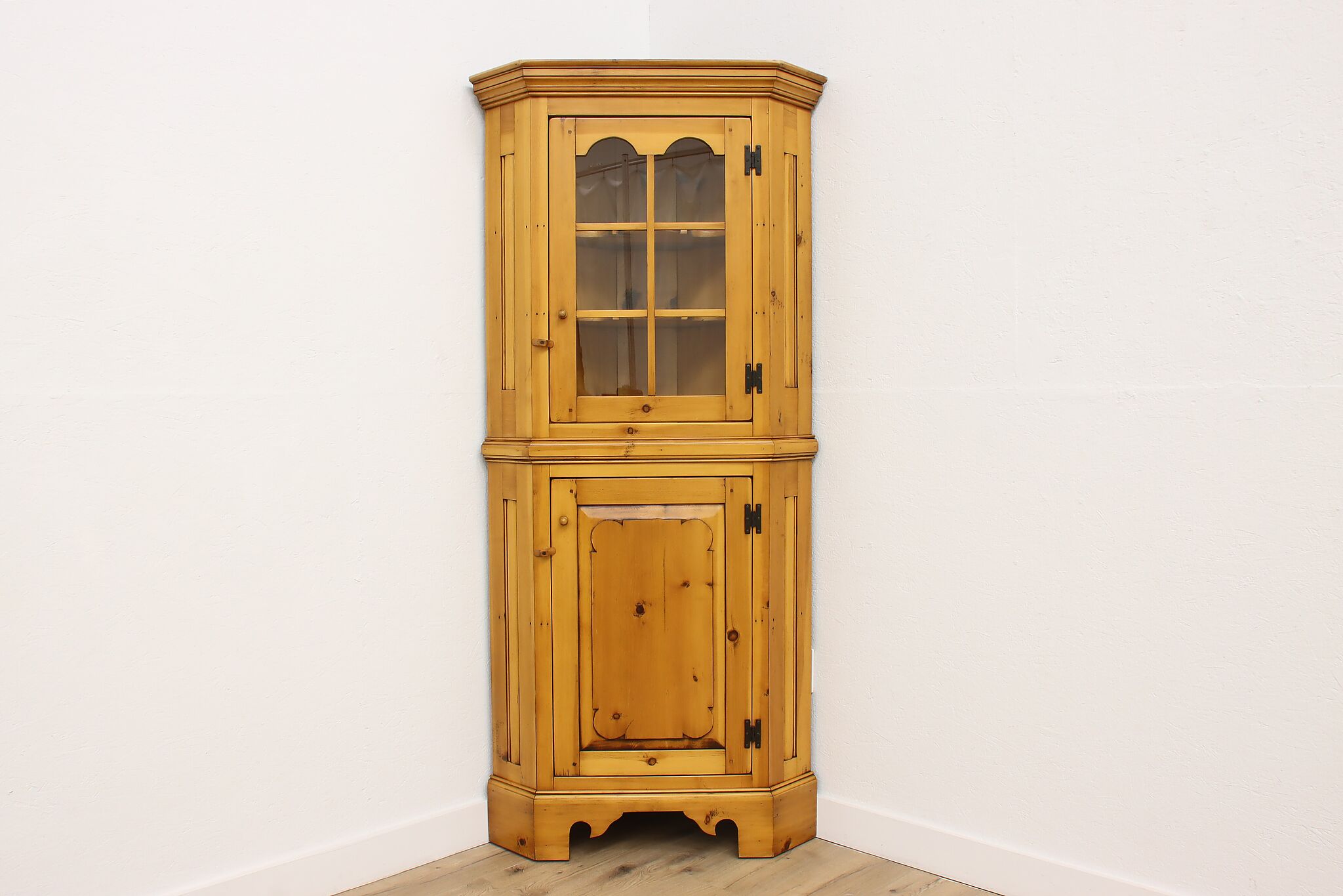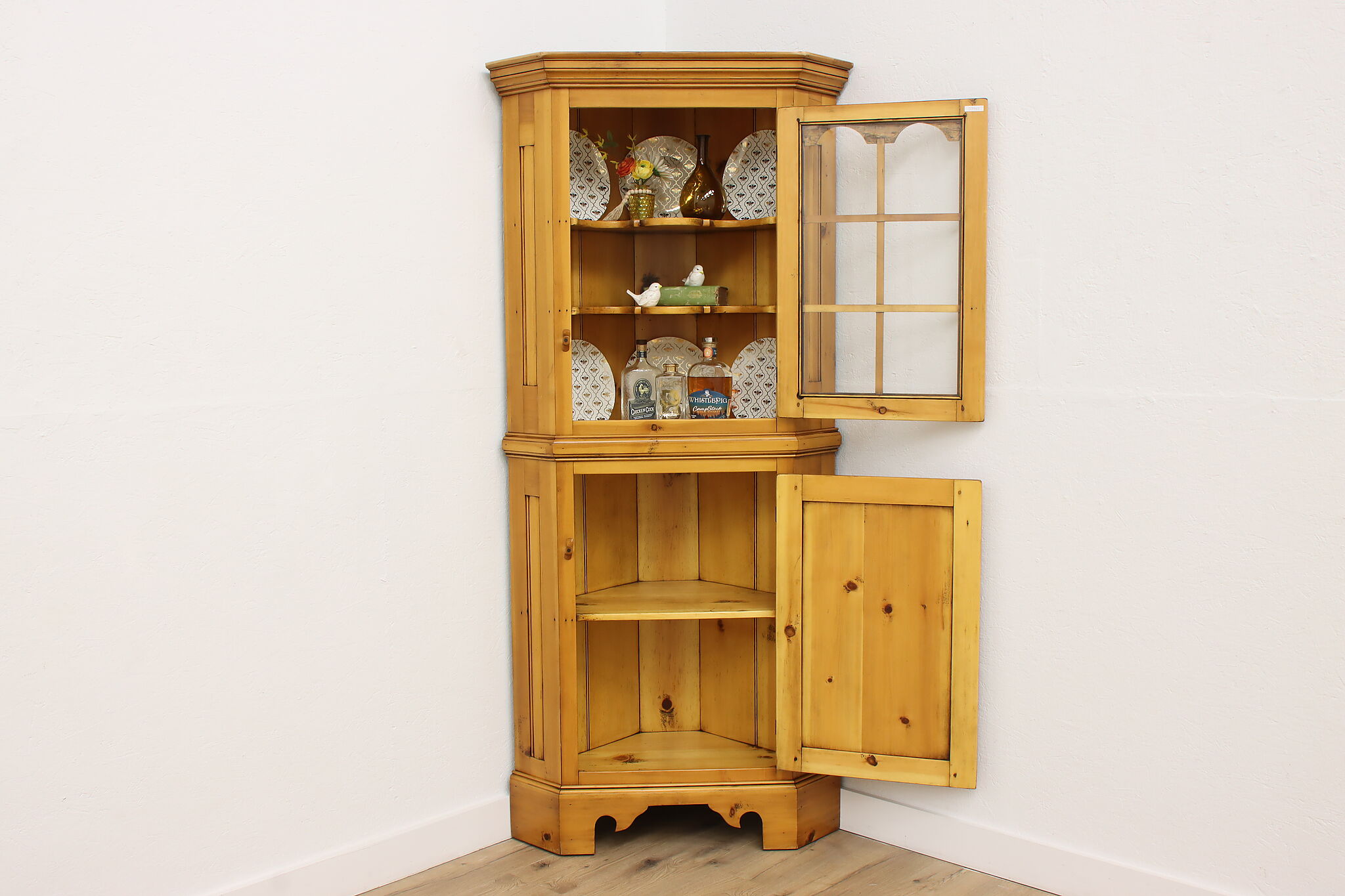 The warm and rustic character of this country farmhouse corner cabinet will look beautiful in your home, displaying trinkets or used in a kitchen!