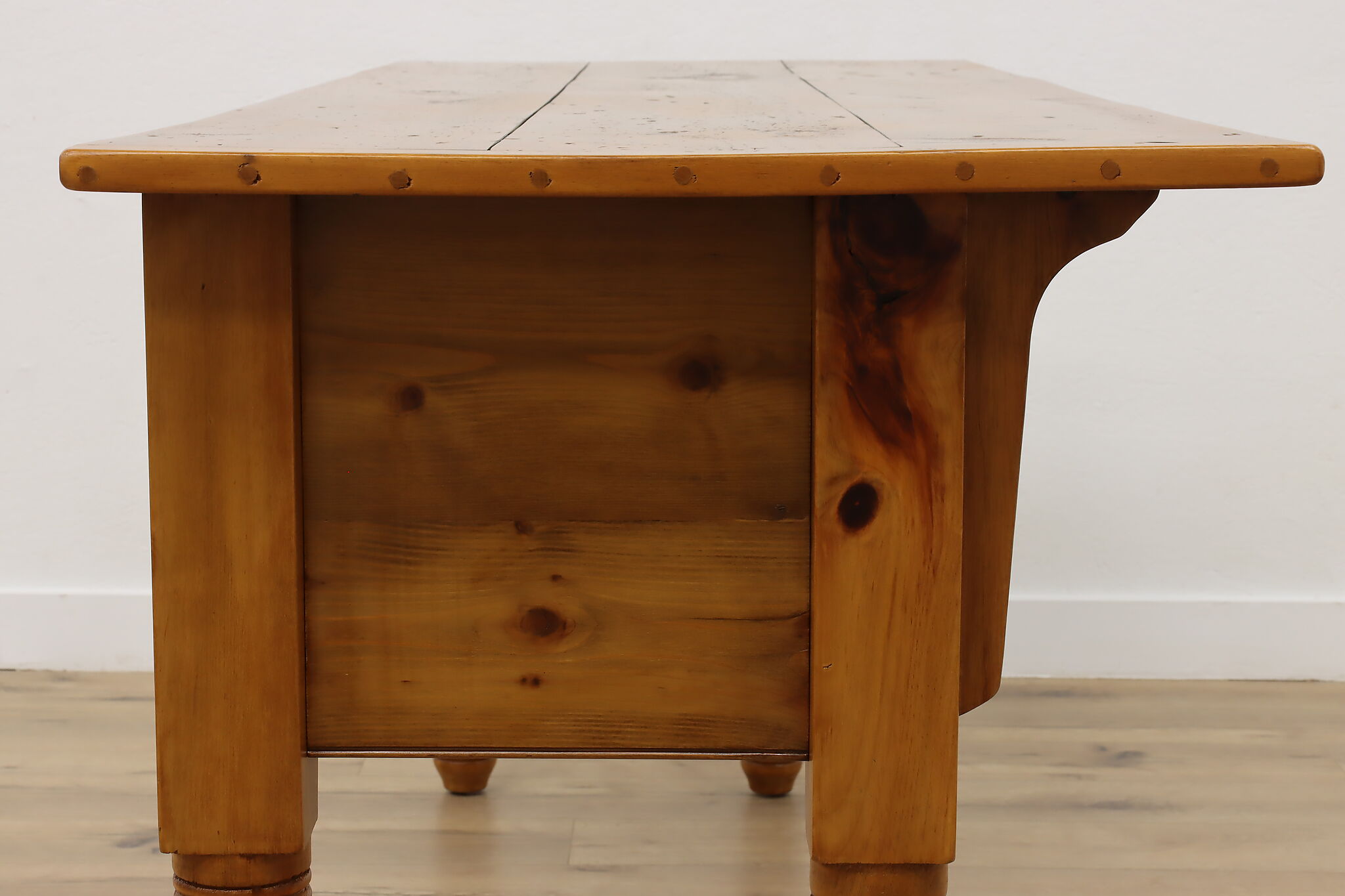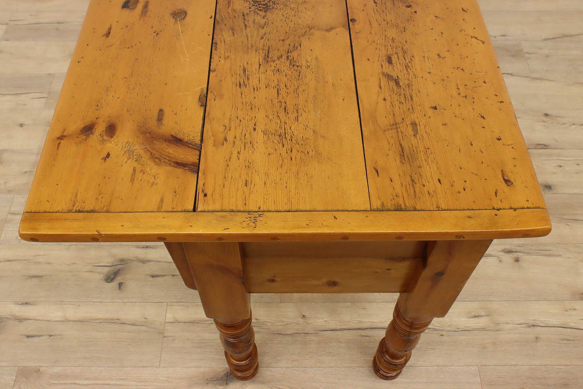 This farmhouse kitchen island, sideboard or buffet is loaded with rustic characteristics.