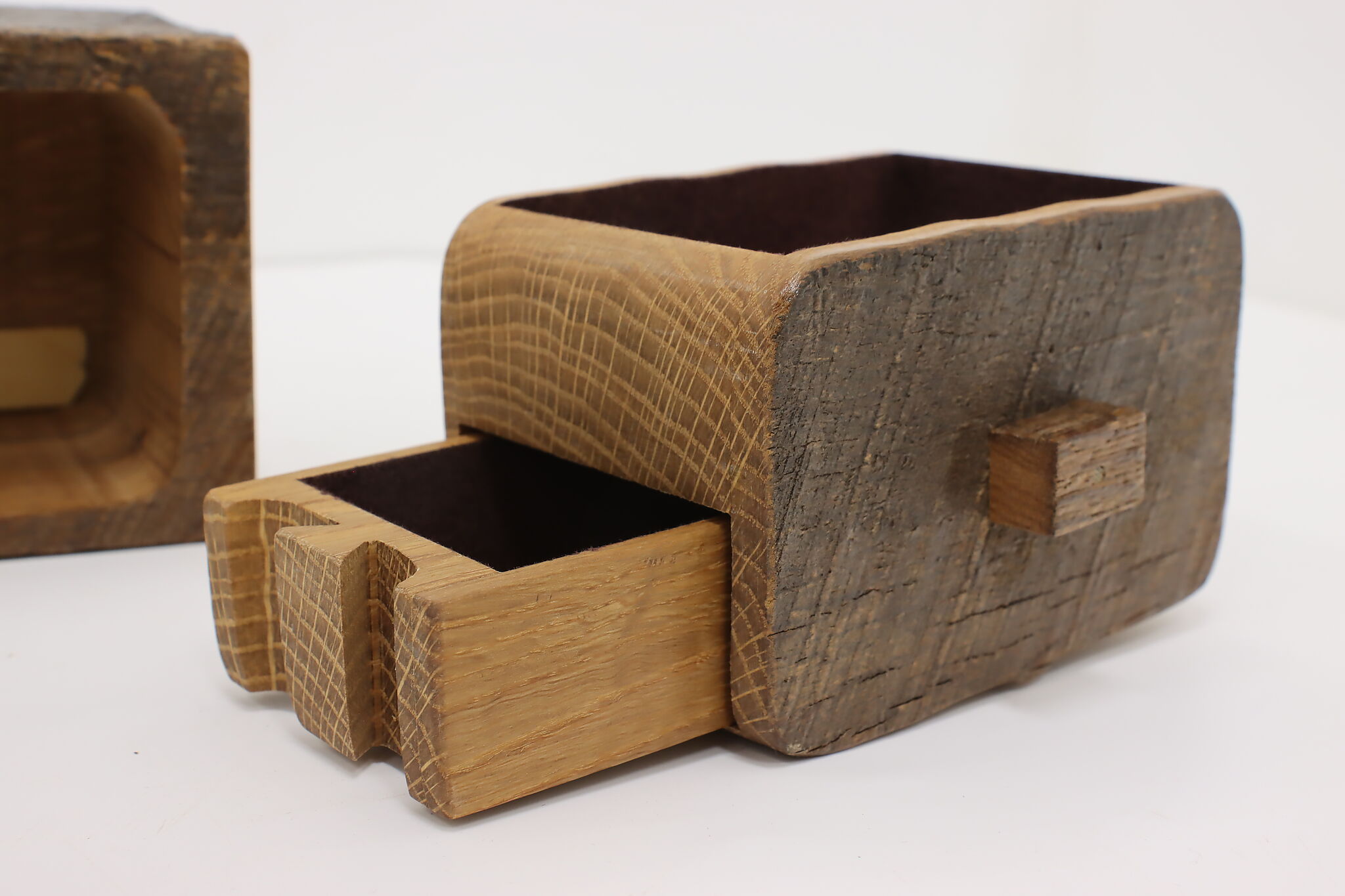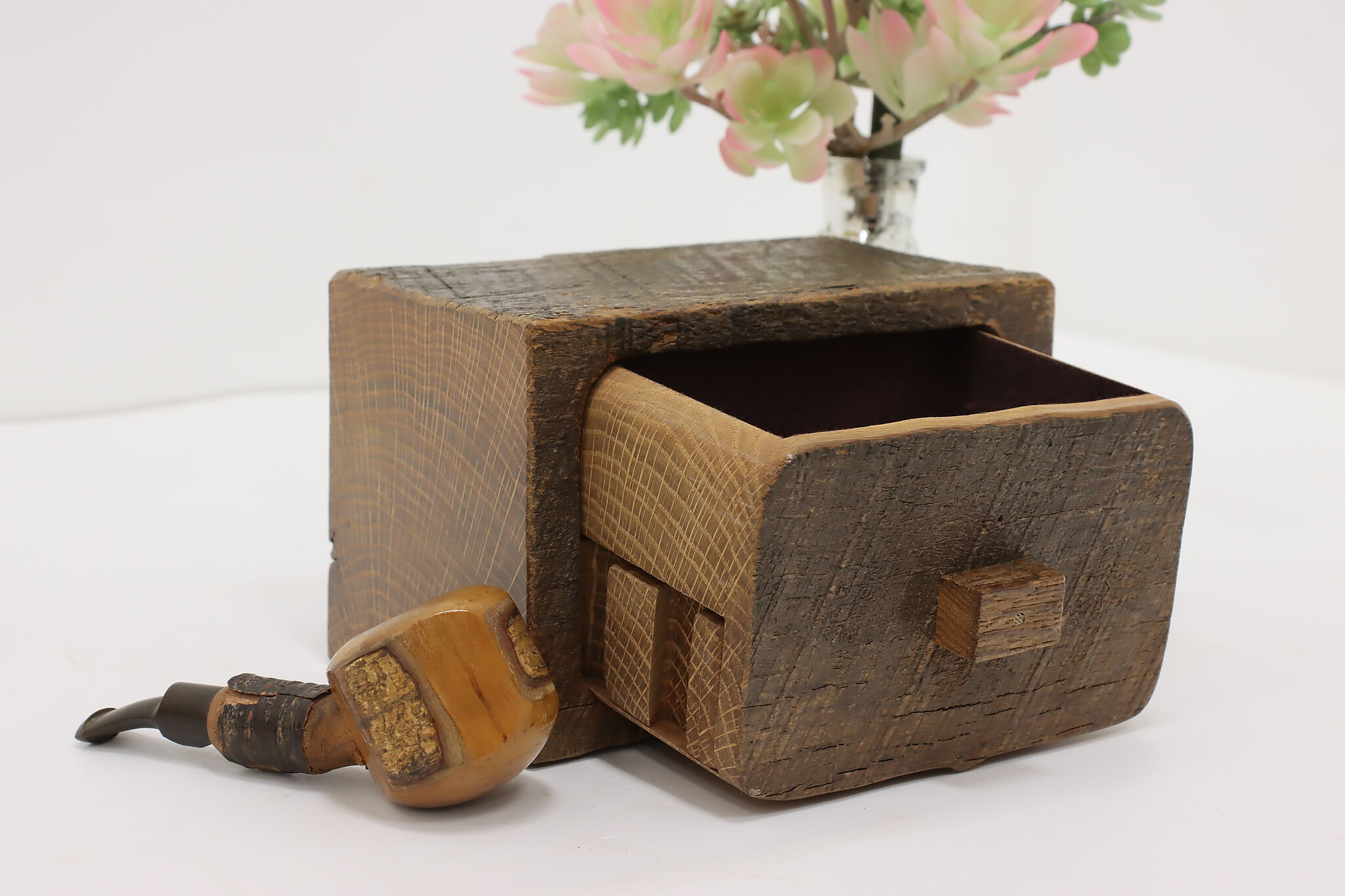 This delightful farmhouse jewelry or keepsake box has a secret compartment.