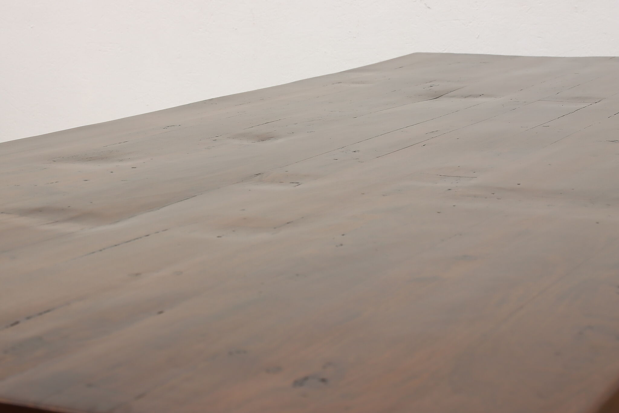The "hand scraped" top on this rugged dining or library table gives it rustic farmhouse charm while still being sturdy and functional for large families or even as a desk.