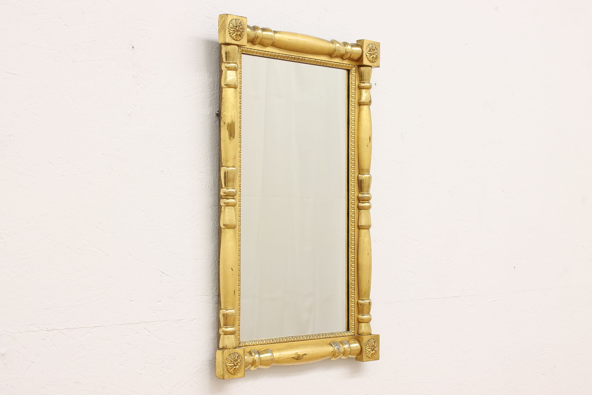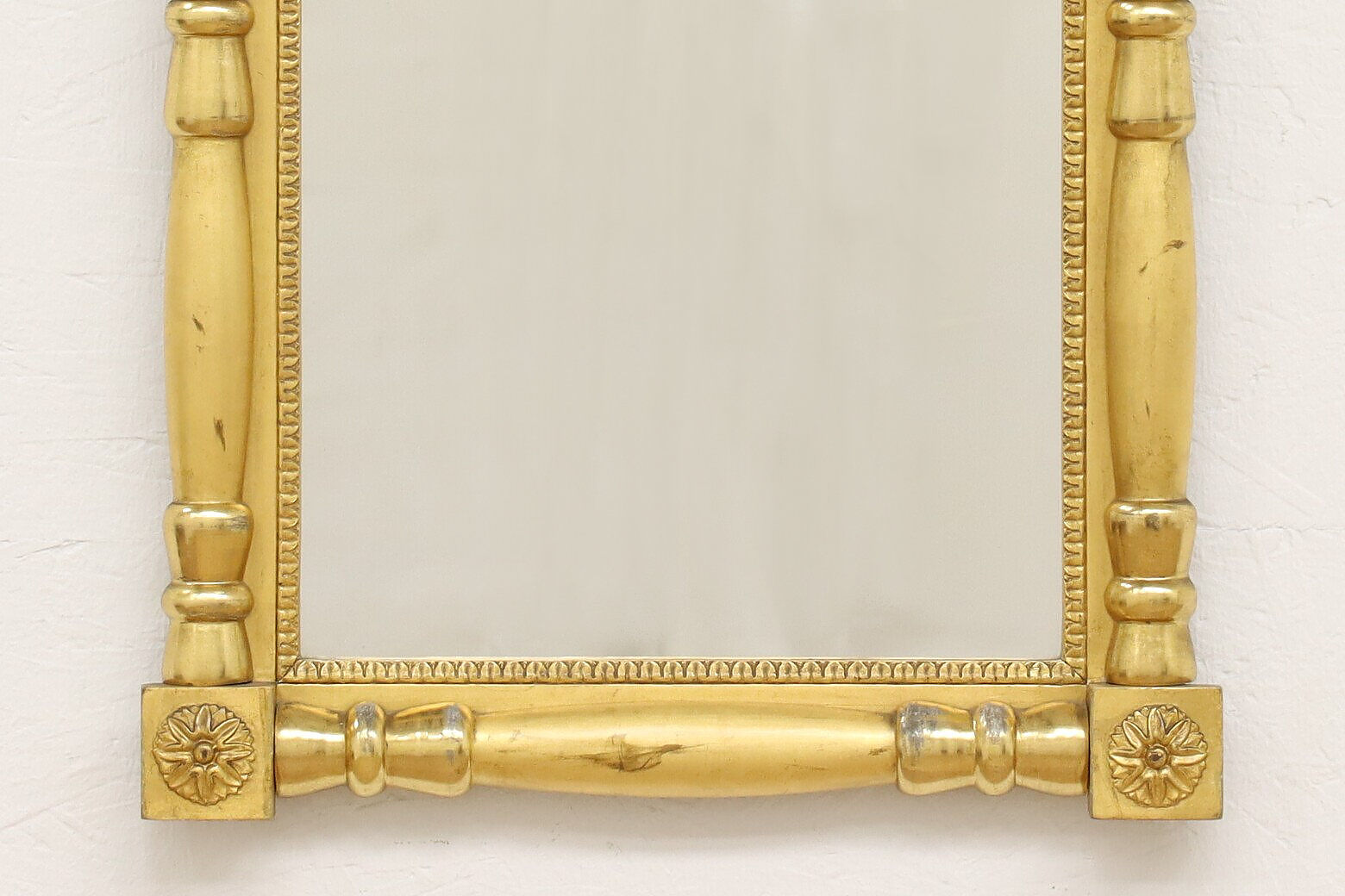 A traditional Federal period wall hanging mirror has carved floral motifs.