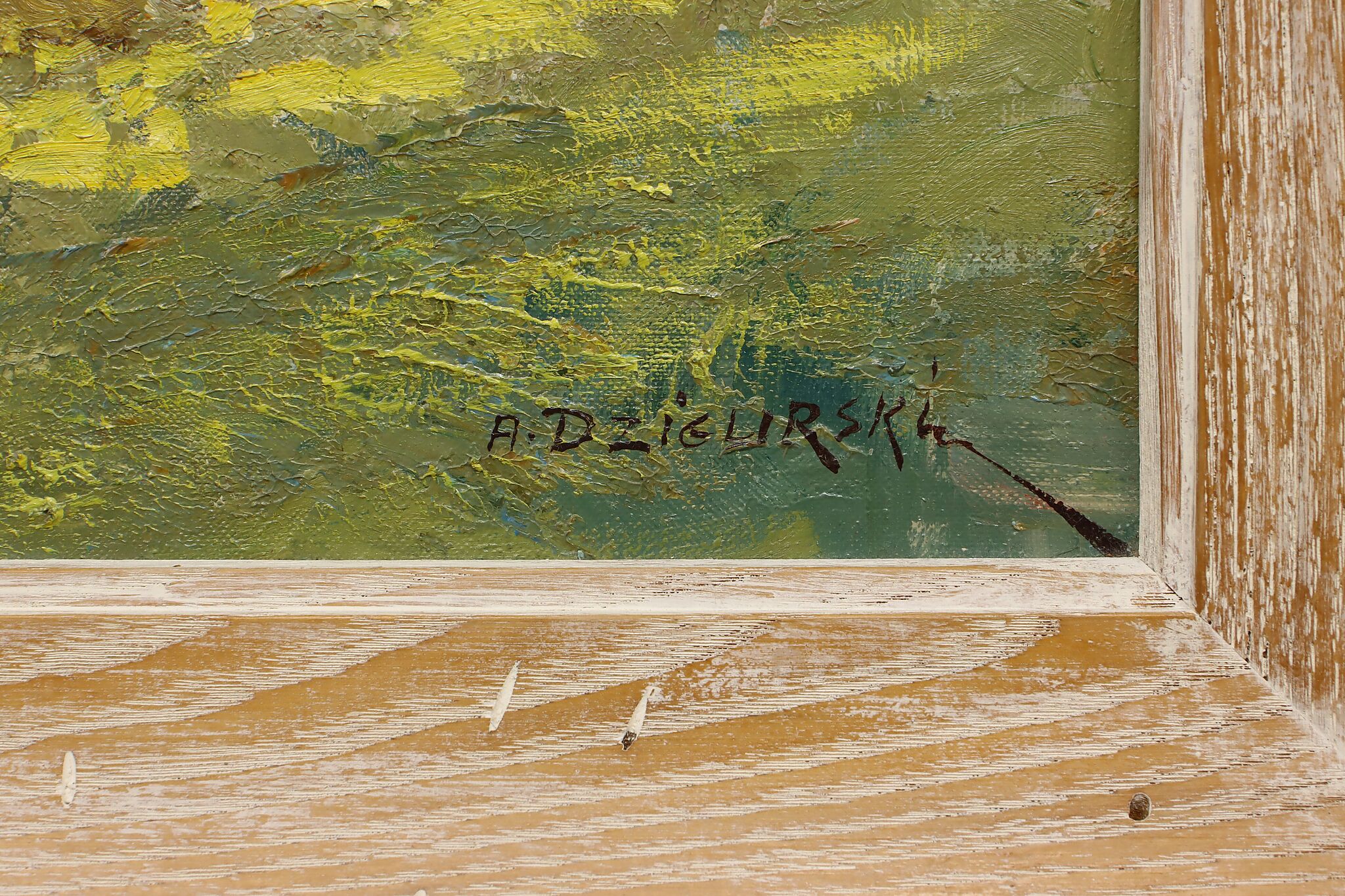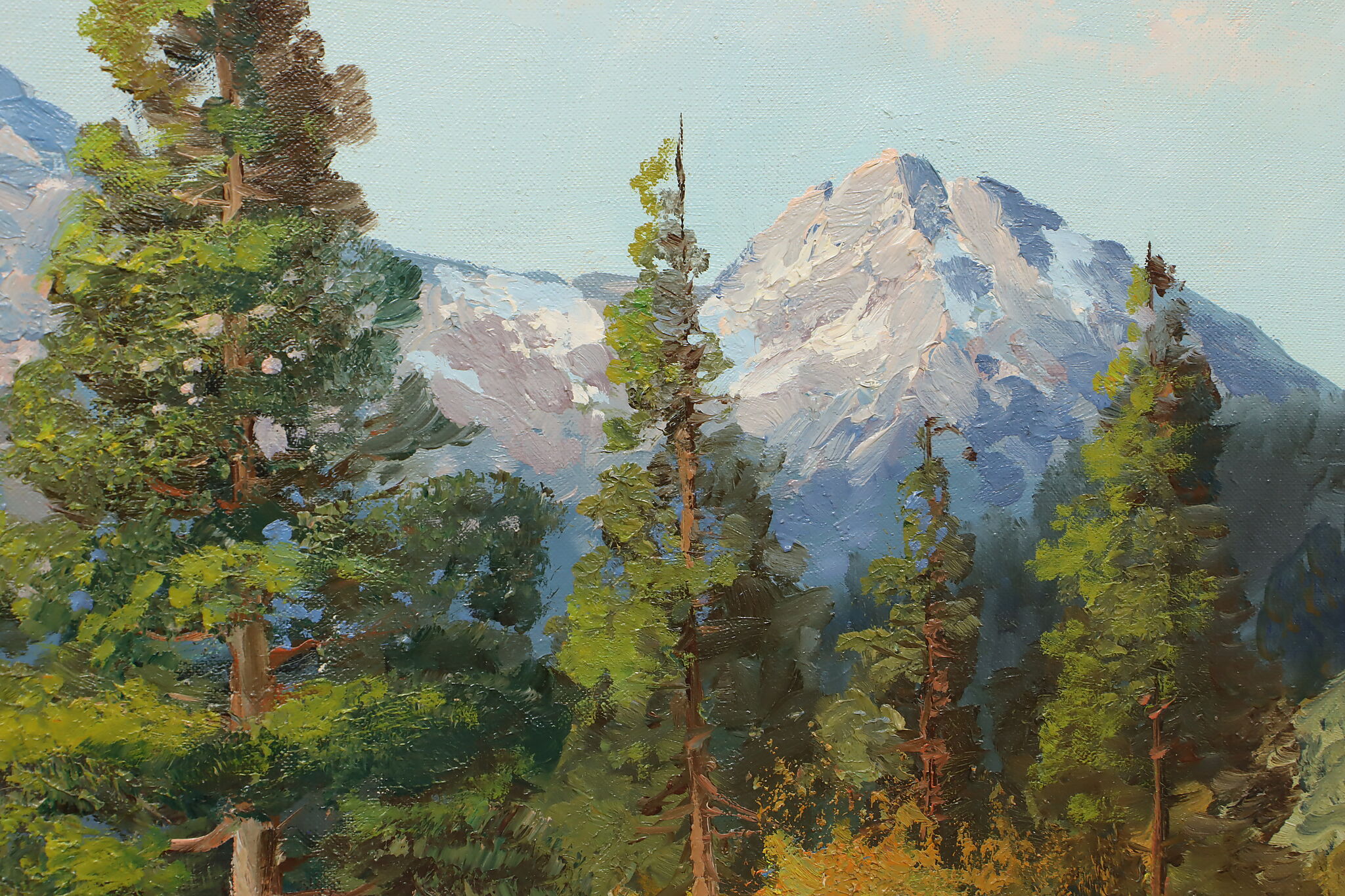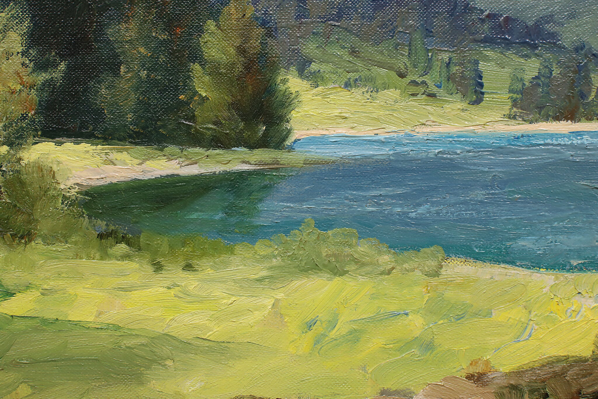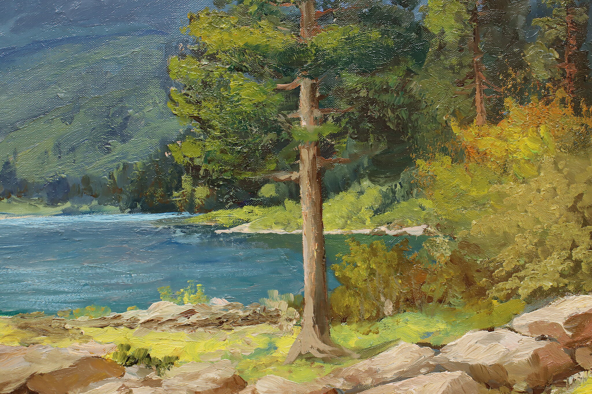 Decorate your cabin or lodge with this painting of a forest wilderness landscape.