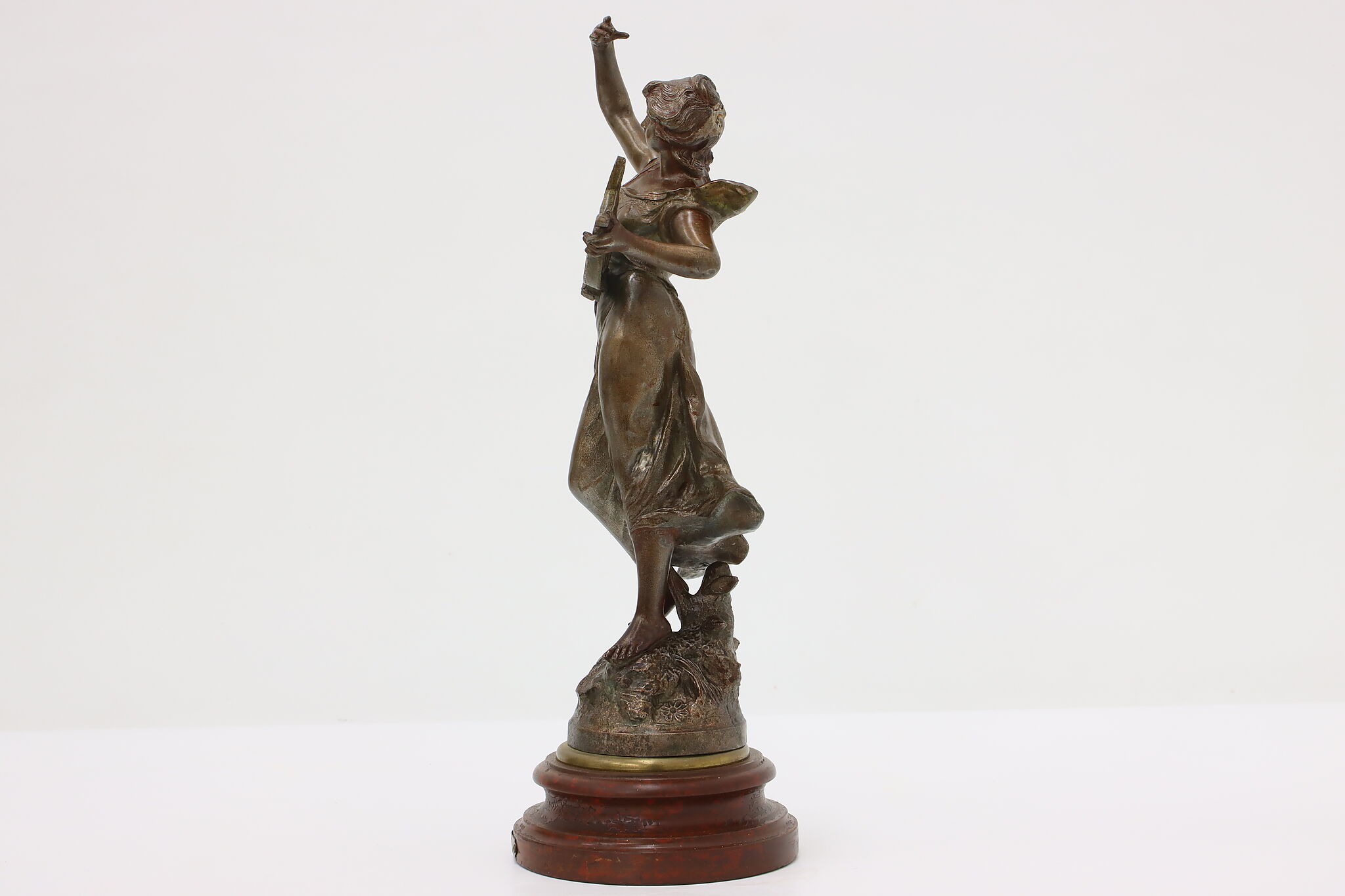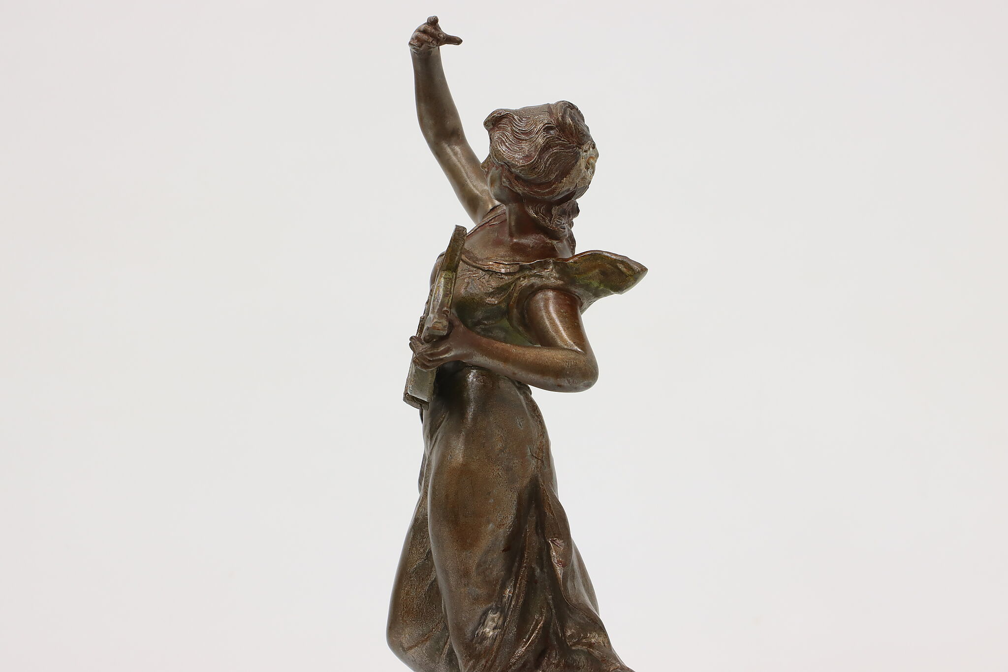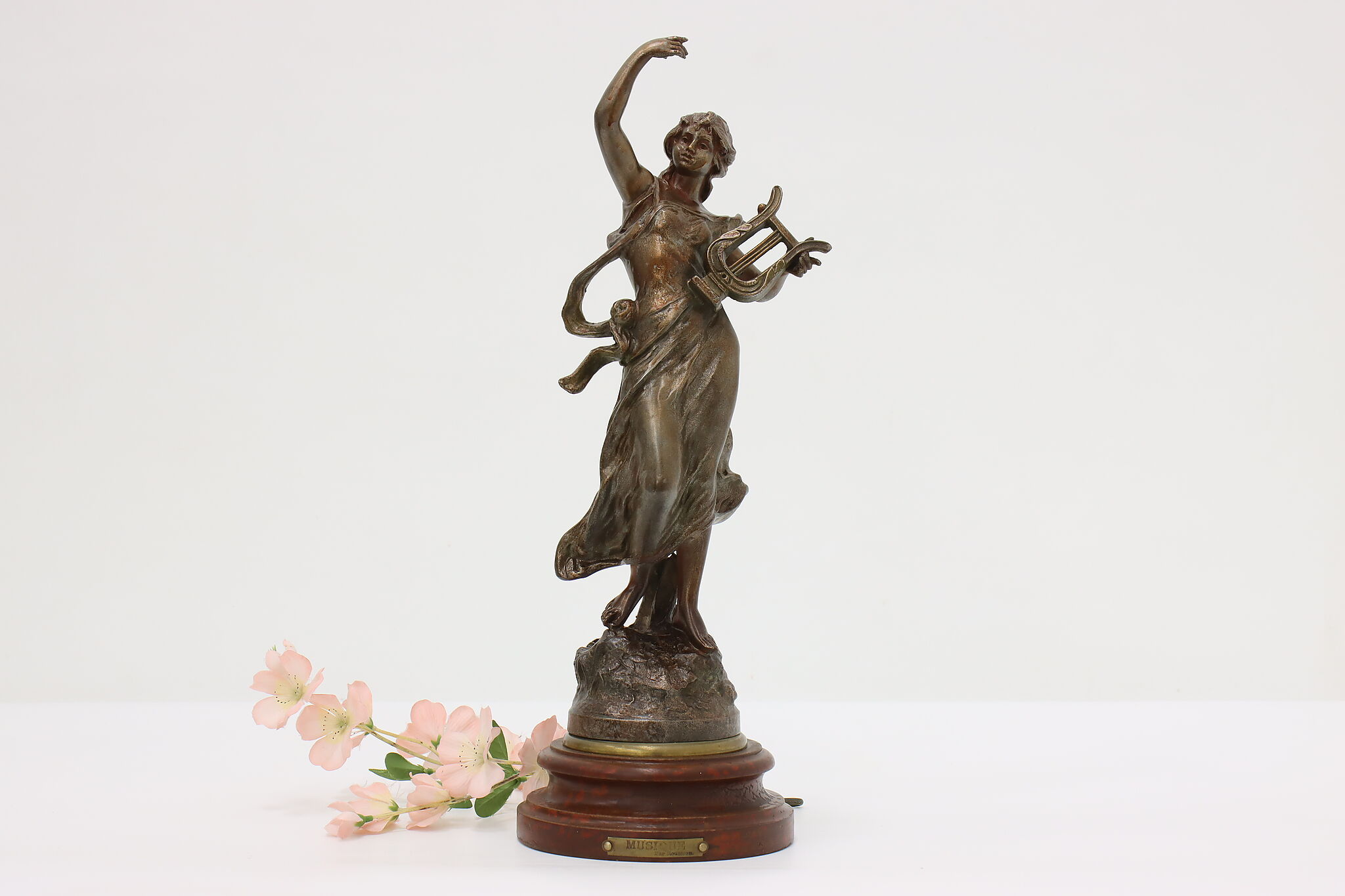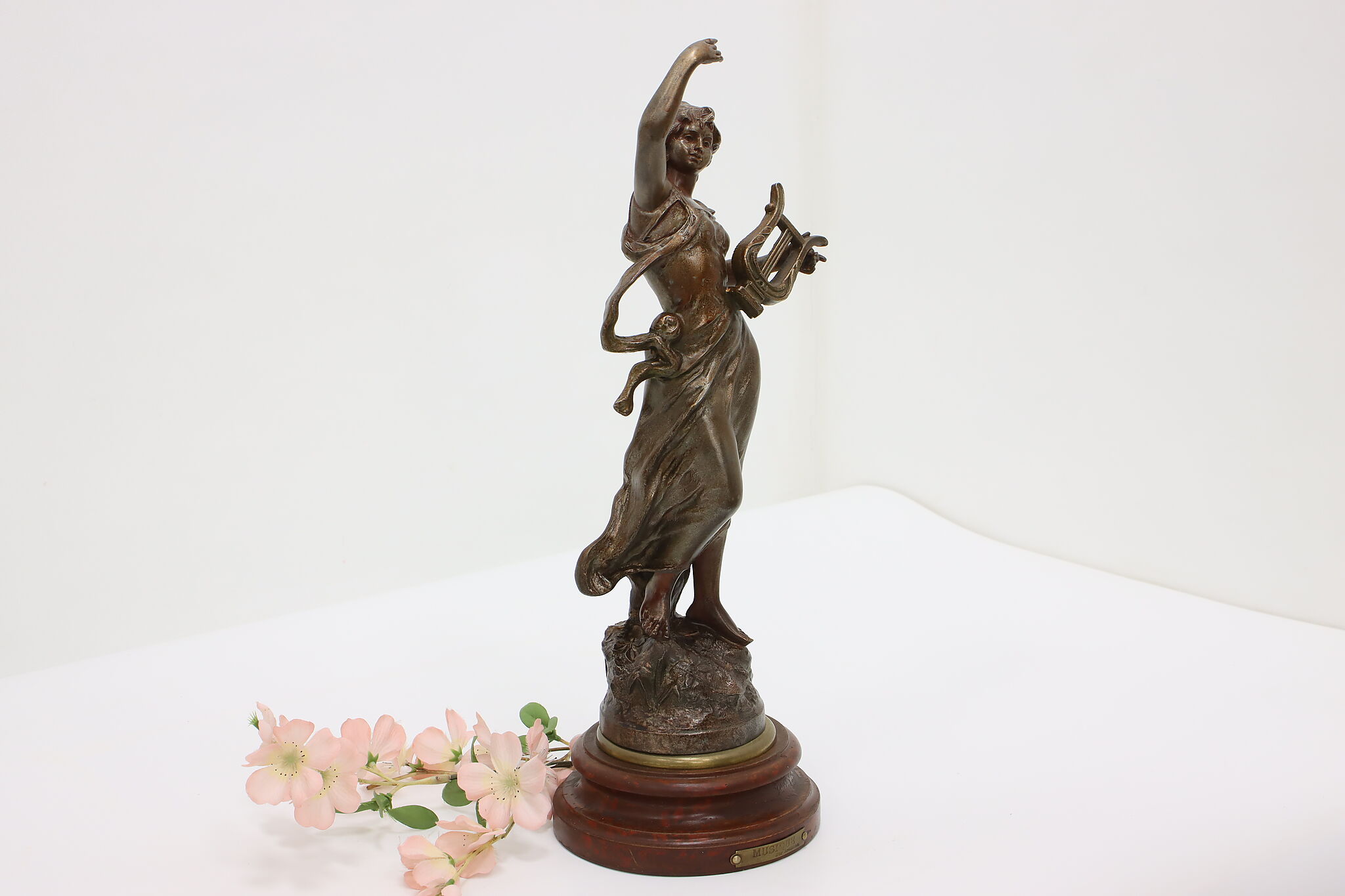 This graceful Art Nouveau sculpture titled "Musique" is a beautiful addition to a music room or library.
