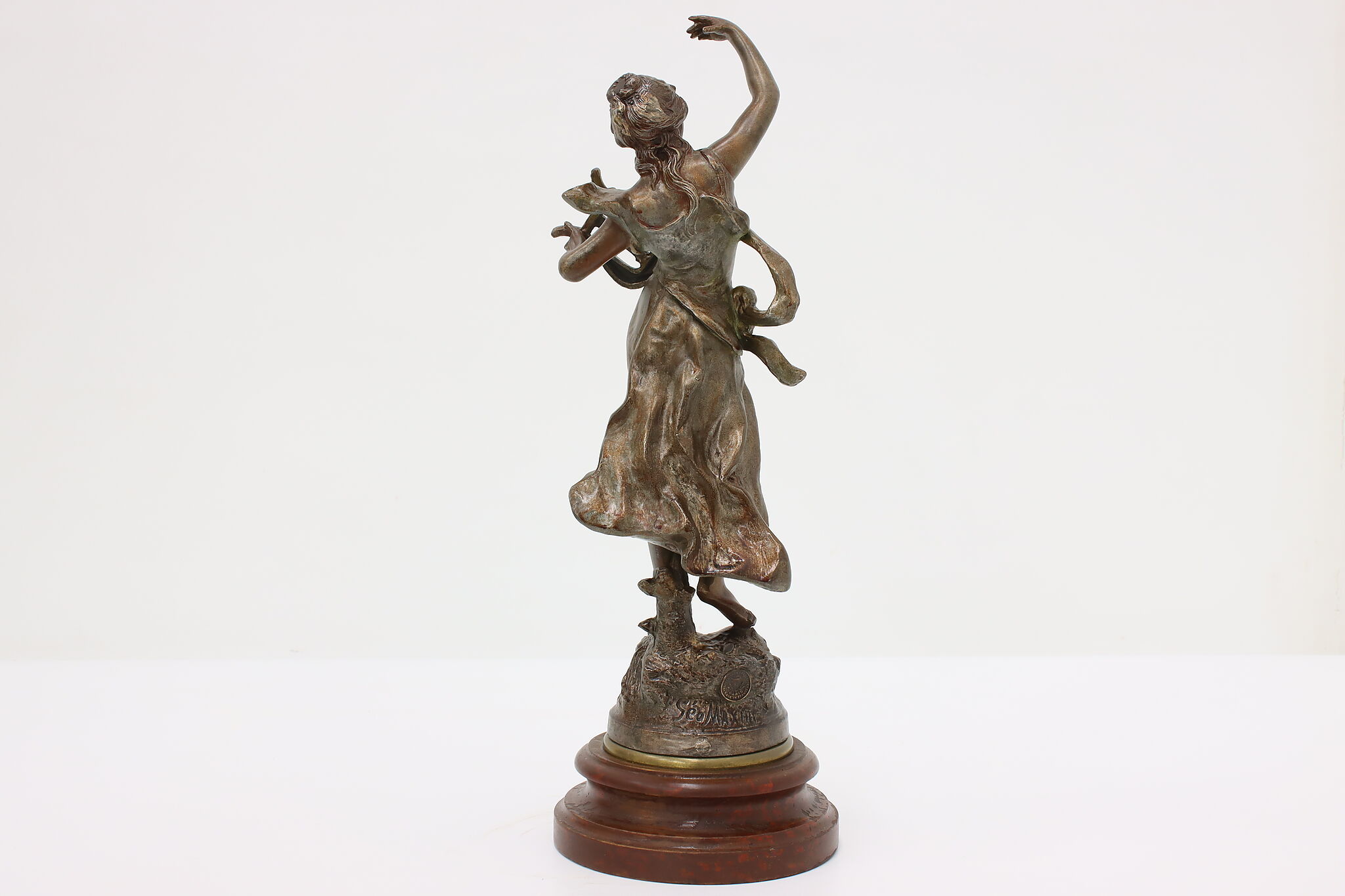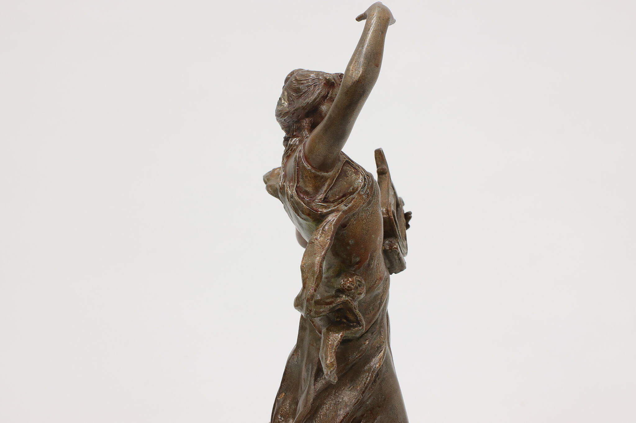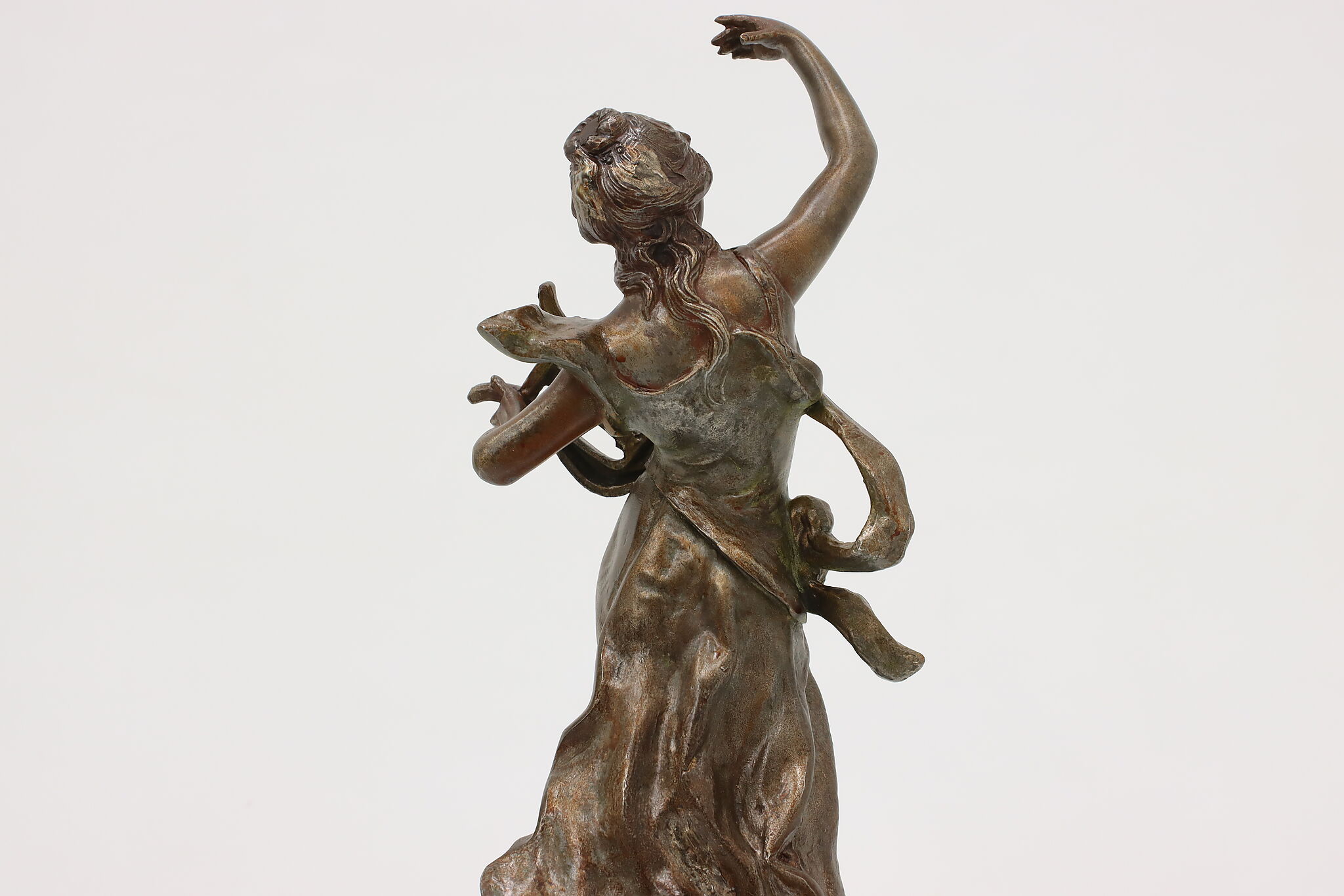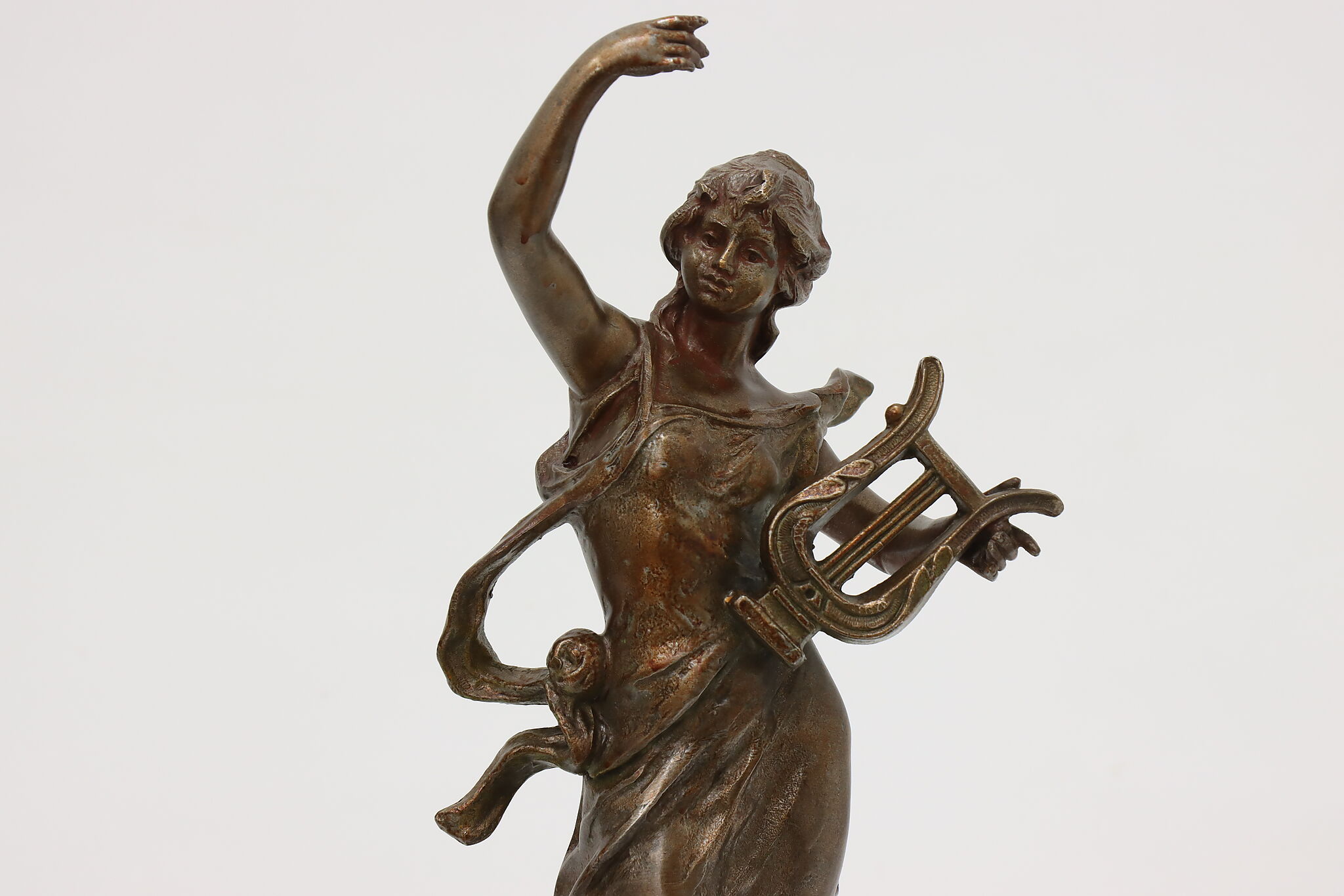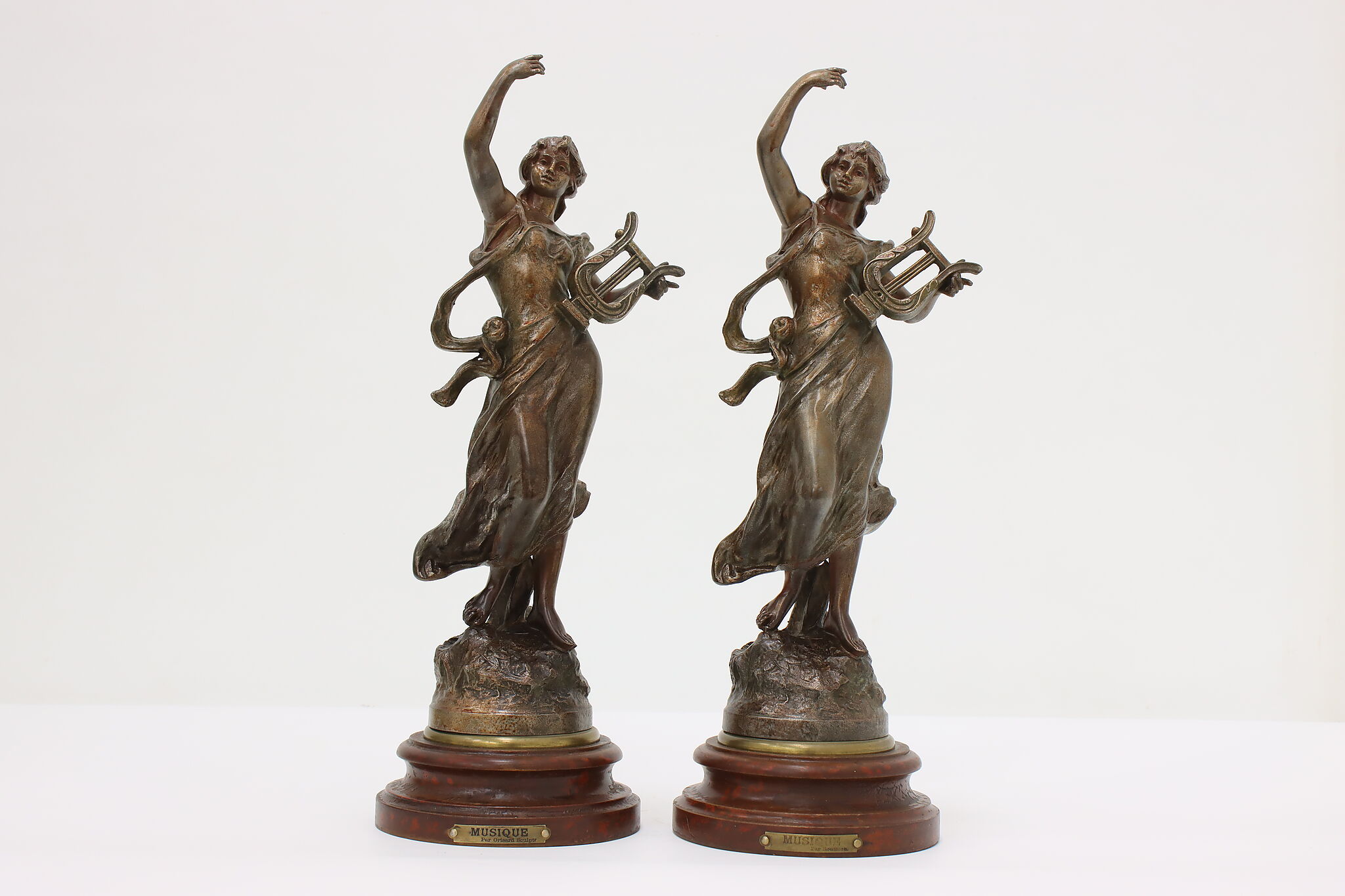 This graceful Art Nouveau sculpture titled "Musique" is a beautiful addition to a music room or library.