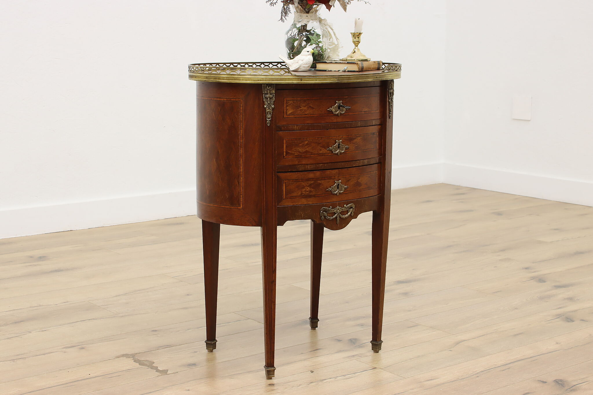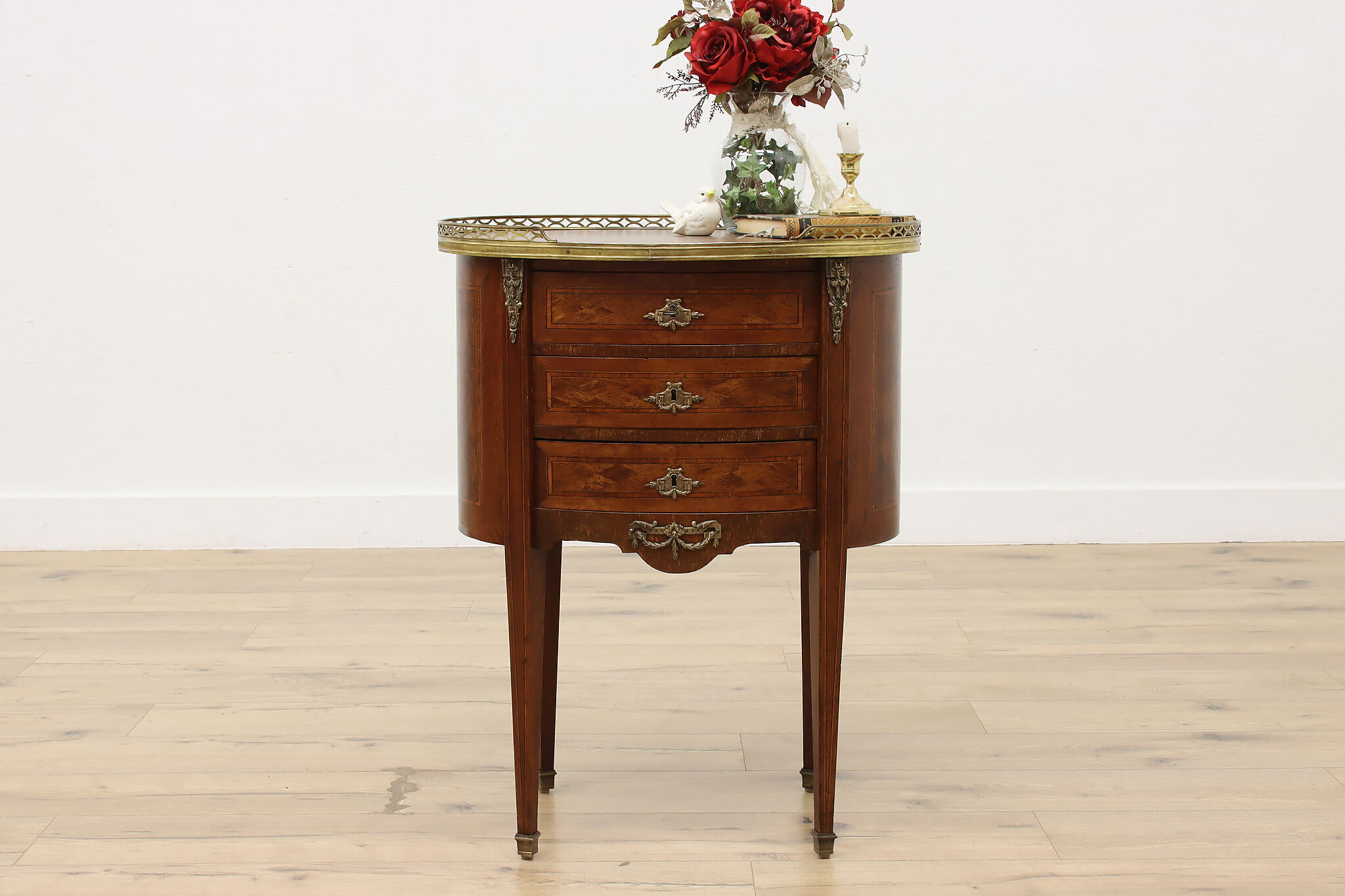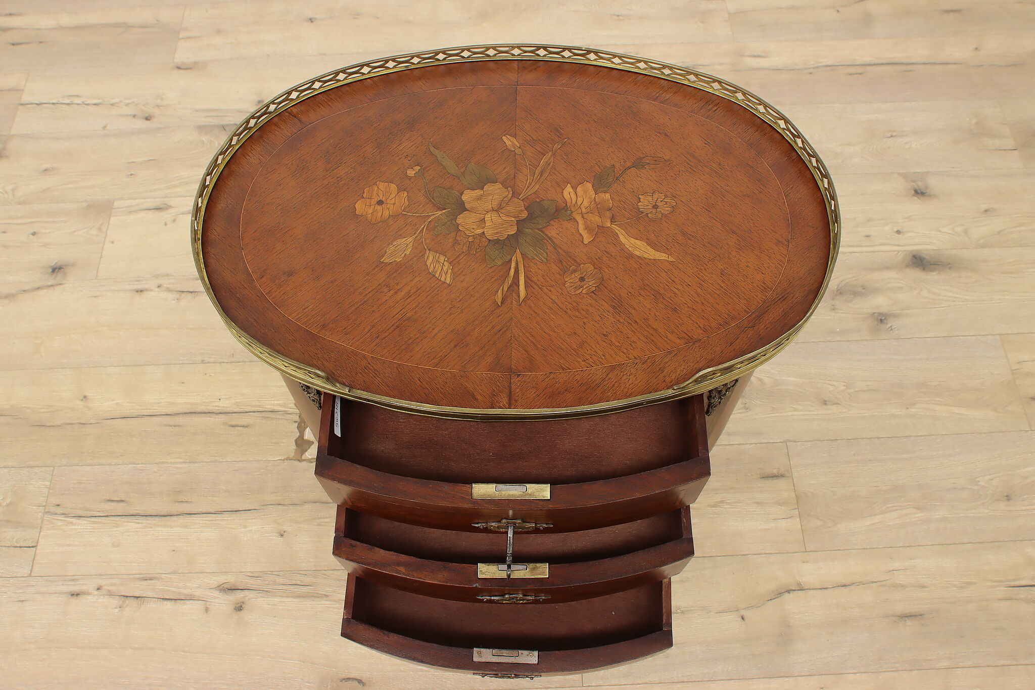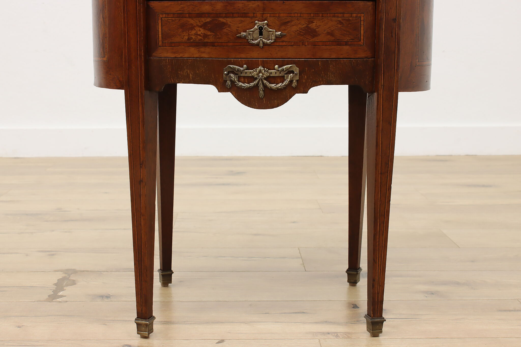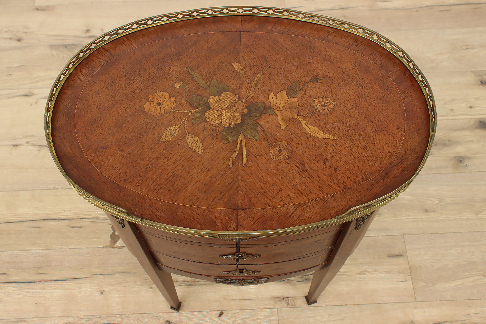 This gorgeous oval shaped nightstand or end table is a truly beautiful piece from France.