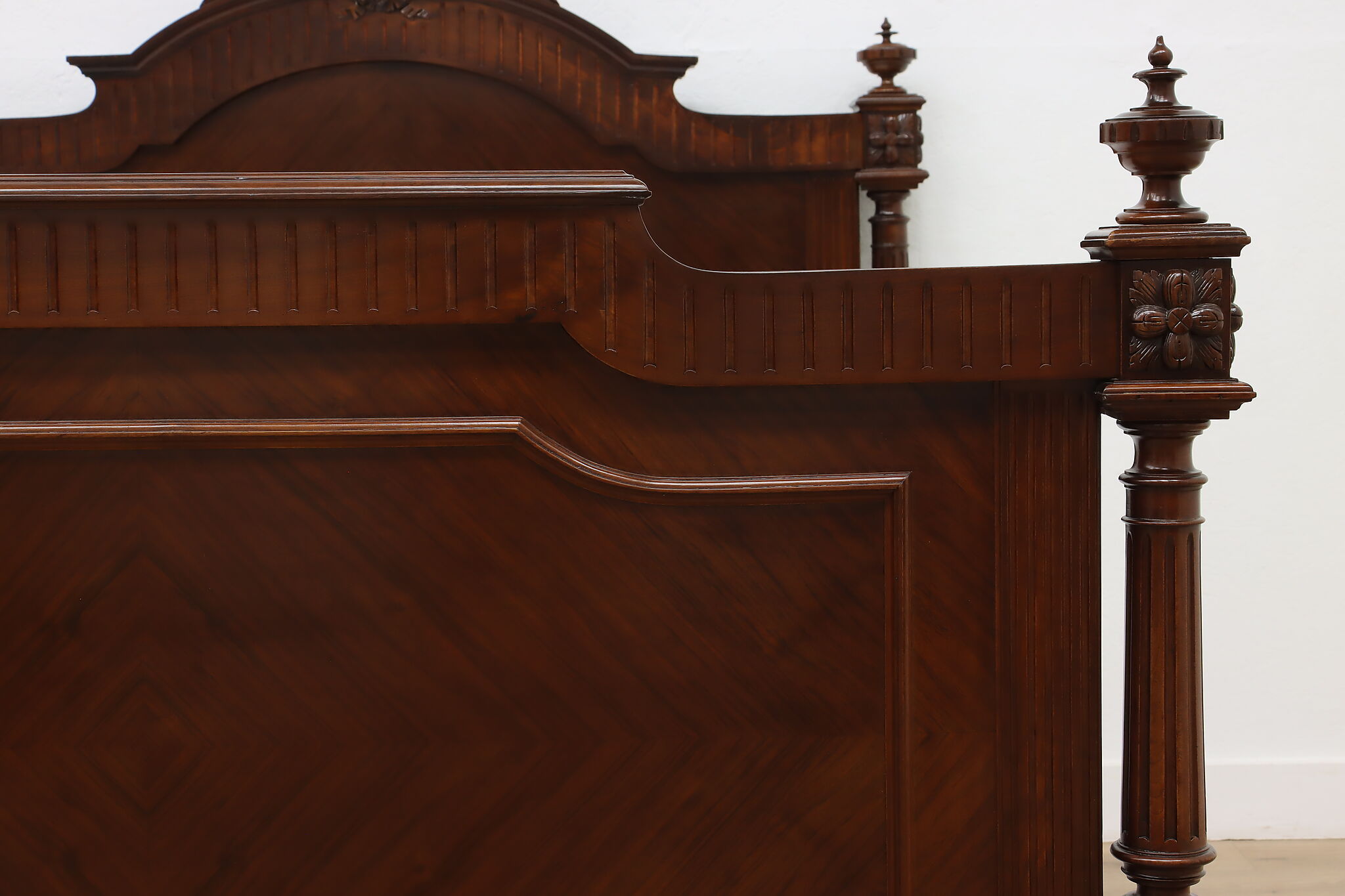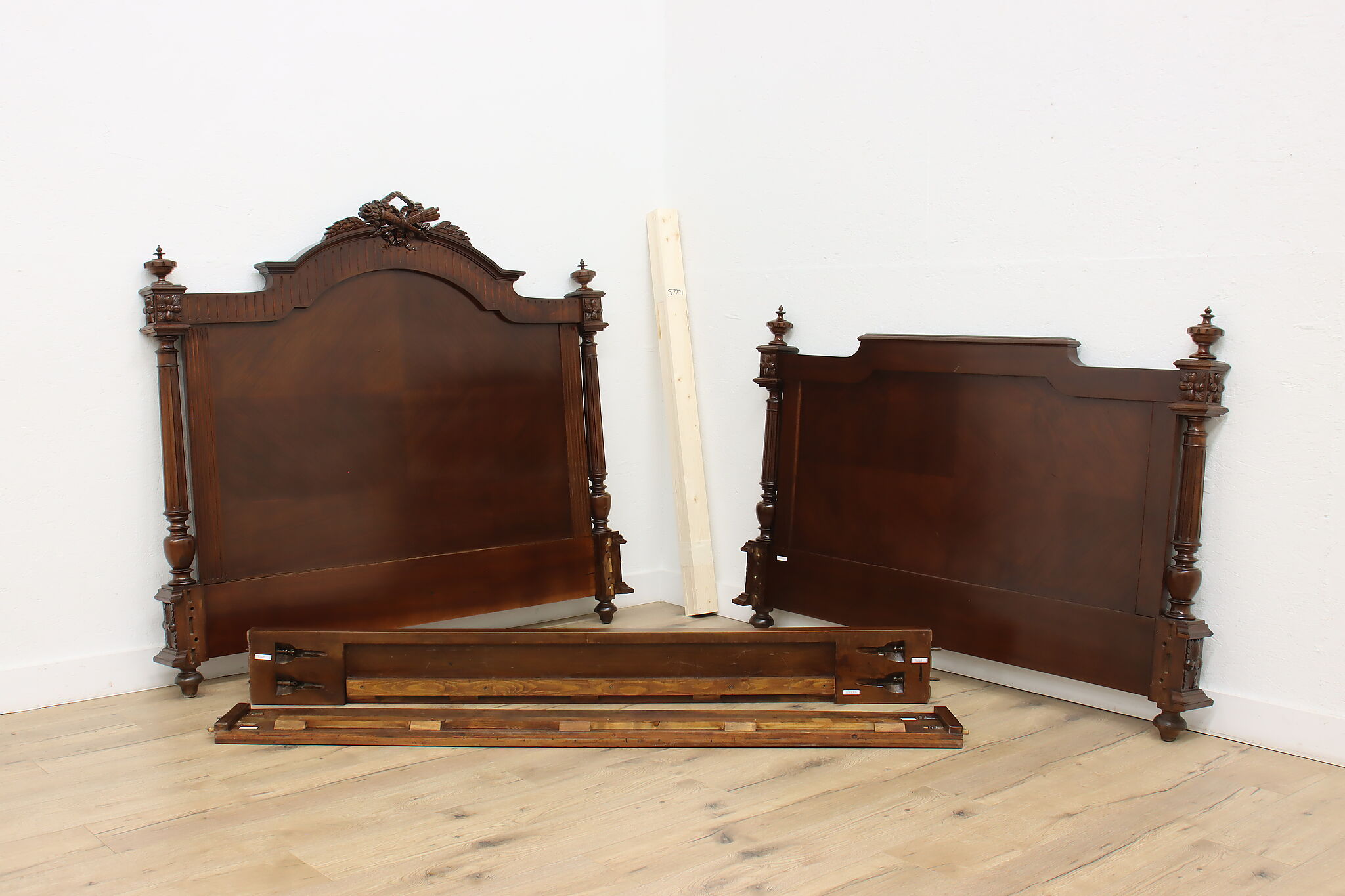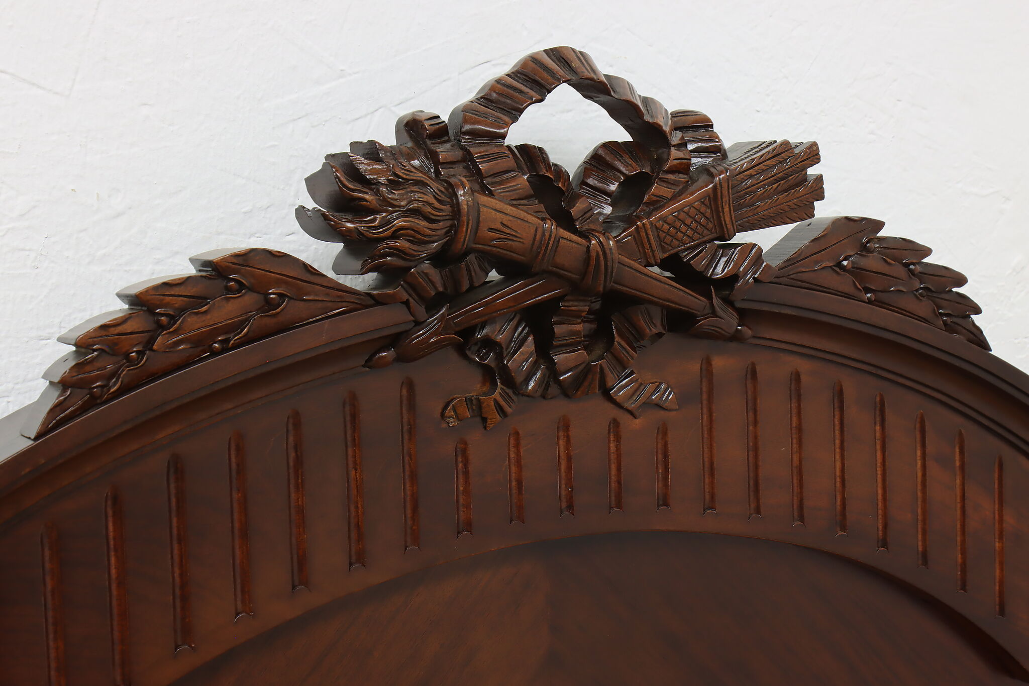This gorgeous French bed has a beautifully carved crossed arrow quiver and torch crest to represent love. Perhaps this bed was commissioned for a newly wed couple!