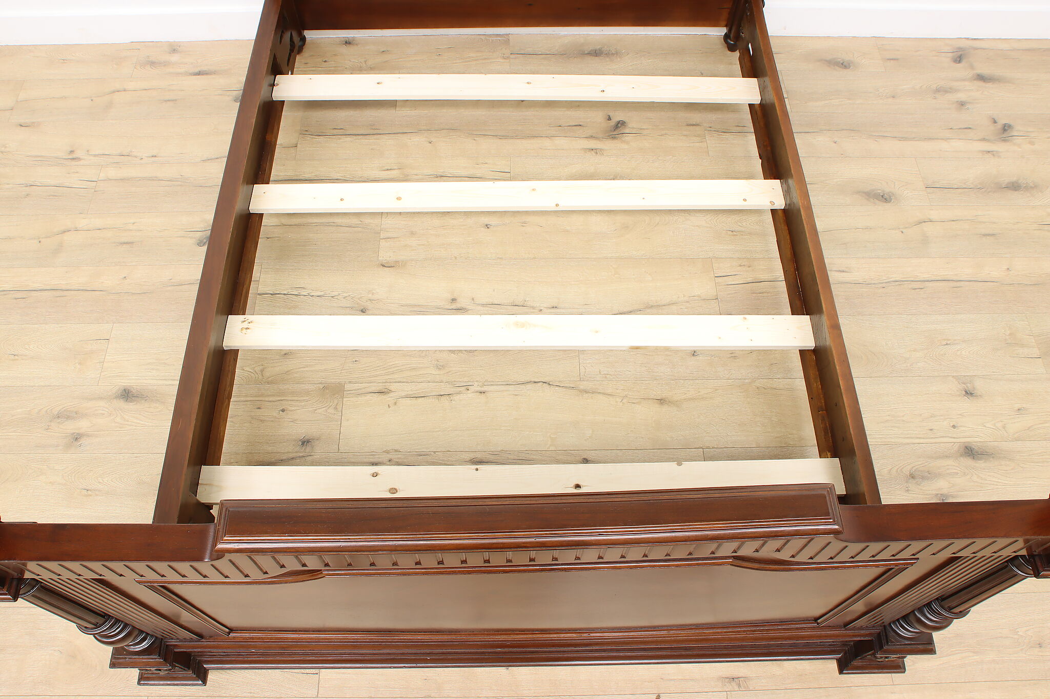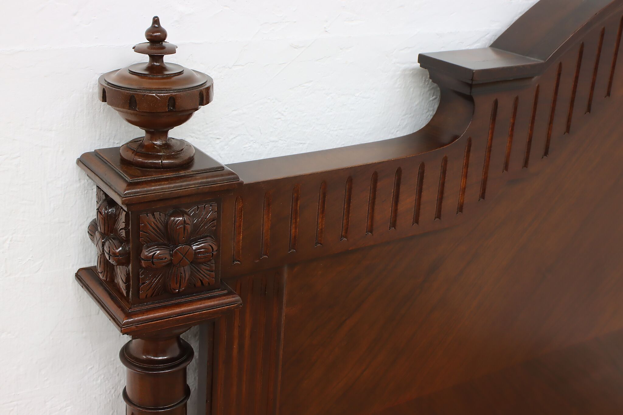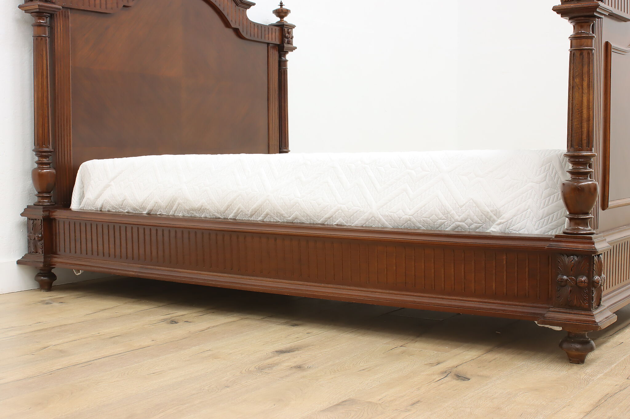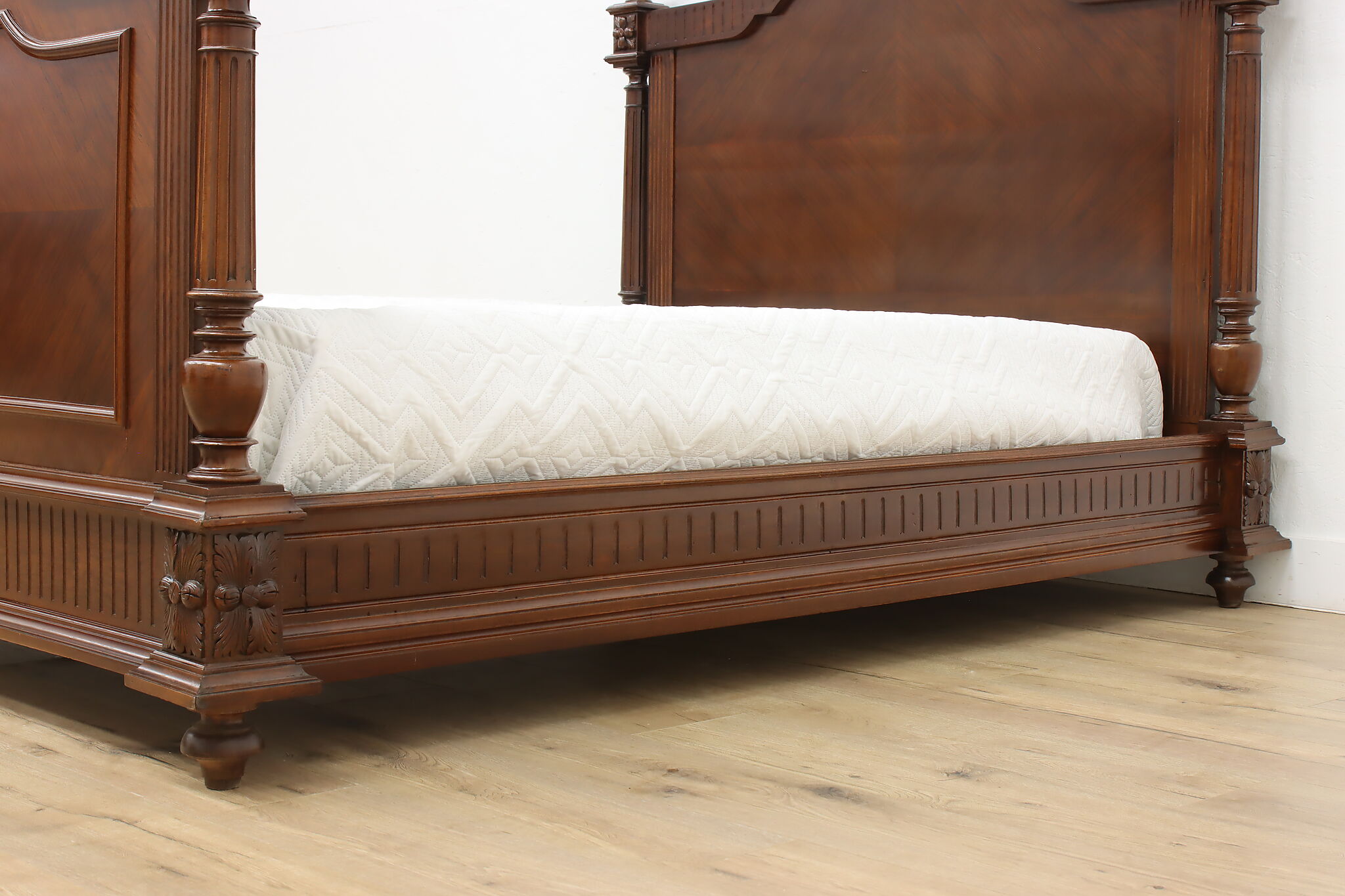 This gorgeous French bed has a beautifully carved crossed arrow quiver and torch crest to represent love. Perhaps this bed was commissioned for a newly wed couple!
