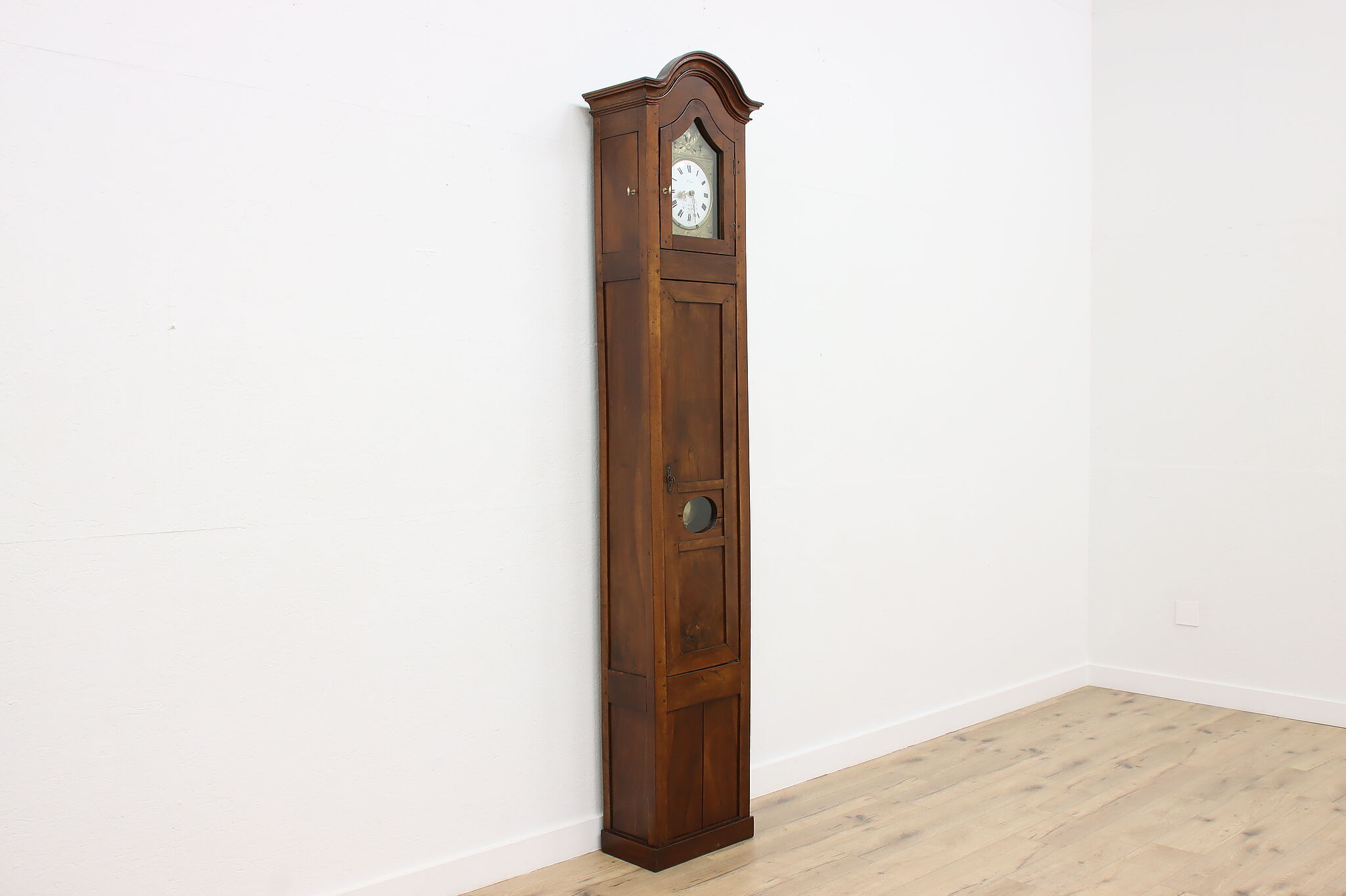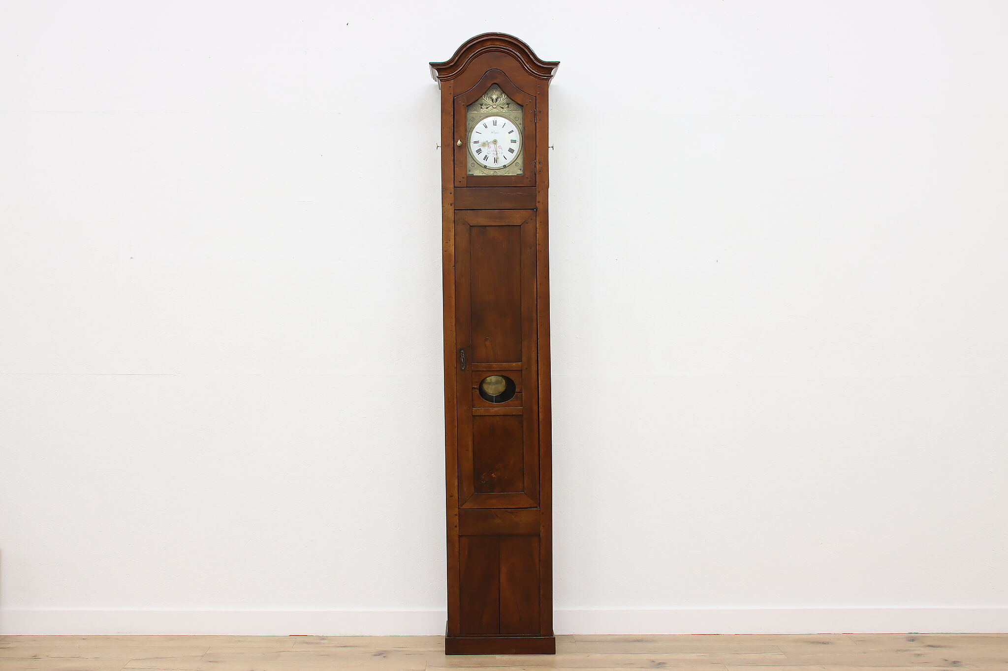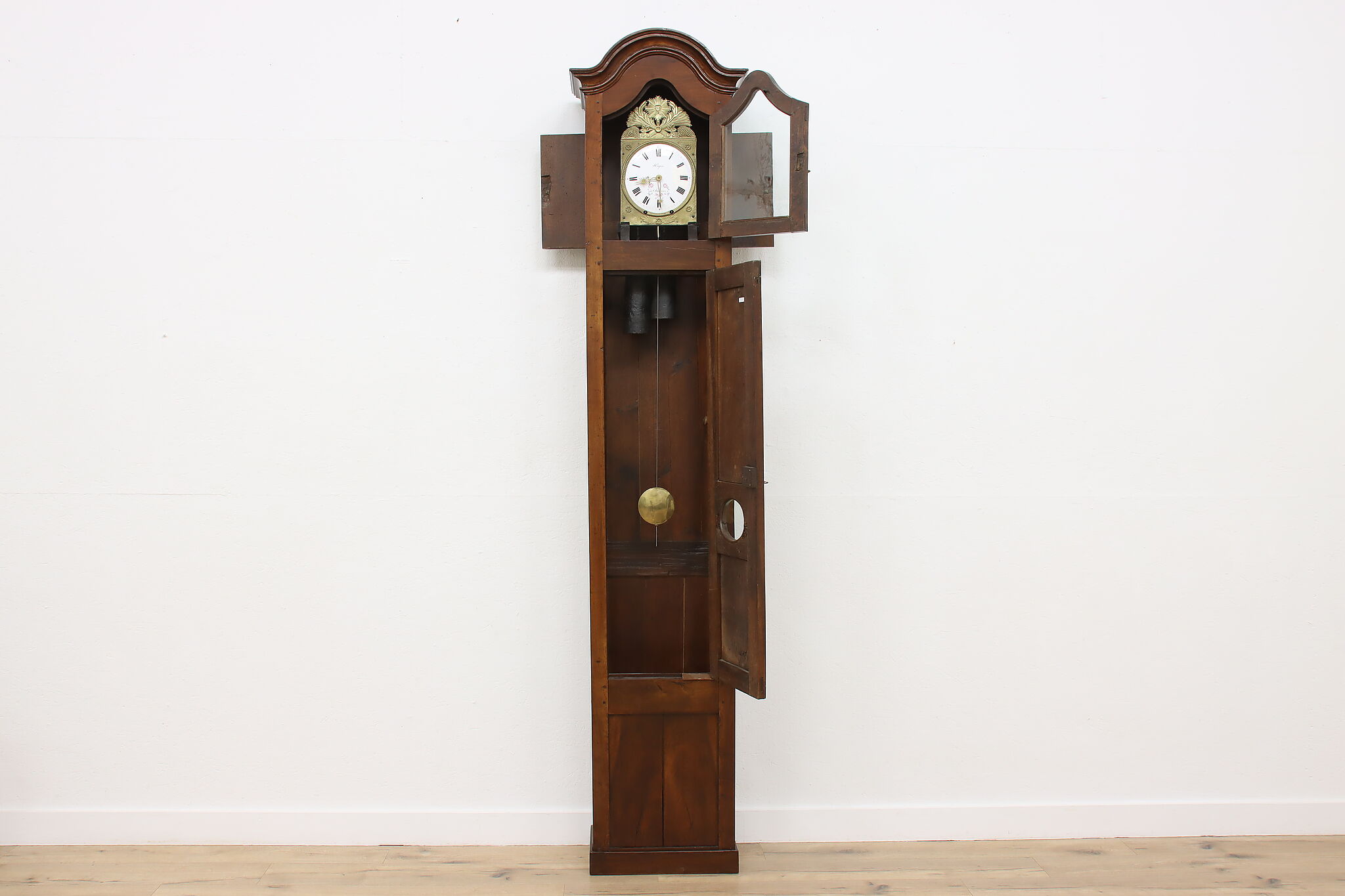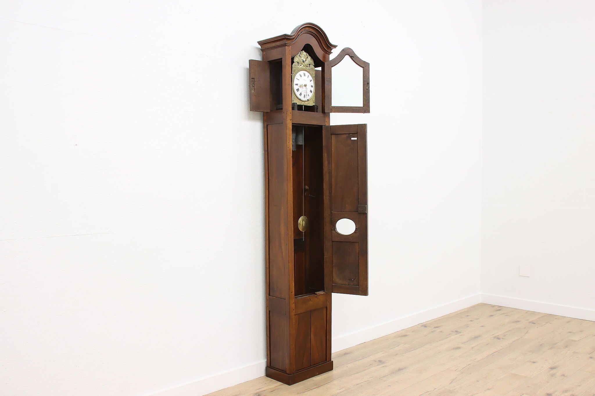At an astonishing nine feet tall, this French grandfather or tall case clock also runs for a full month on a single winding!