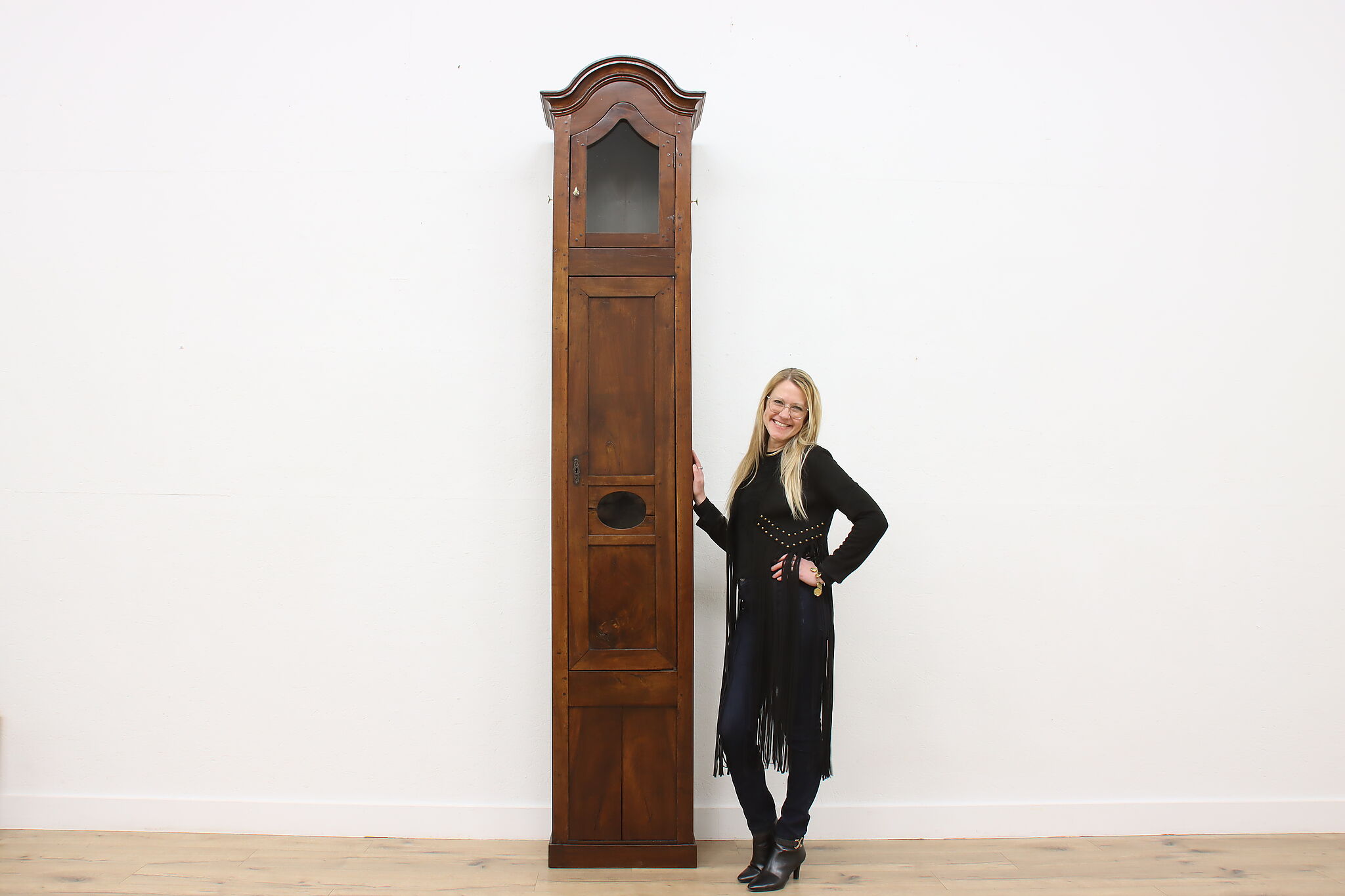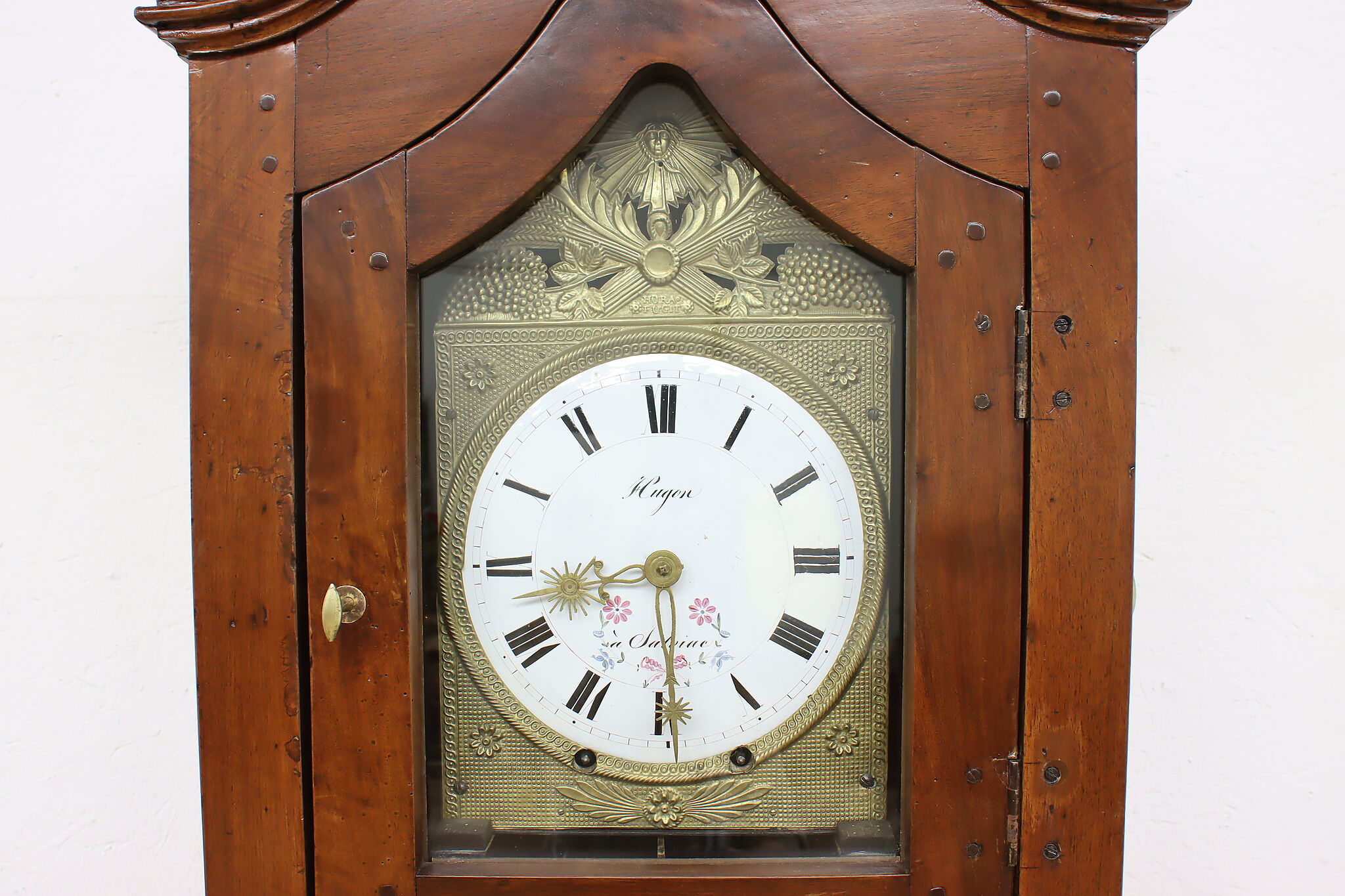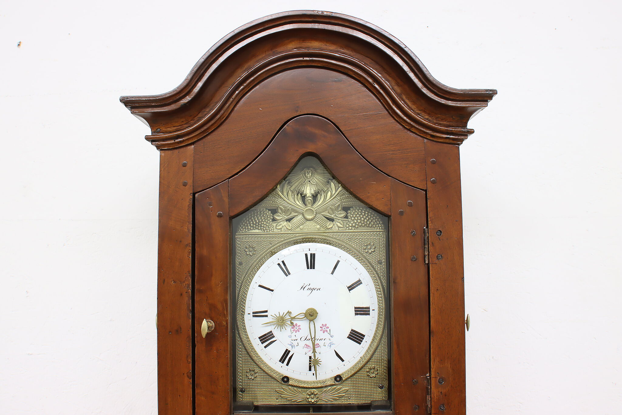 At an astonishing nine feet tall, this French grandfather or tall case clock also runs for a full month on a single winding!