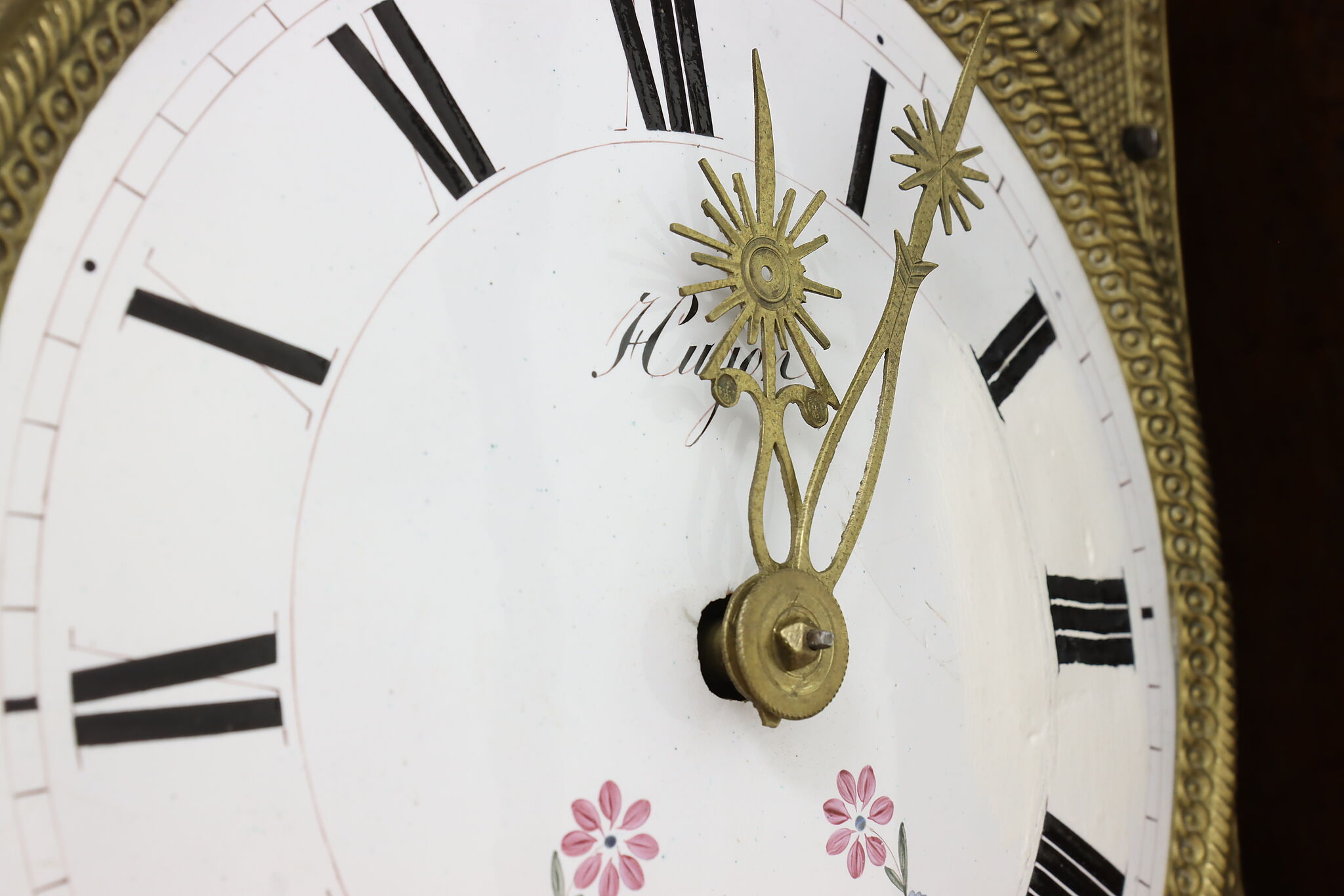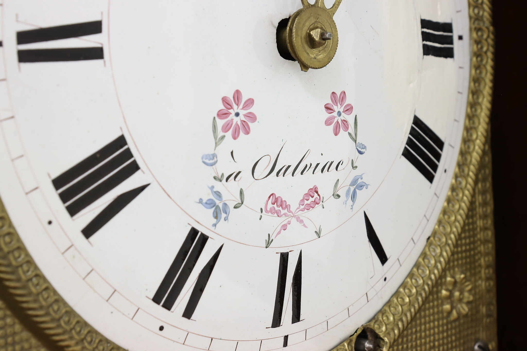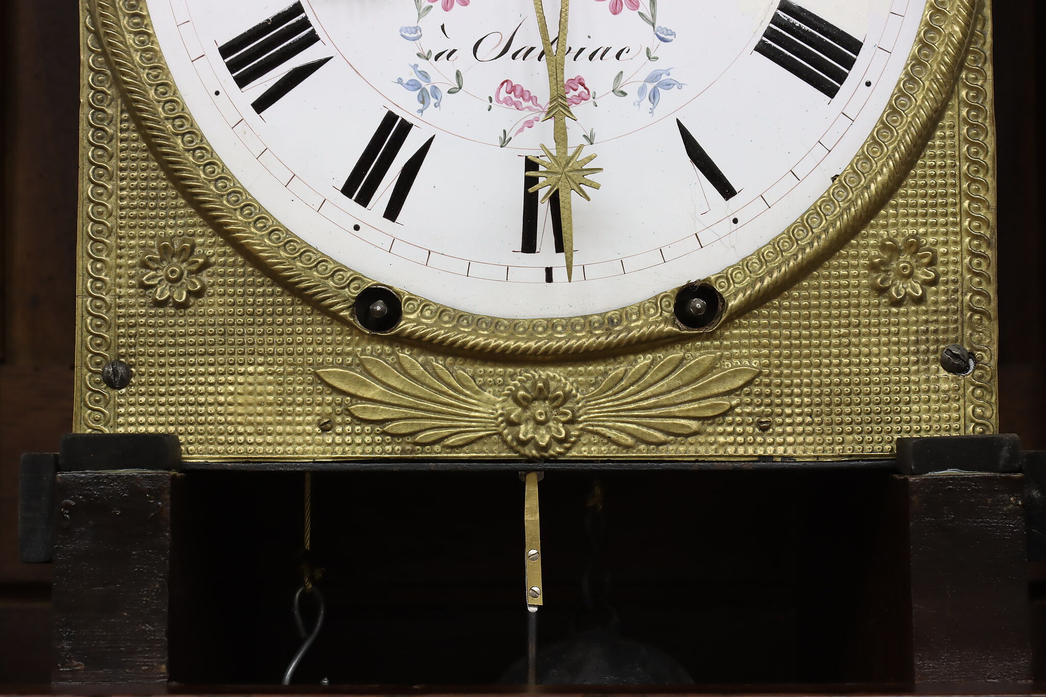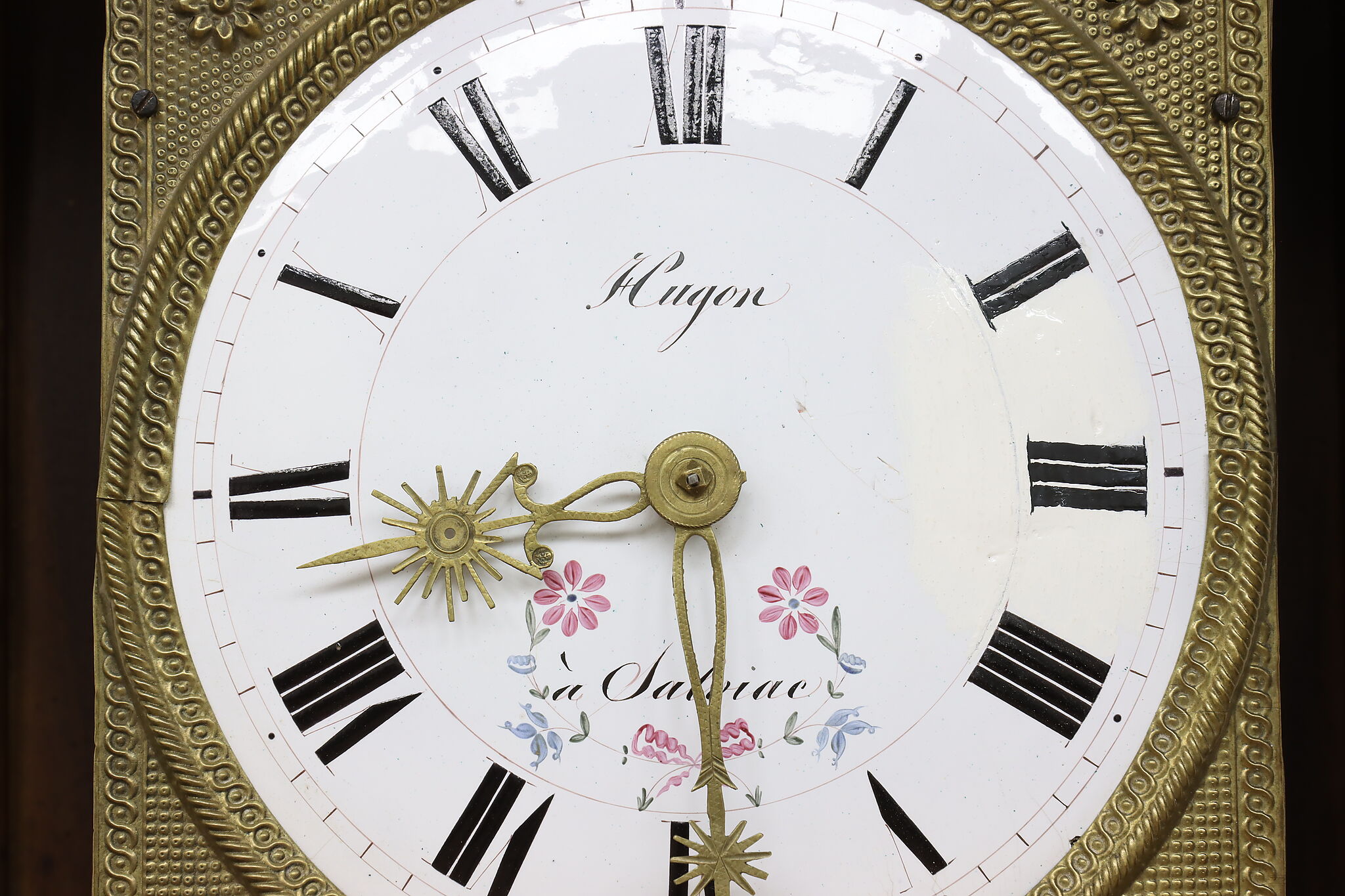 At an astonishing nine feet tall, this French grandfather or tall case clock also runs for a full month on a single winding!