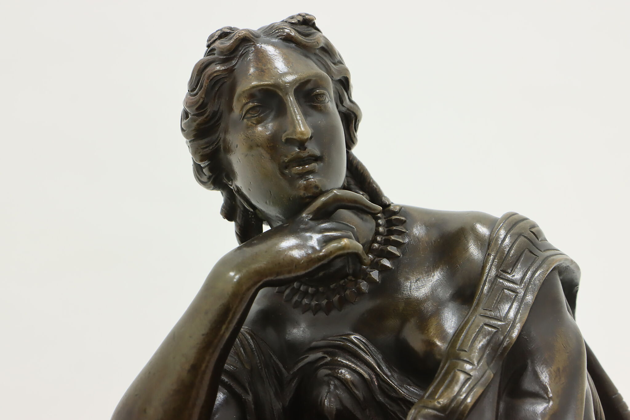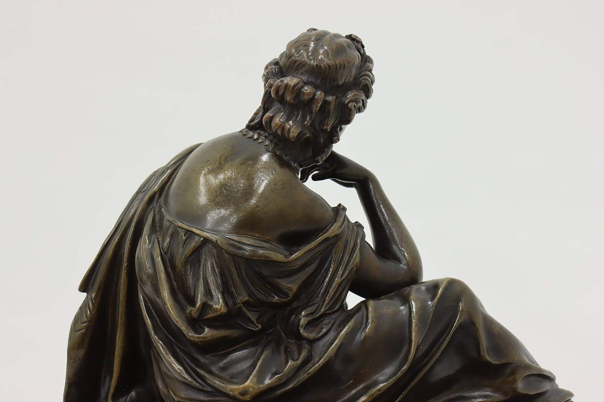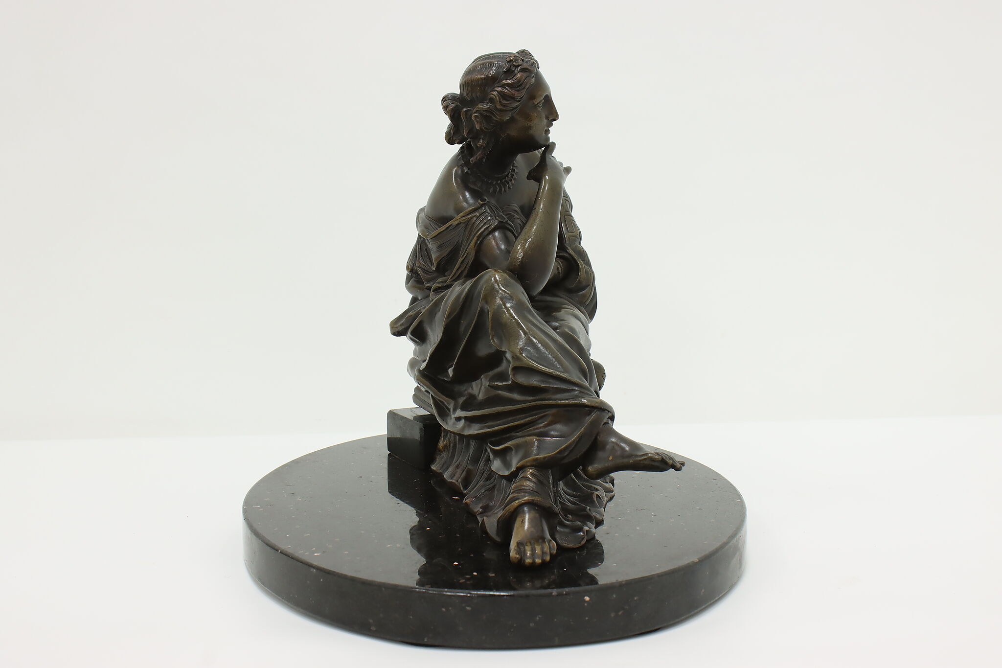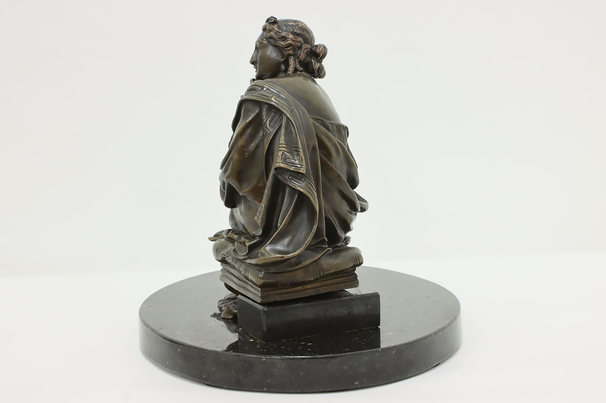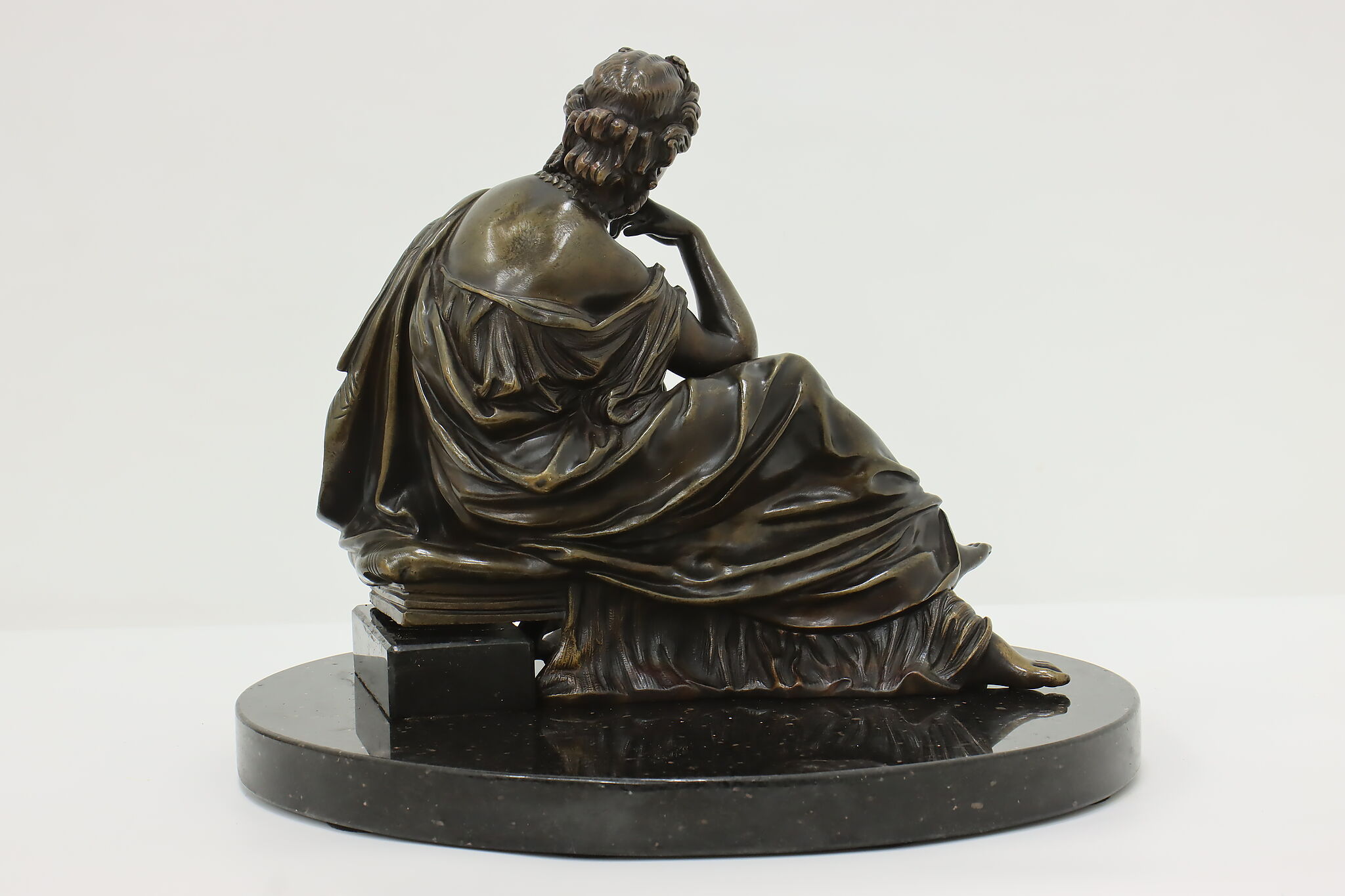 Place this sculpture of a classical woman contemplating the mysteries of the universe in your library or office to inspire your own deep thoughts.