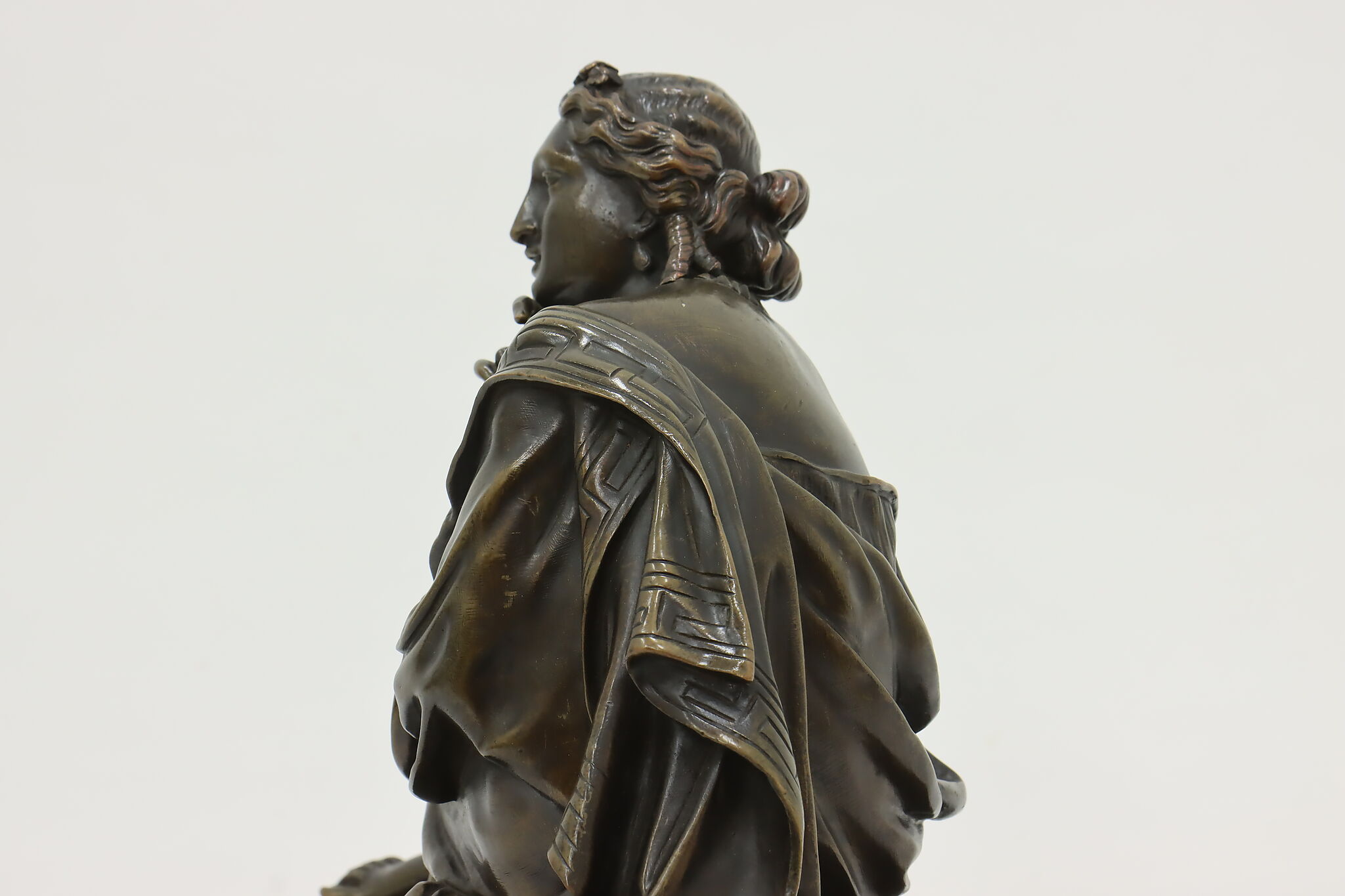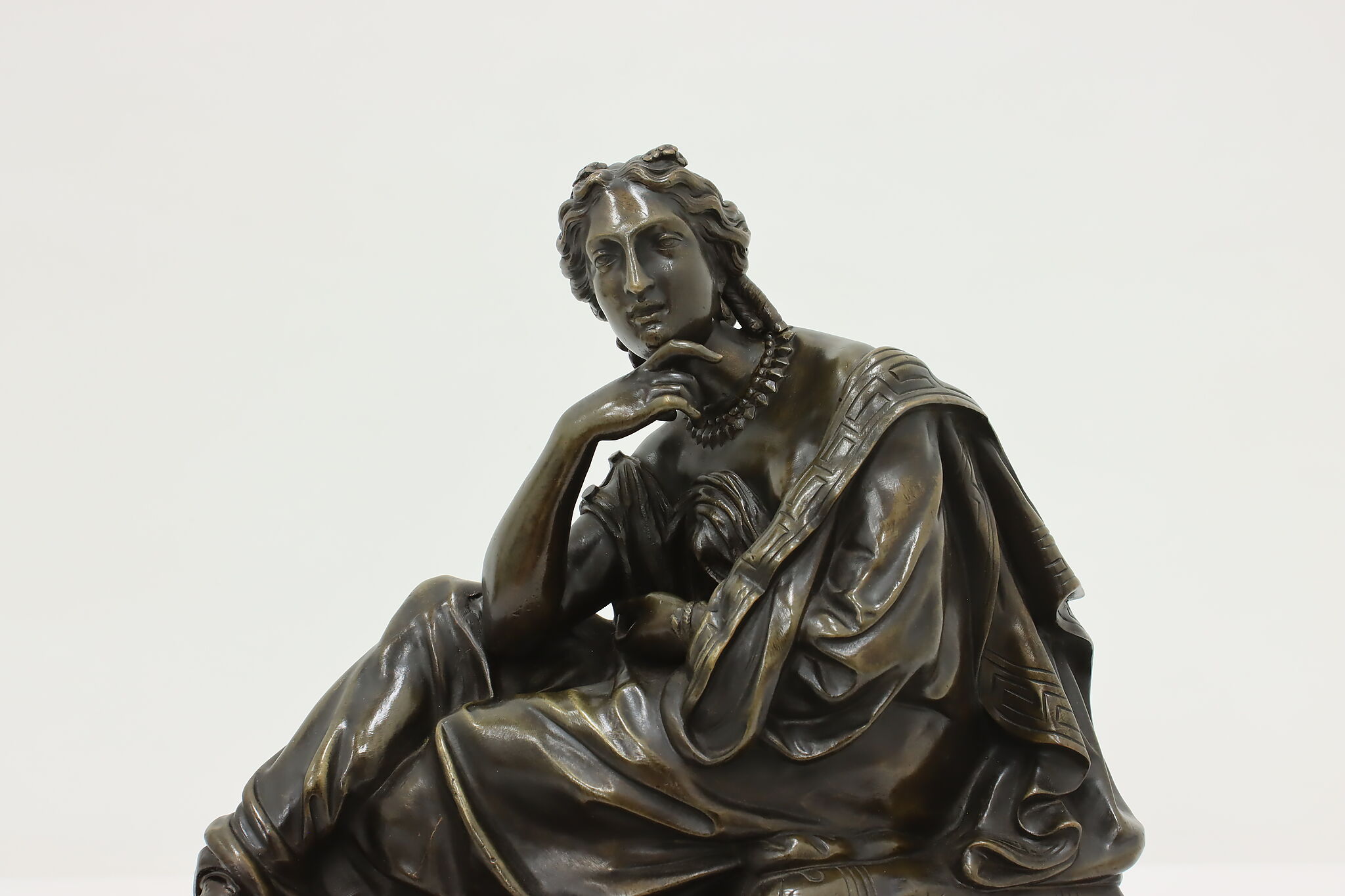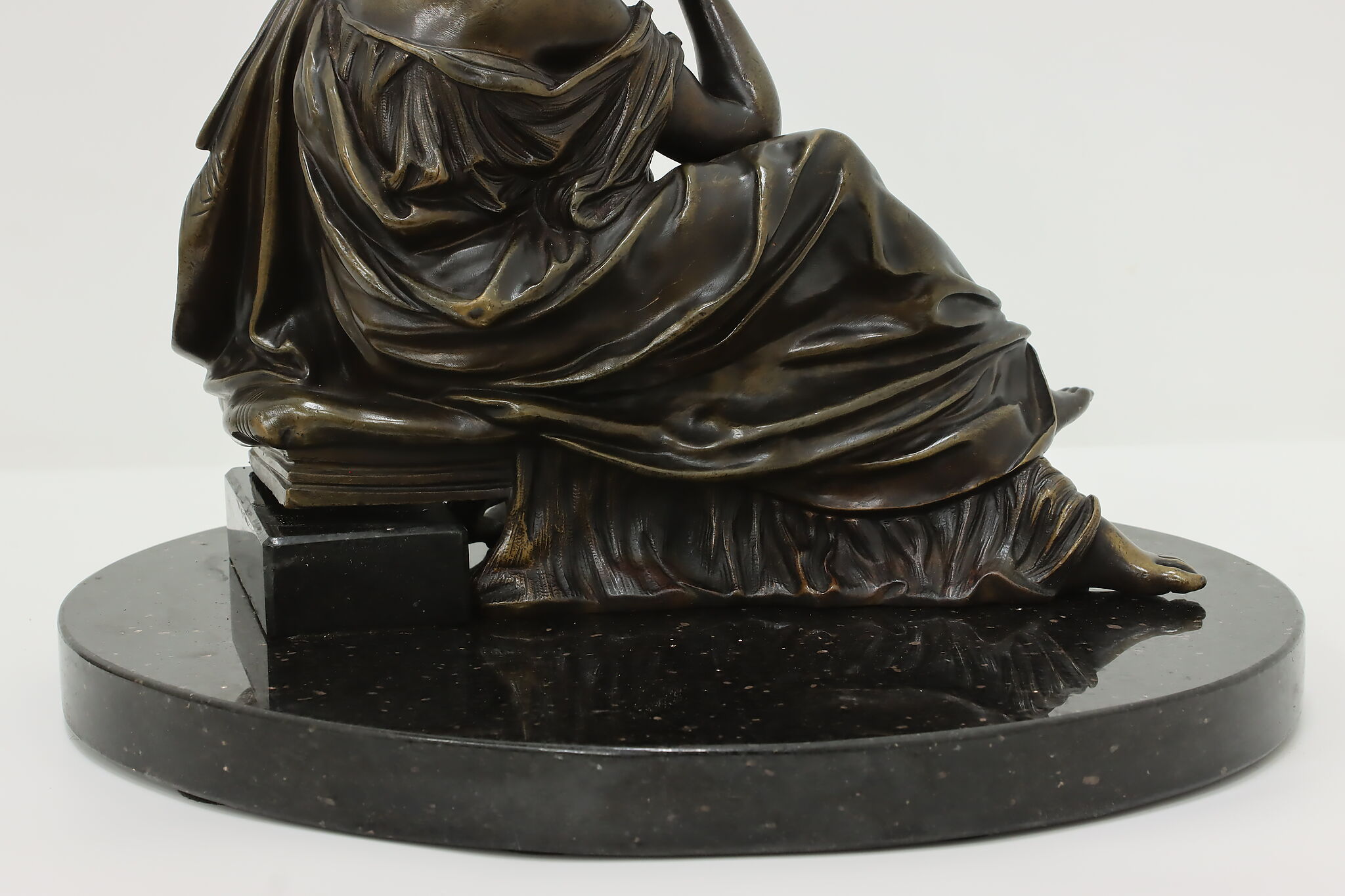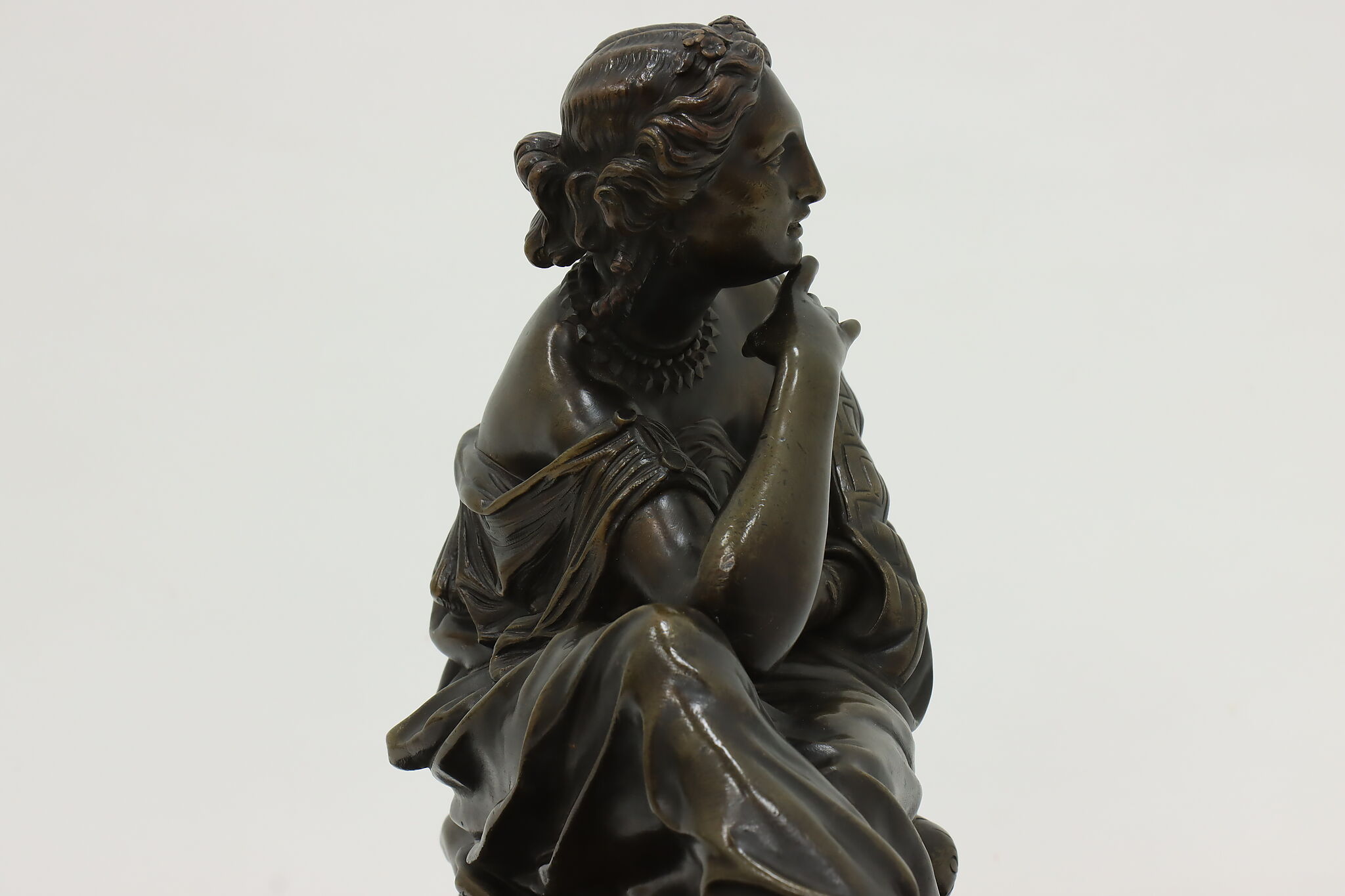 Place this sculpture of a classical woman contemplating the mysteries of the universe in your library or office to inspire your own deep thoughts.