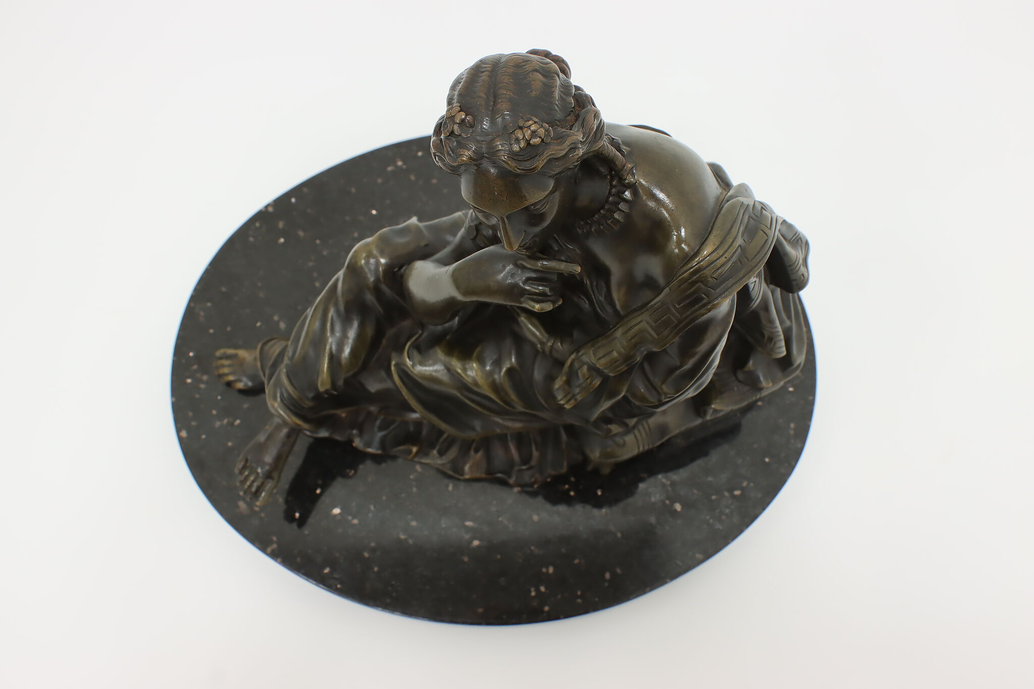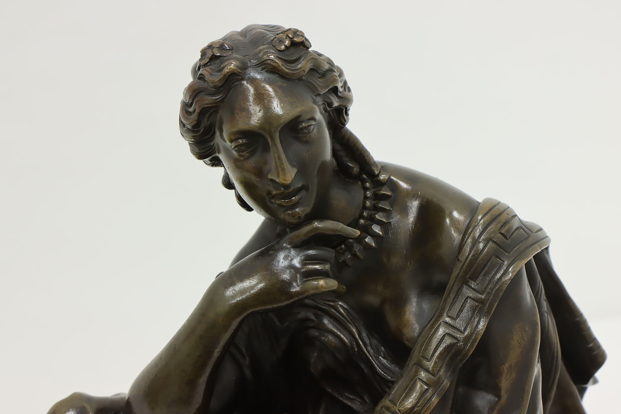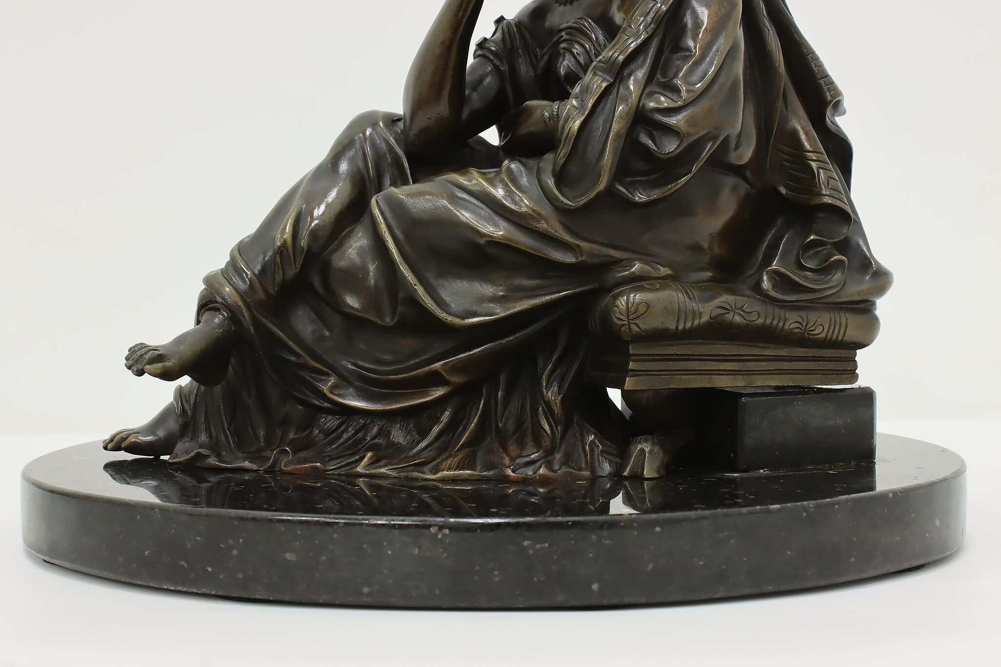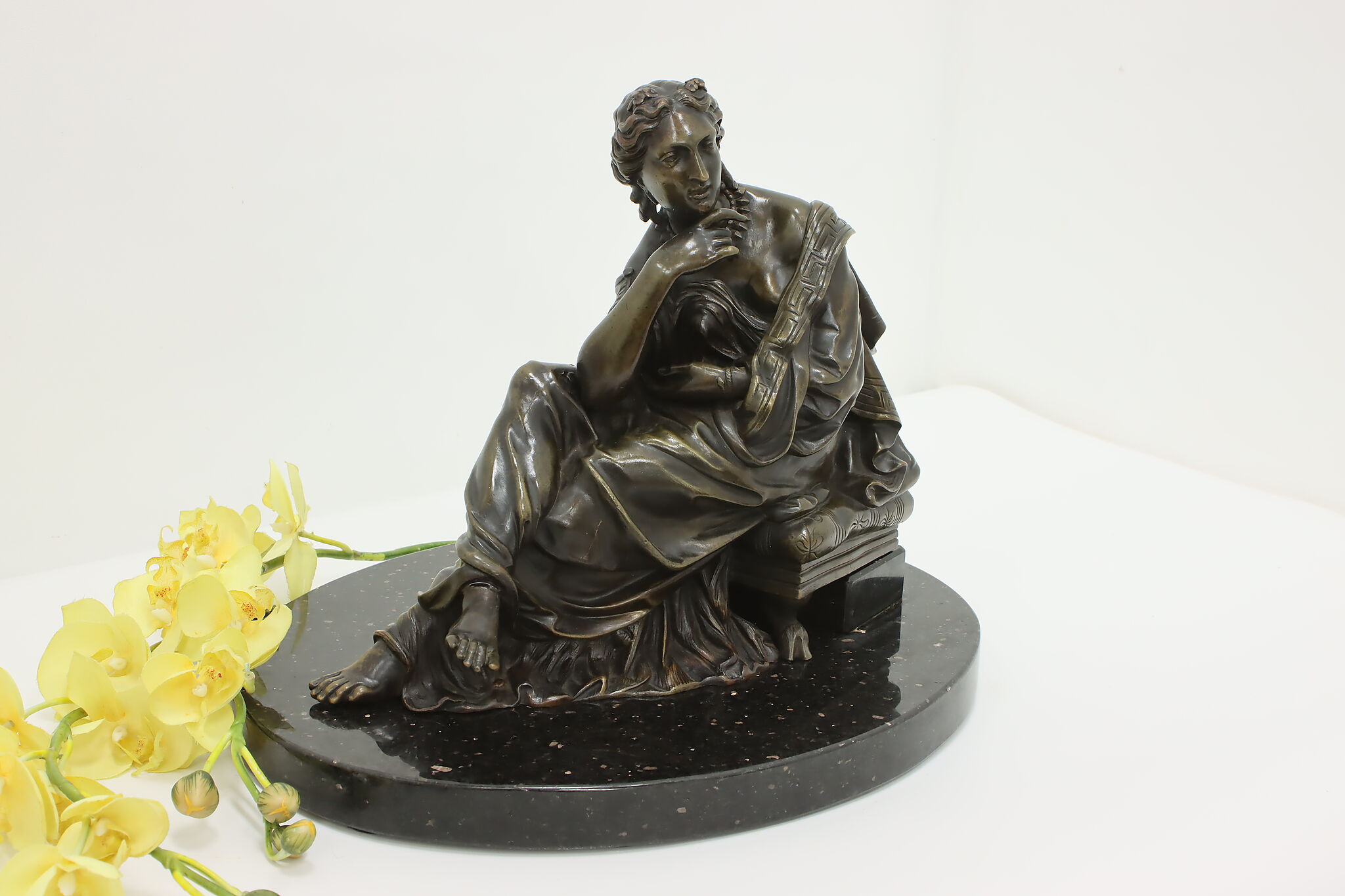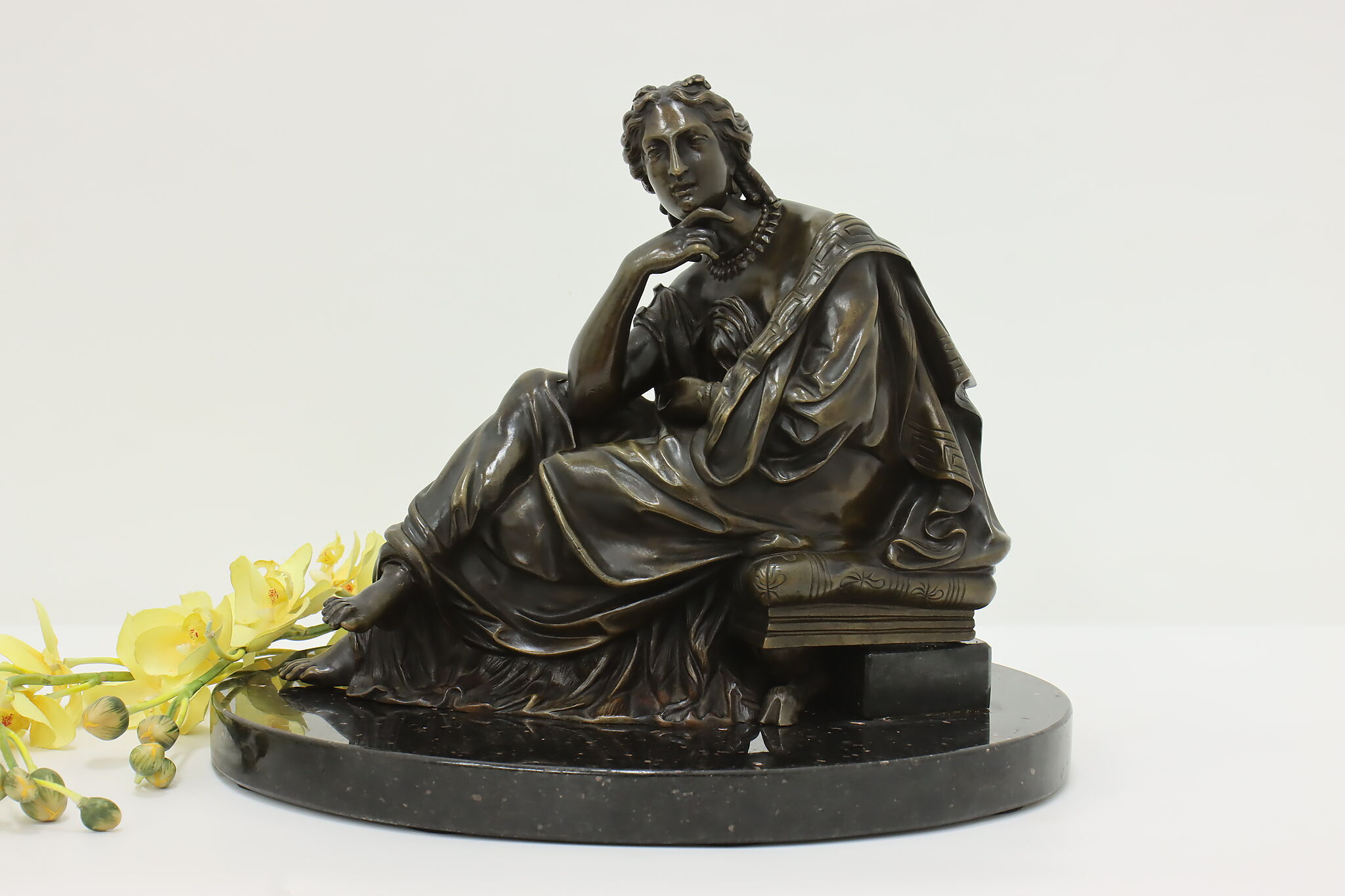 Place this sculpture of a classical woman contemplating the mysteries of the universe in your library or office to inspire your own deep thoughts.