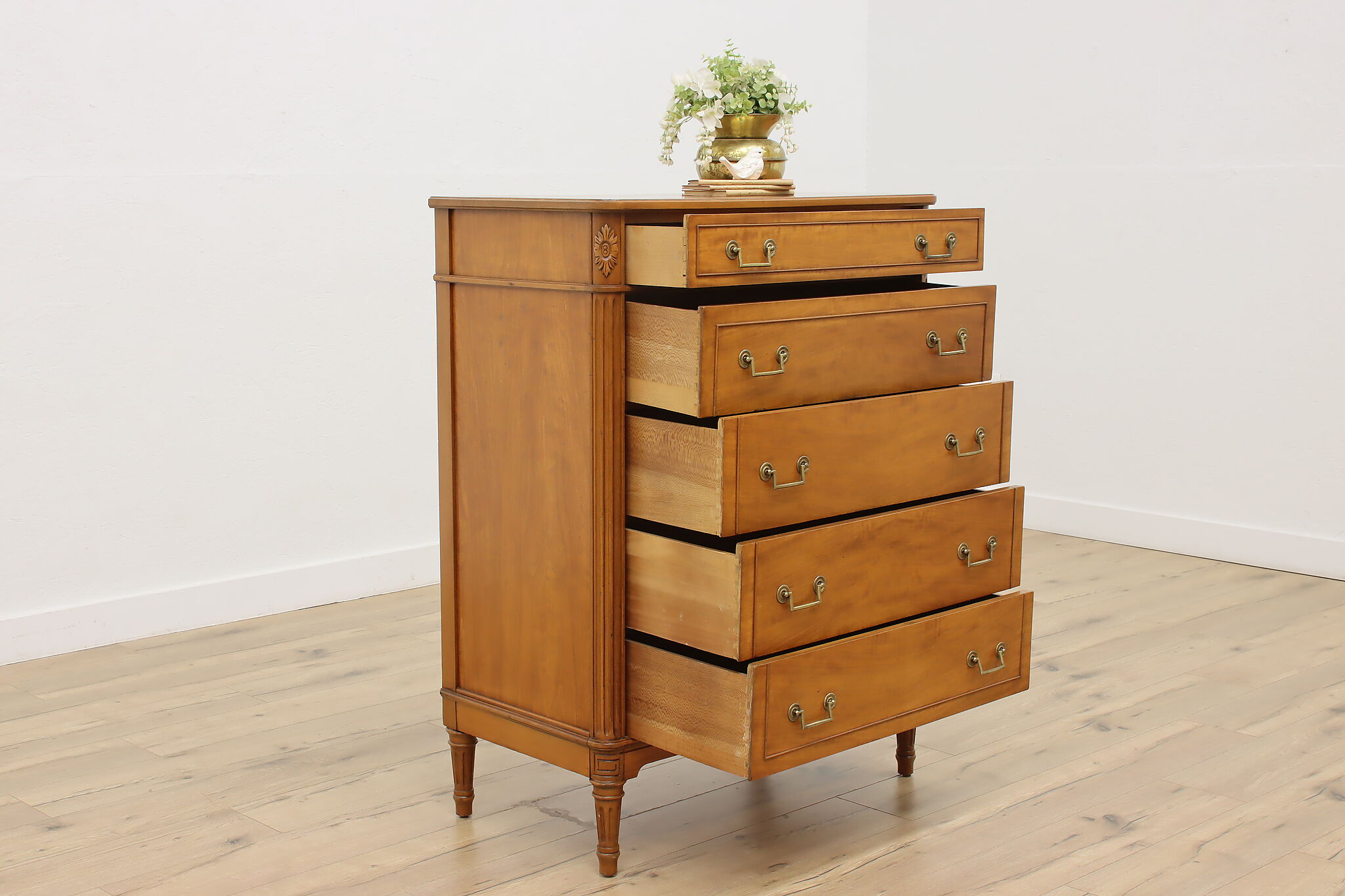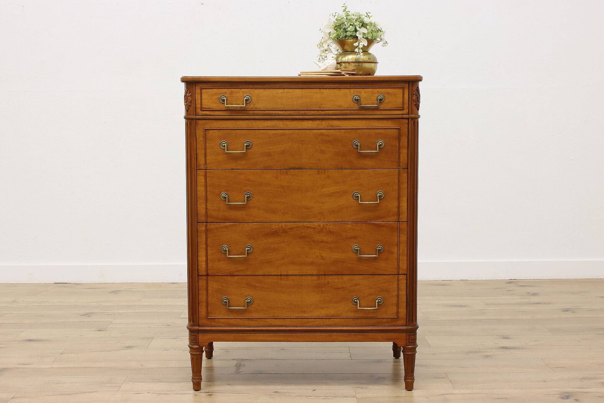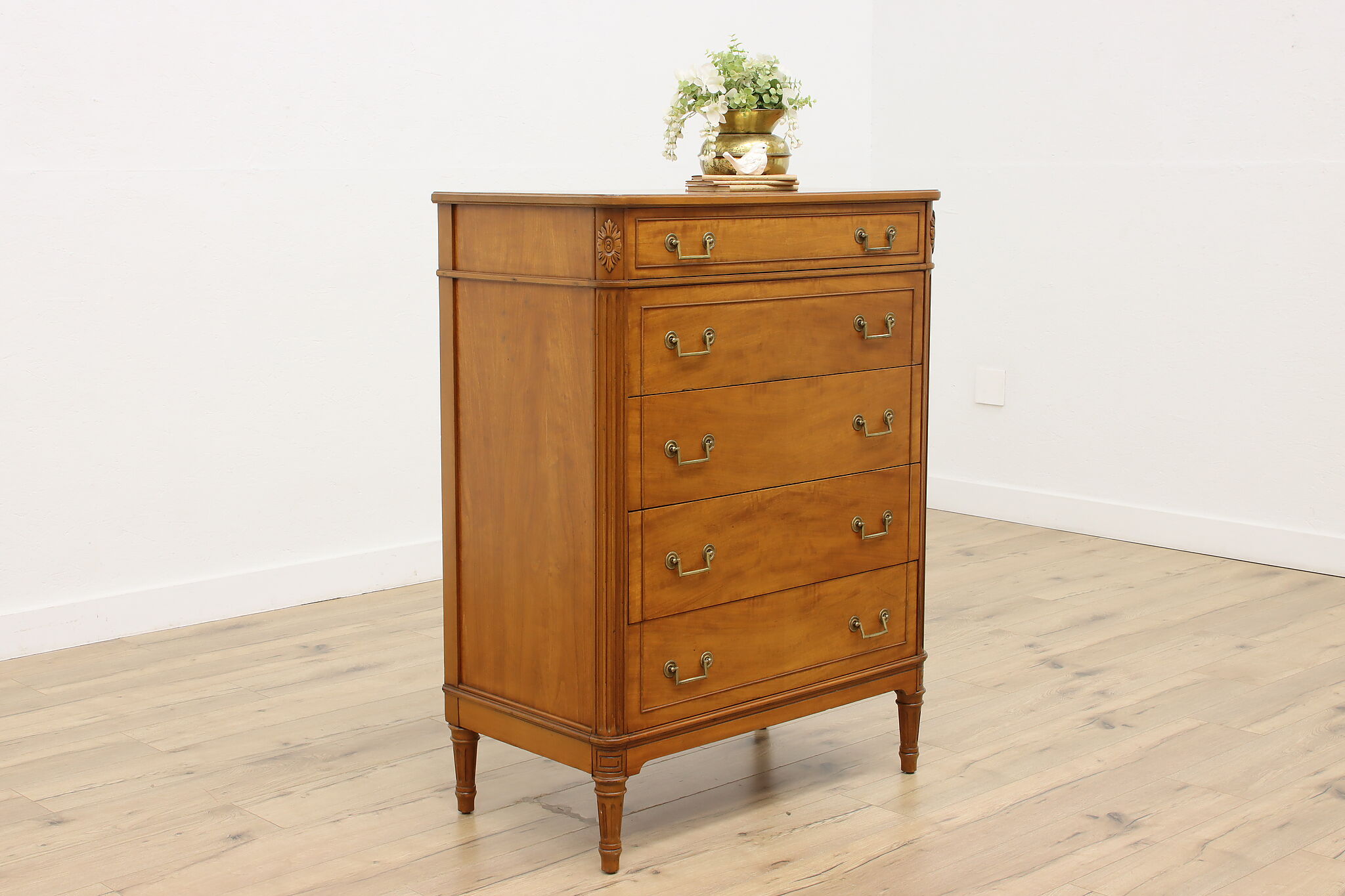 A simple but elegant dresser or tall chest is a wonderful piece to add to a guest room.