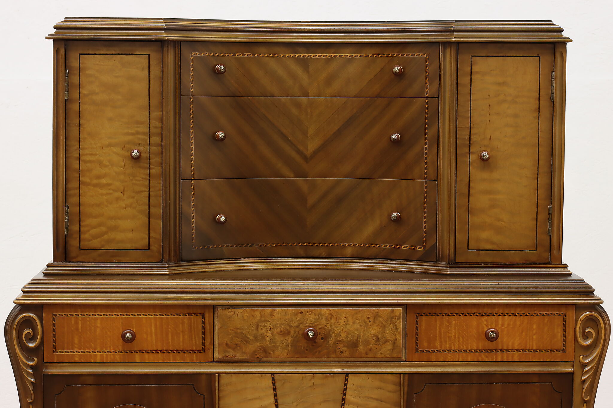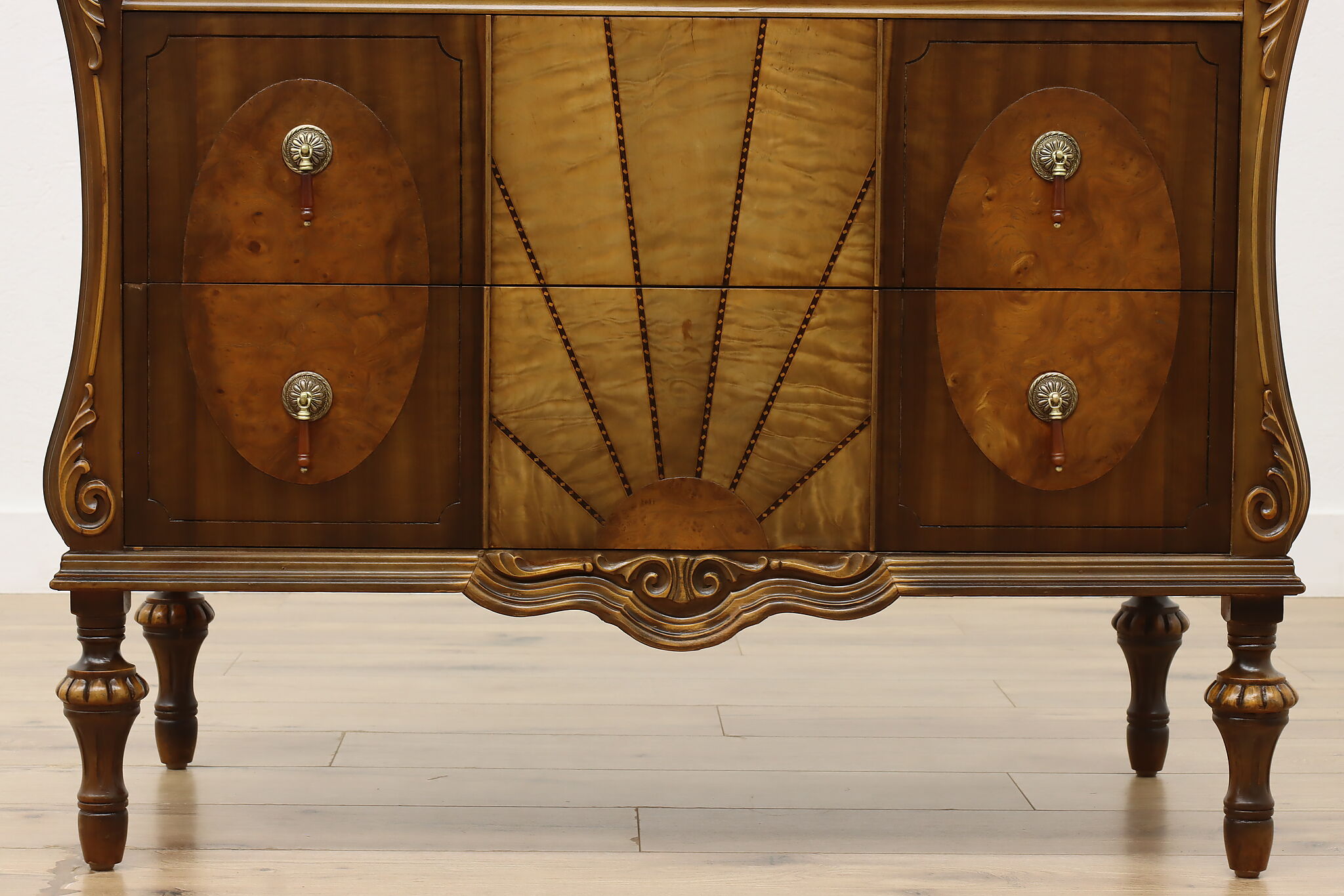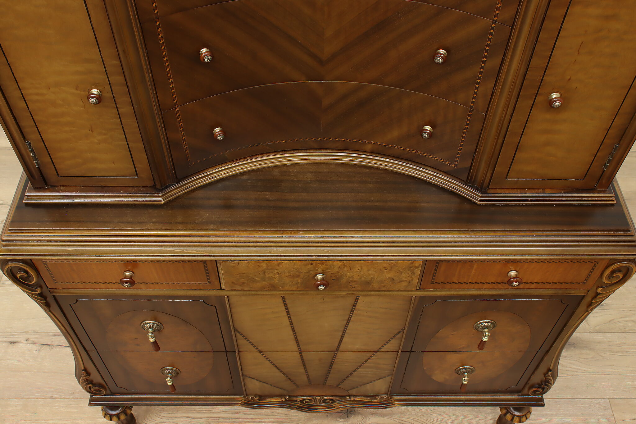The beautiful craftsmanship of this French Art Deco design highboy or tall chest on chest will perfectly compliment your home.