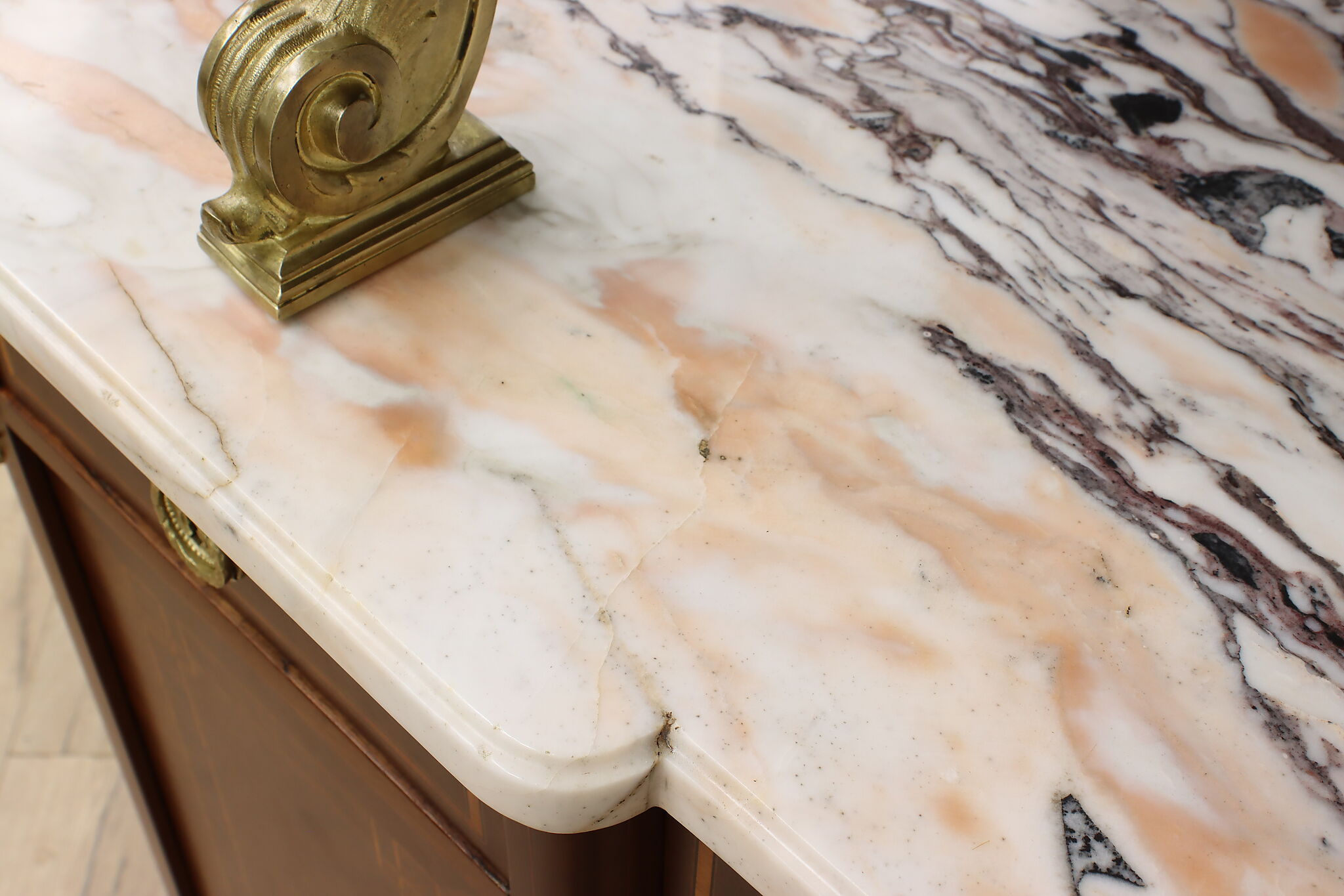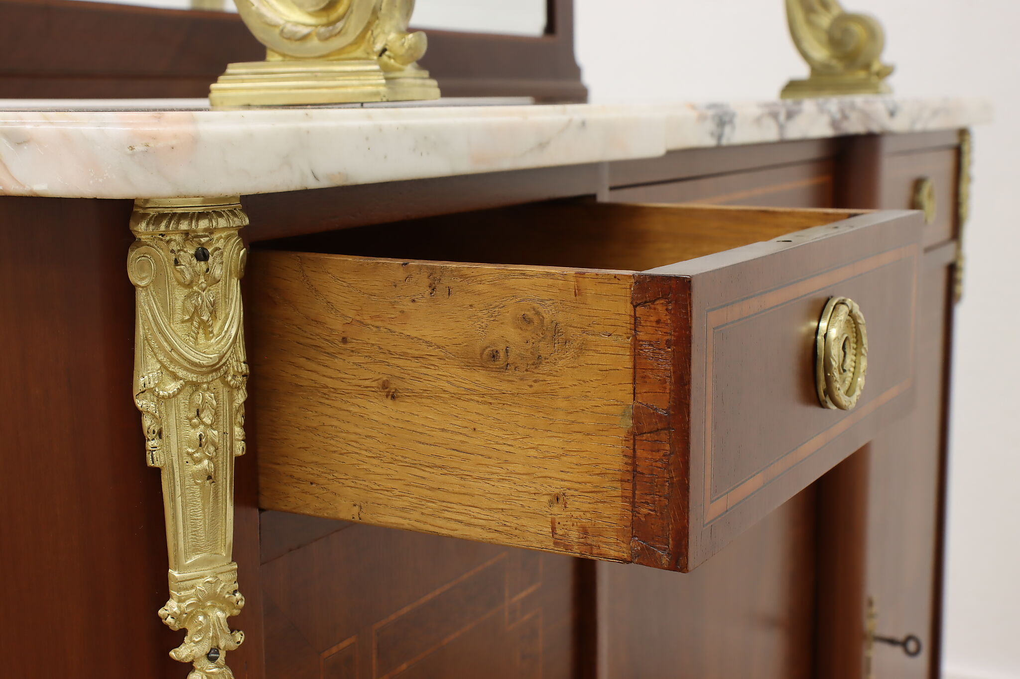 French king Louis the XVI and his wife, Marie Antoinette, decorated their royal palaces with elegant furniture that reflected Greek and Roman classical design. This sideboard or bar cabinet would've been a statement piece in the Versailles palace and now brings that elegance to your home!