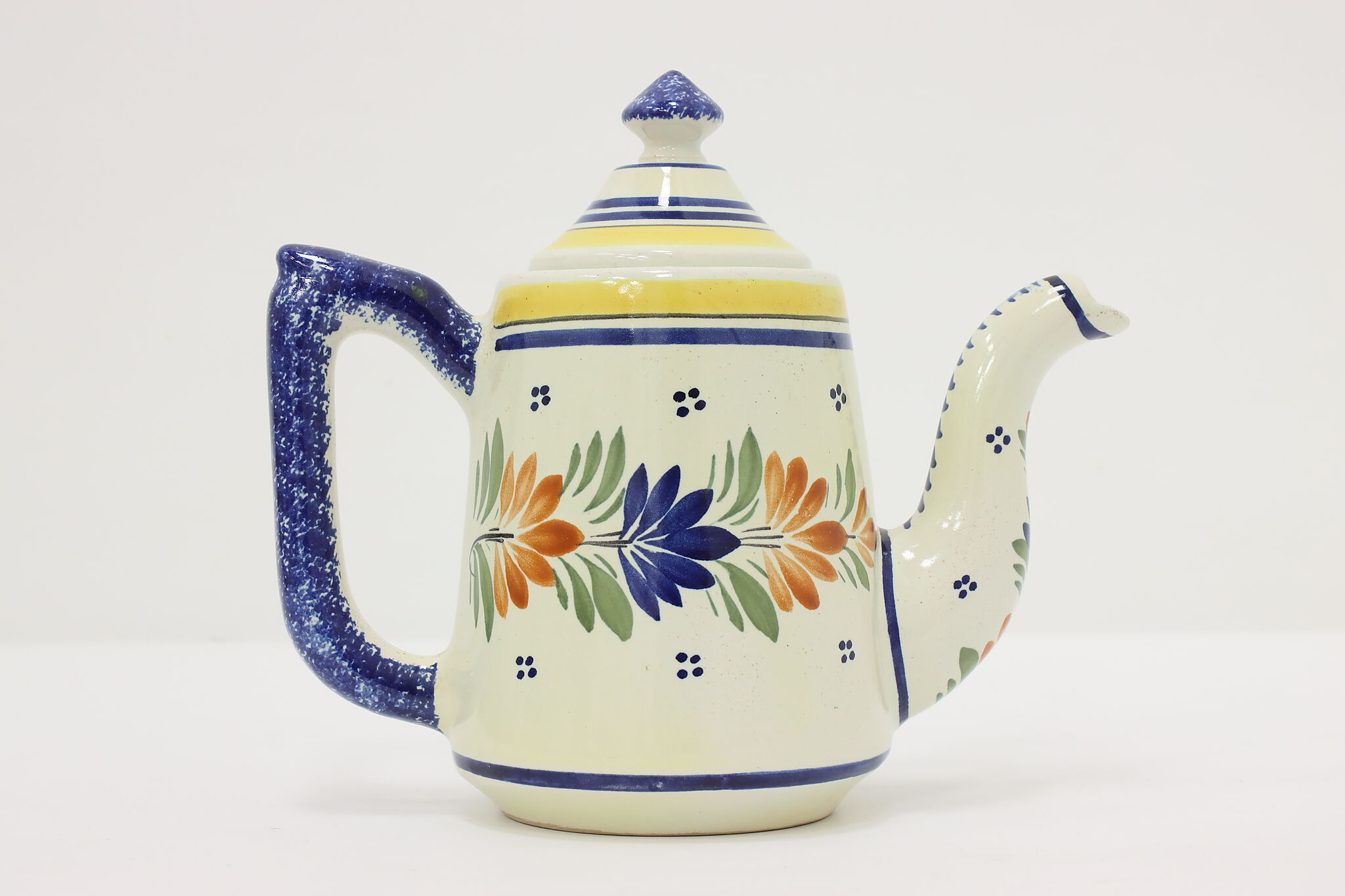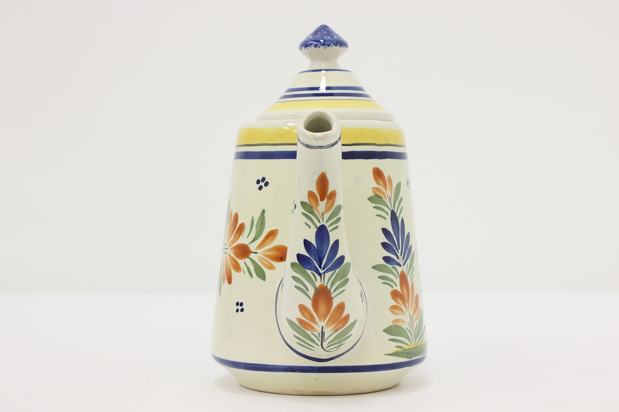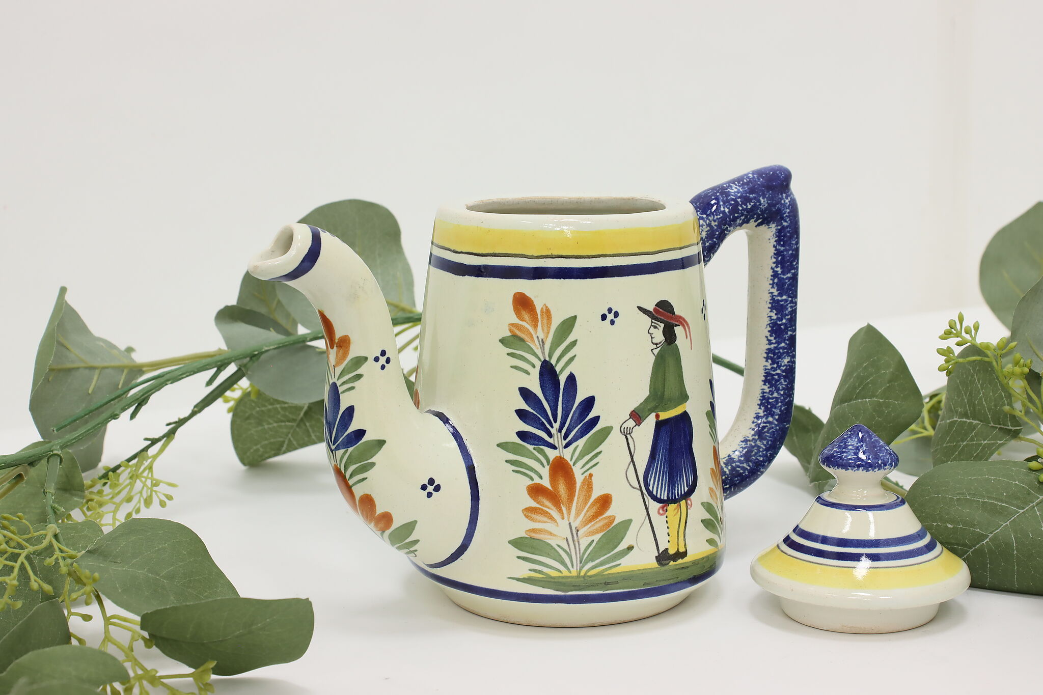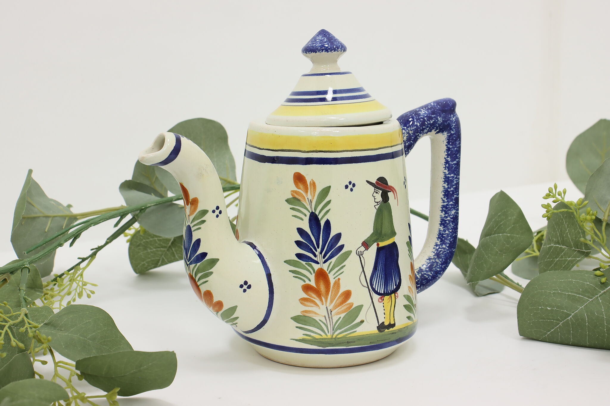 This delightful French hand-painted tea or coffee pot would be darling as a flower vase.