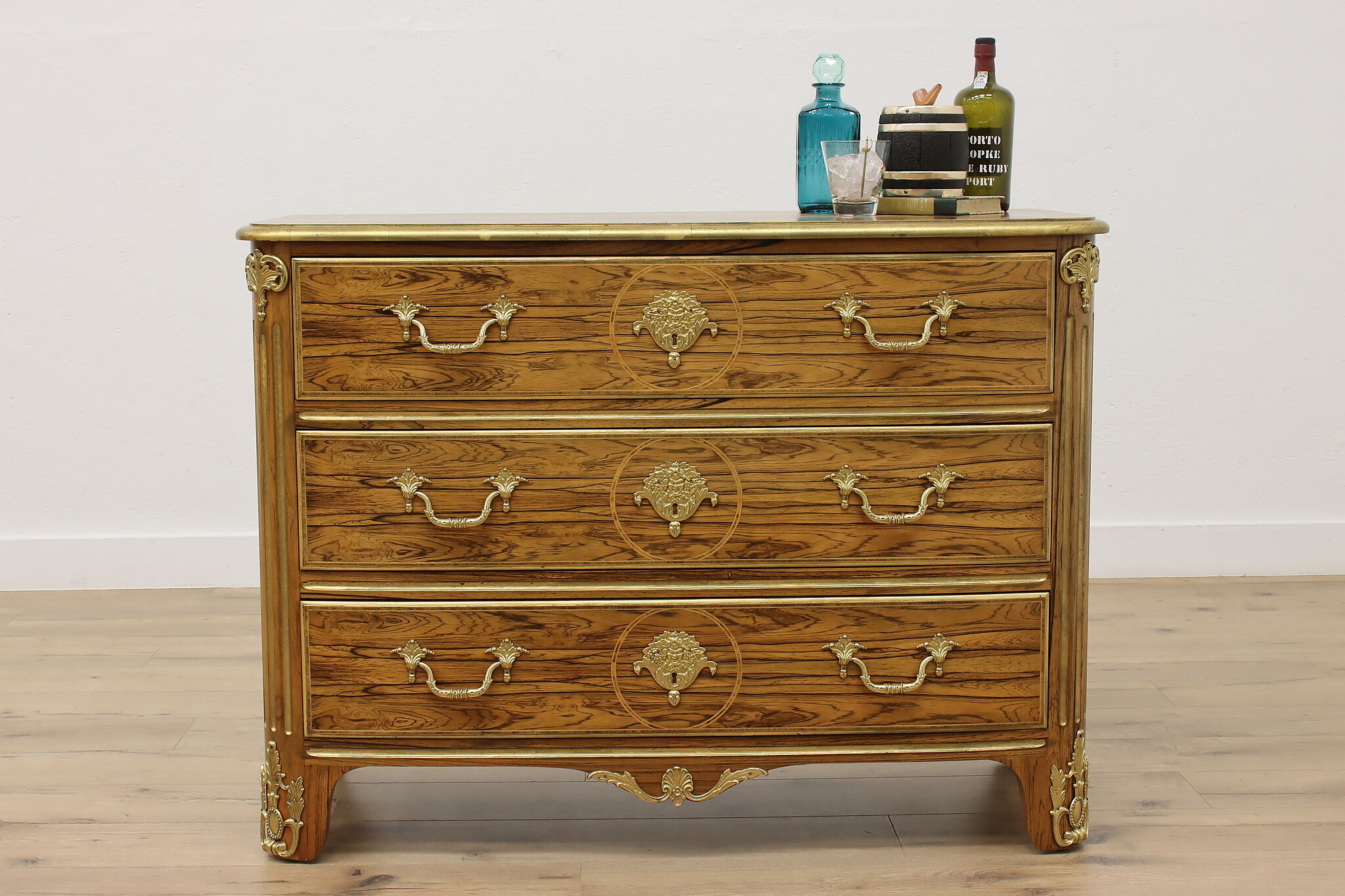This French Regency design dresser or hall console has beautifully ornate faux keyhole covers with the Roman god, Bacchus.