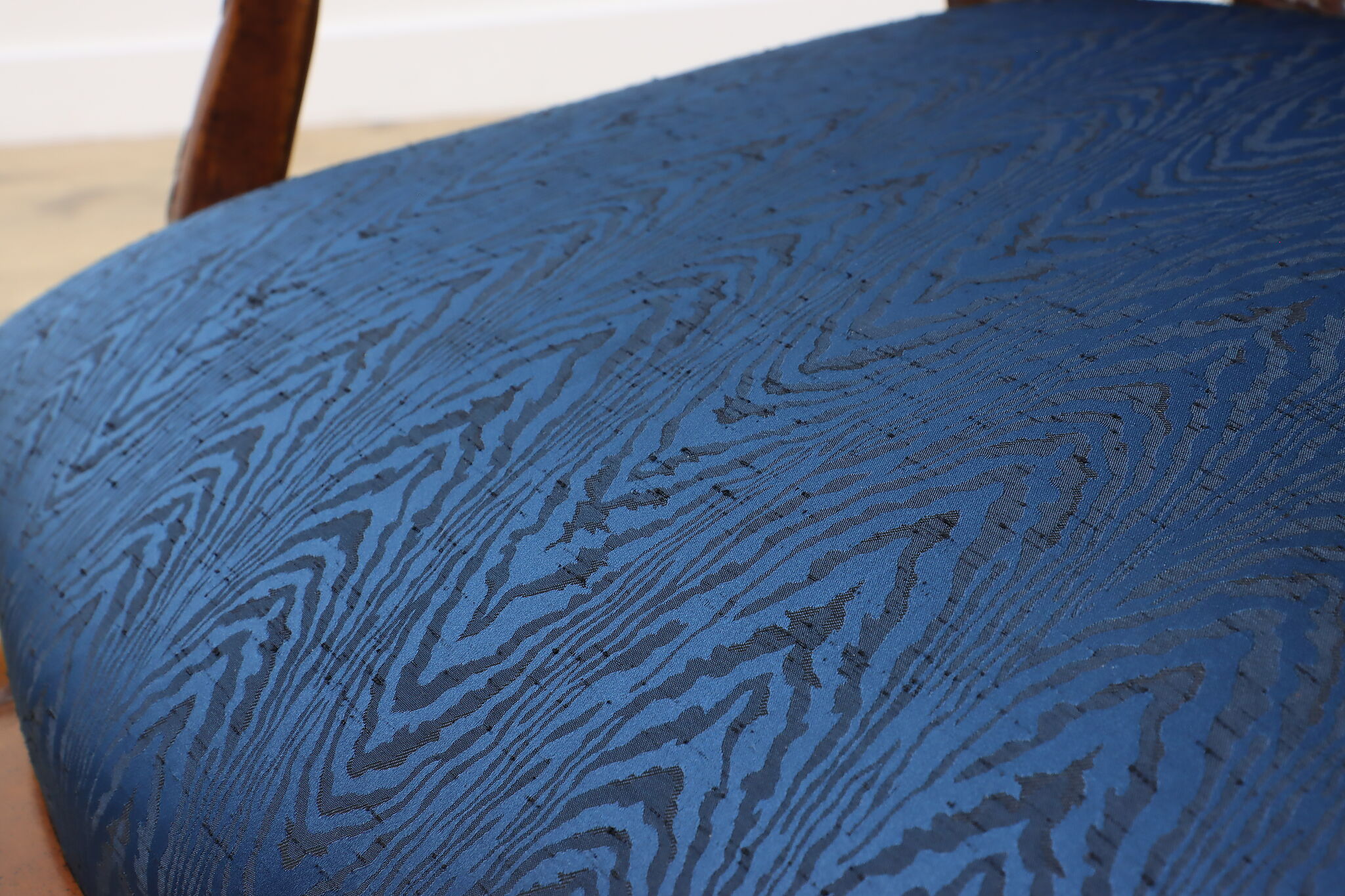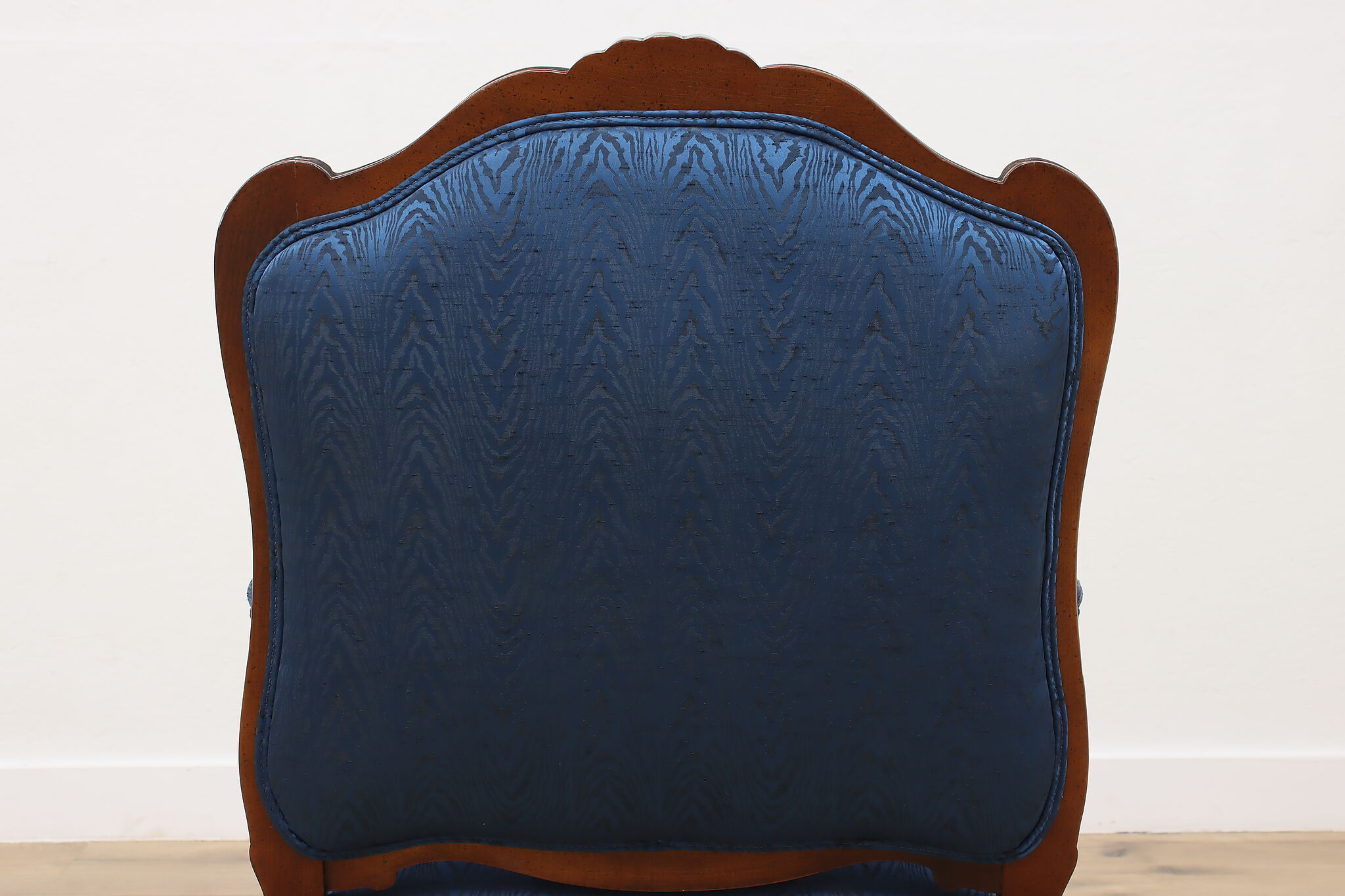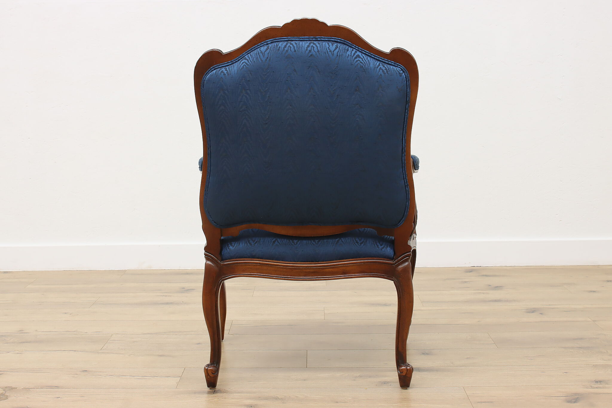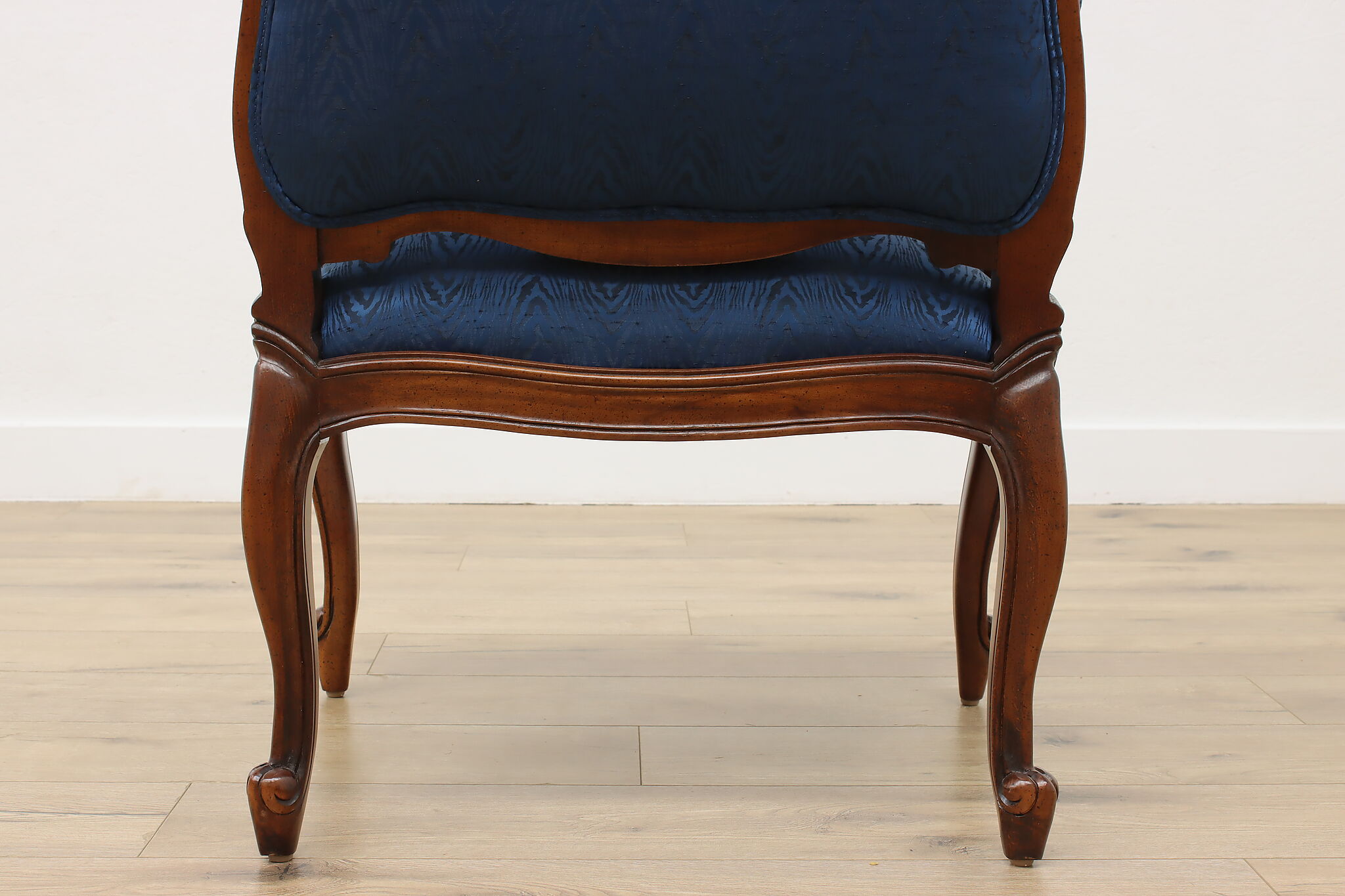 This French design library or office armchair has lovely carved shell motifs, a design found throughout history. Many cultures used seashells as currency and jewelry, and during the 16th century when Rococo design emerged, shells became one of the most popular motifs in art and furniture.