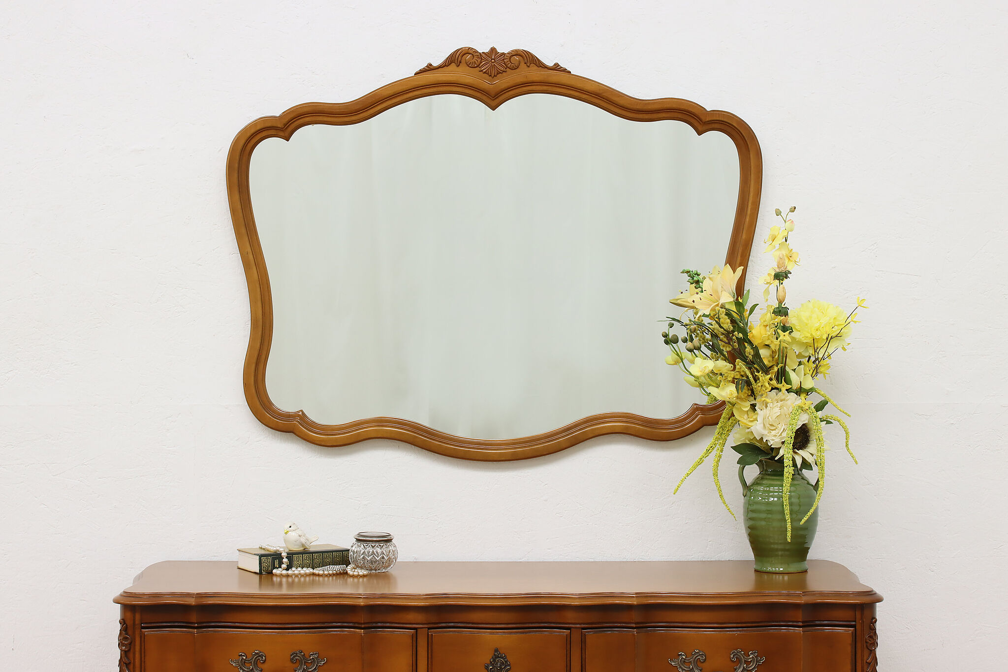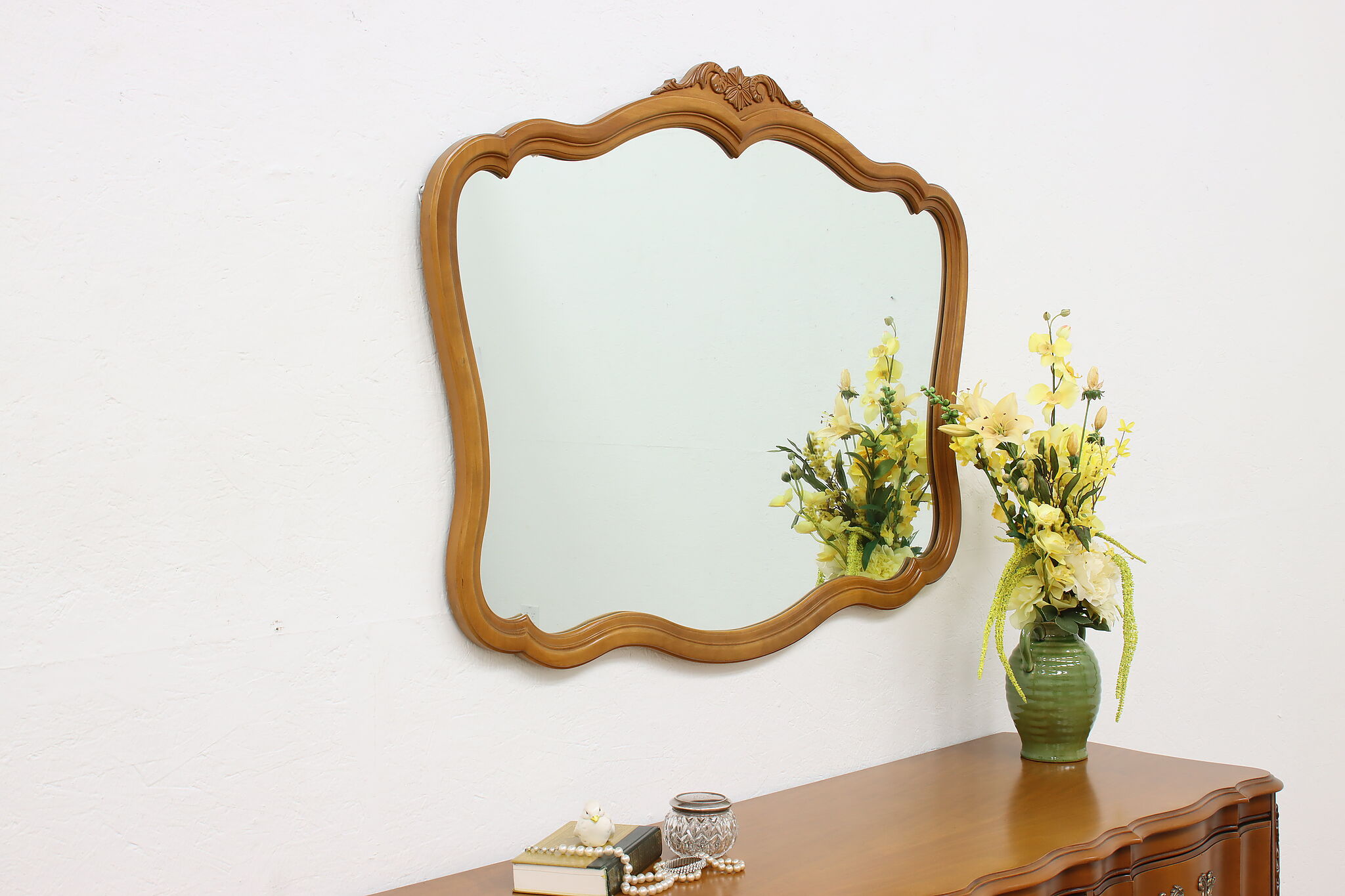This sweet and simple French design mirror will be a wonderful addition to a bedroom or bath wall.
