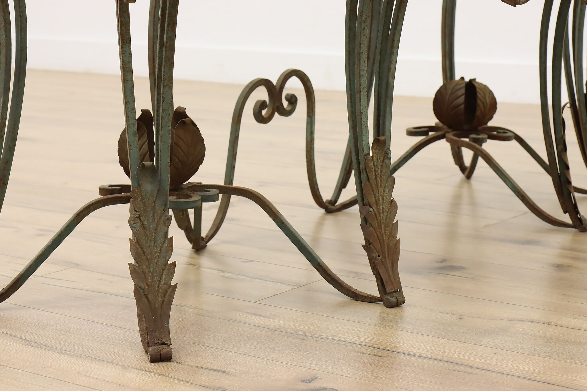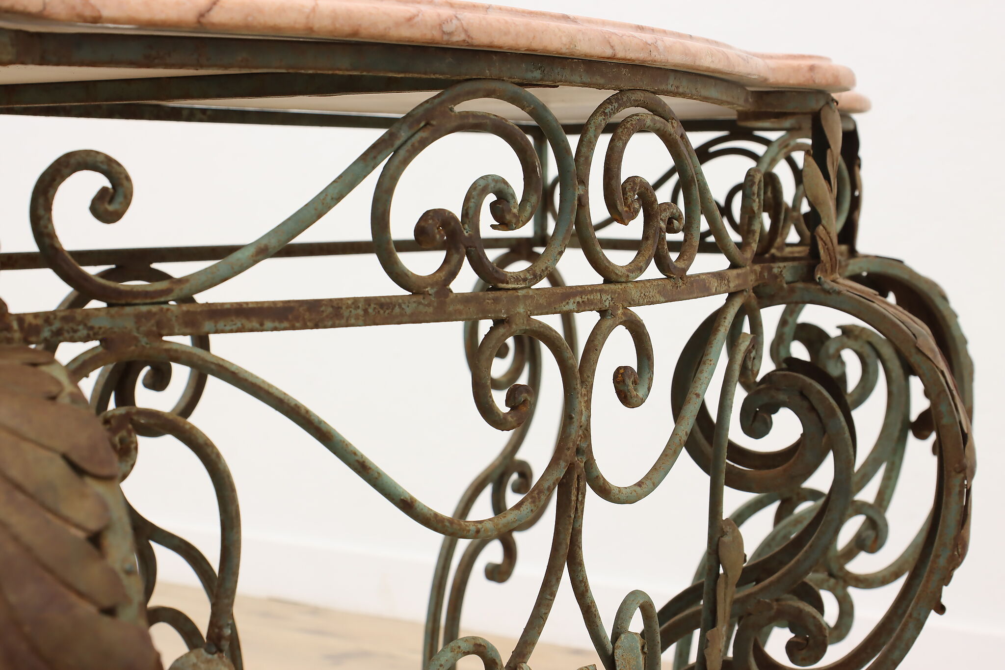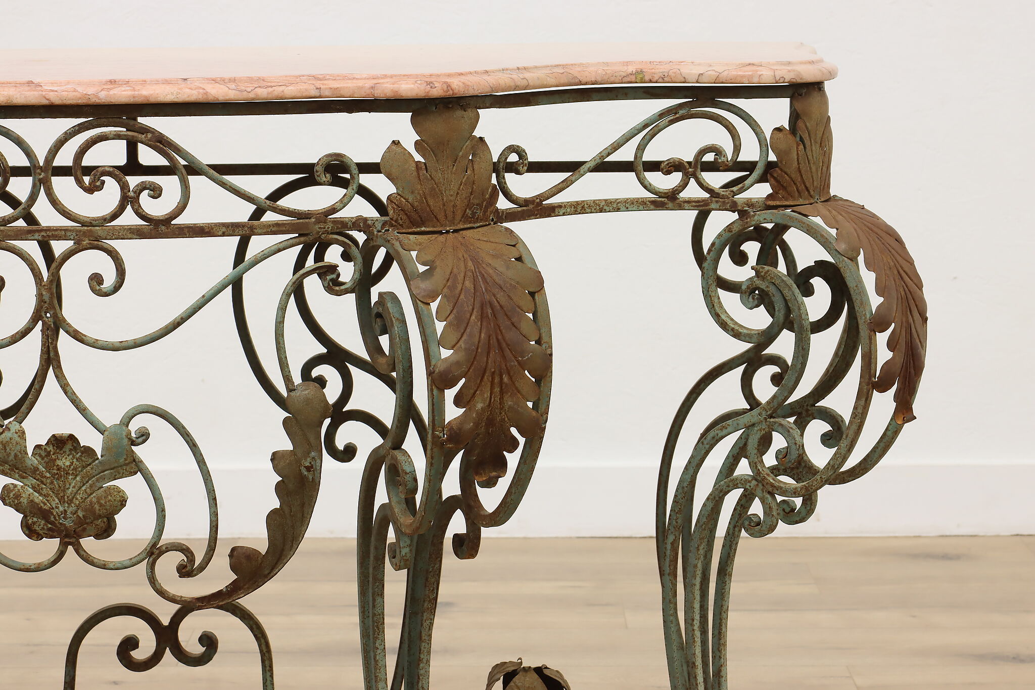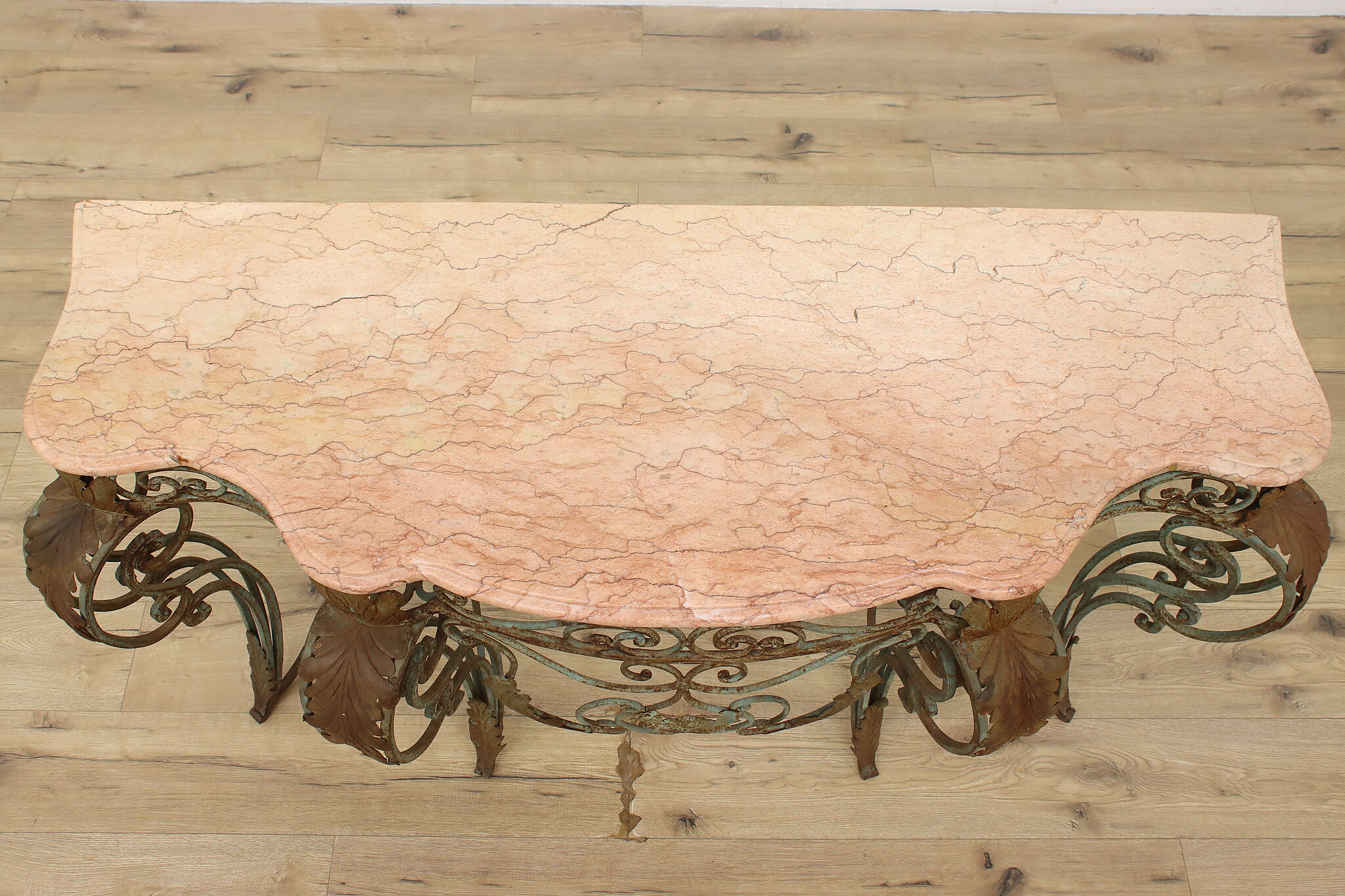 This charming French sofa or hall console has a gorgeous rose marble top that adds color and beauty to your living space.