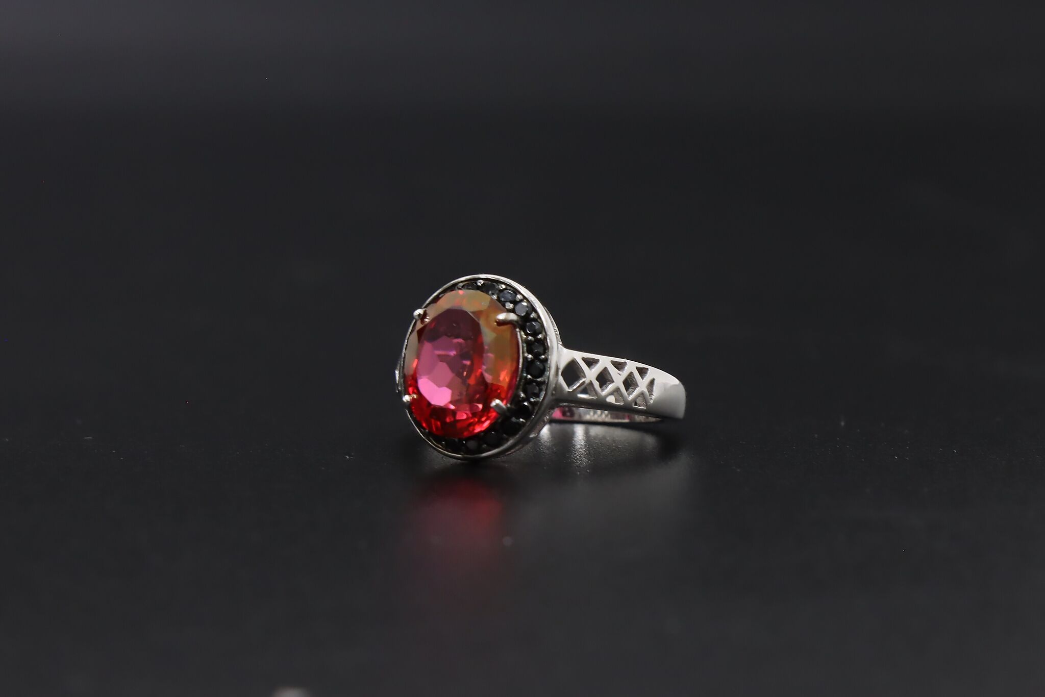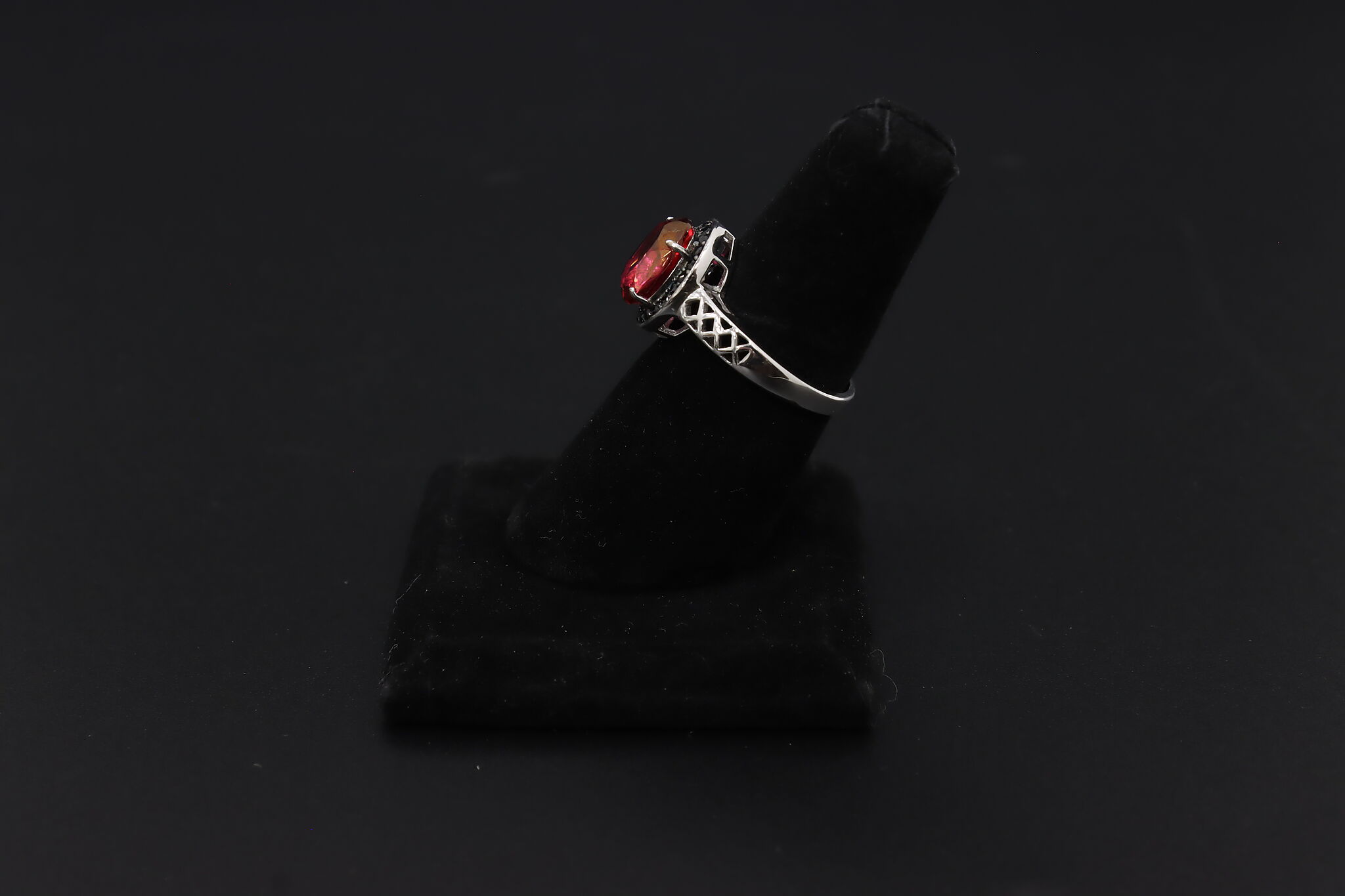 This beautiful ring with its dark garnet gemstone appears to have walked right out of a Victorian Gothic romance novel!