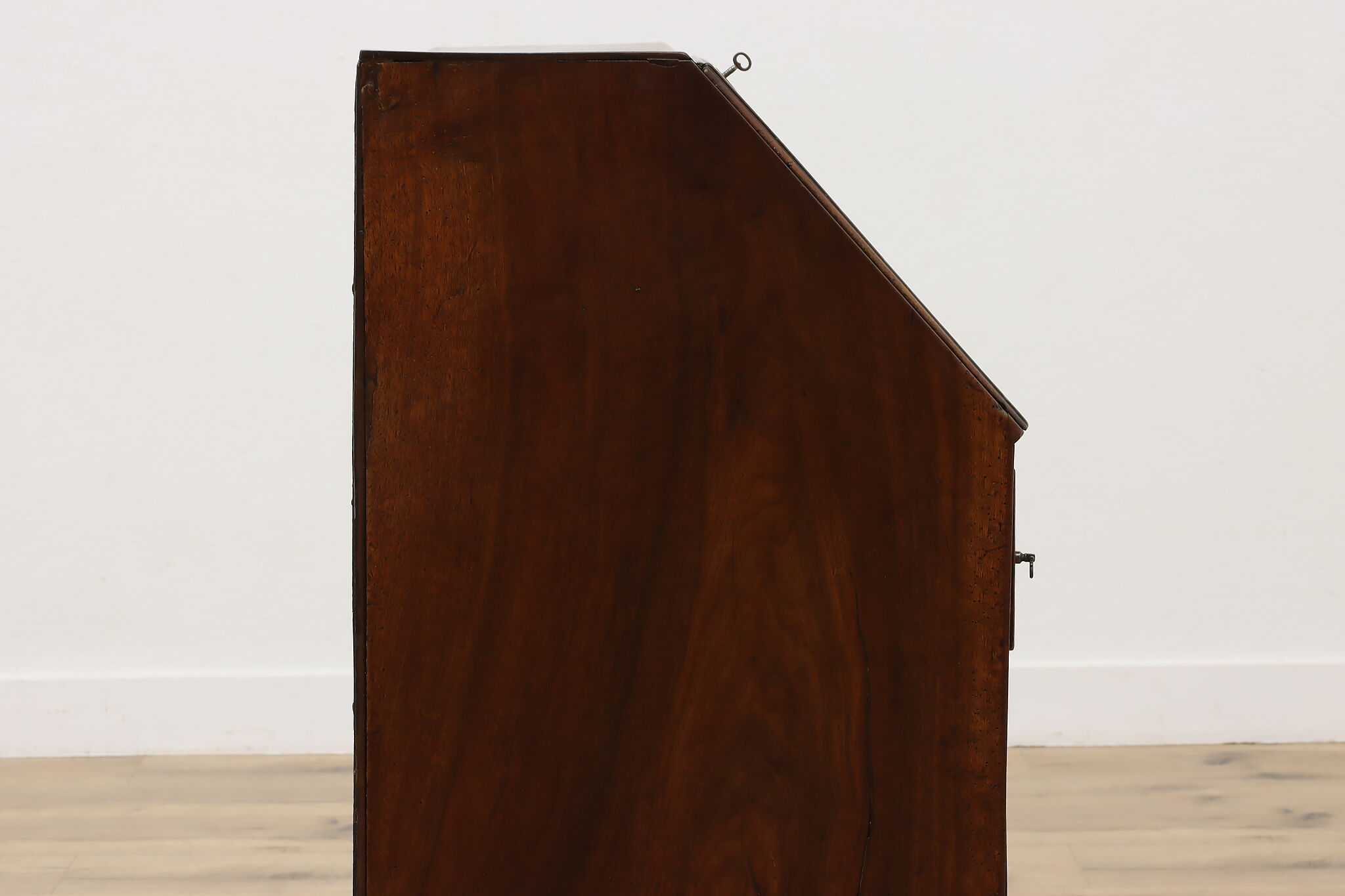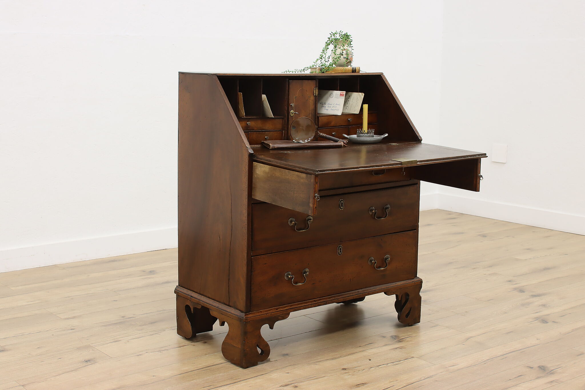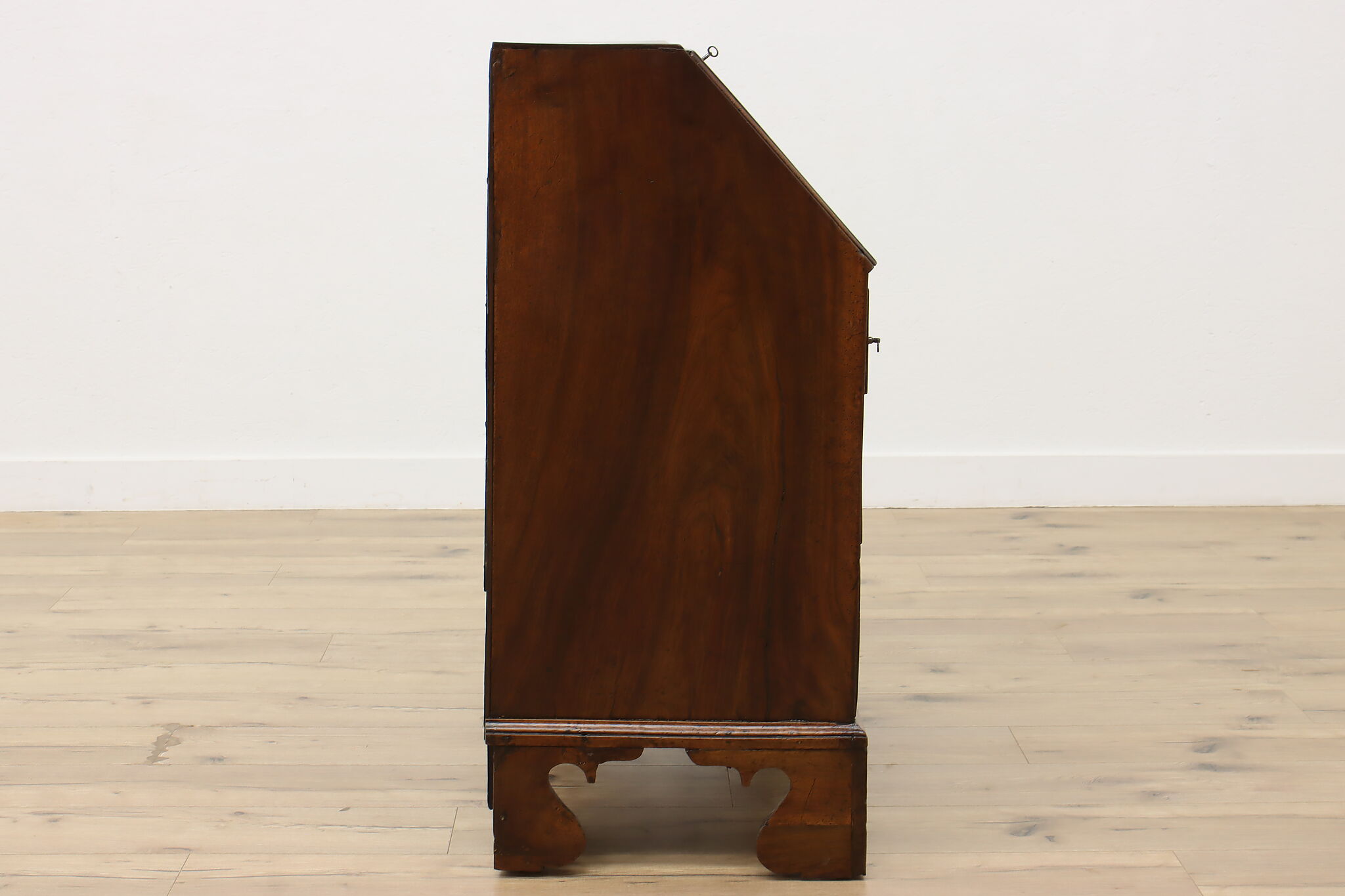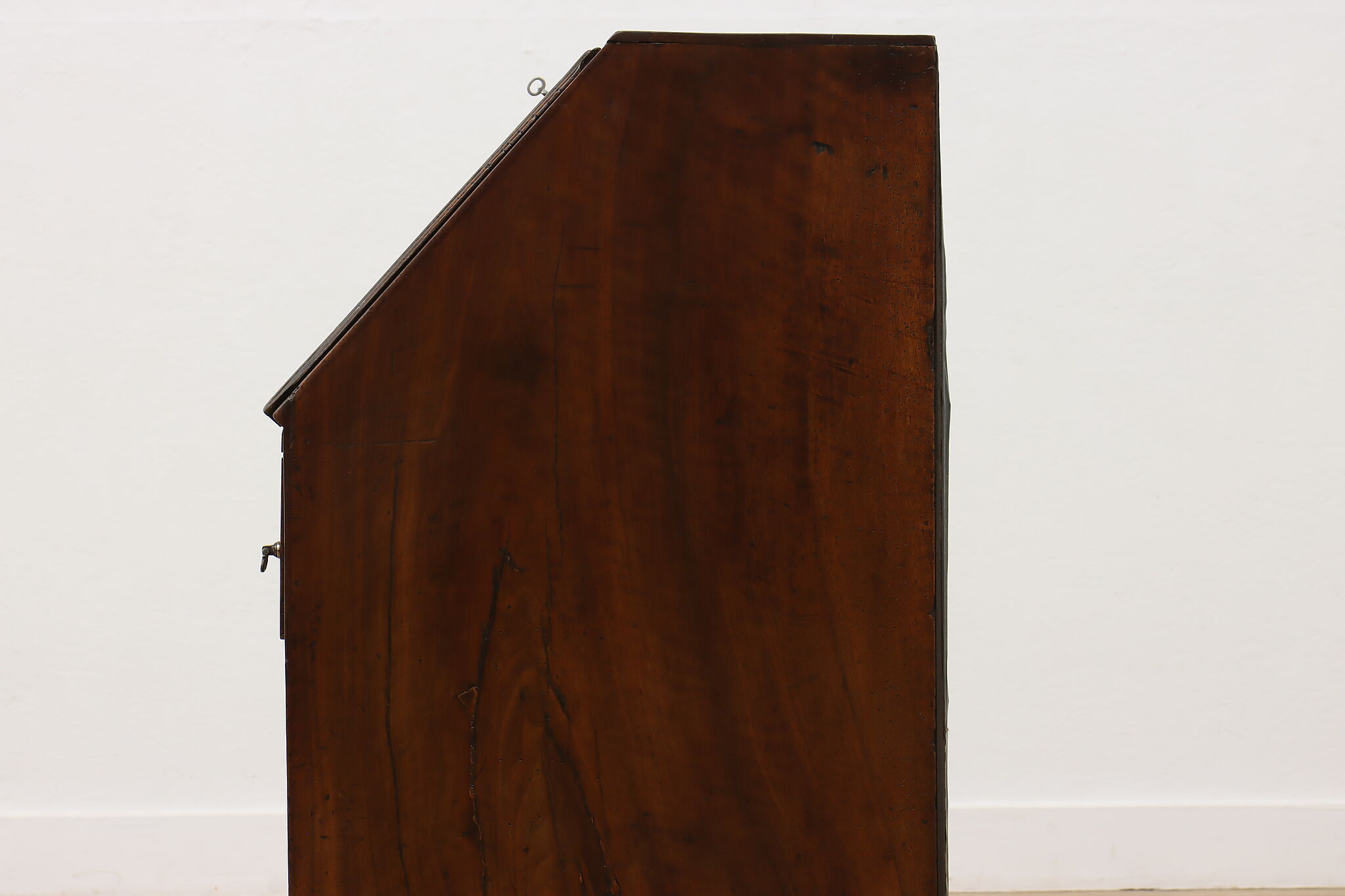 Georgian period homes were much smaller than modern ones and required furniture that was useful, yet compact in tight spaces. This slant front secretary desk would've been found in a merchant's home, keeping their documents and accounts safe from prying eyes.