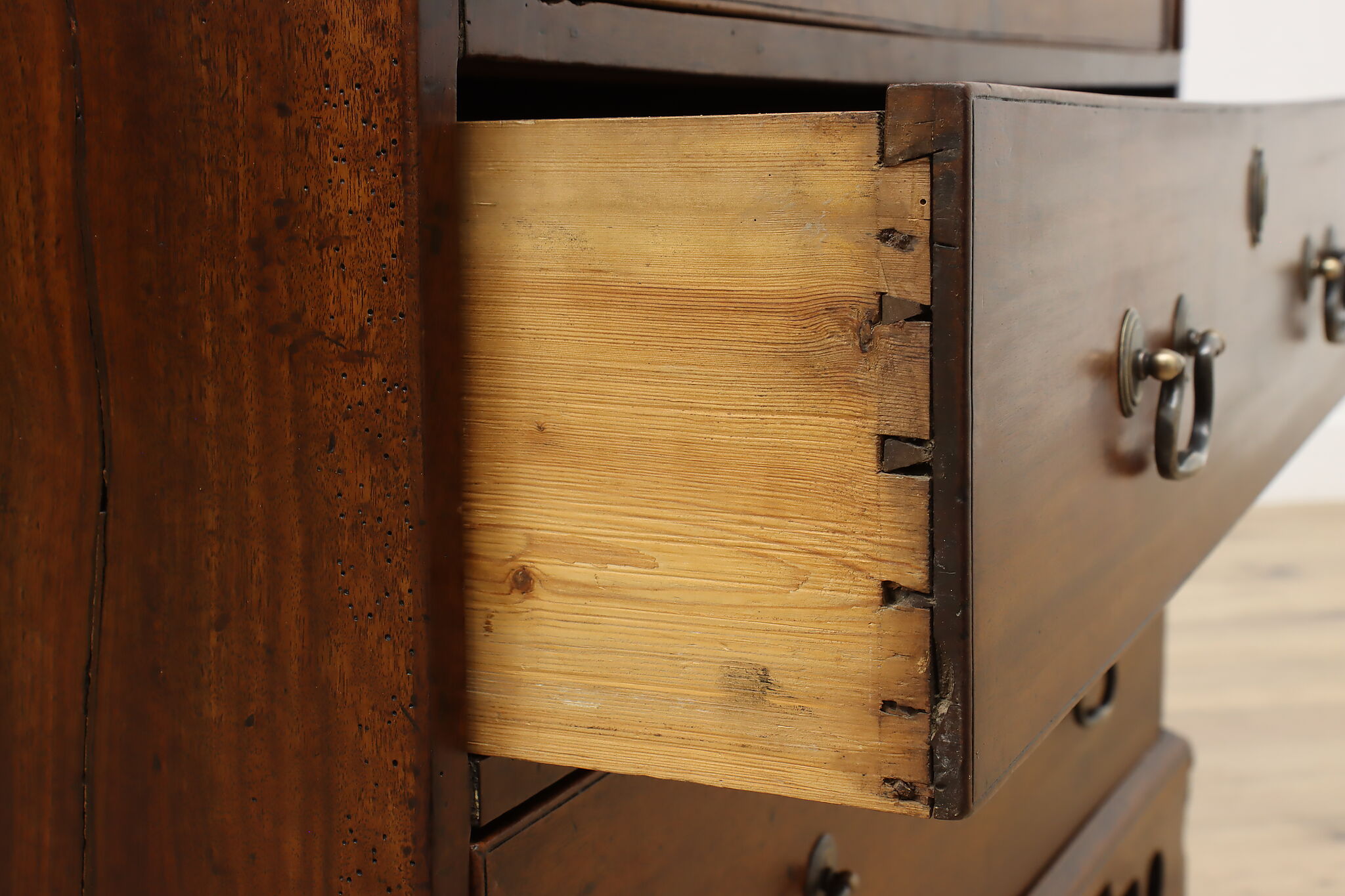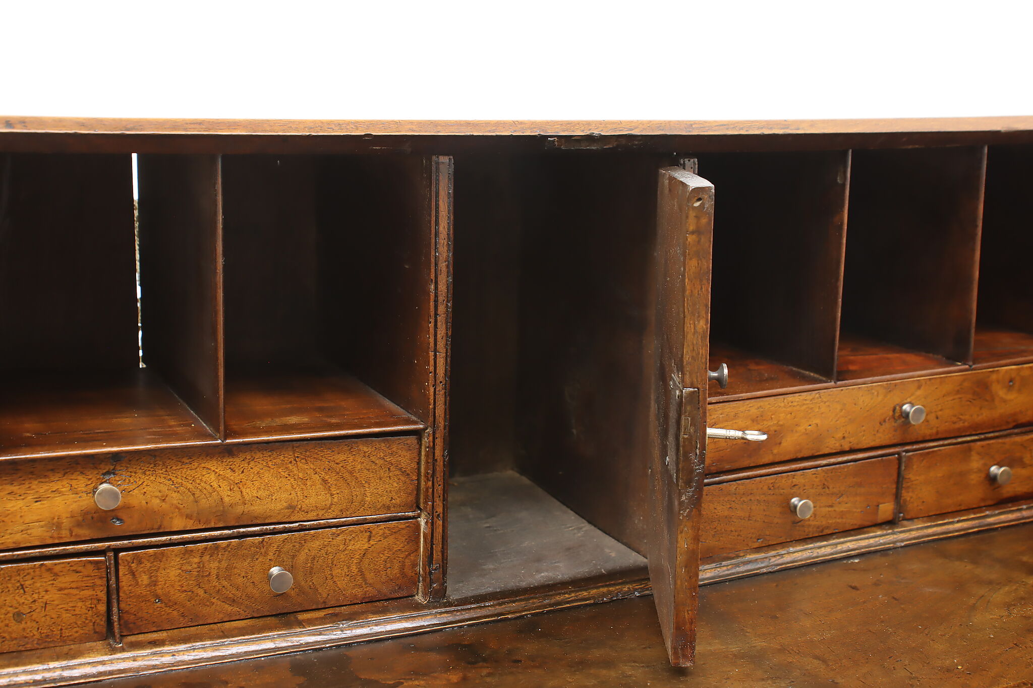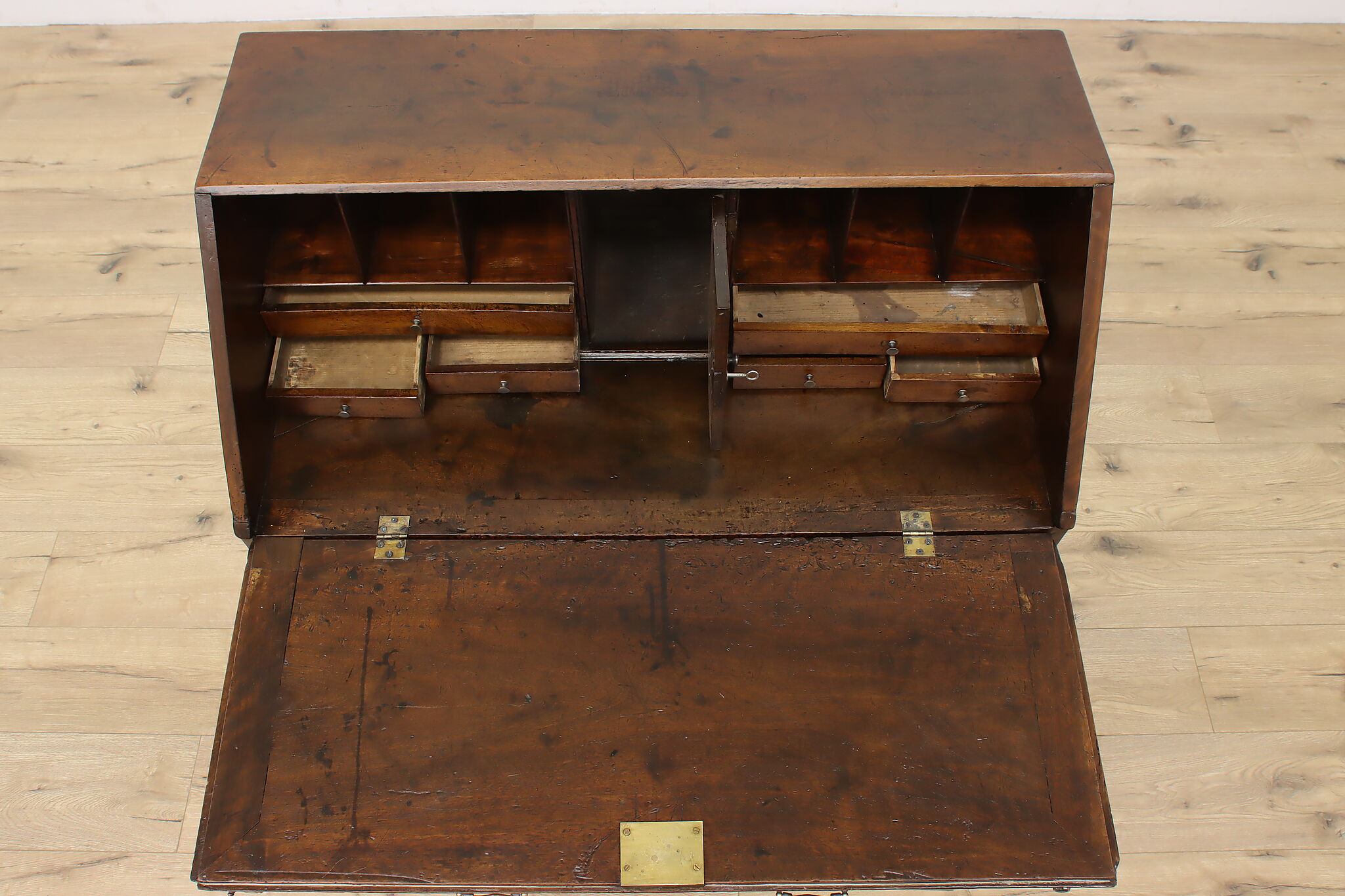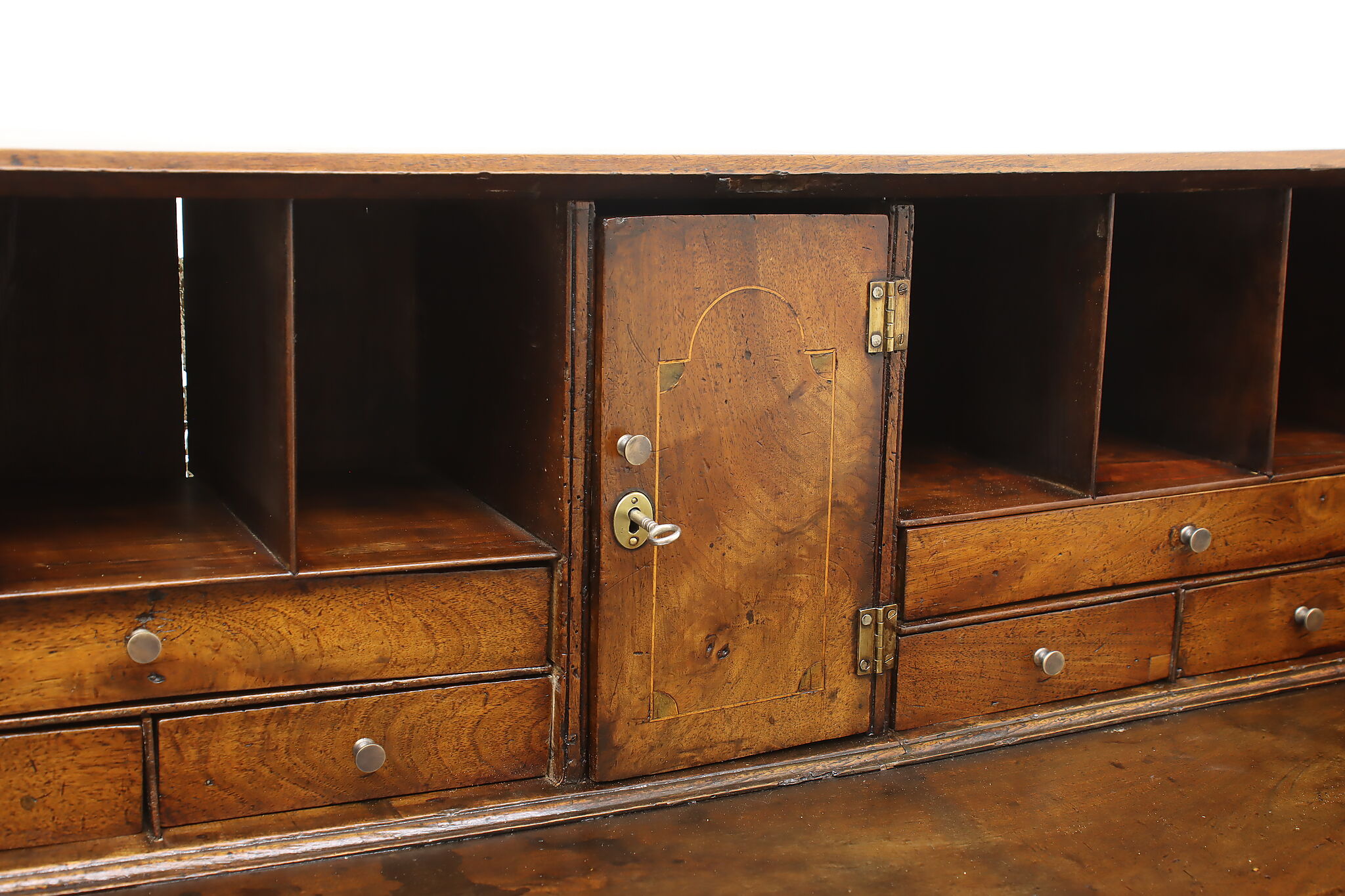 Georgian period homes were much smaller than modern ones and required furniture that was useful, yet compact in tight spaces. This slant front secretary desk would've been found in a merchant's home, keeping their documents and accounts safe from prying eyes.
