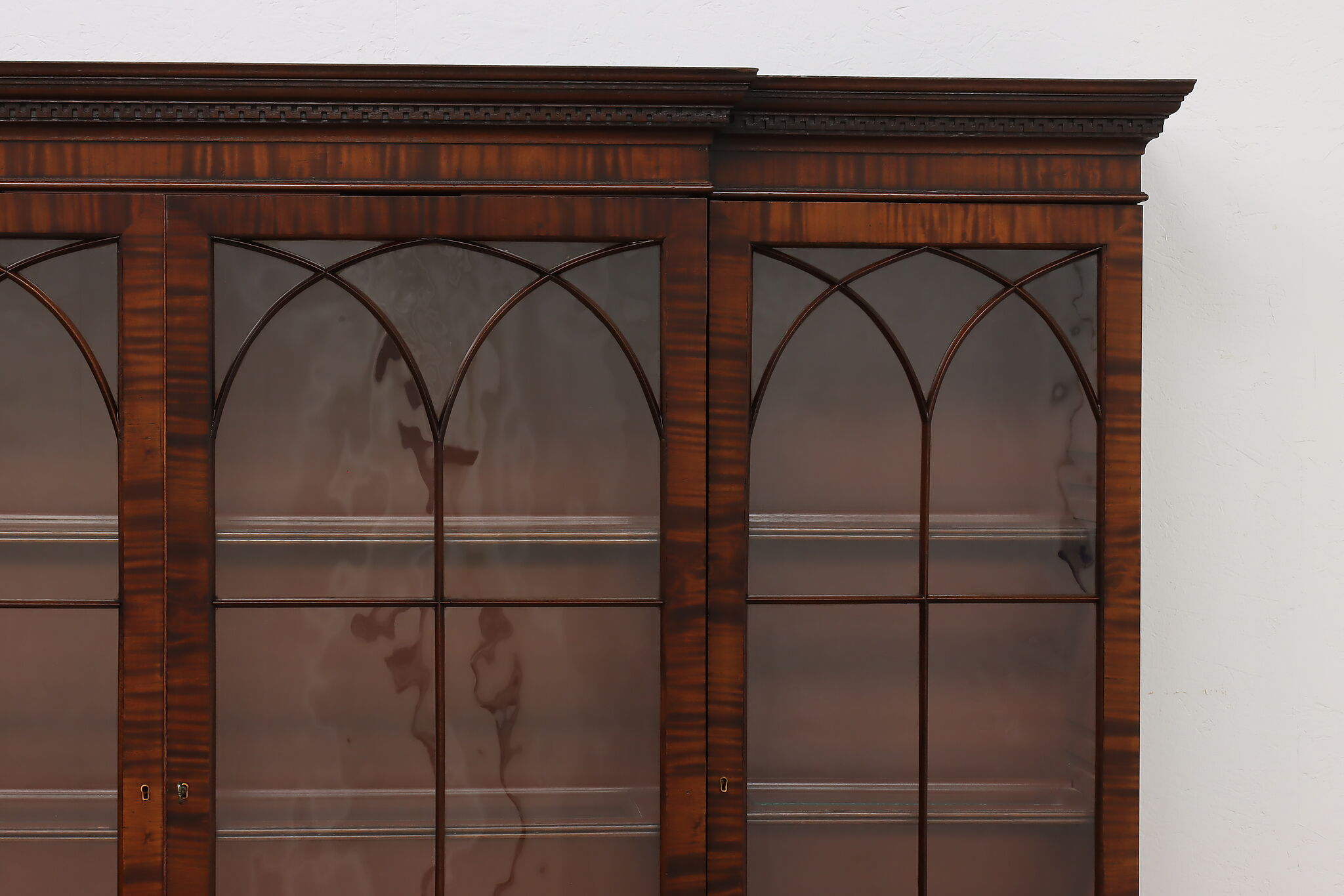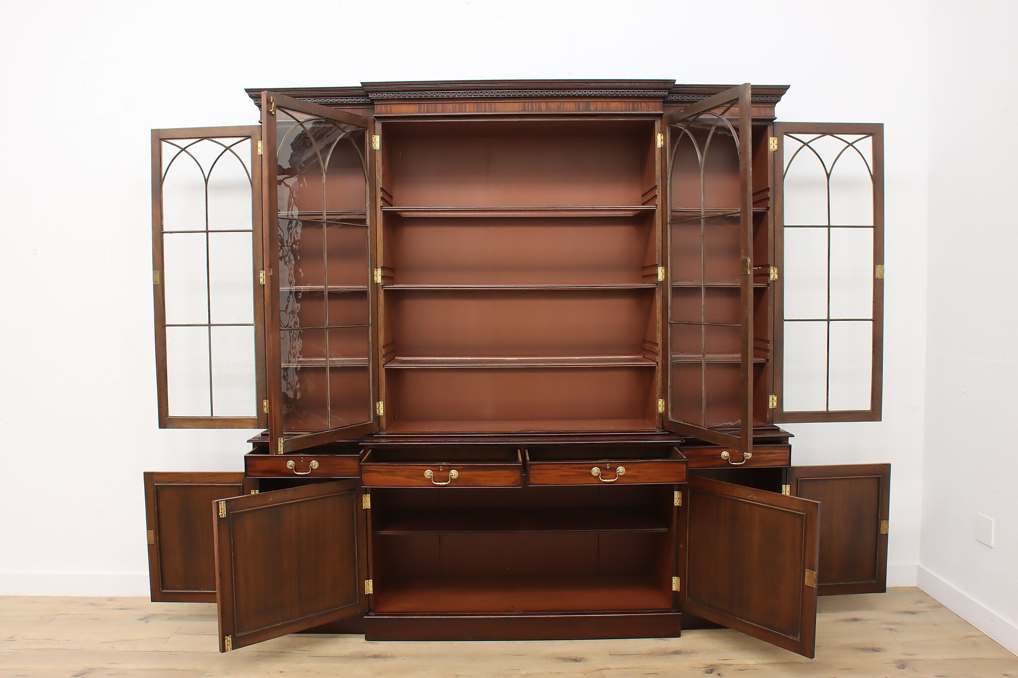 This monumental Georgian design breakfront would be excellent as a bookcase or china display cabinet.