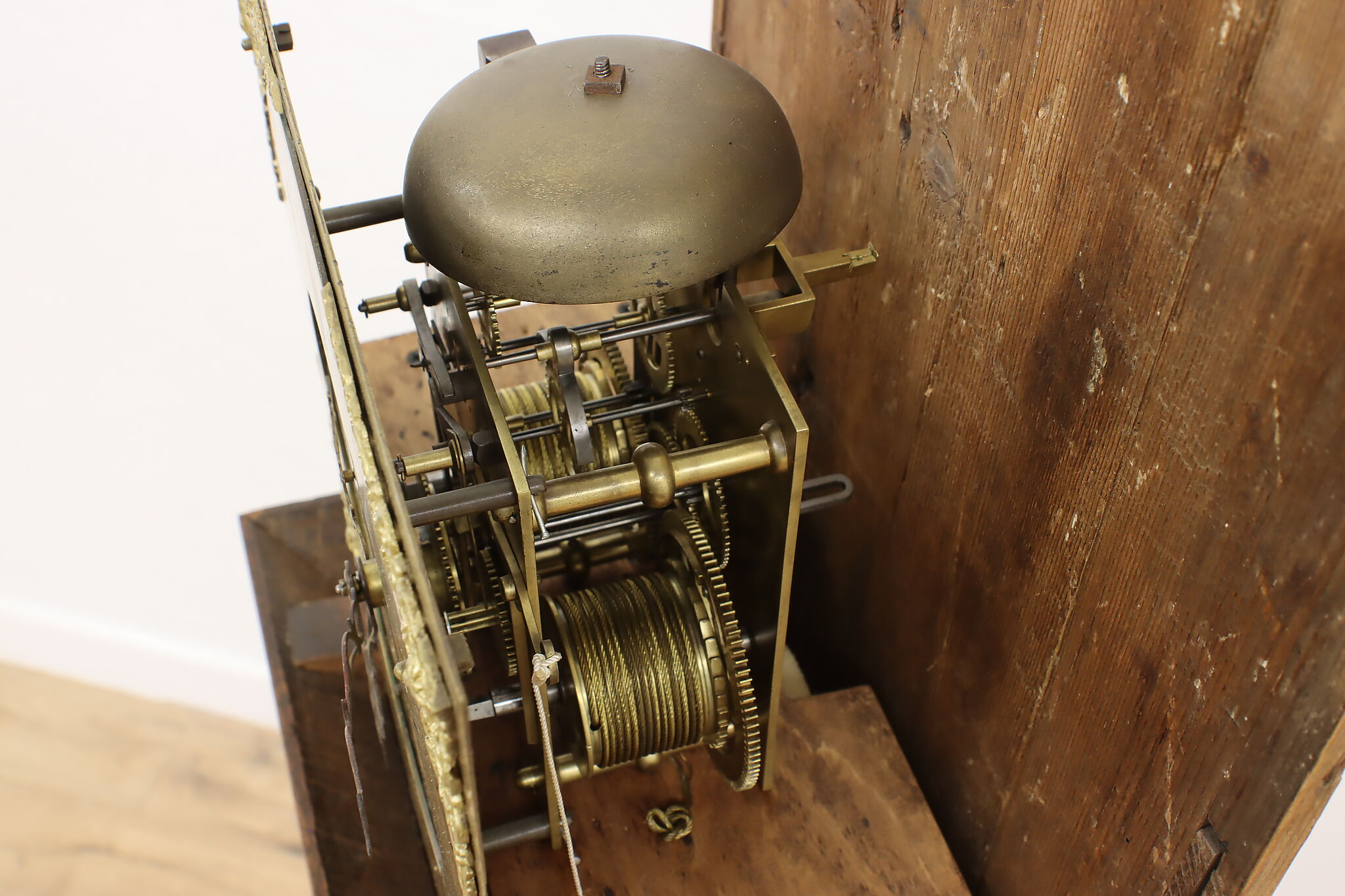 This clock needs to be "set up" after delivery - weights and pendulum attached and the case leveled. Most of our customers can do this as we walk them through the fairly simple steps by phone. The process is not very difficult, and it is also nice to know how to do this again whenever the clock needs to be moved. A few customers prefer to hire a local clockmaker at their own expense to make a house-call and set up the clock, which is usually not very expensive, depending on your location.