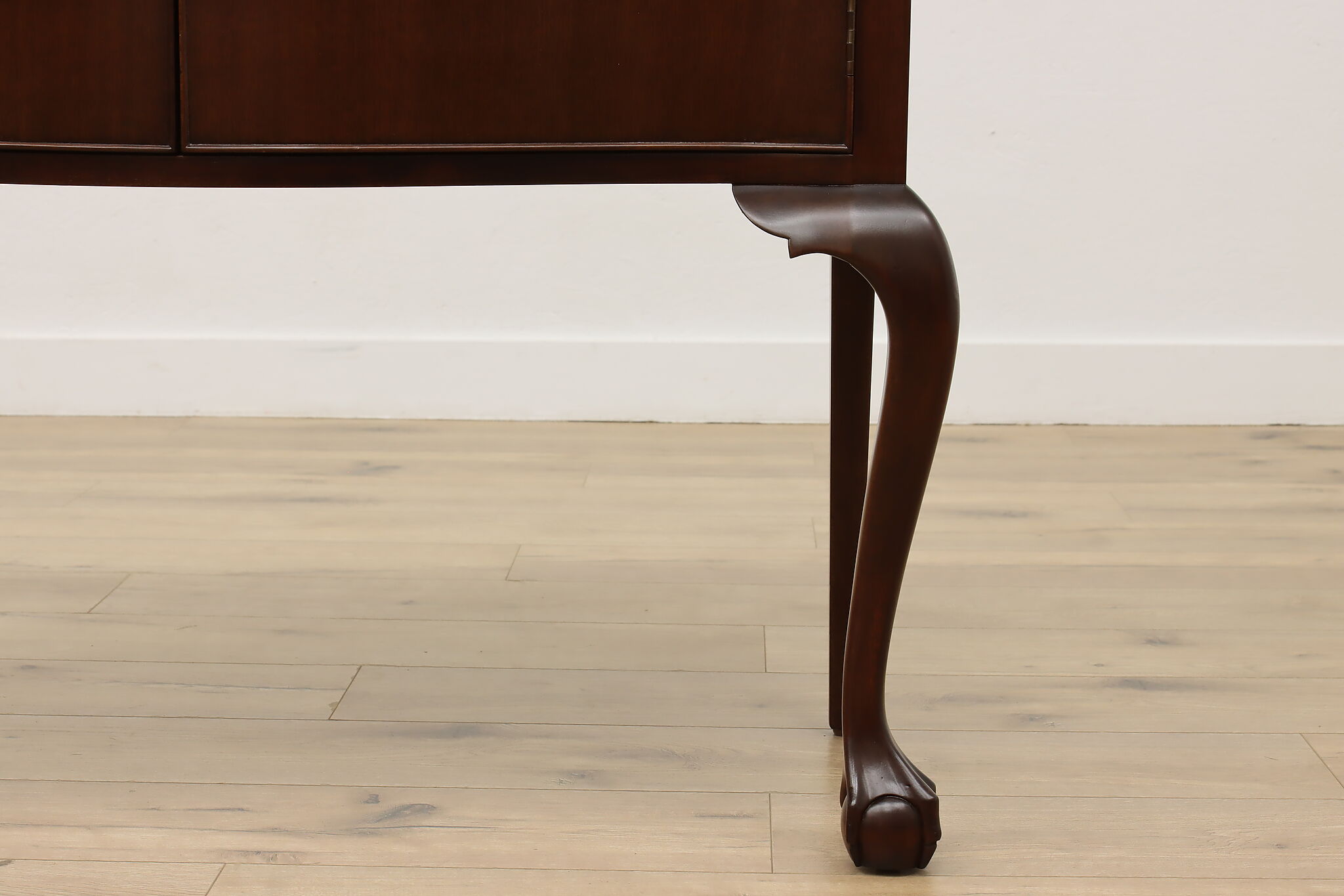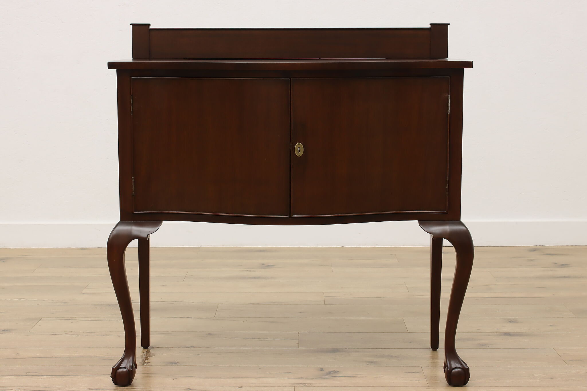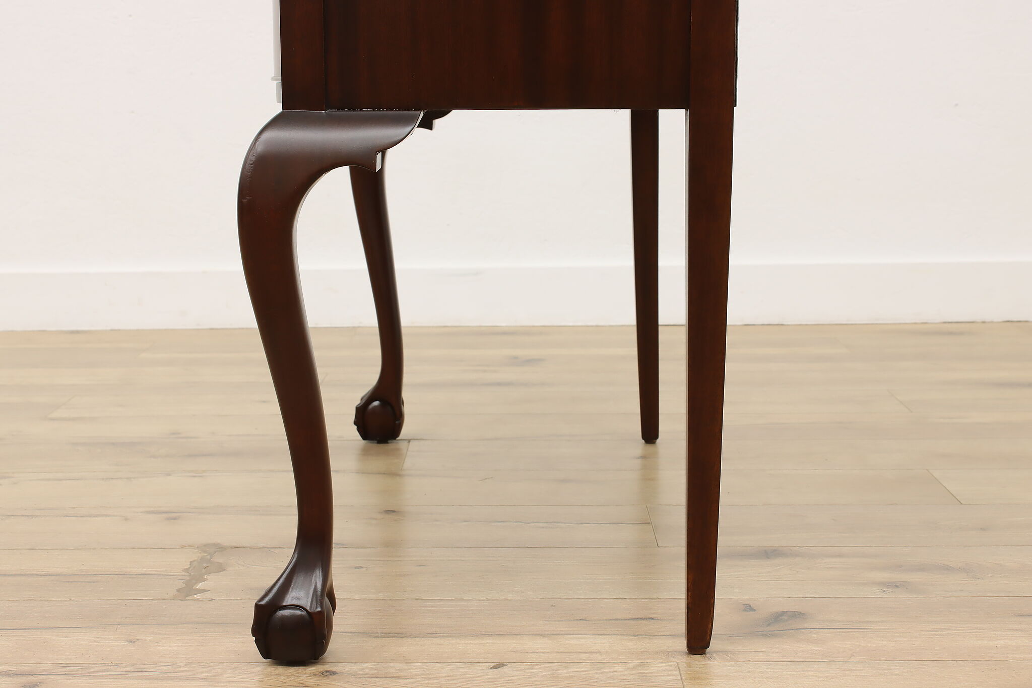 This lovely Georgian design buffet, server or hall console has gracefully curved legs with ball and claw feet for a polished look.