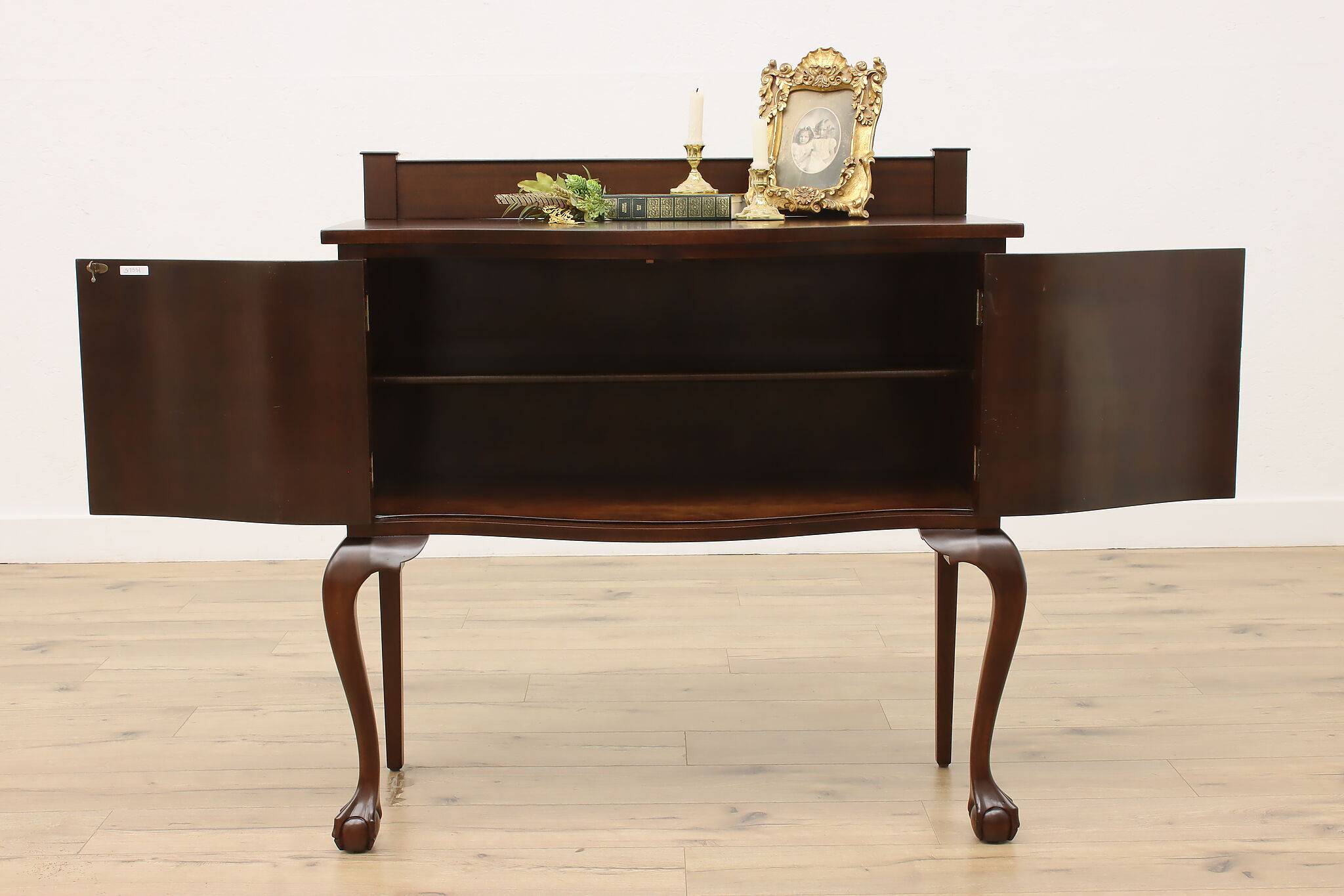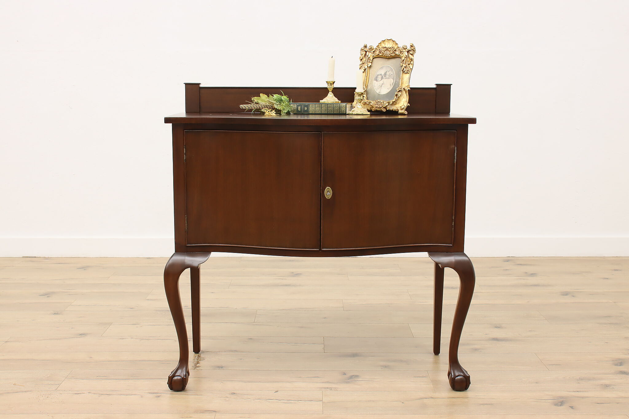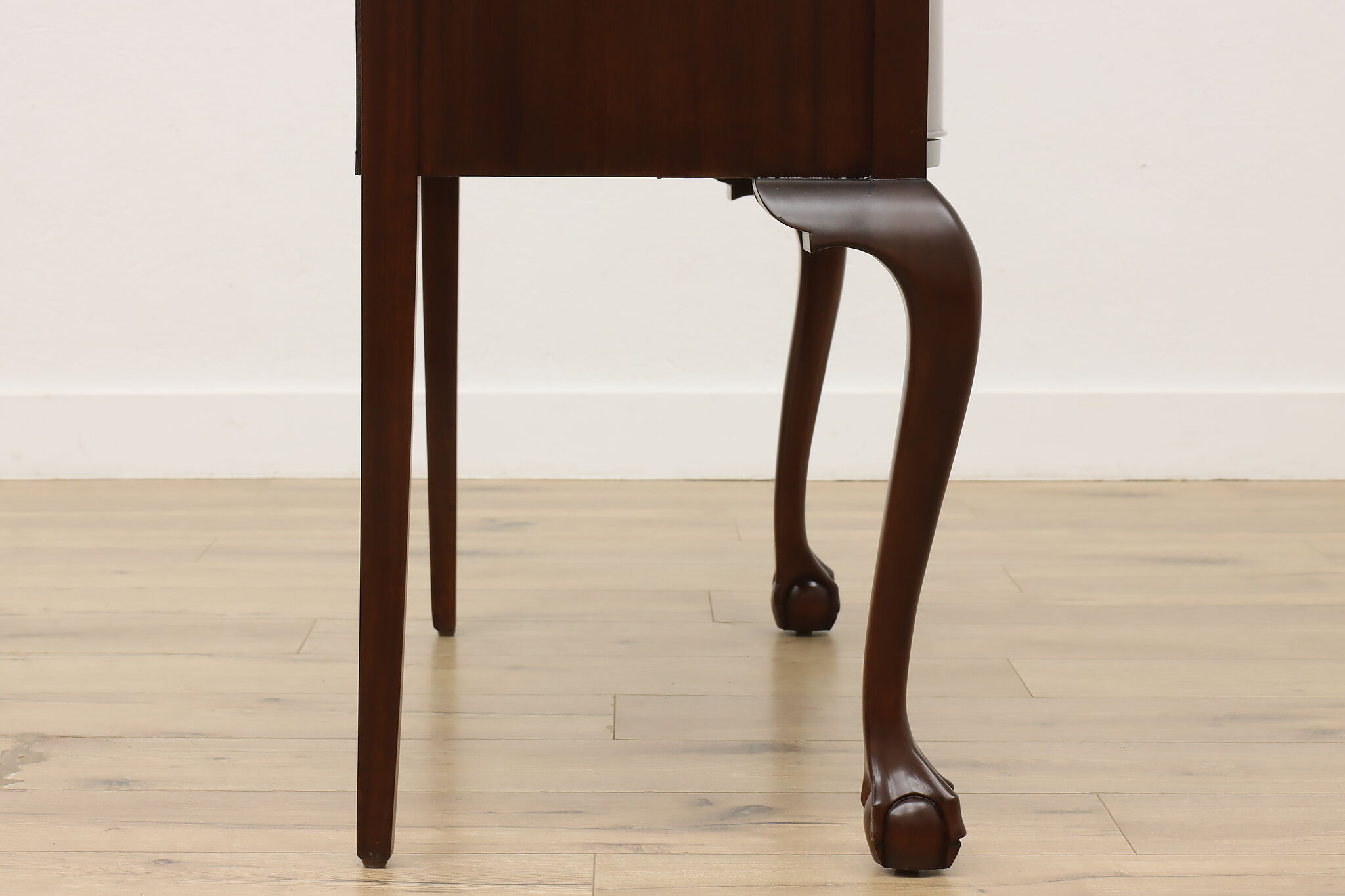 This lovely Georgian design buffet, server or hall console has gracefully curved legs with ball and claw feet for a polished look.