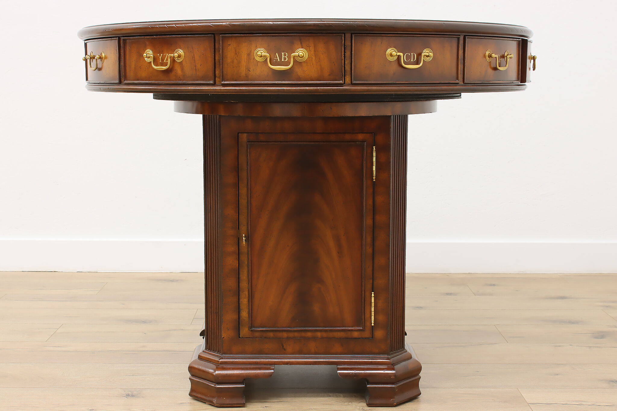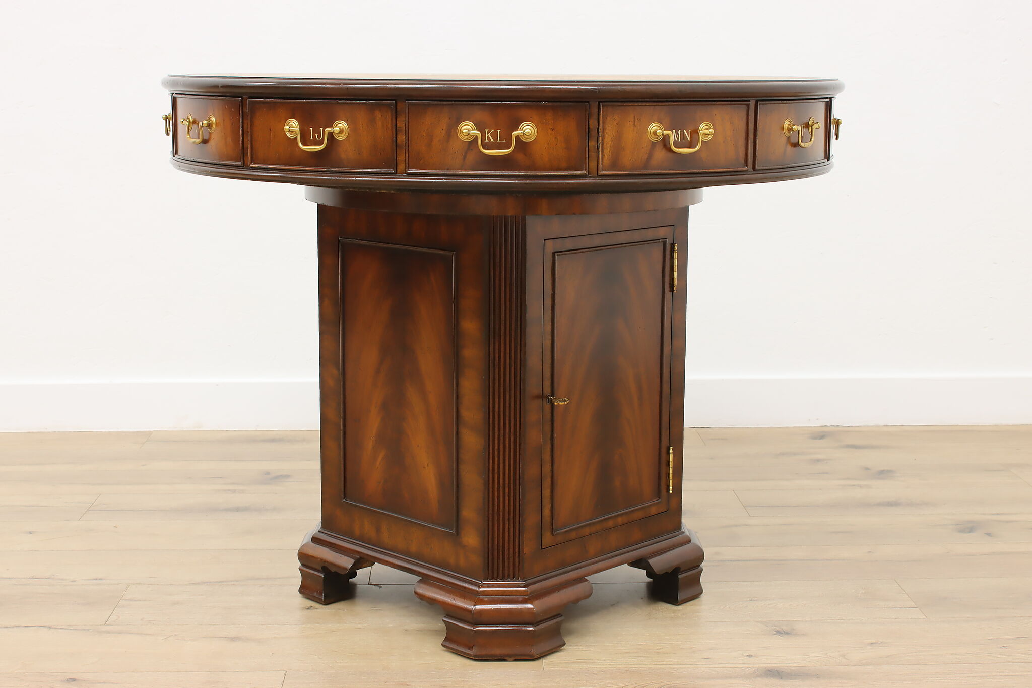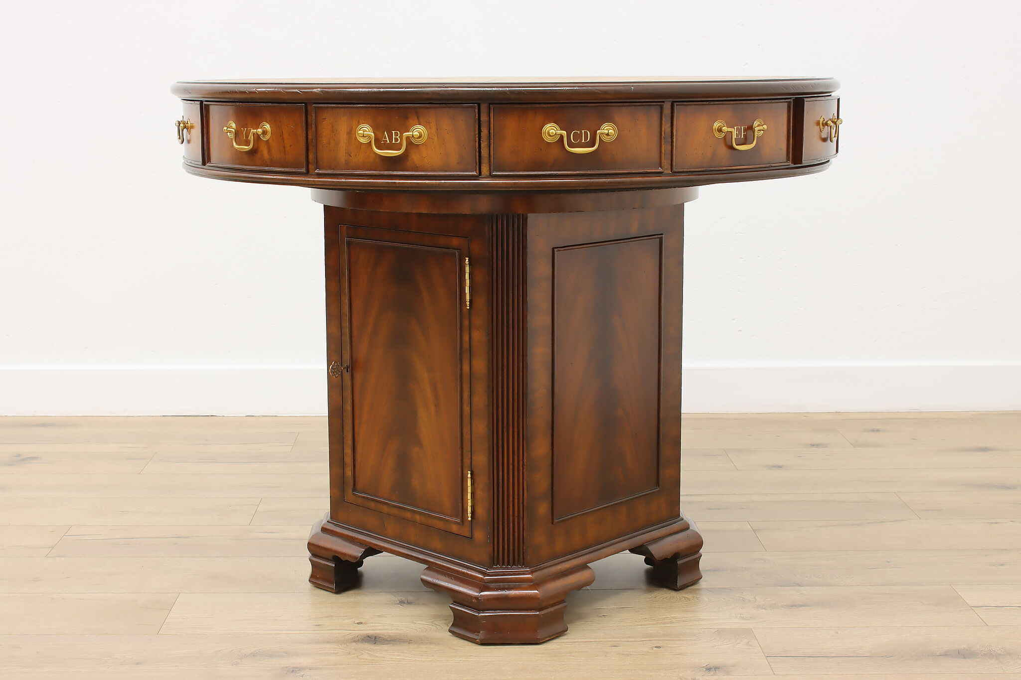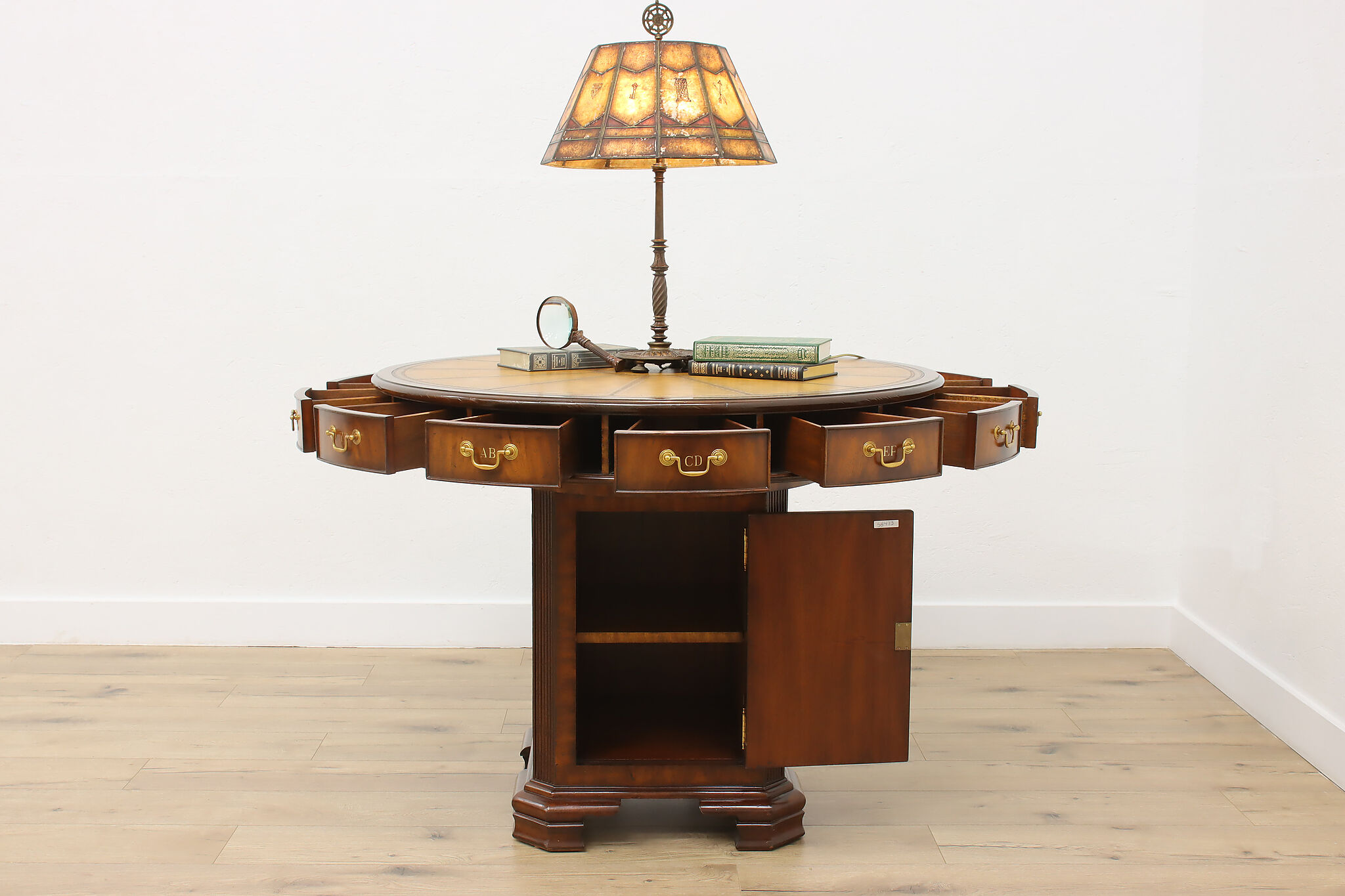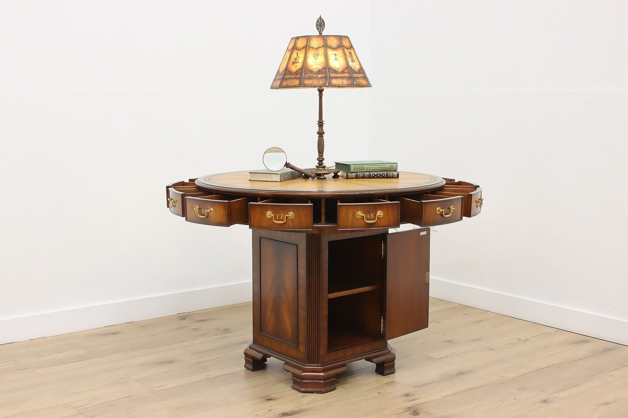 This Georgian design "rent" table has a unique rotating top with thirteen drawers labeled A-Z, perfect for a landlord or business!