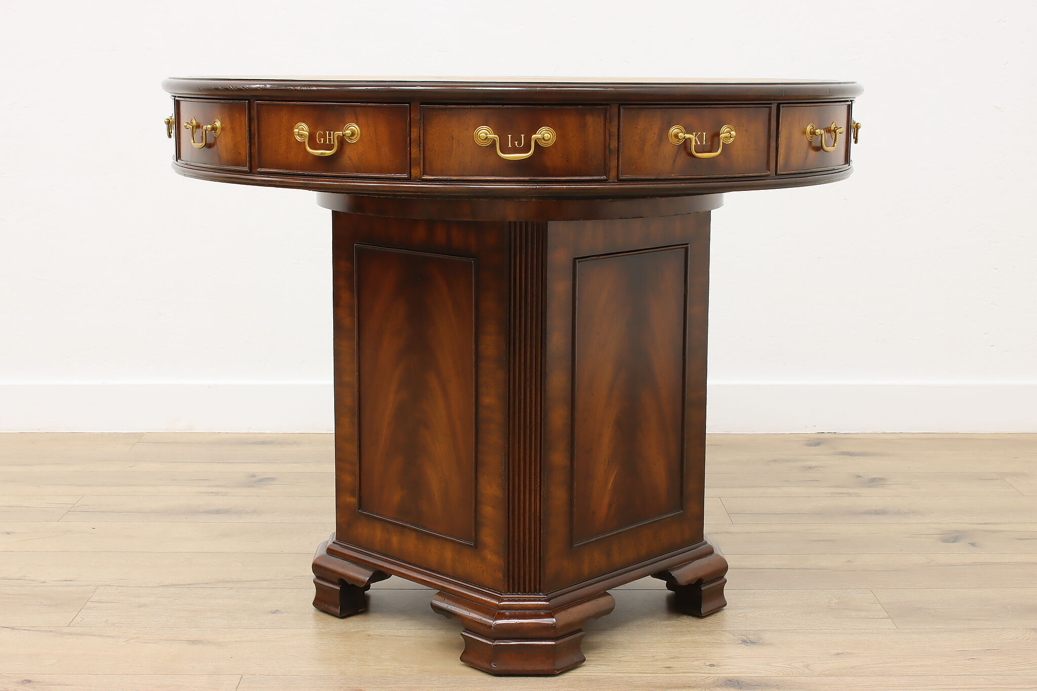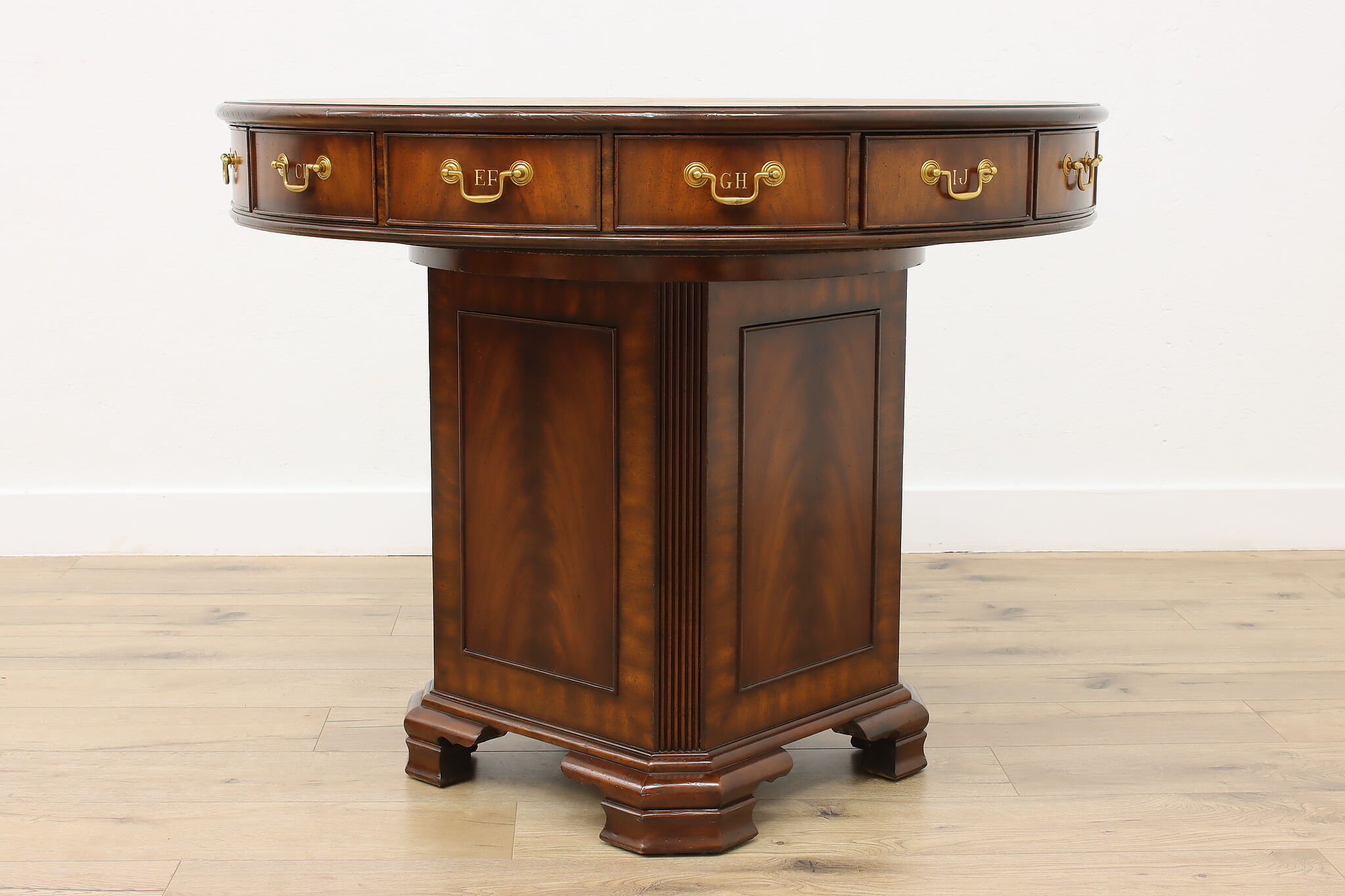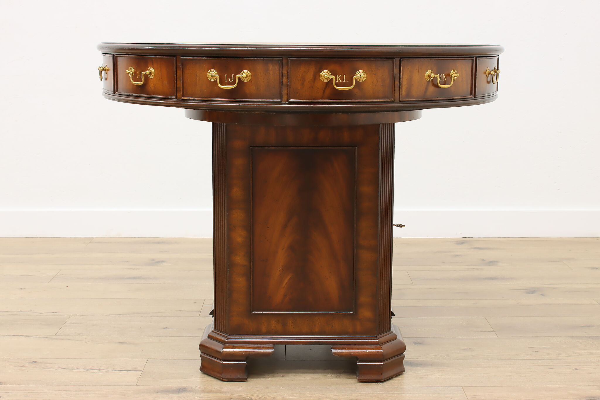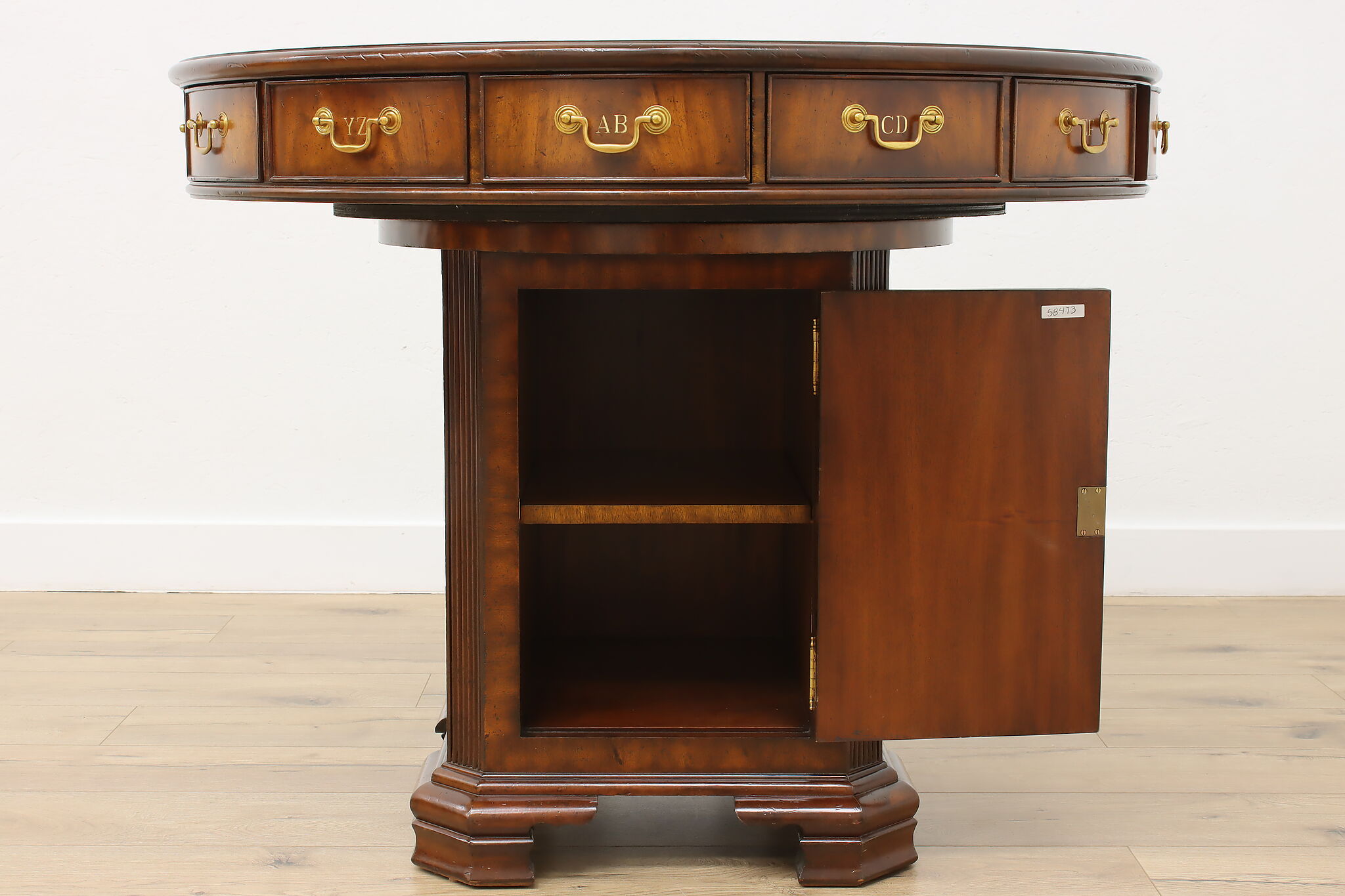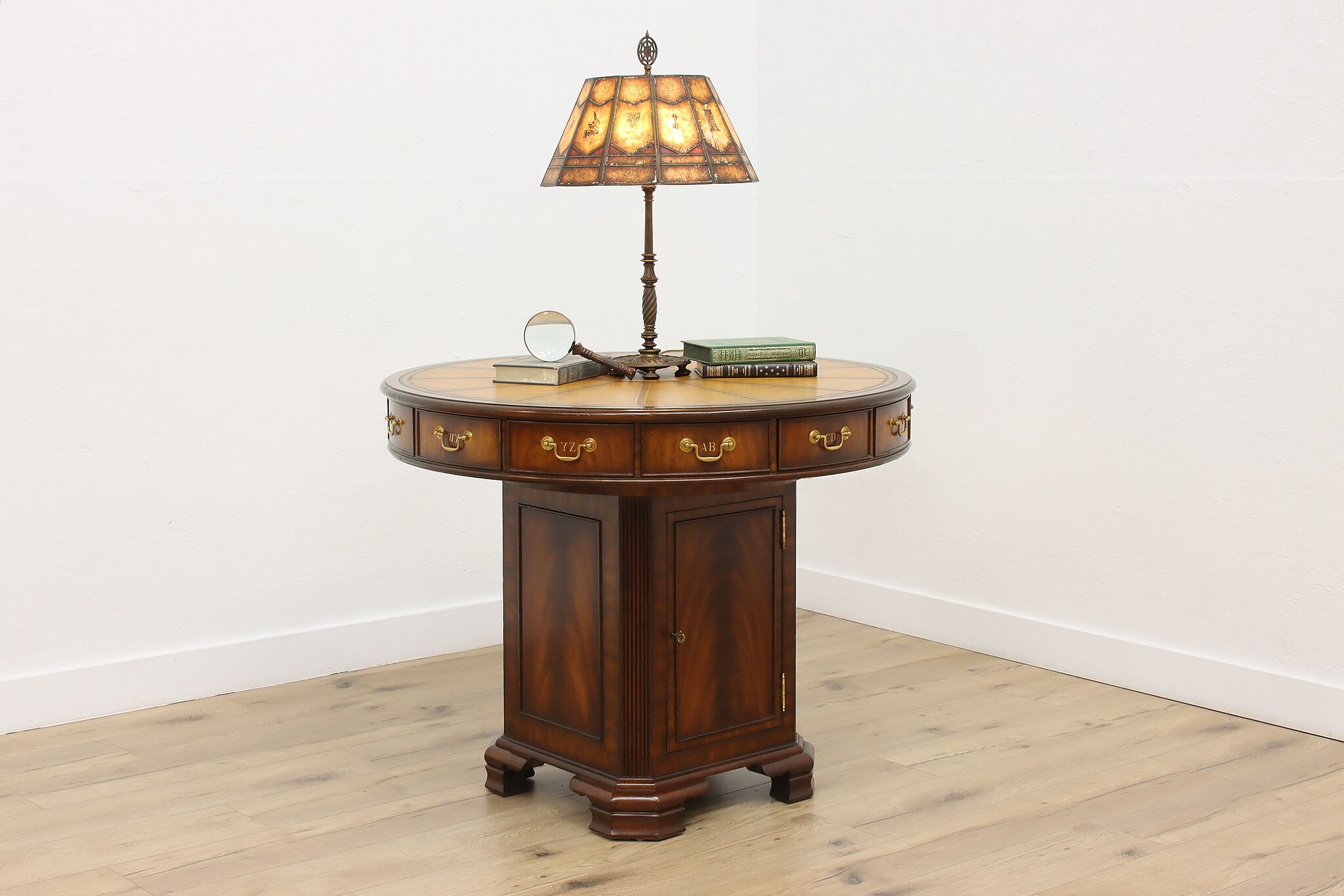 This Georgian design "rent" table has a unique rotating top with thirteen drawers labeled A-Z, perfect for a landlord or business!