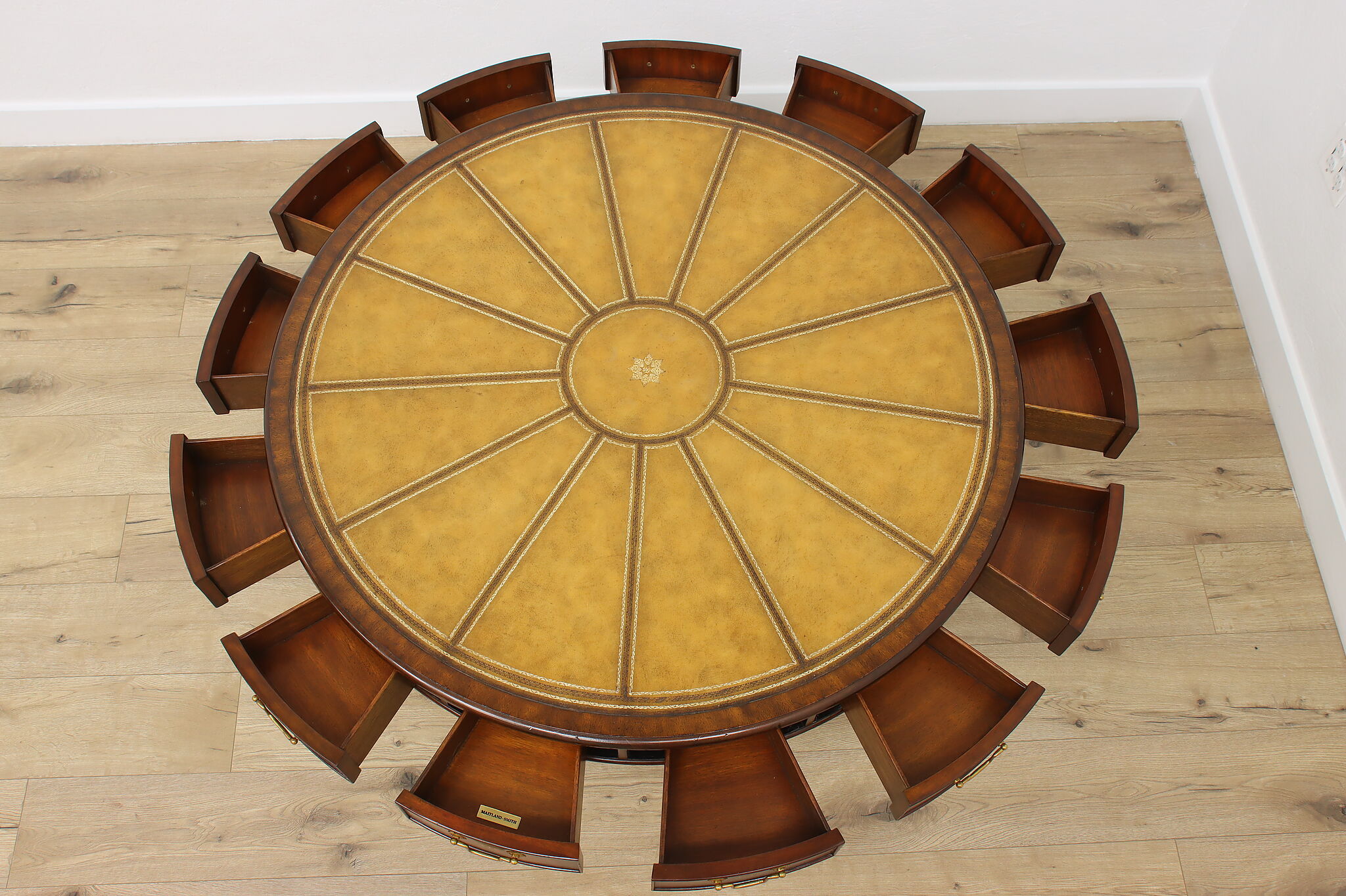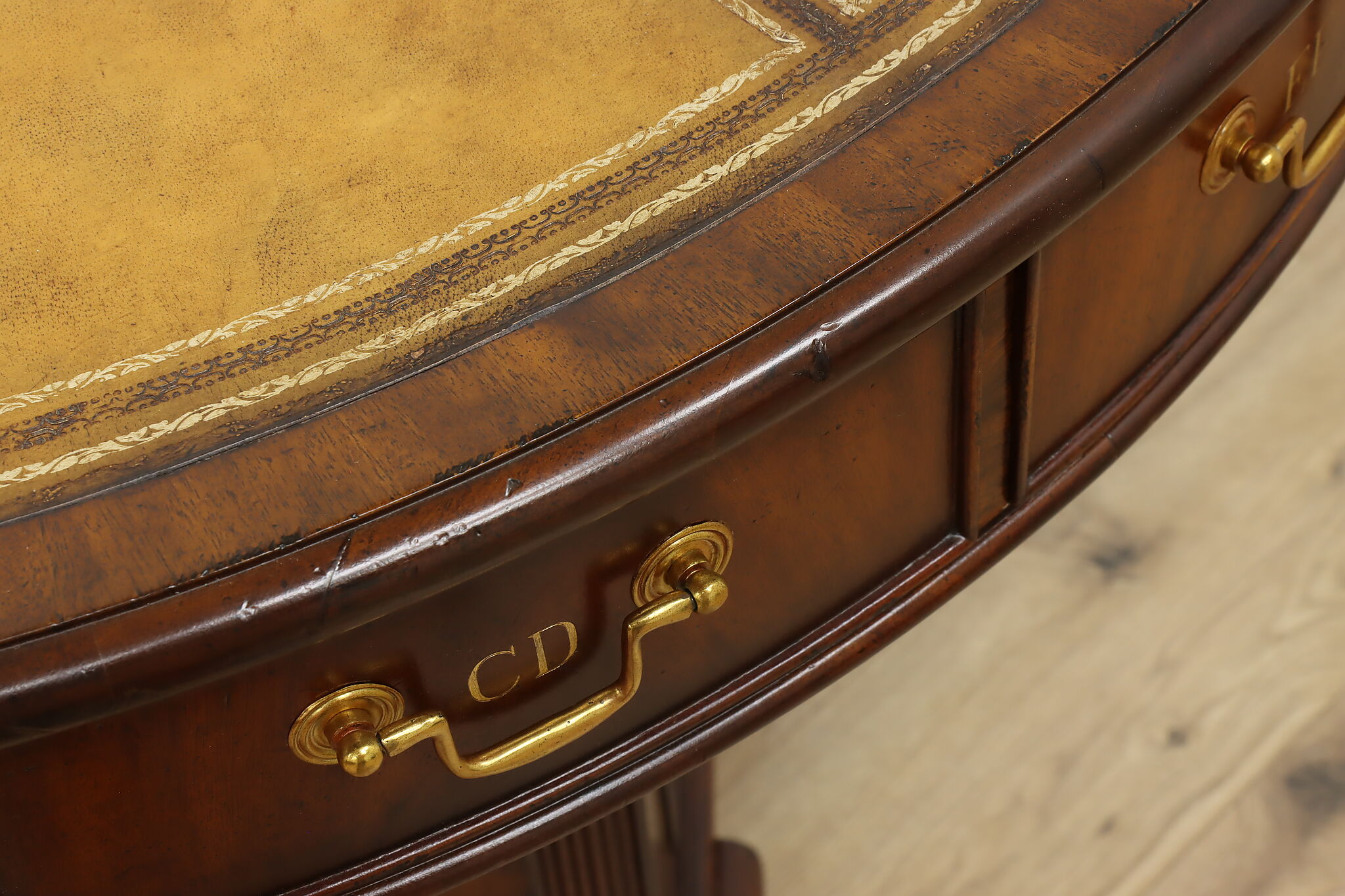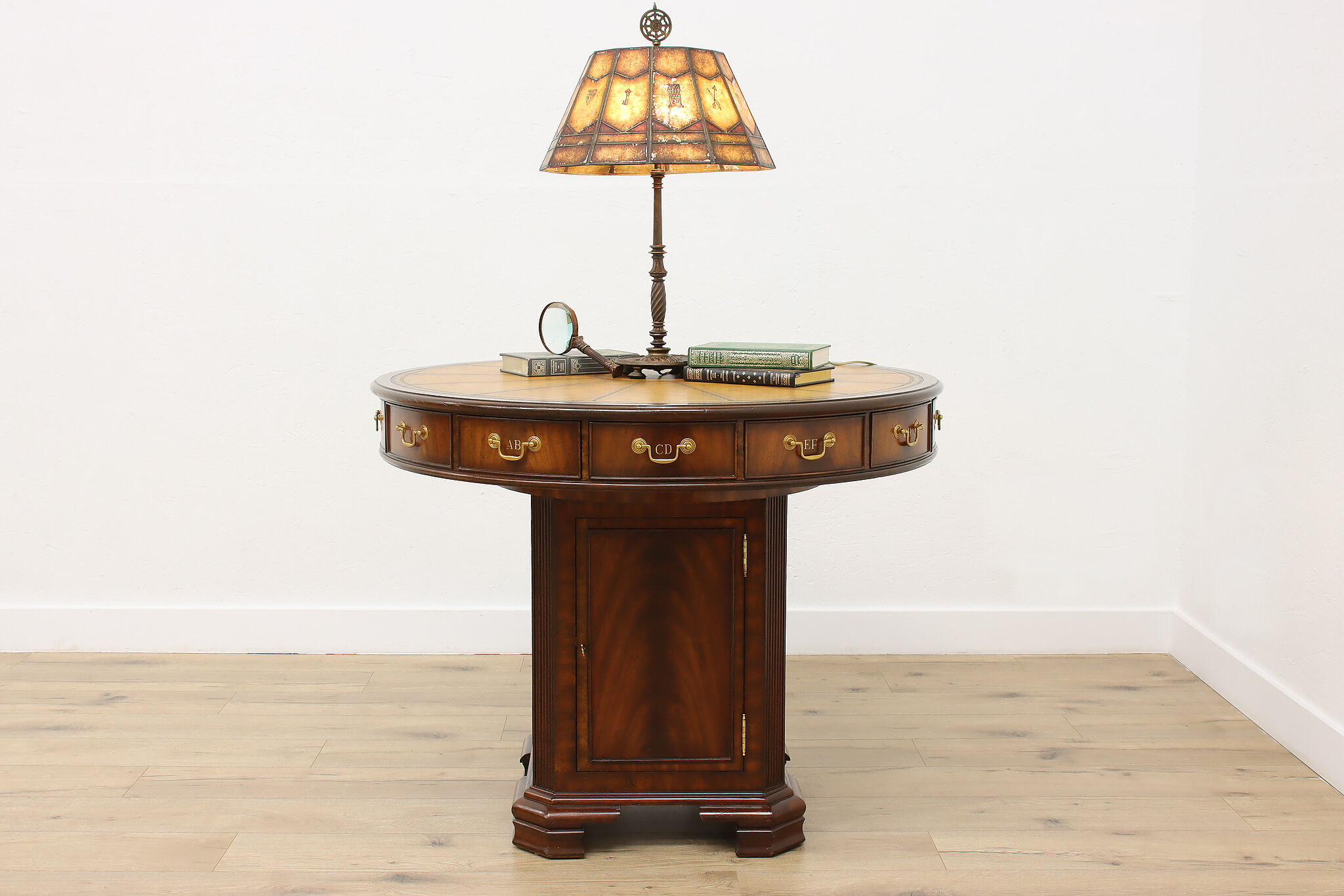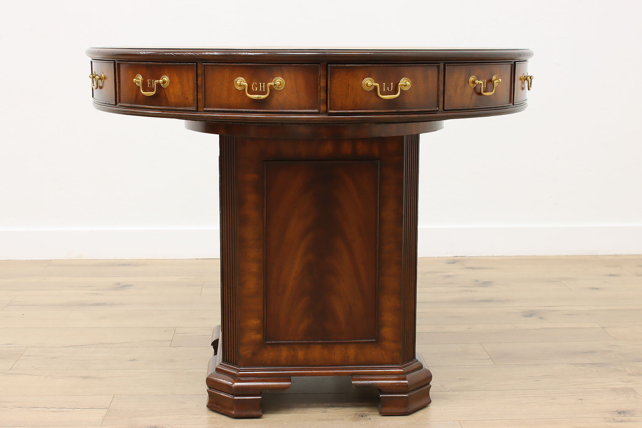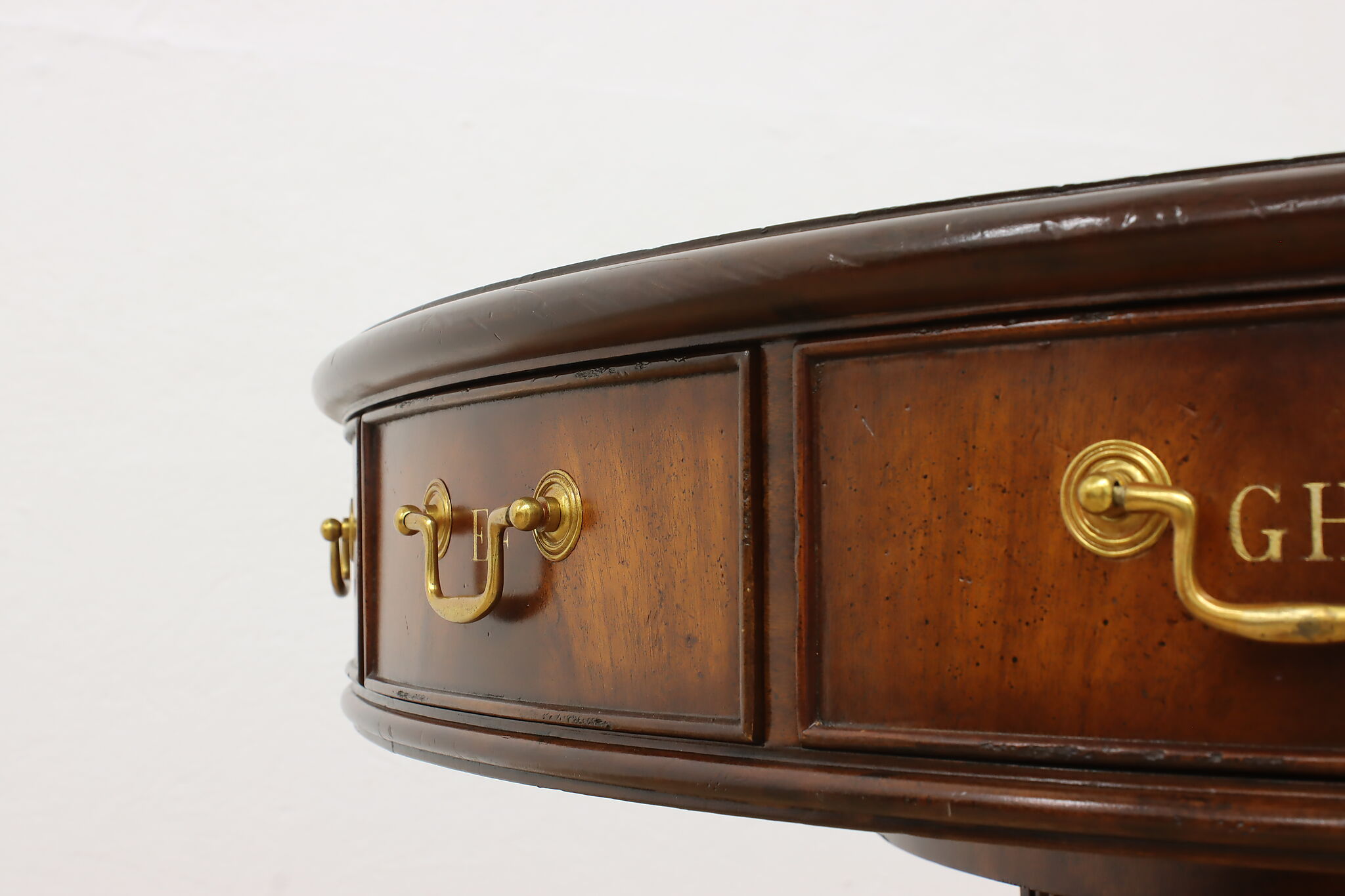 This Georgian design "rent" table has a unique rotating top with thirteen drawers labeled A-Z, perfect for a landlord or business!