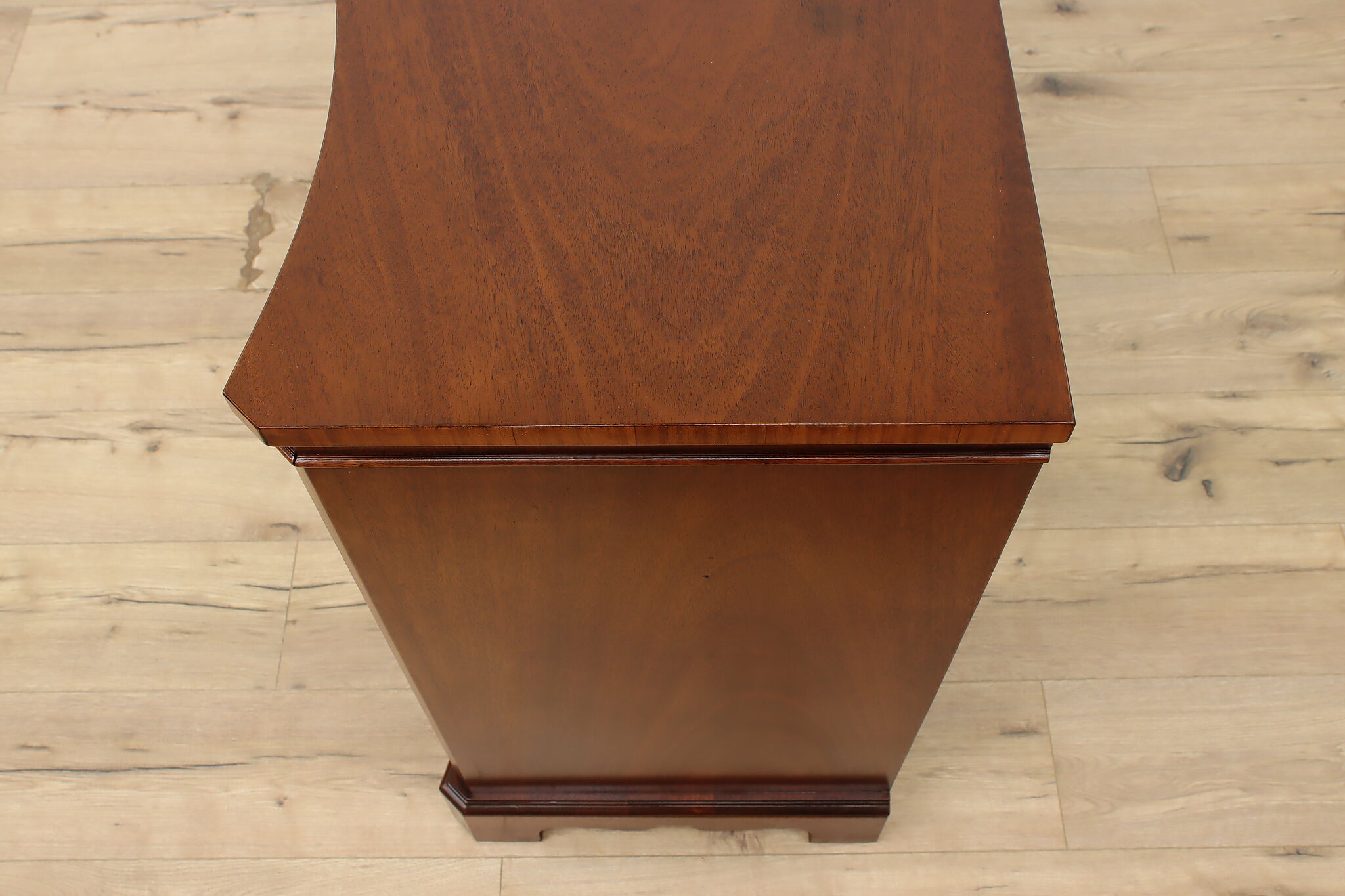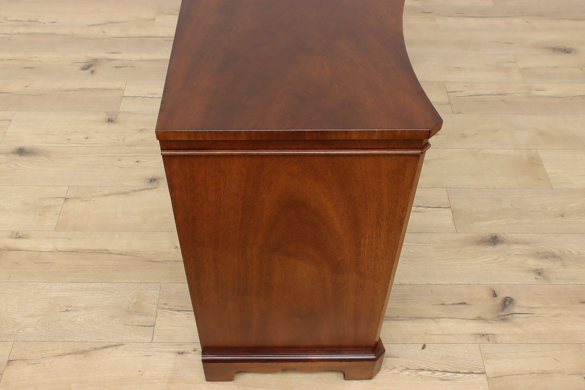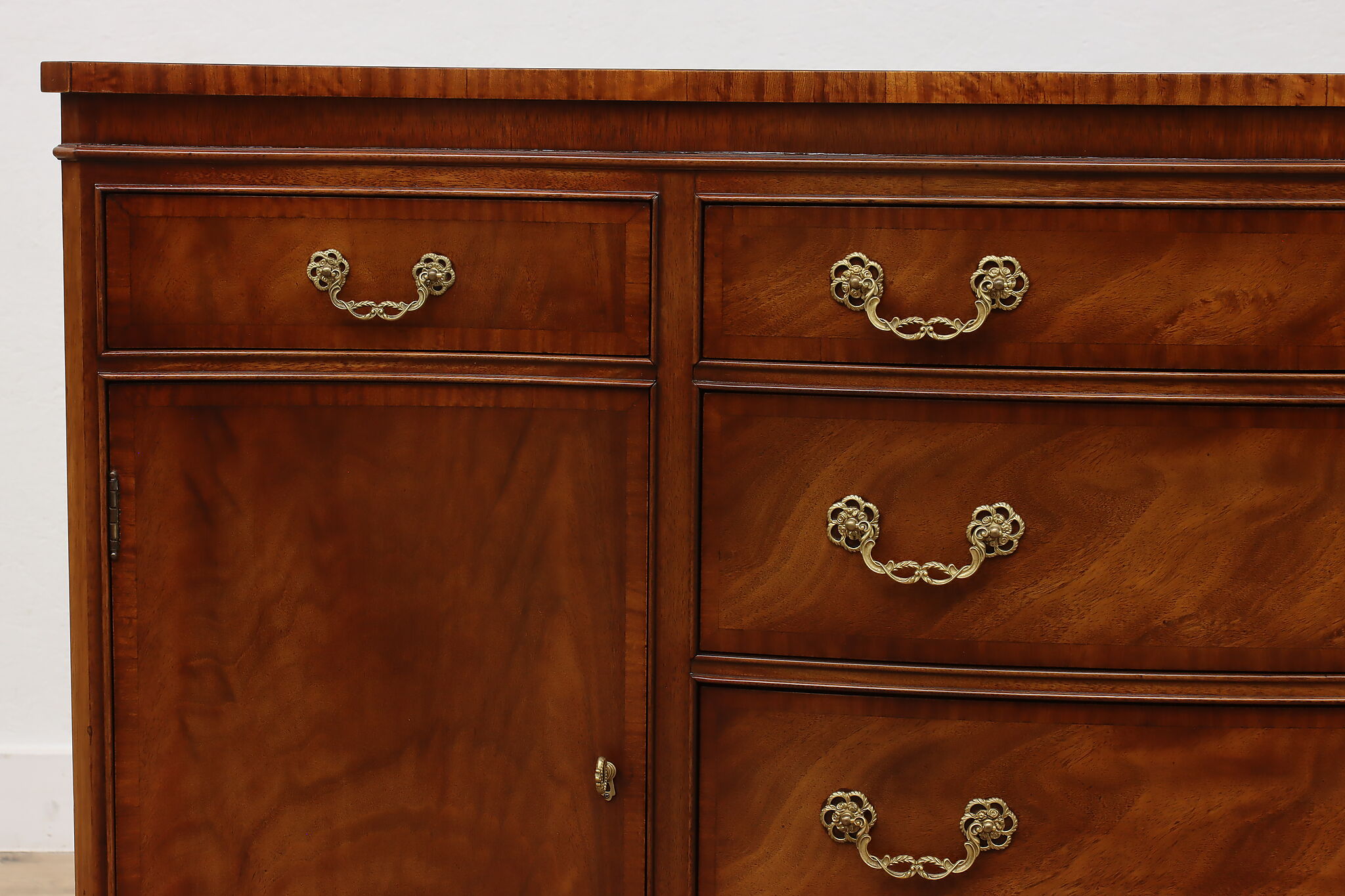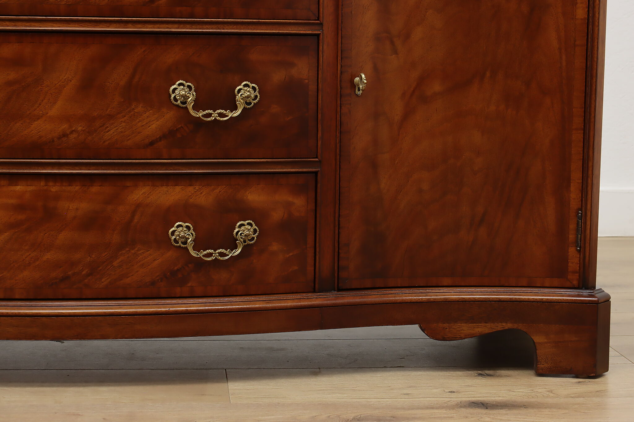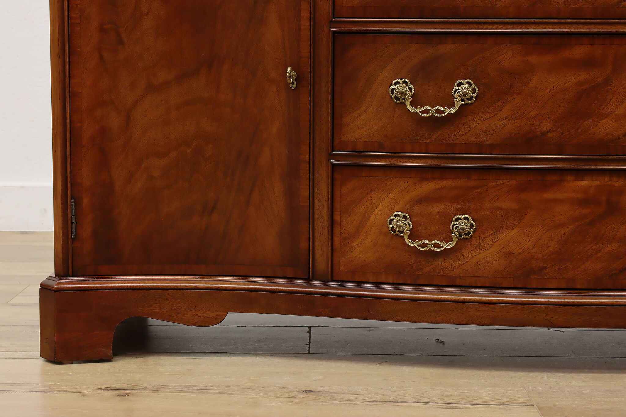 A carefully curated collection of furniture can turn a plain room into a sophisticated space by adding elegant pieces such as this Georgian design buffet or bar cabinet with a gracefully curved serpentine front.