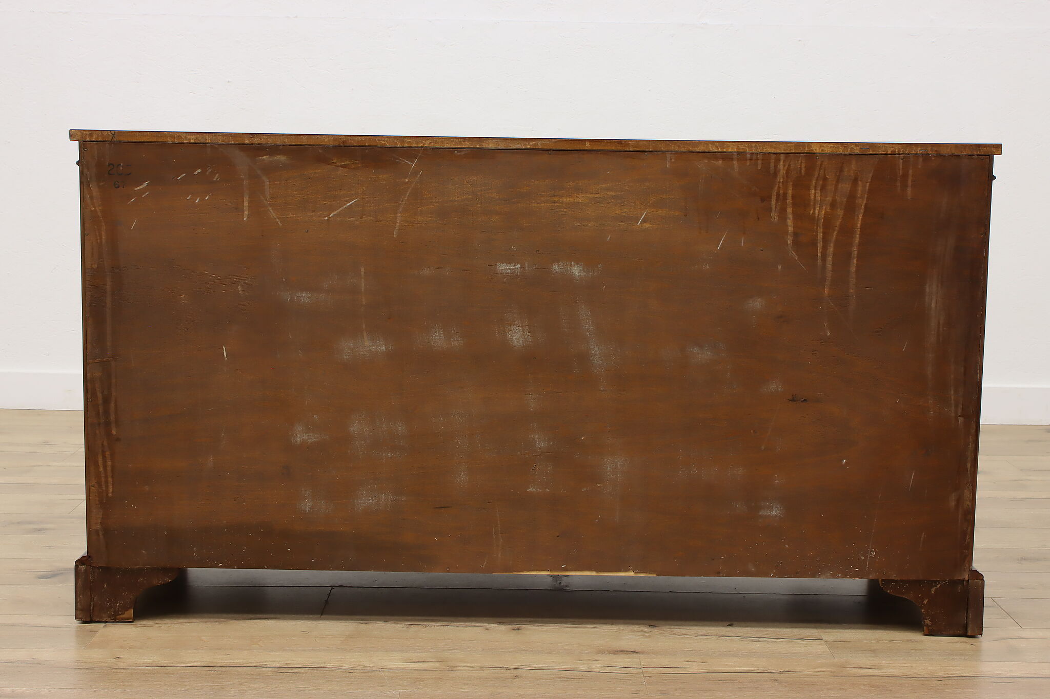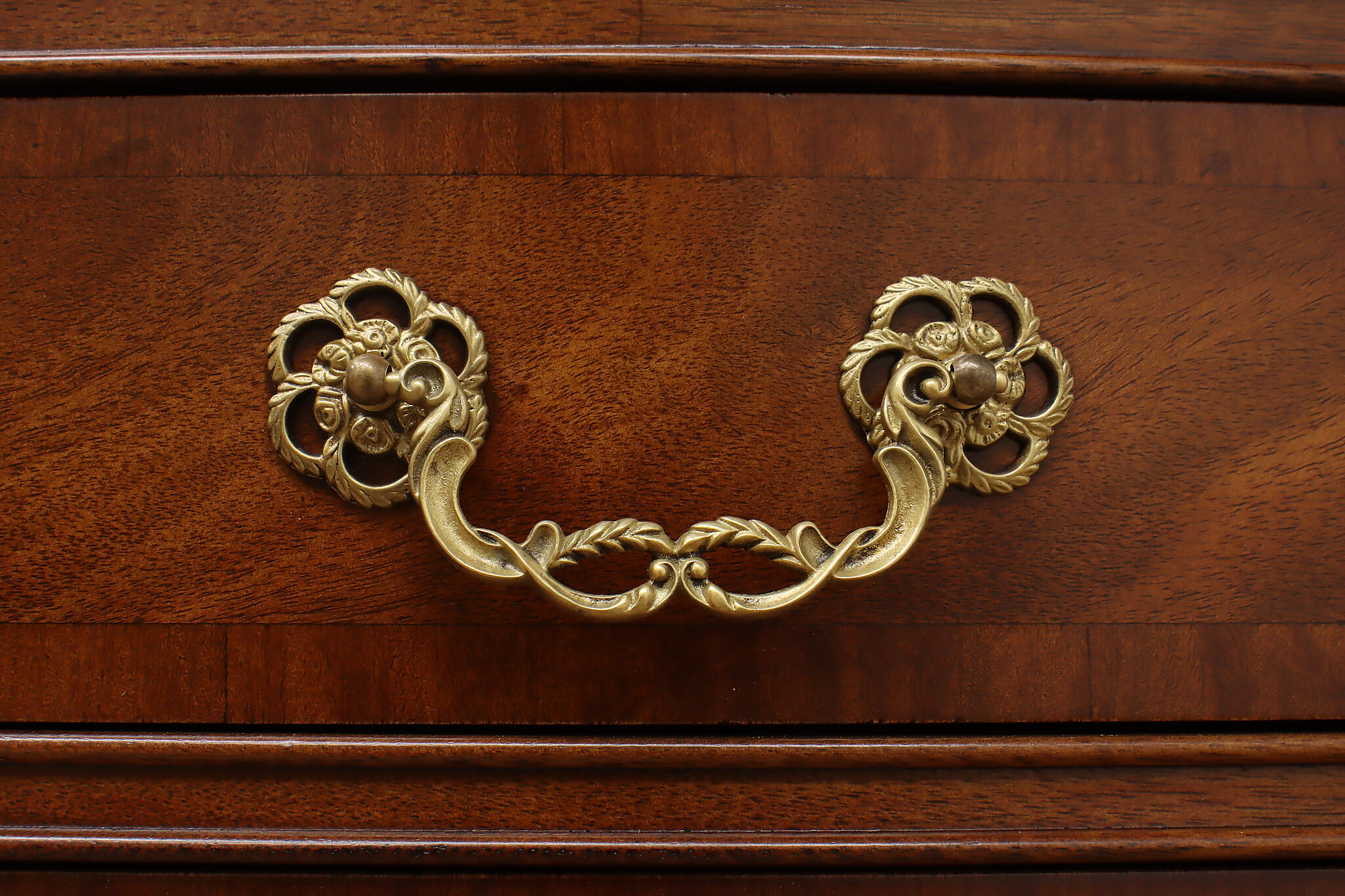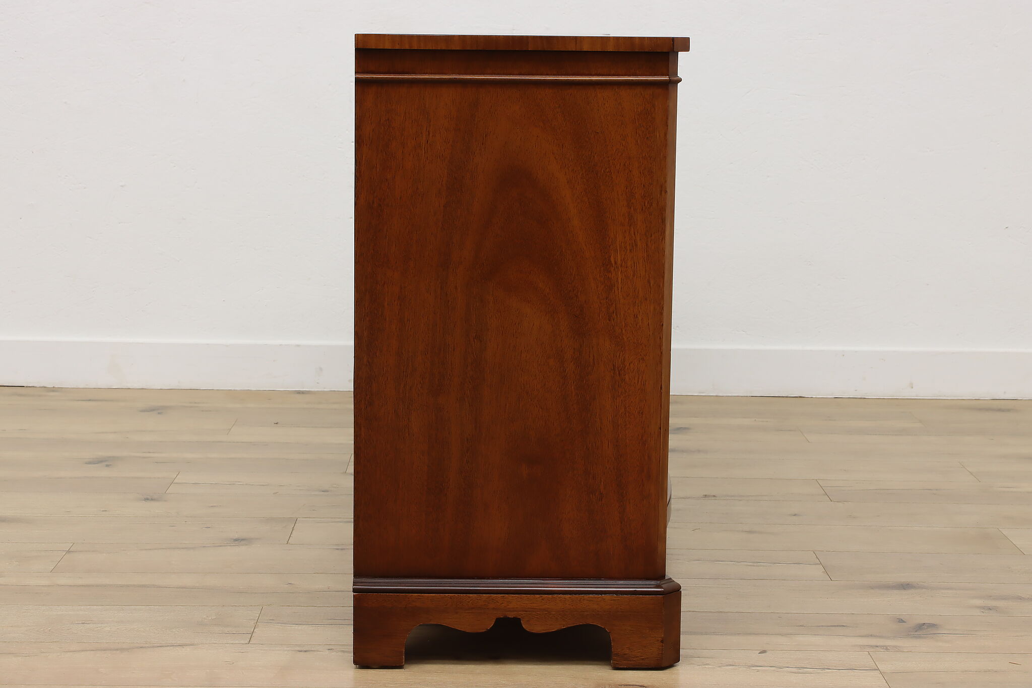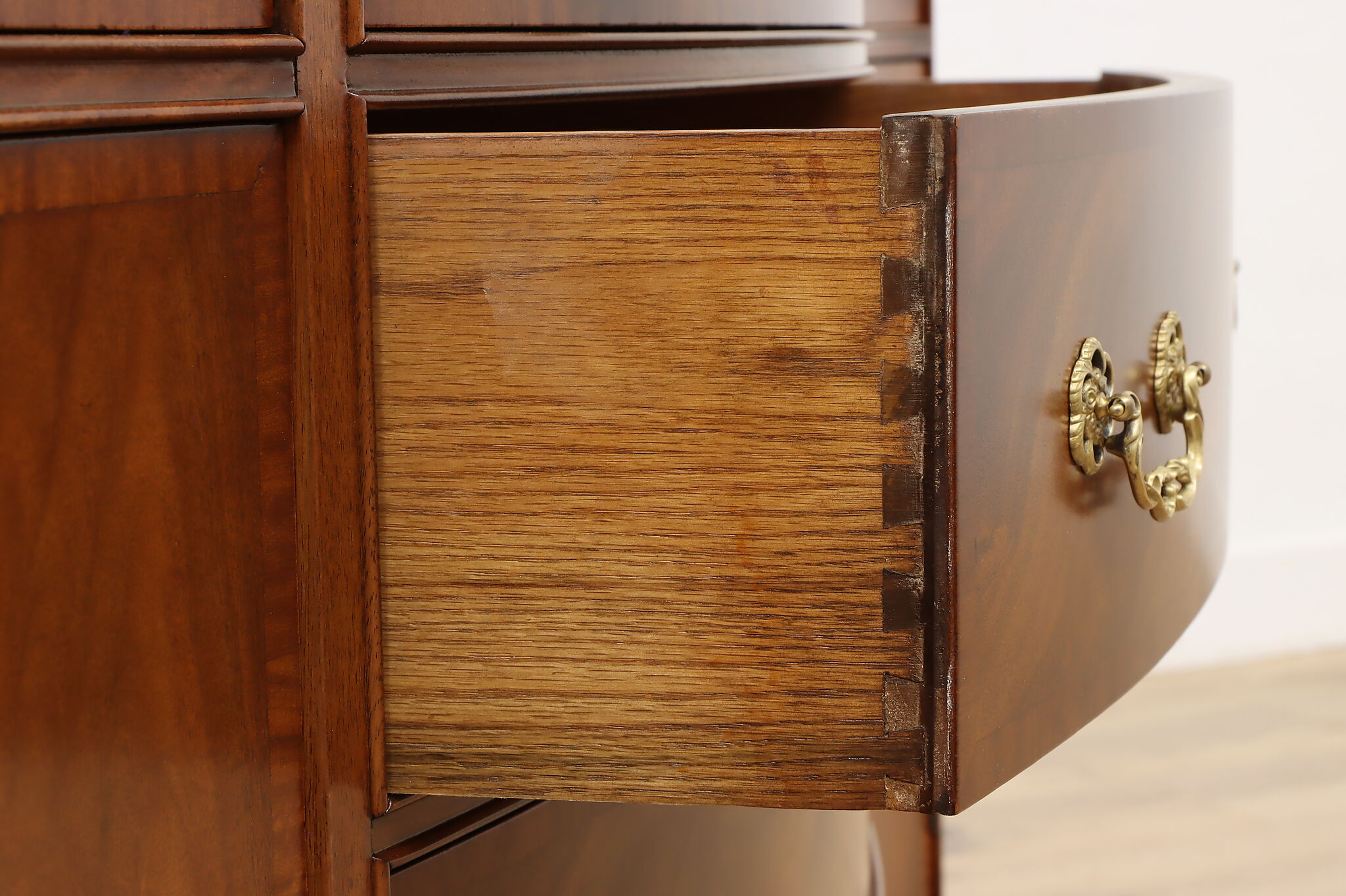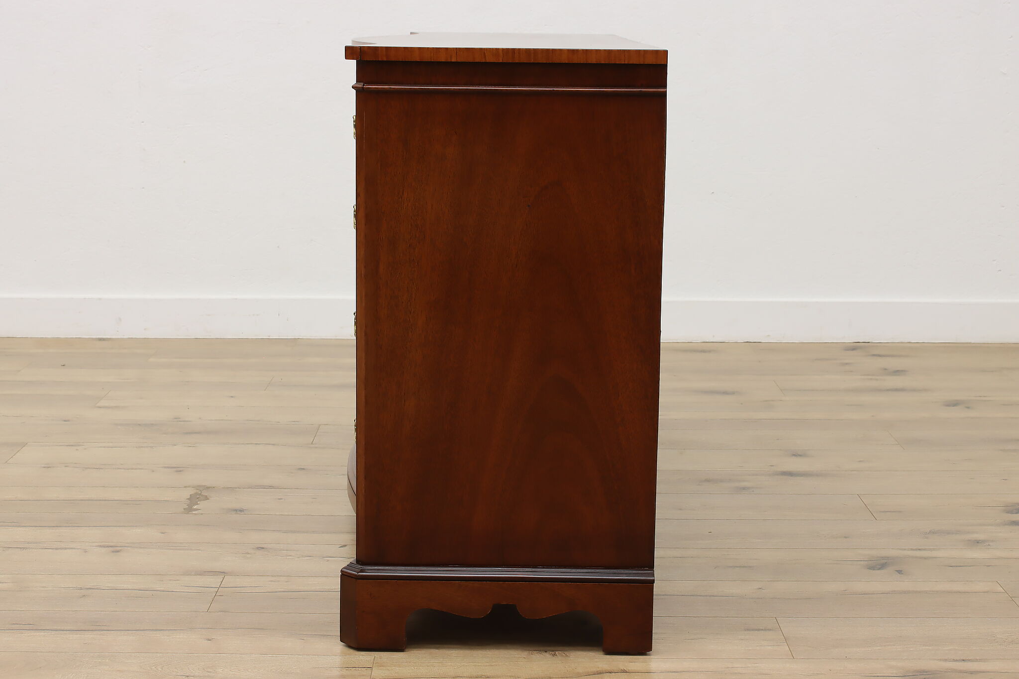 A carefully curated collection of furniture can turn a plain room into a sophisticated space by adding elegant pieces such as this Georgian design buffet or bar cabinet with a gracefully curved serpentine front.