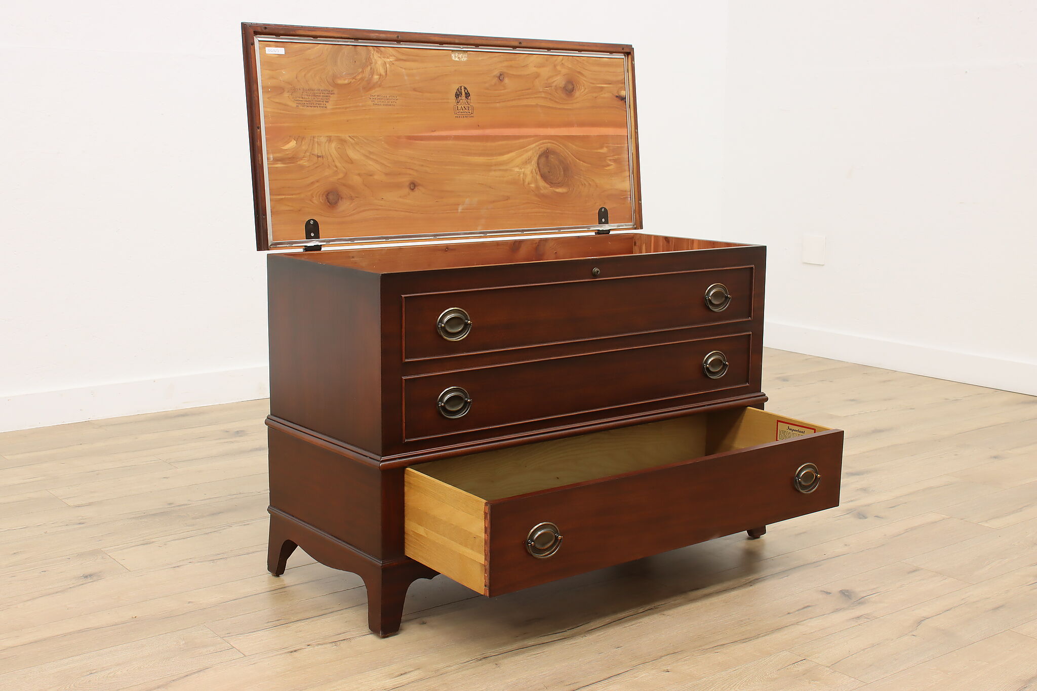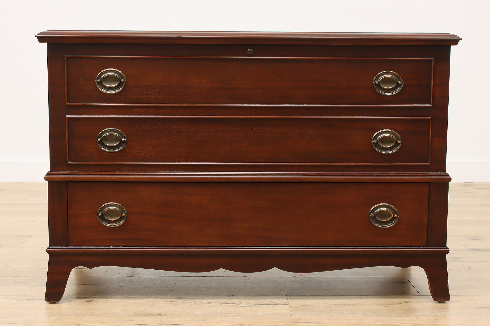 This Georgian design blanket or trunk is lined with aromatic cedar to keep clothes safe from hungry moths.