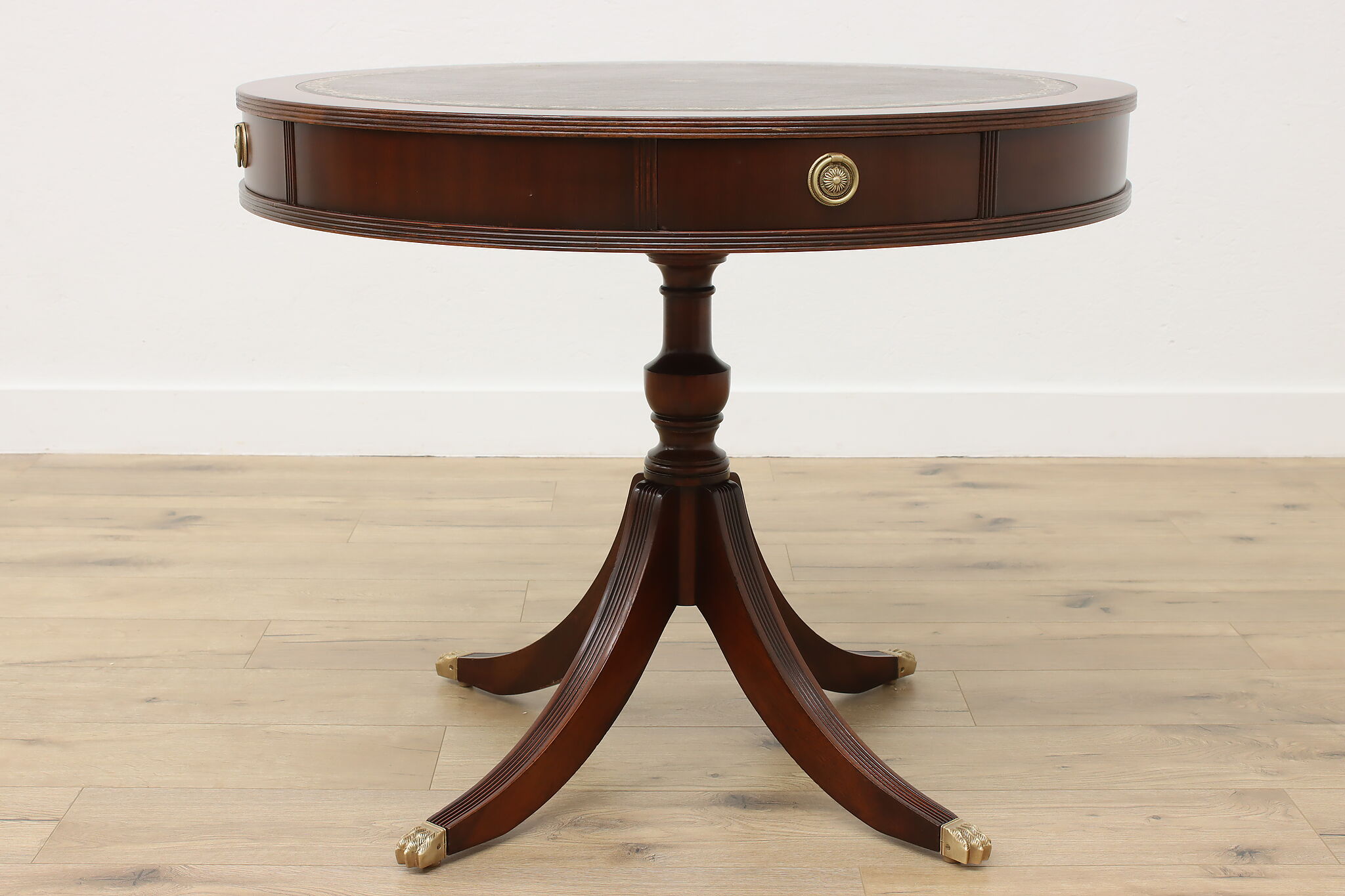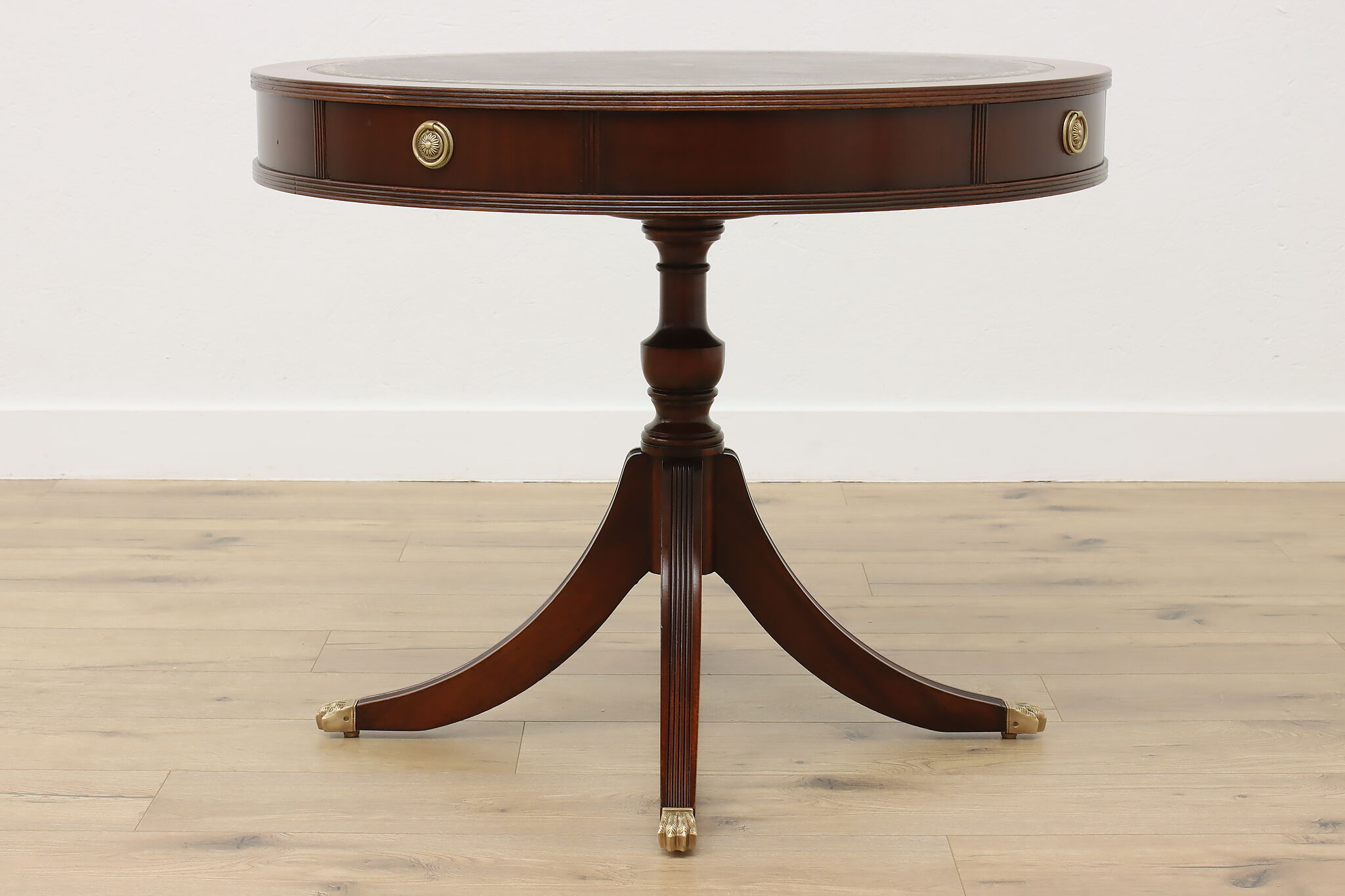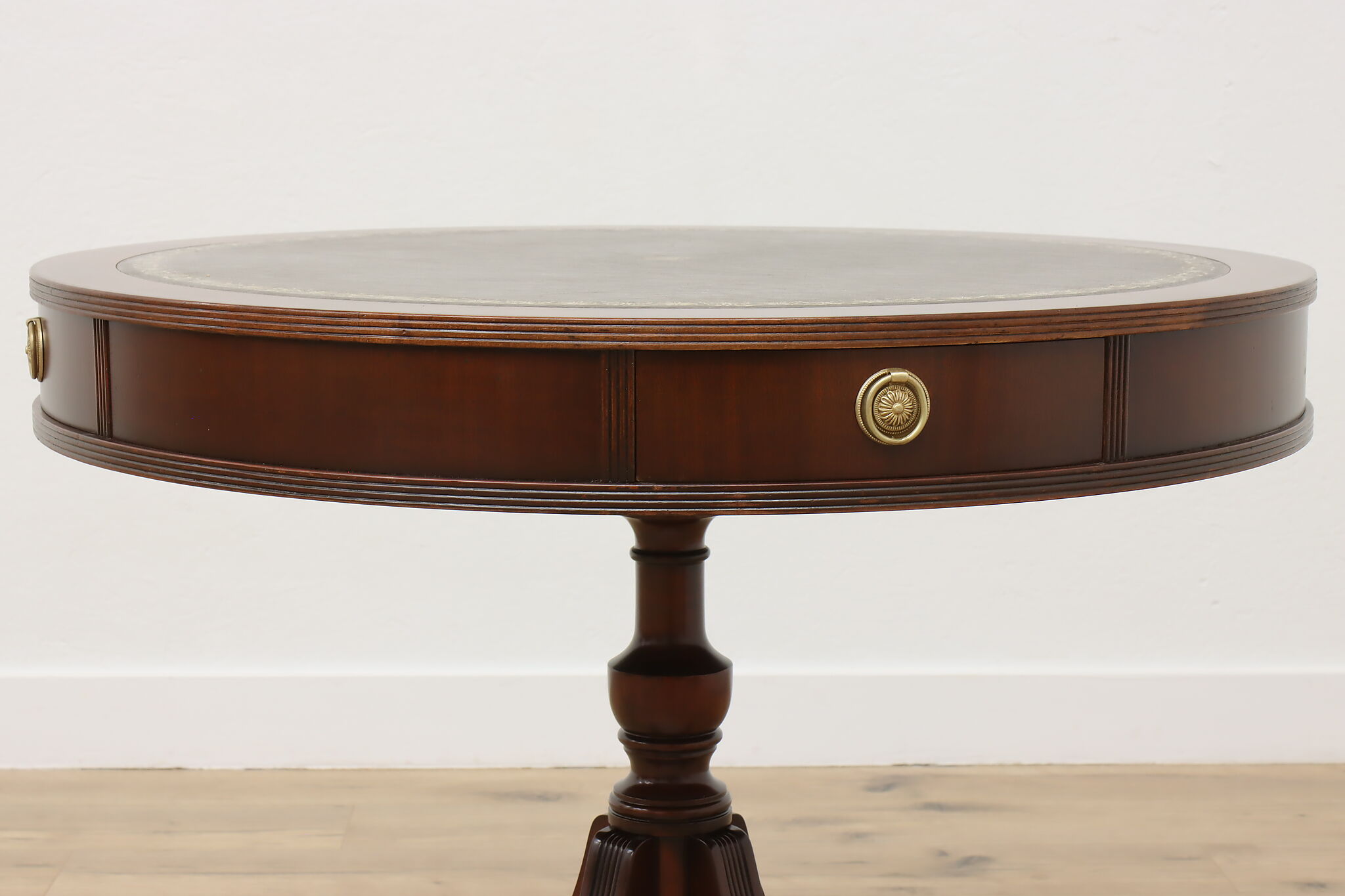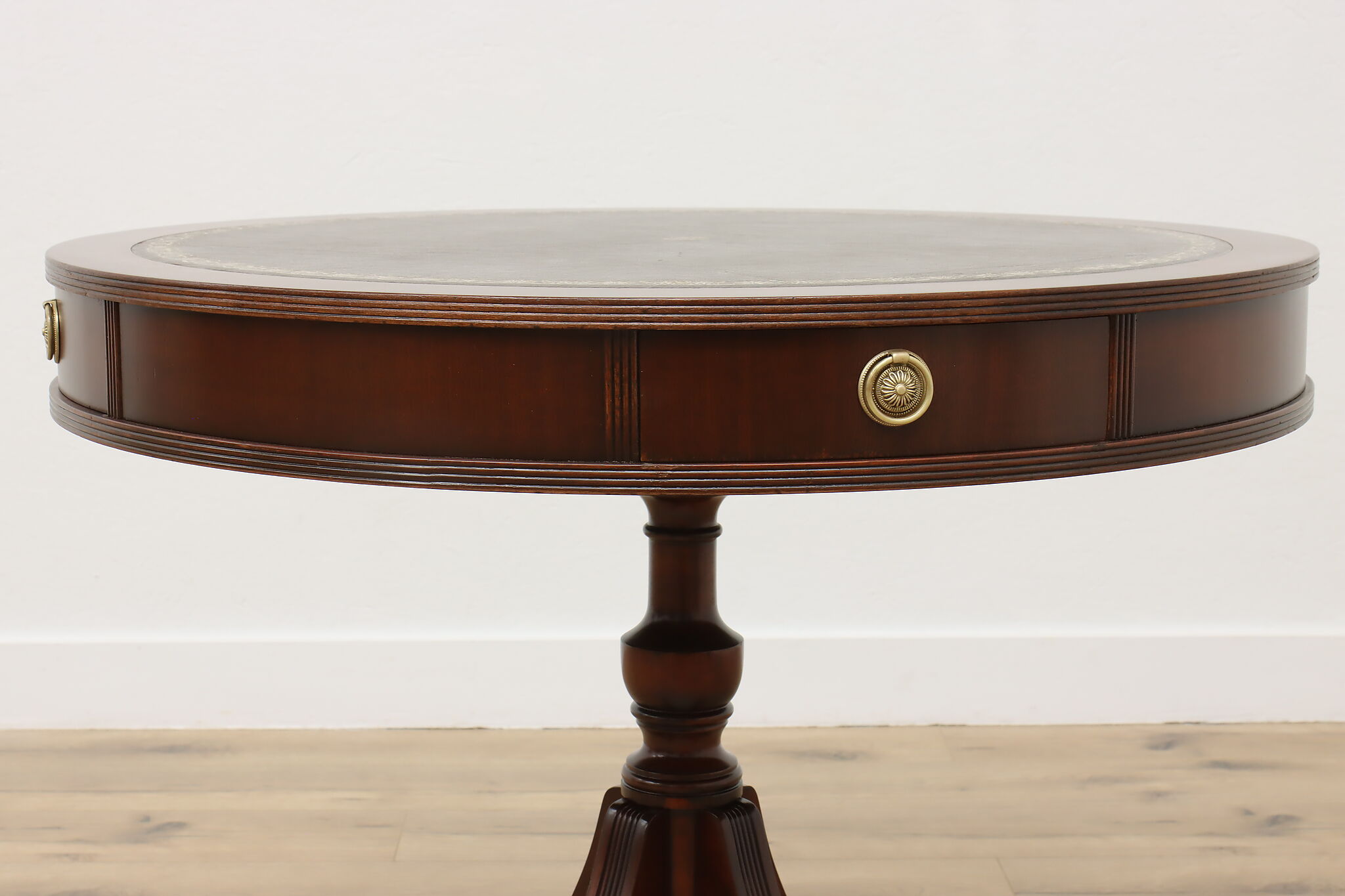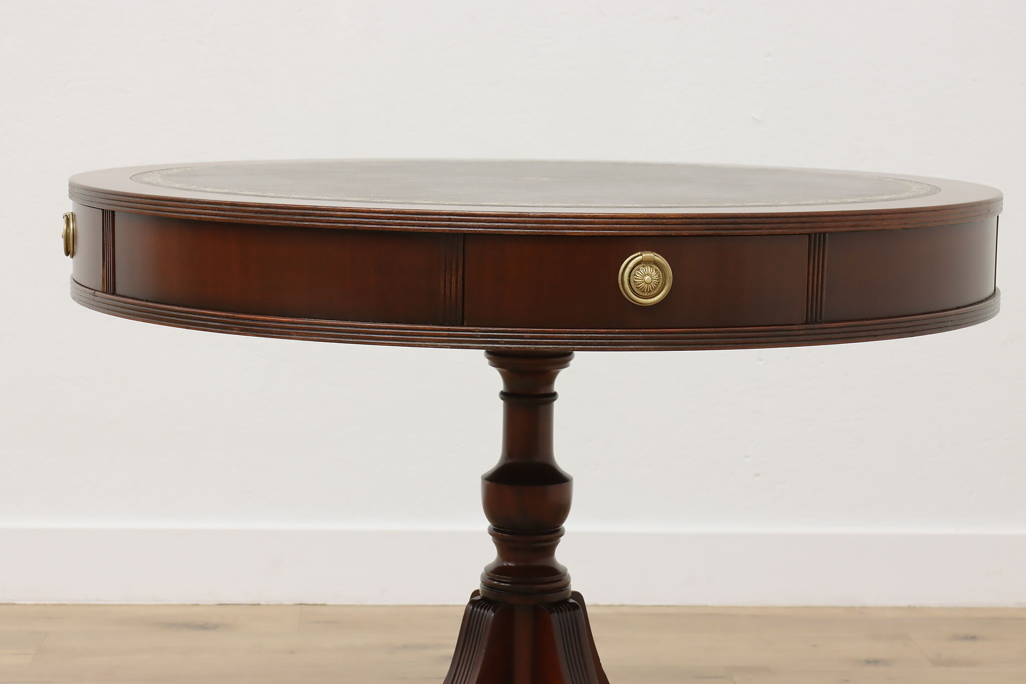 The traditional Georgian drum table was designed during the late 18th century to be both functional and elegant in parlors and libraries.