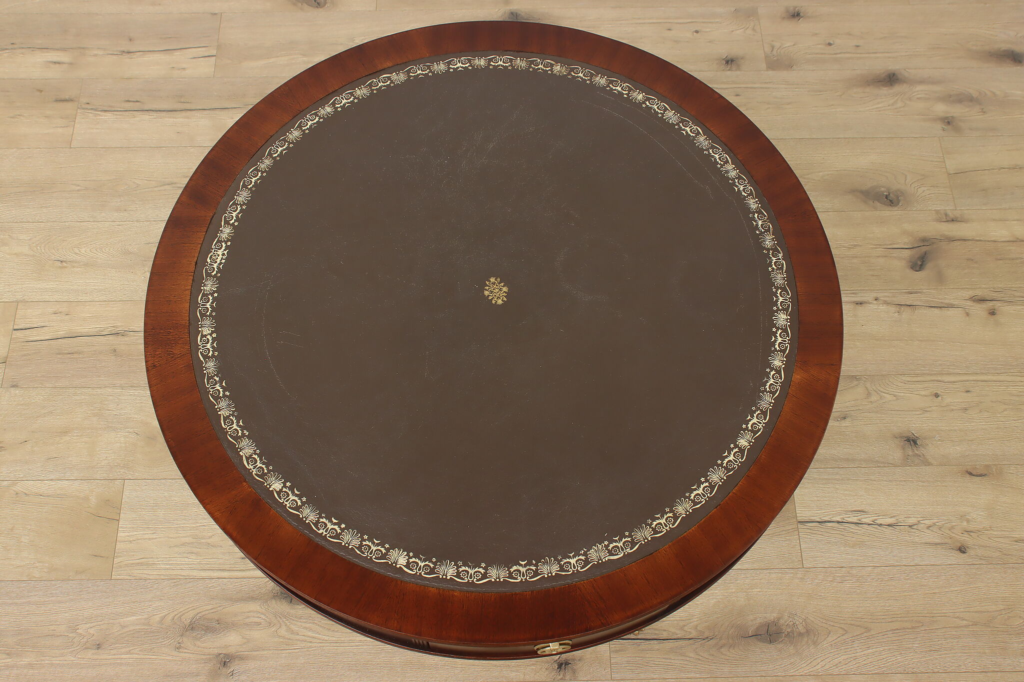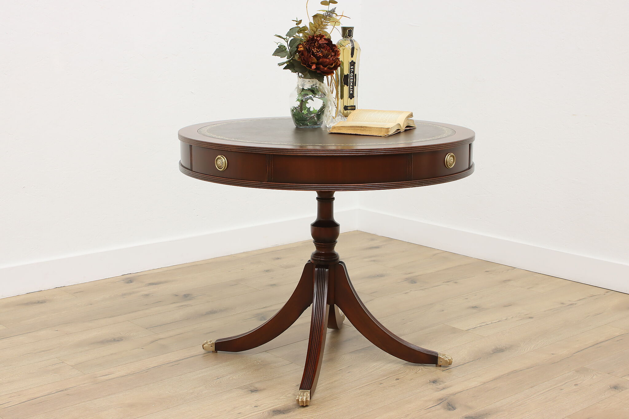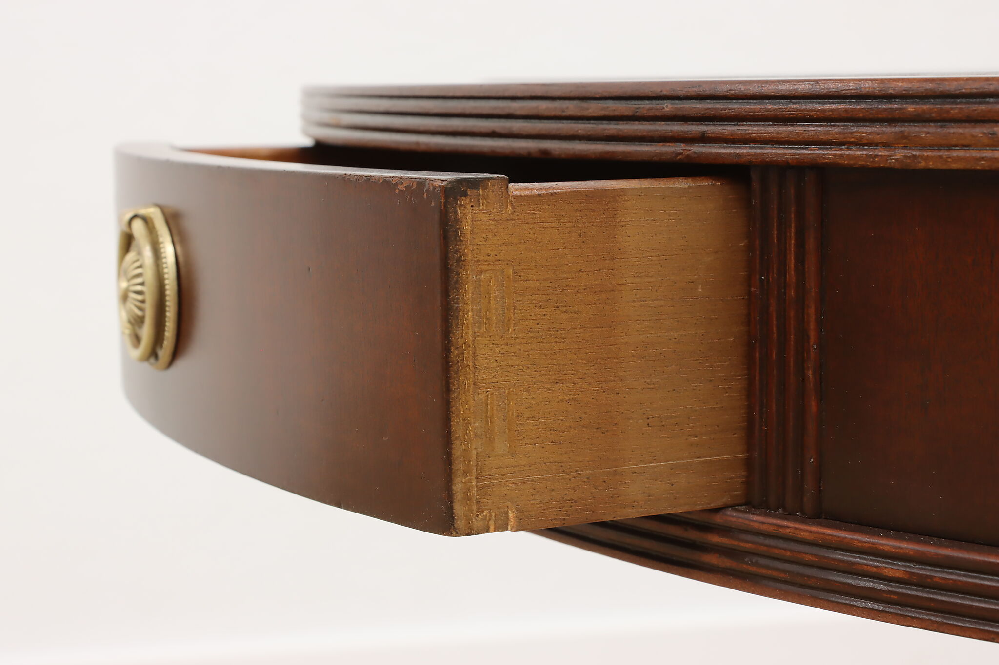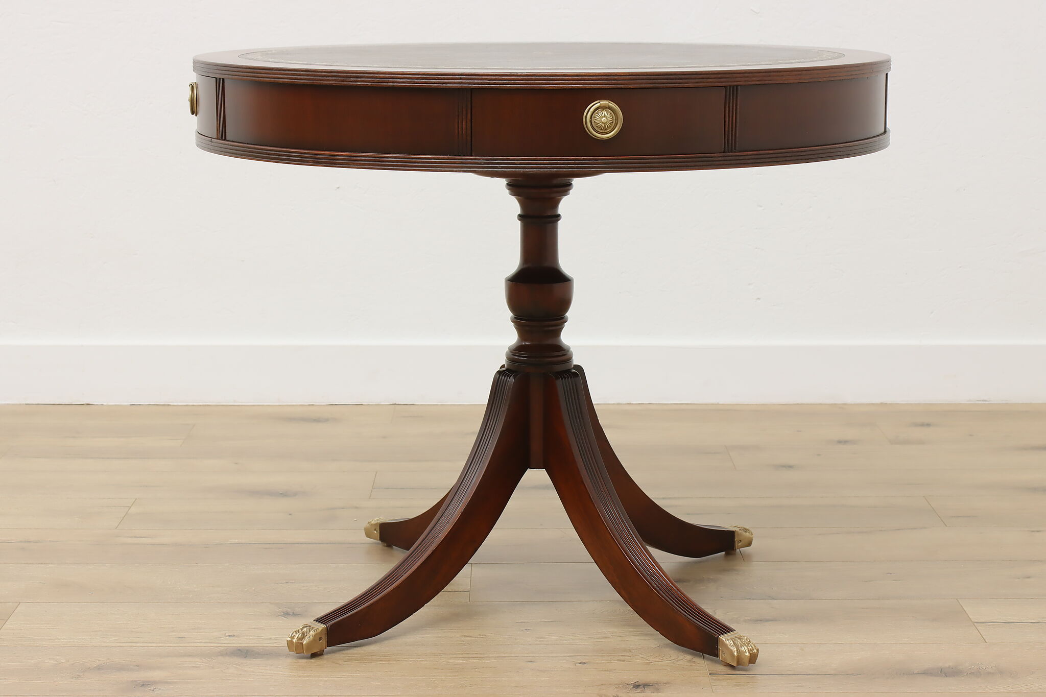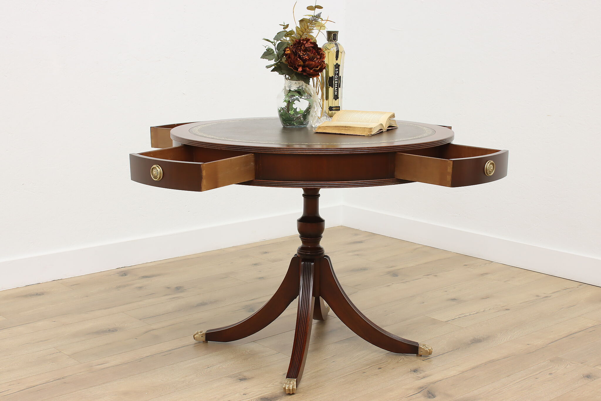The traditional Georgian drum table was designed during the late 18th century to be both functional and elegant in parlors and libraries.