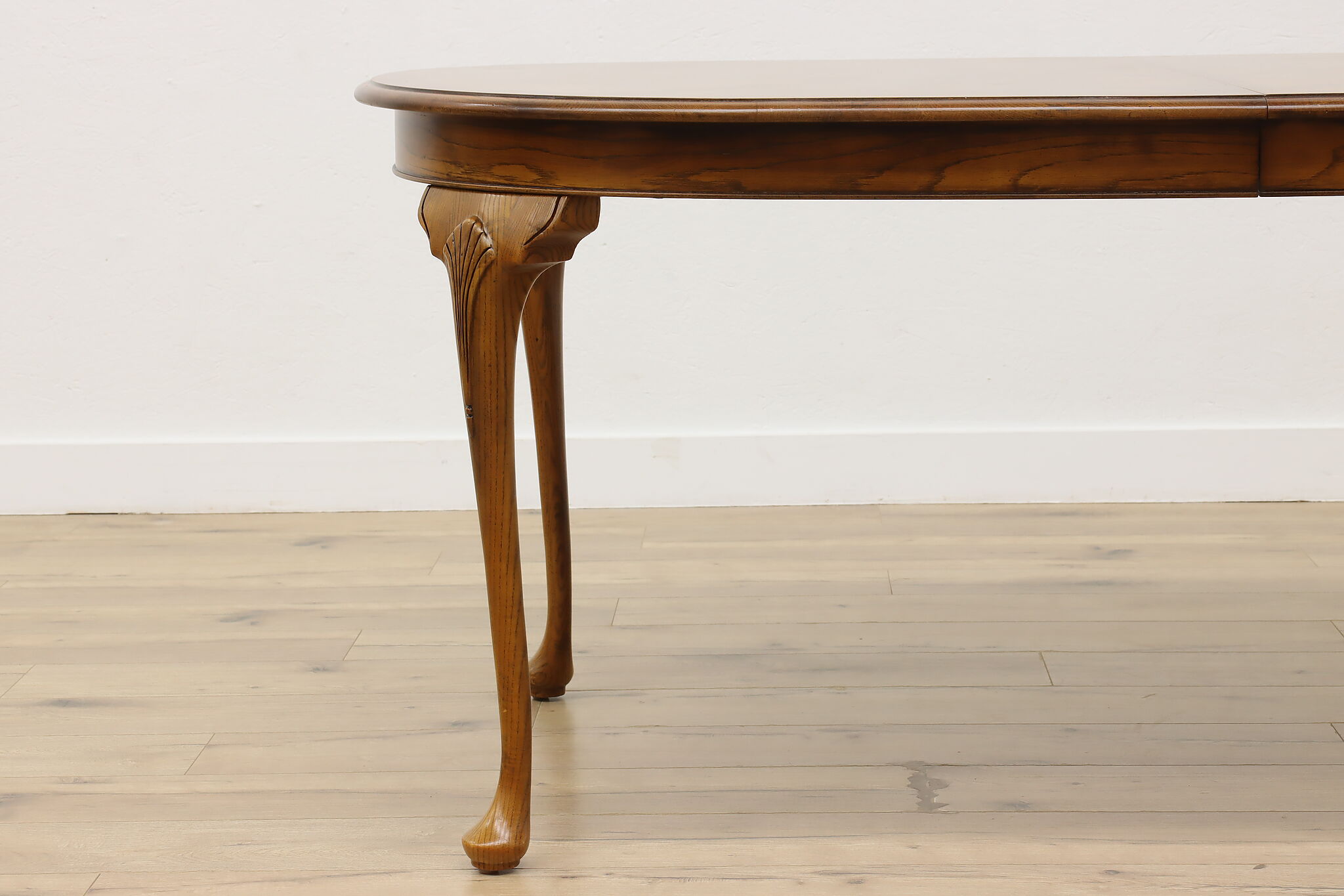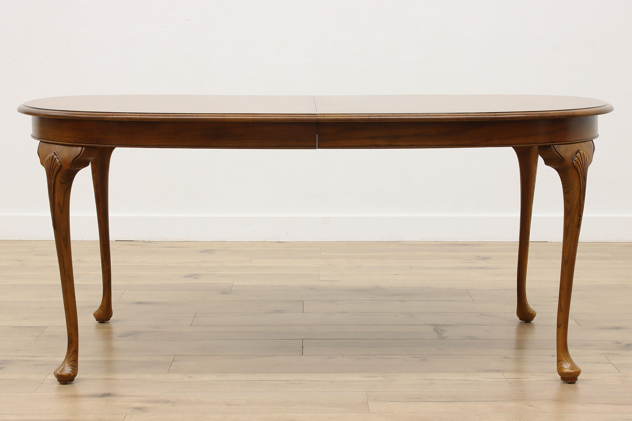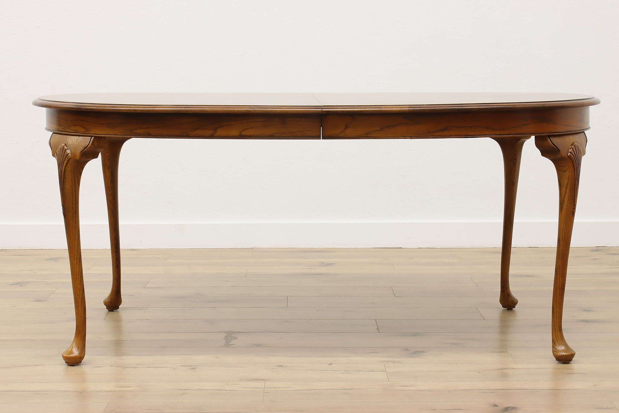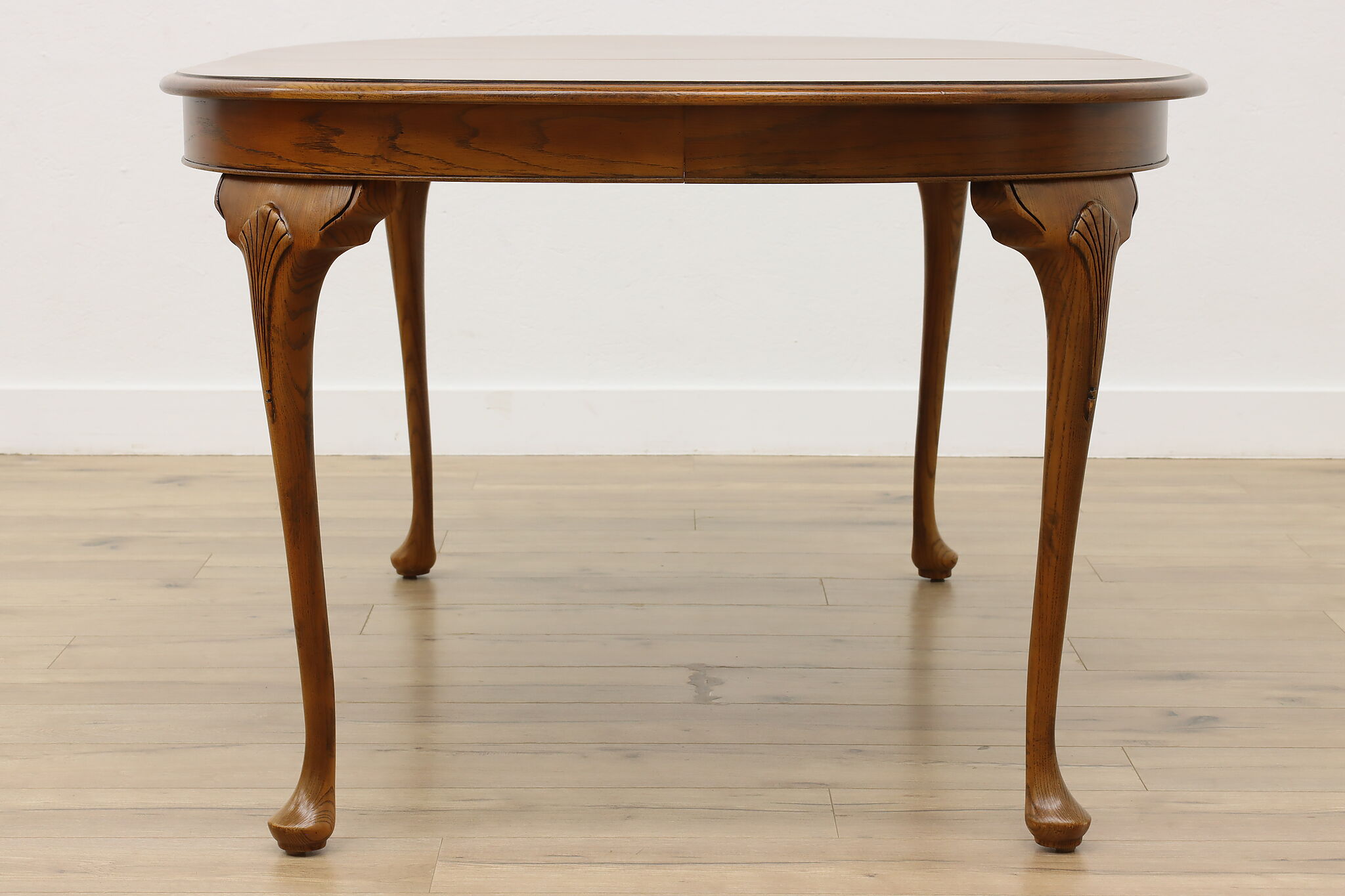 Table size is 68" long when closed, 44" wide and 30.5" tall. Legroom is 26" high. With both leaves in place, length is 105" overall.