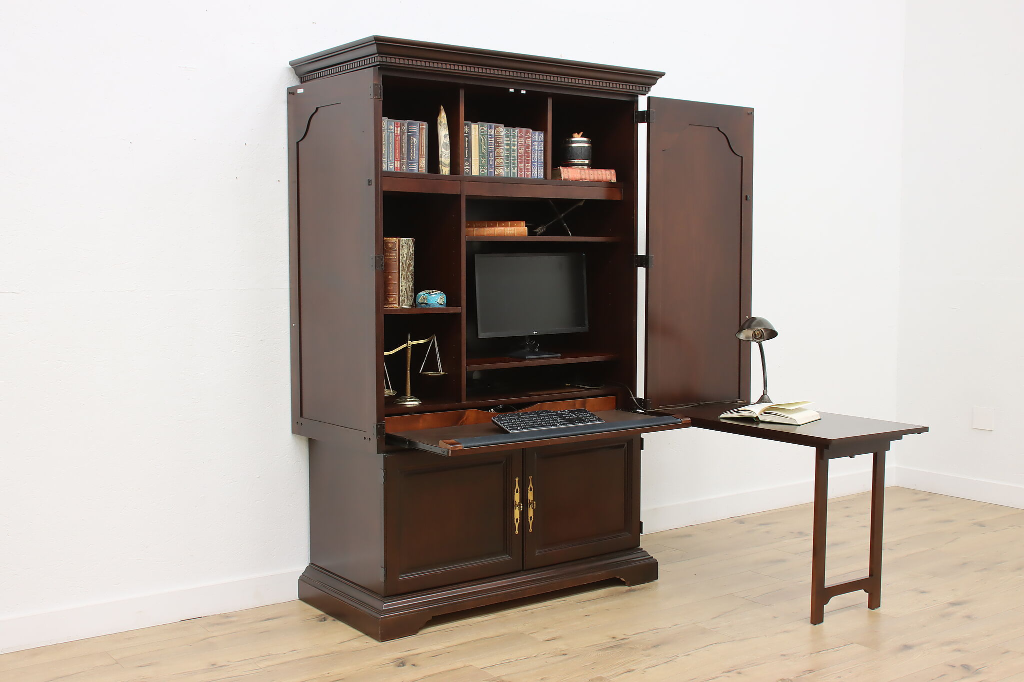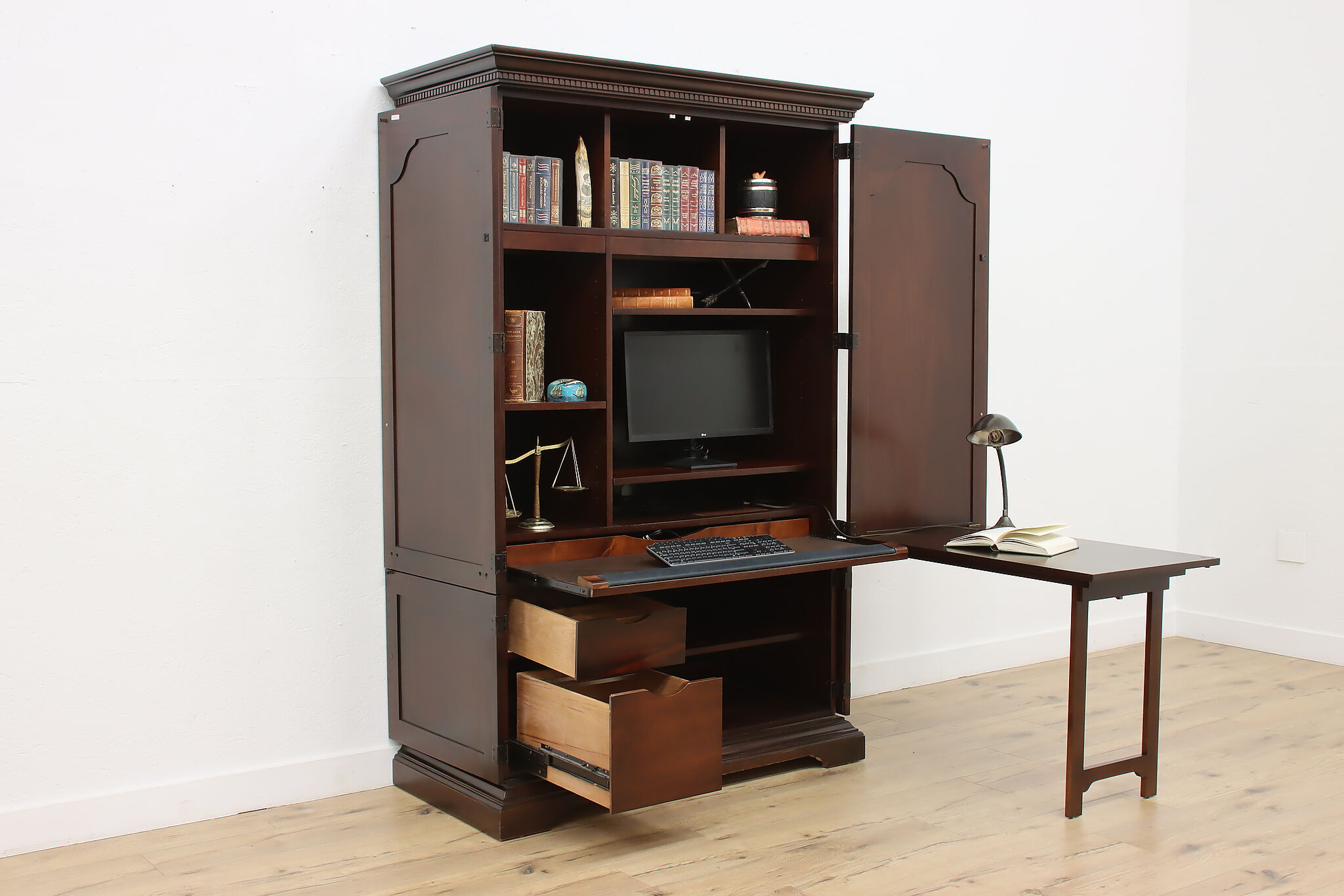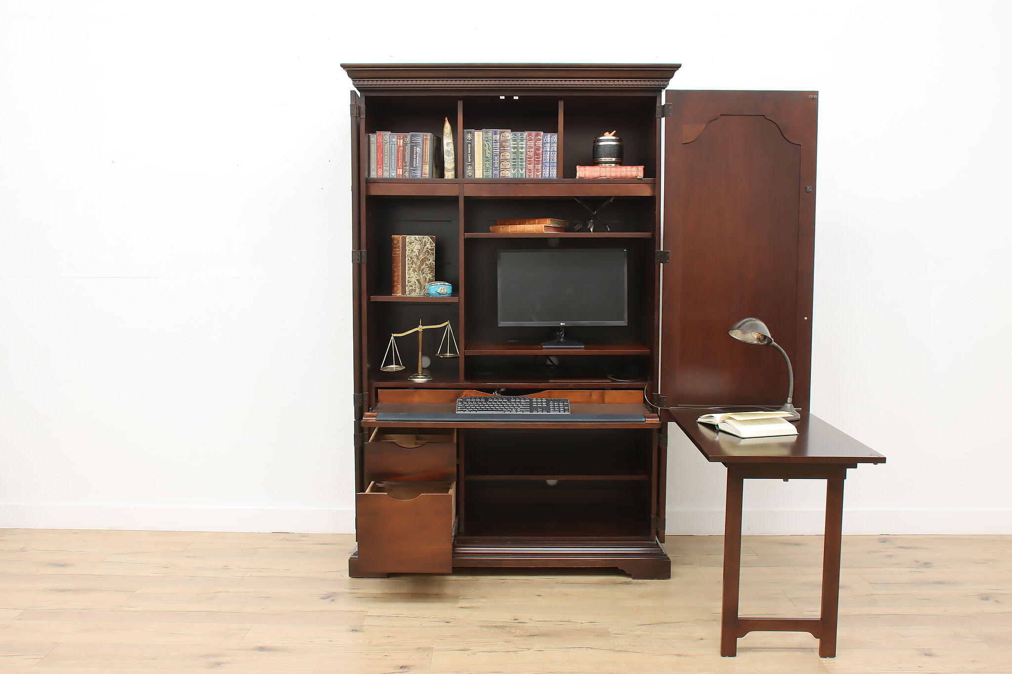 This Georgian design secretary desk combines everything you'd need for a successful office in one convenient package and hides your work when you want.