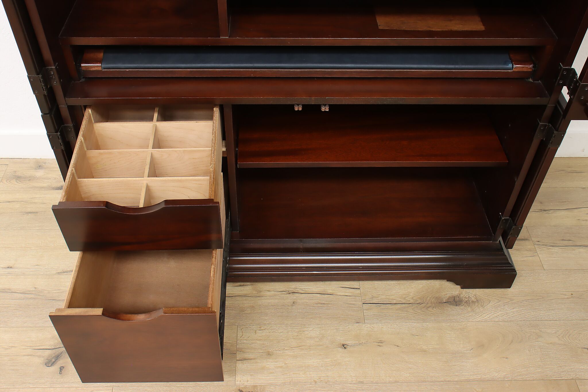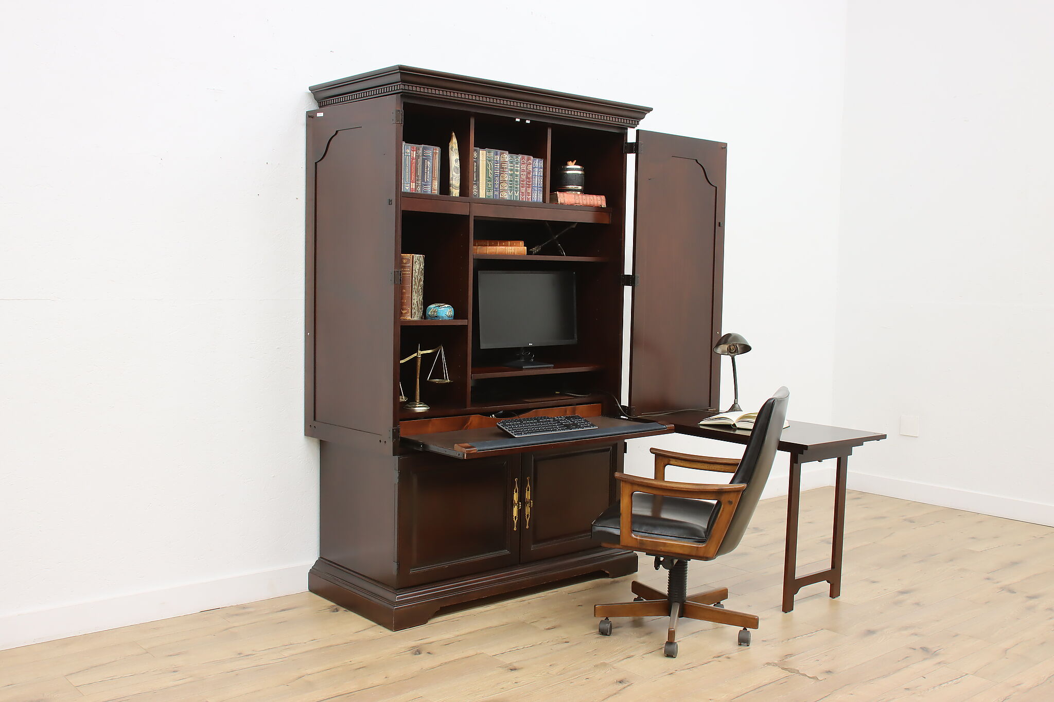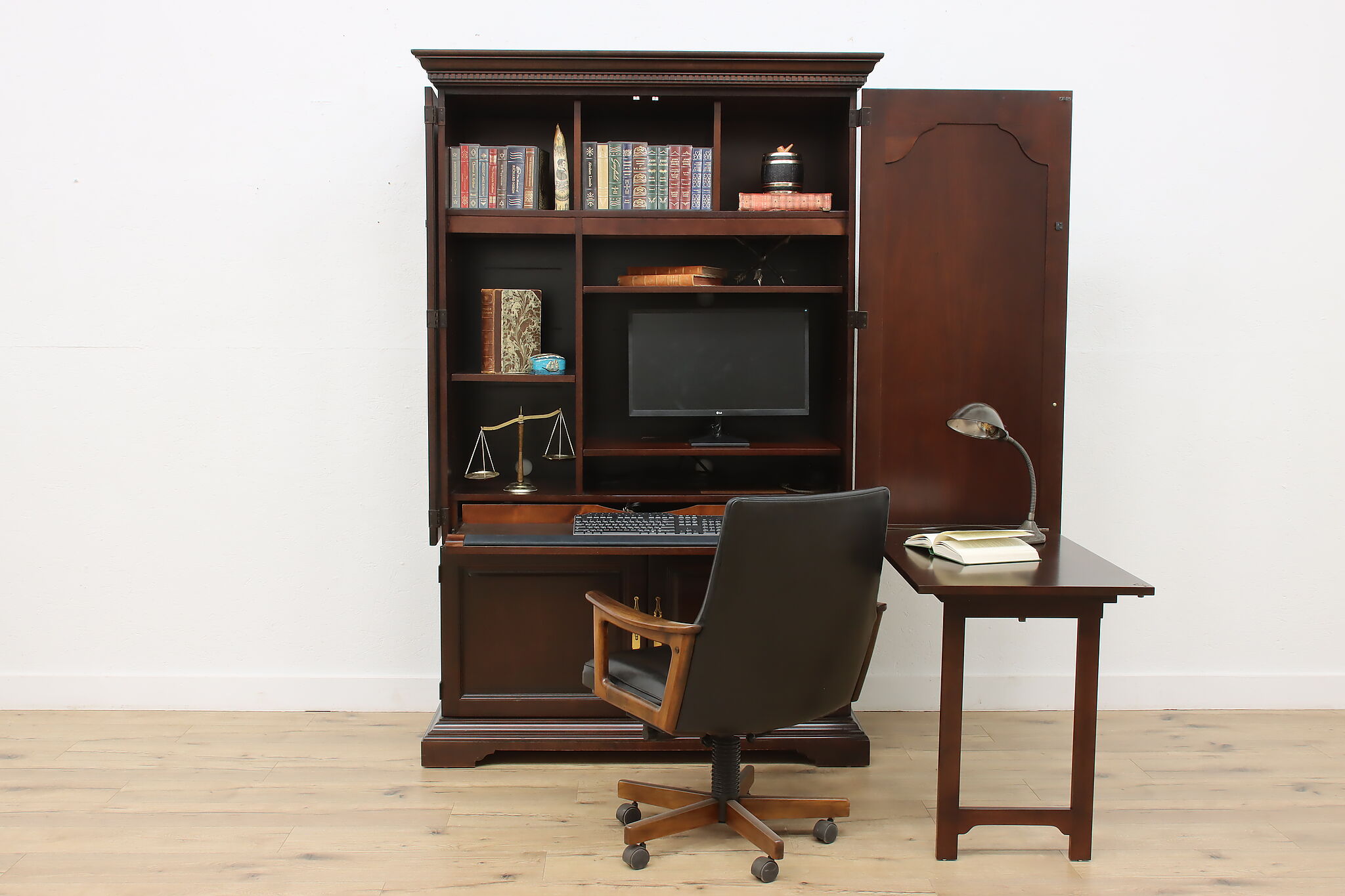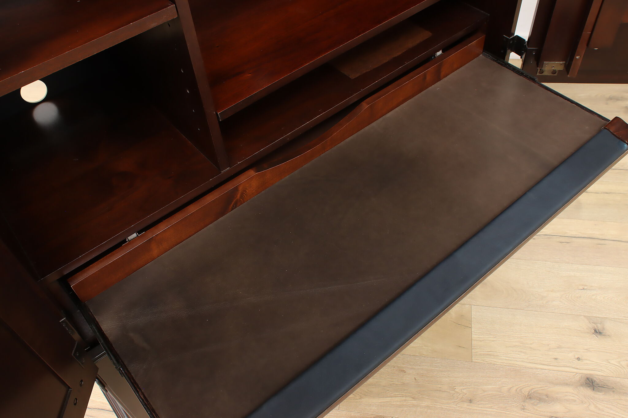 This Georgian design secretary desk combines everything you'd need for a successful office in one convenient package and hides your work when you want.