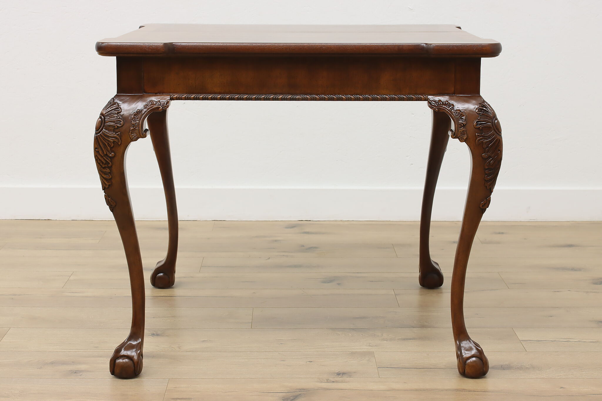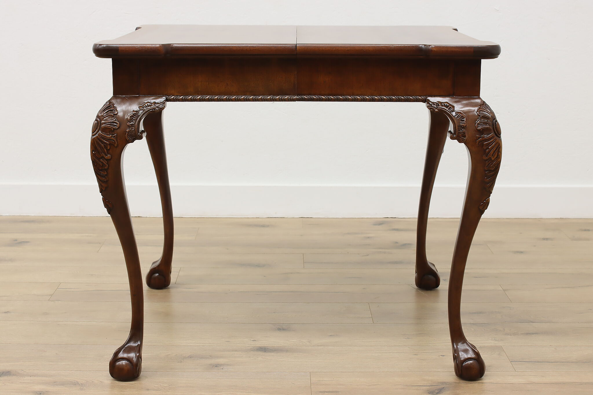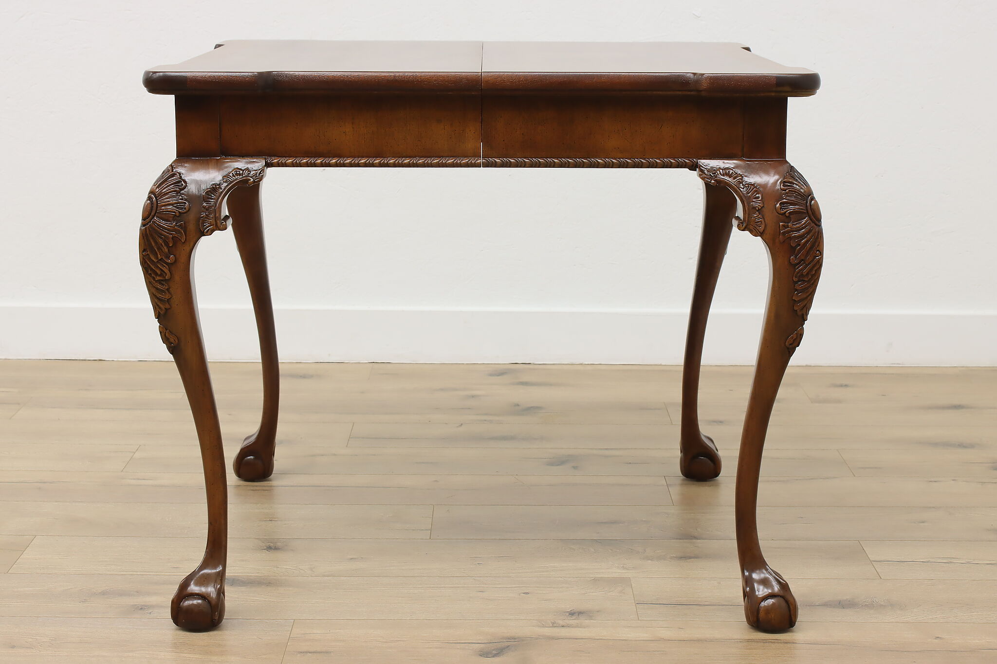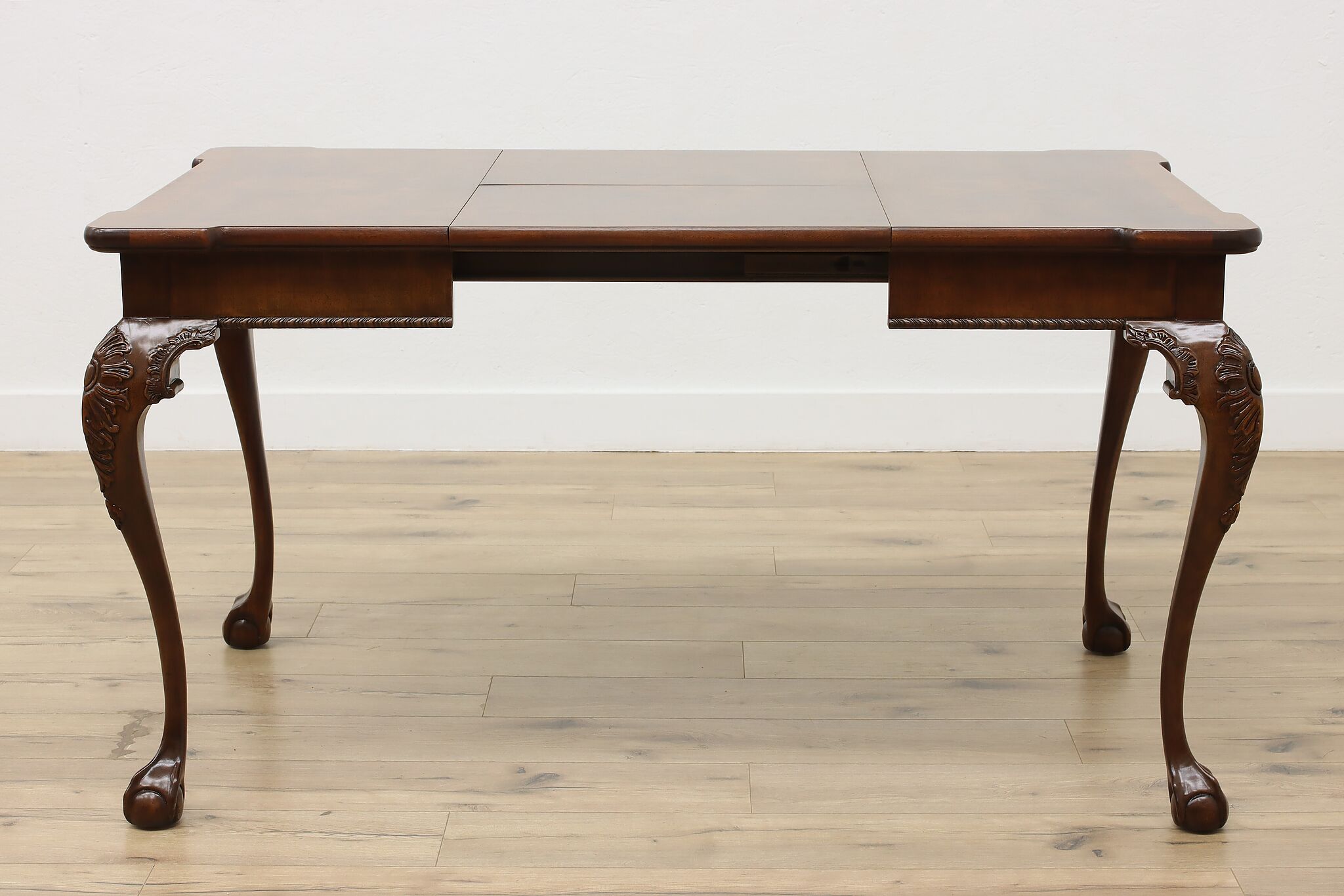 This beautiful Georgian design square dining or game table has a convenient self-storing butterfly leaf.