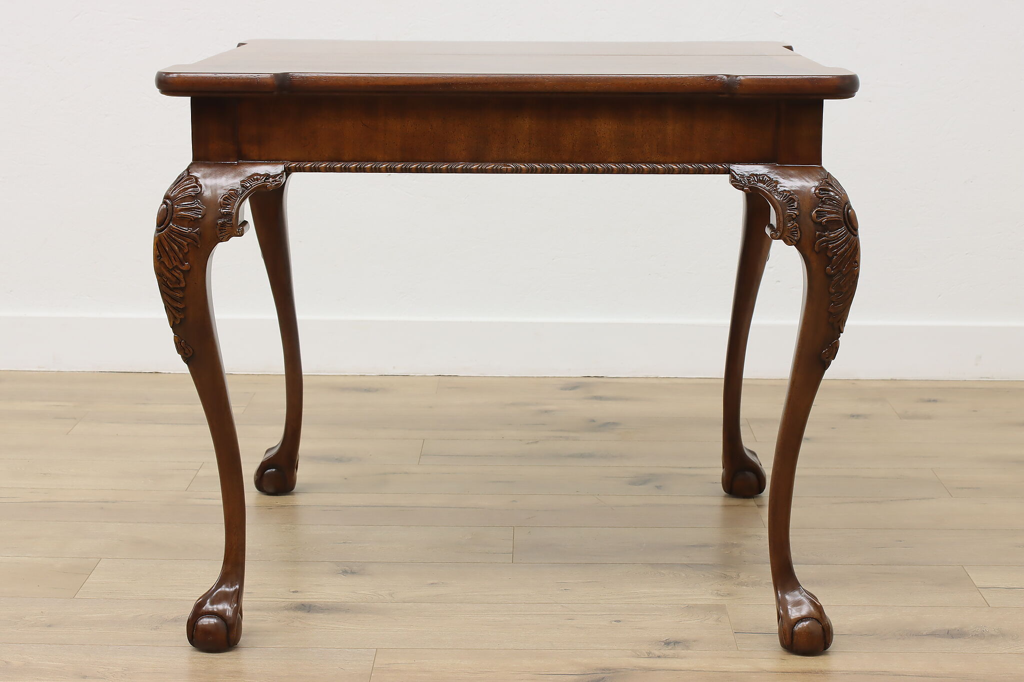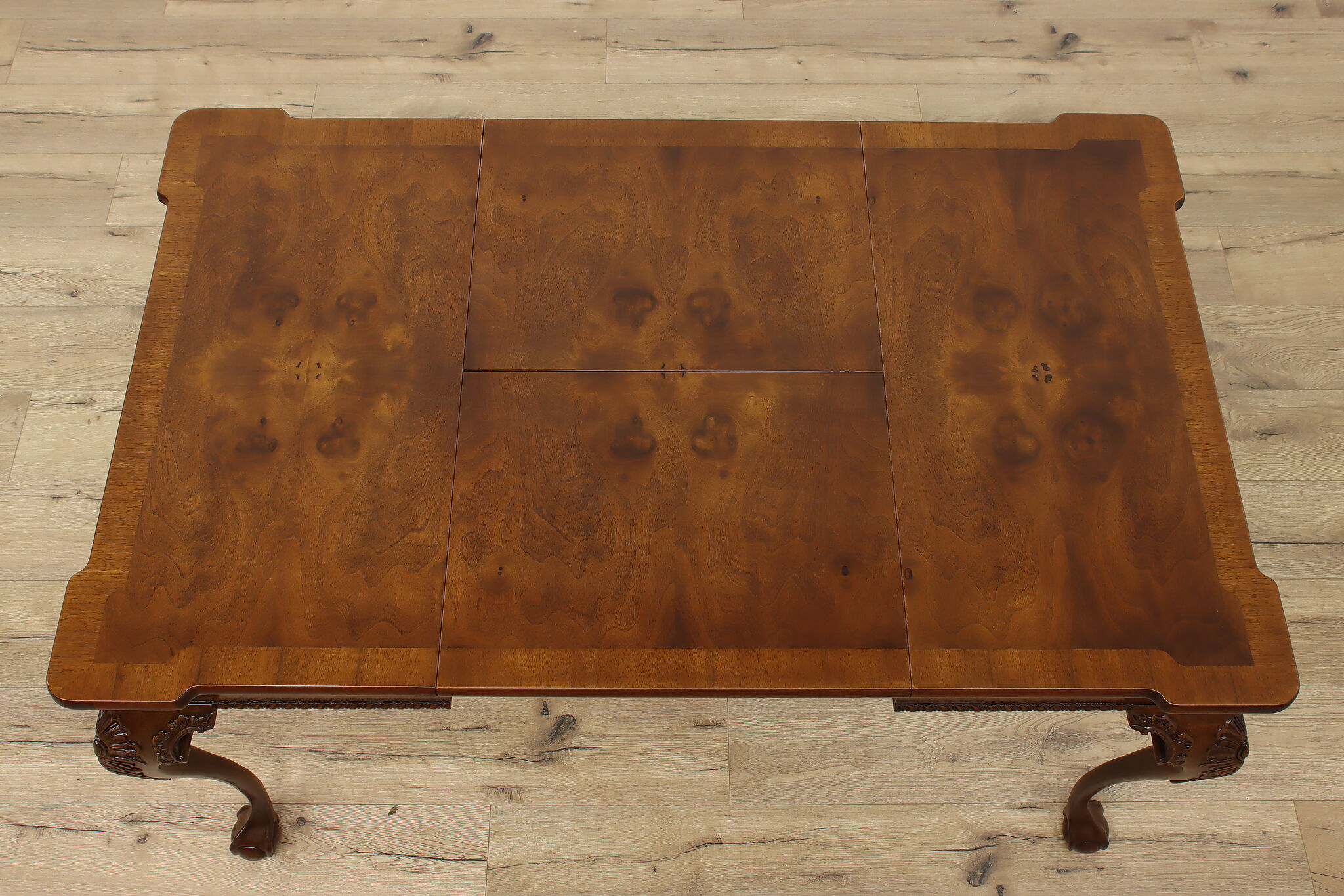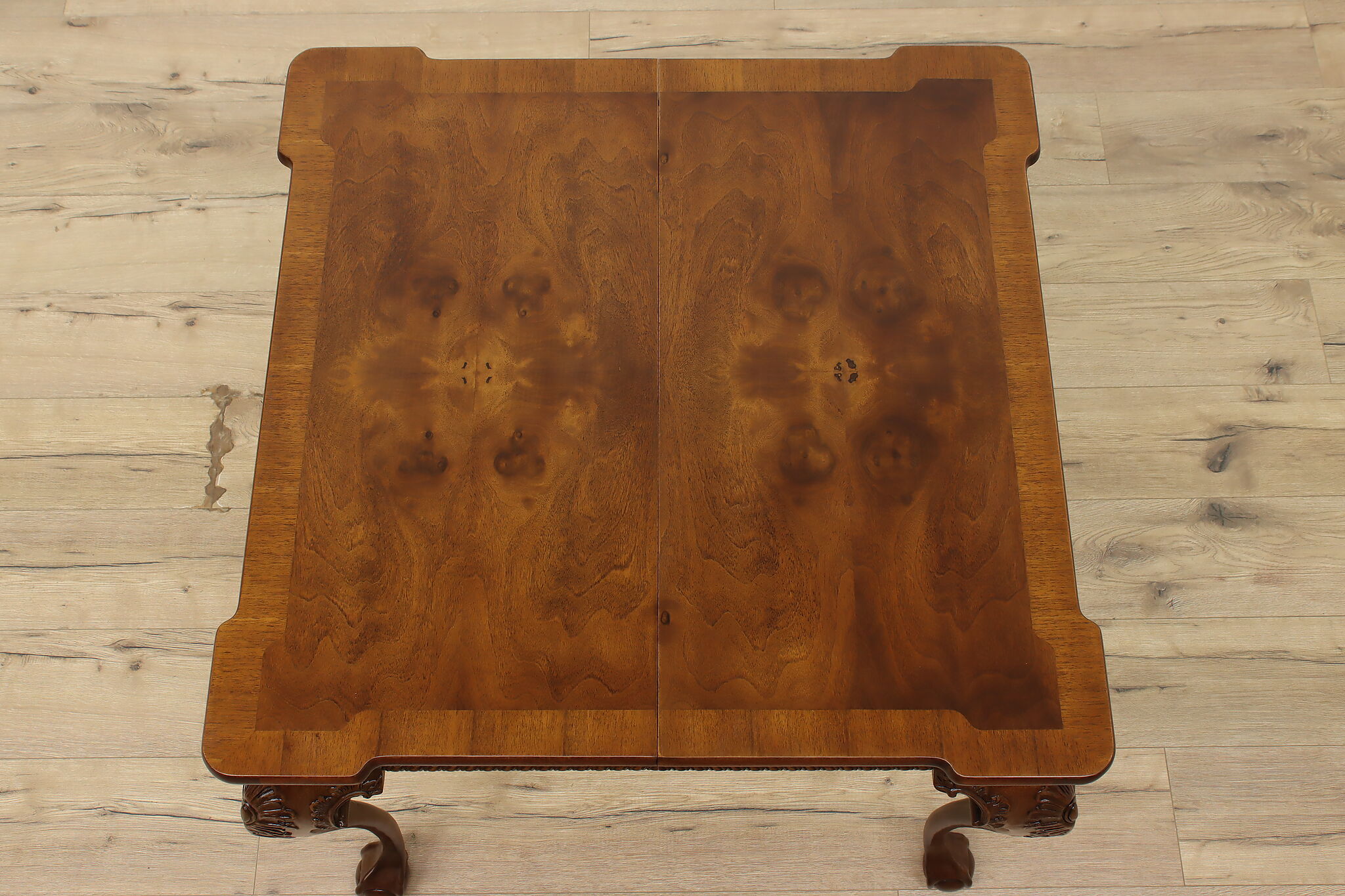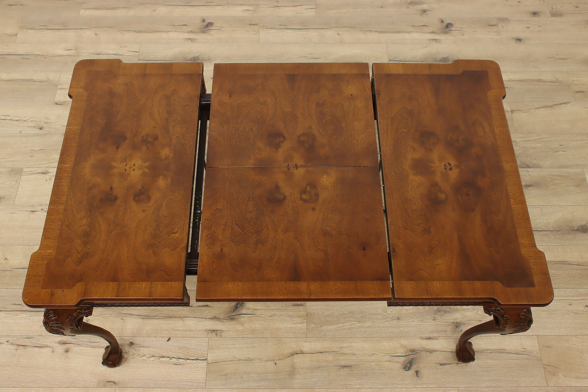 This beautiful Georgian design square dining or game table has a convenient self-storing butterfly leaf.