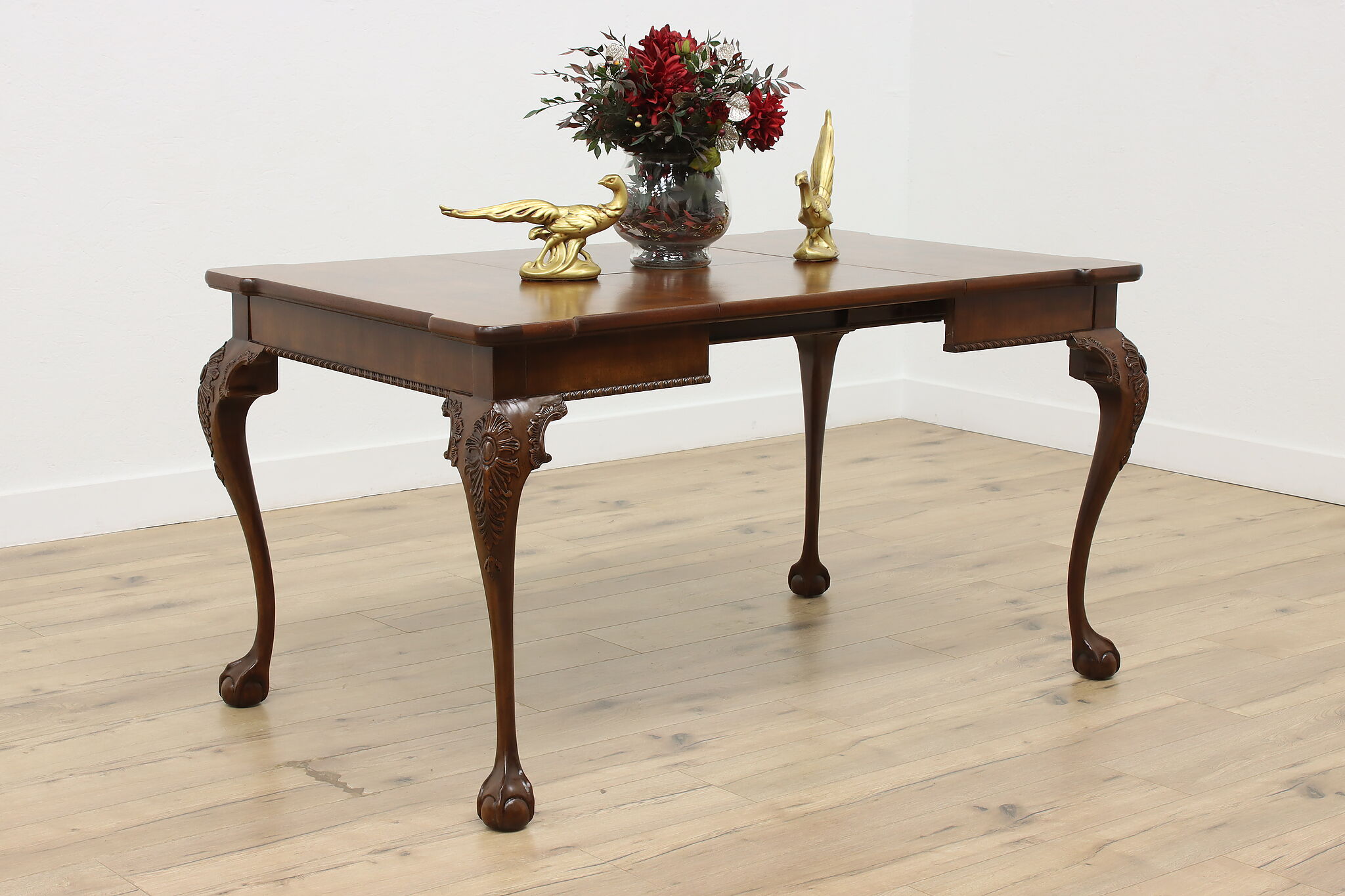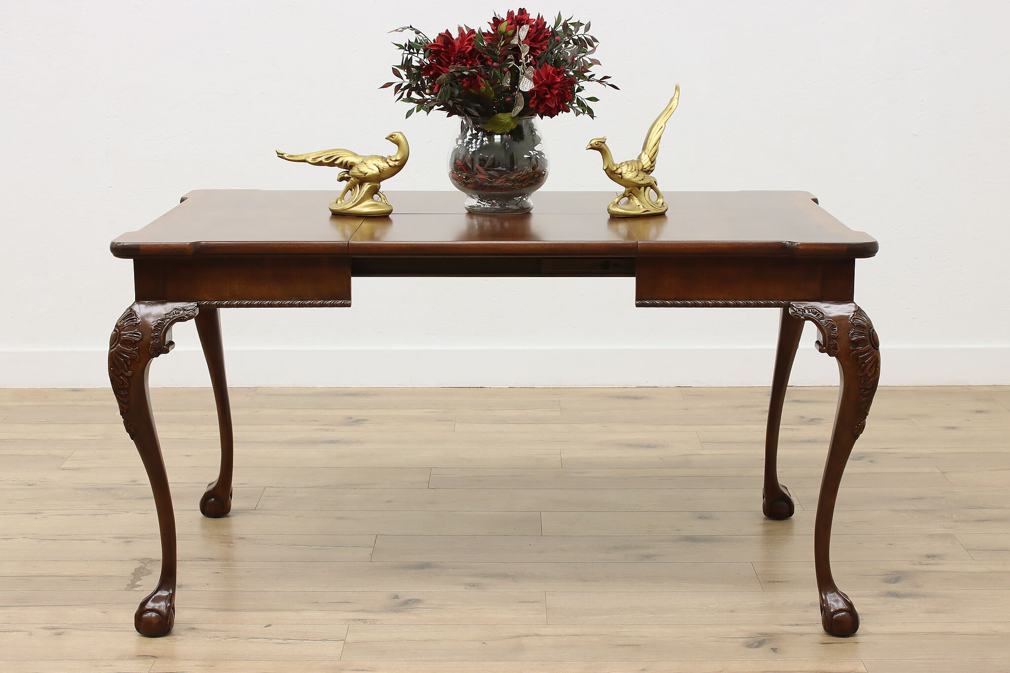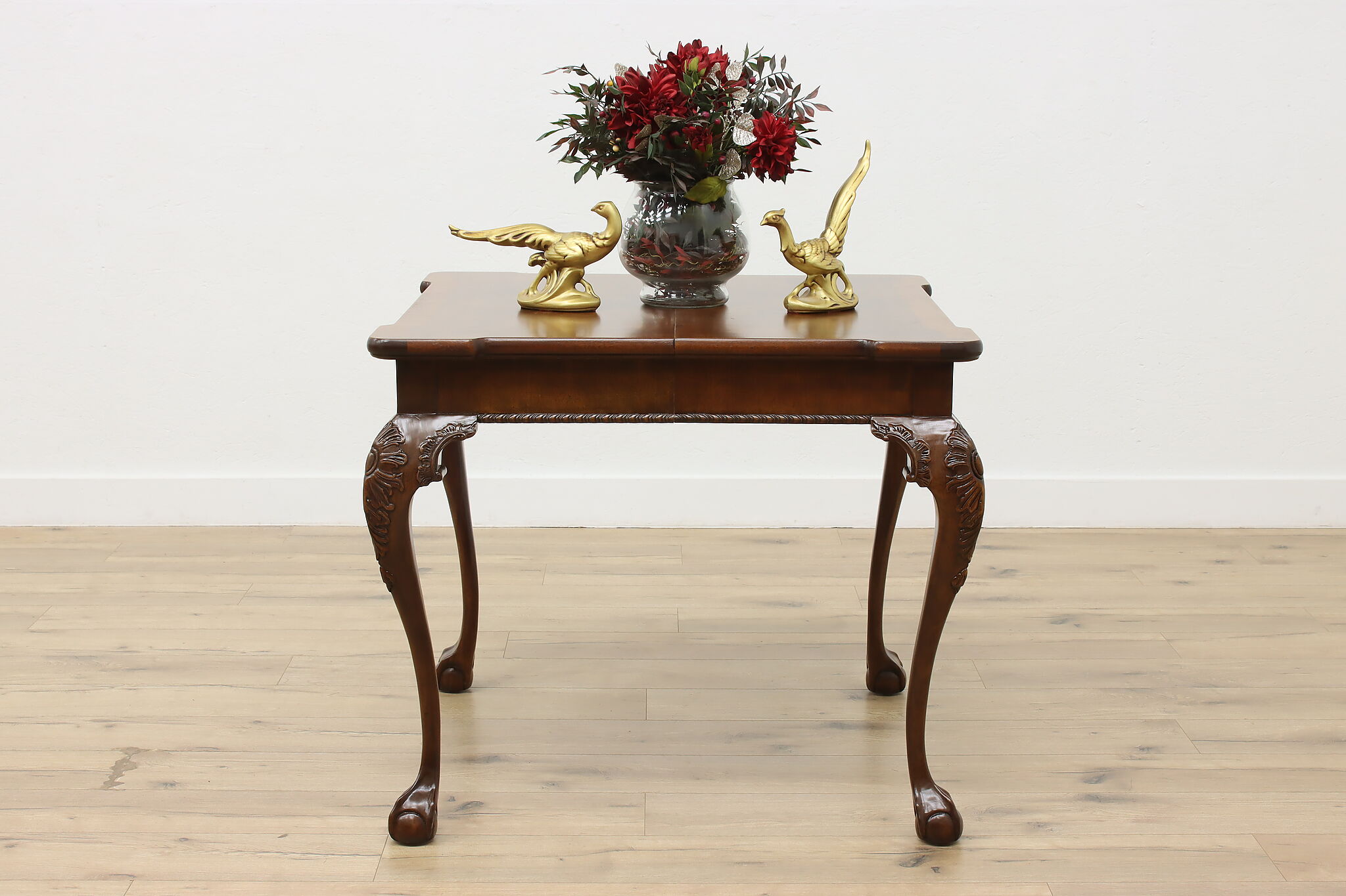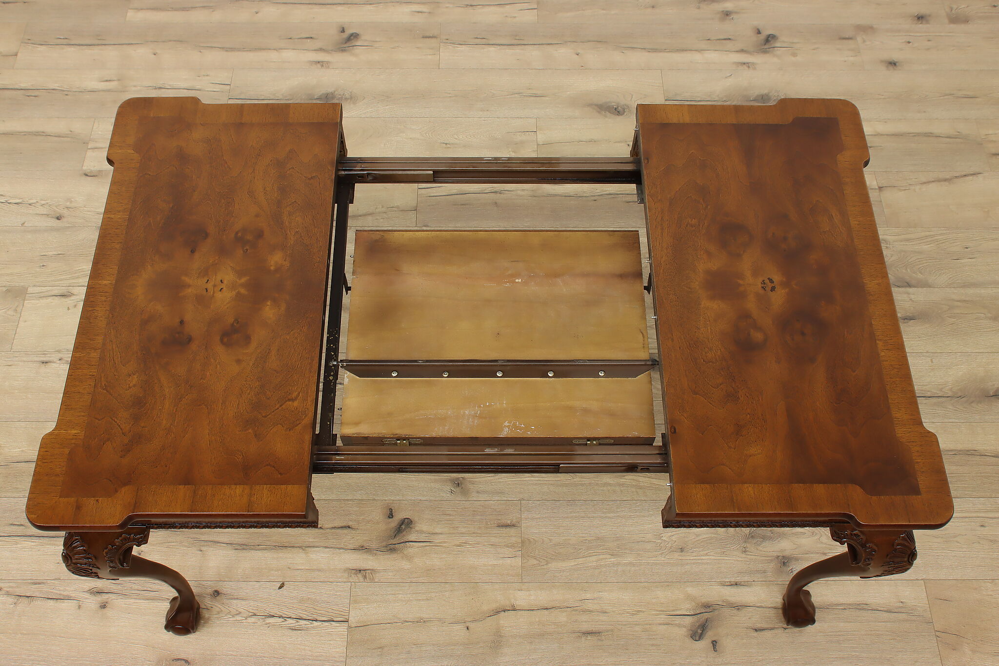 This beautiful Georgian design square dining or game table has a convenient self-storing butterfly leaf.