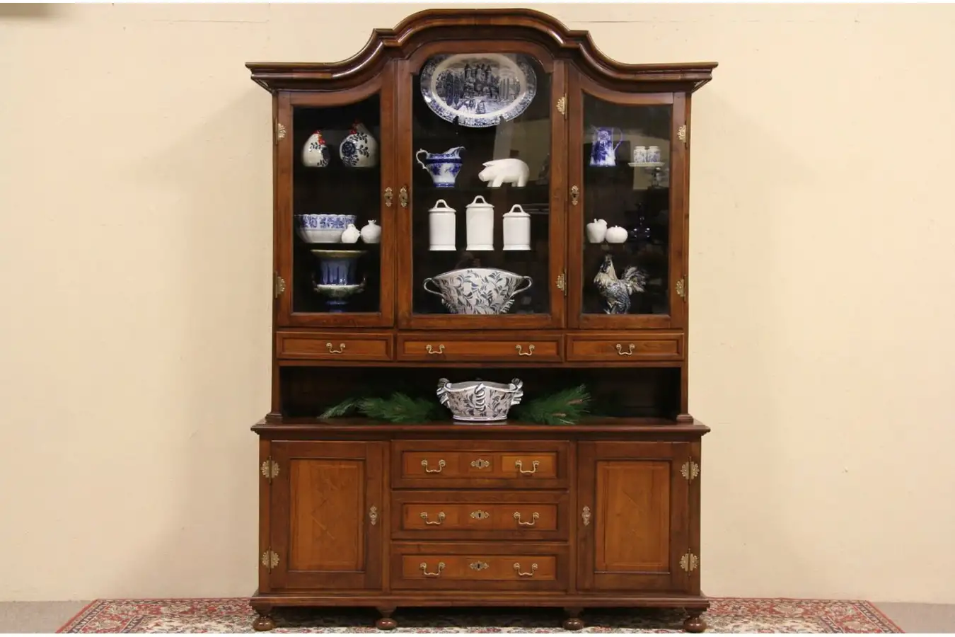 This splendid sideboard and china cabinet or bookcase was handcrafted in Germany about 1825 and shows Biedermeier design influence.